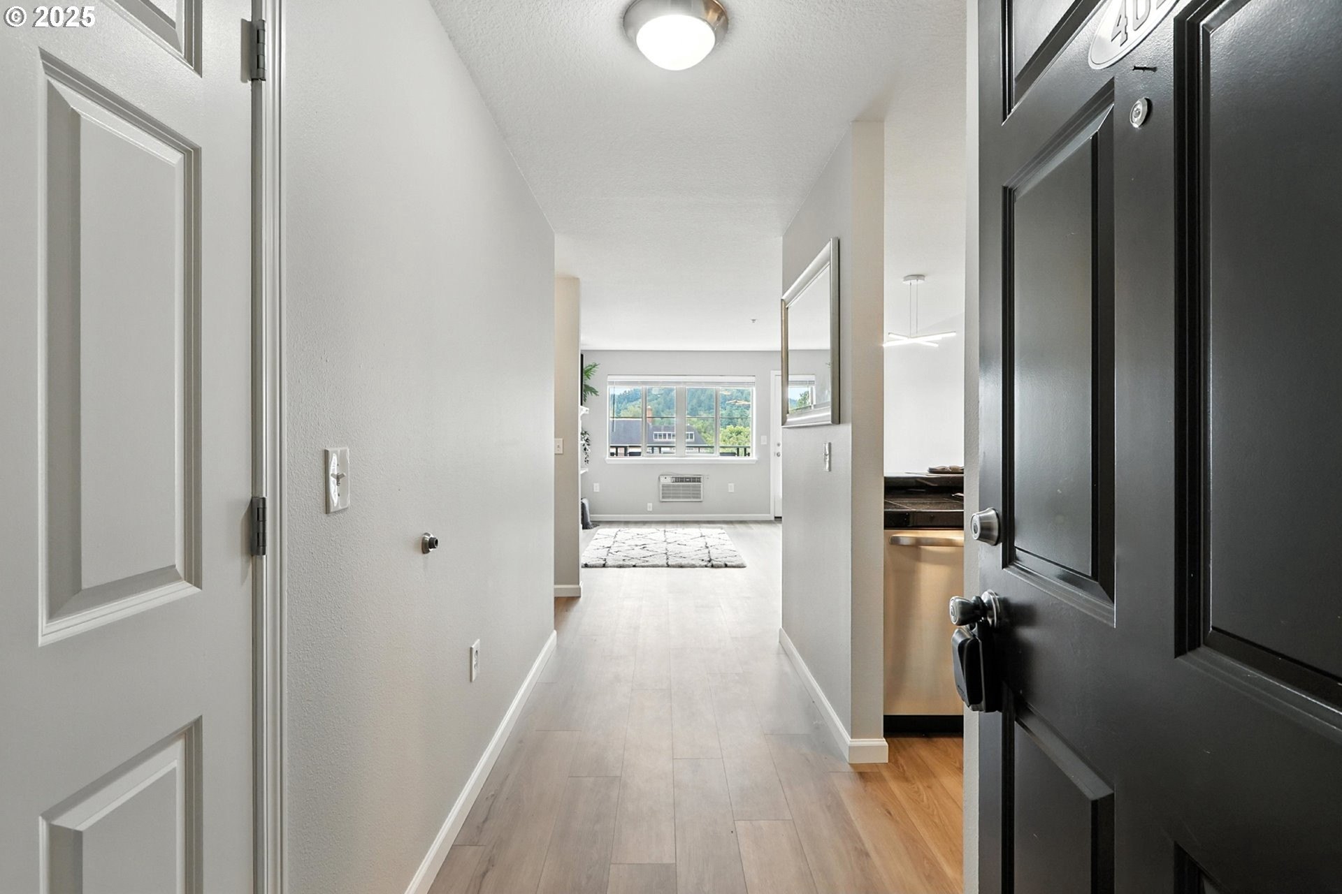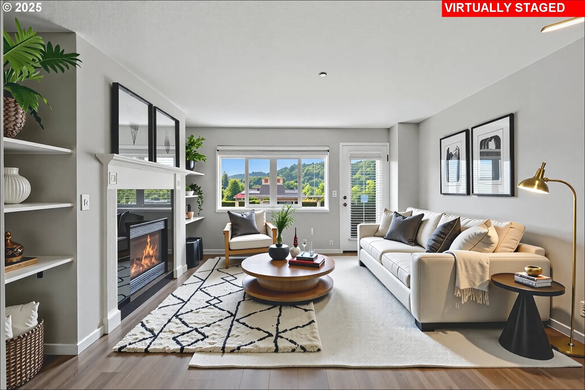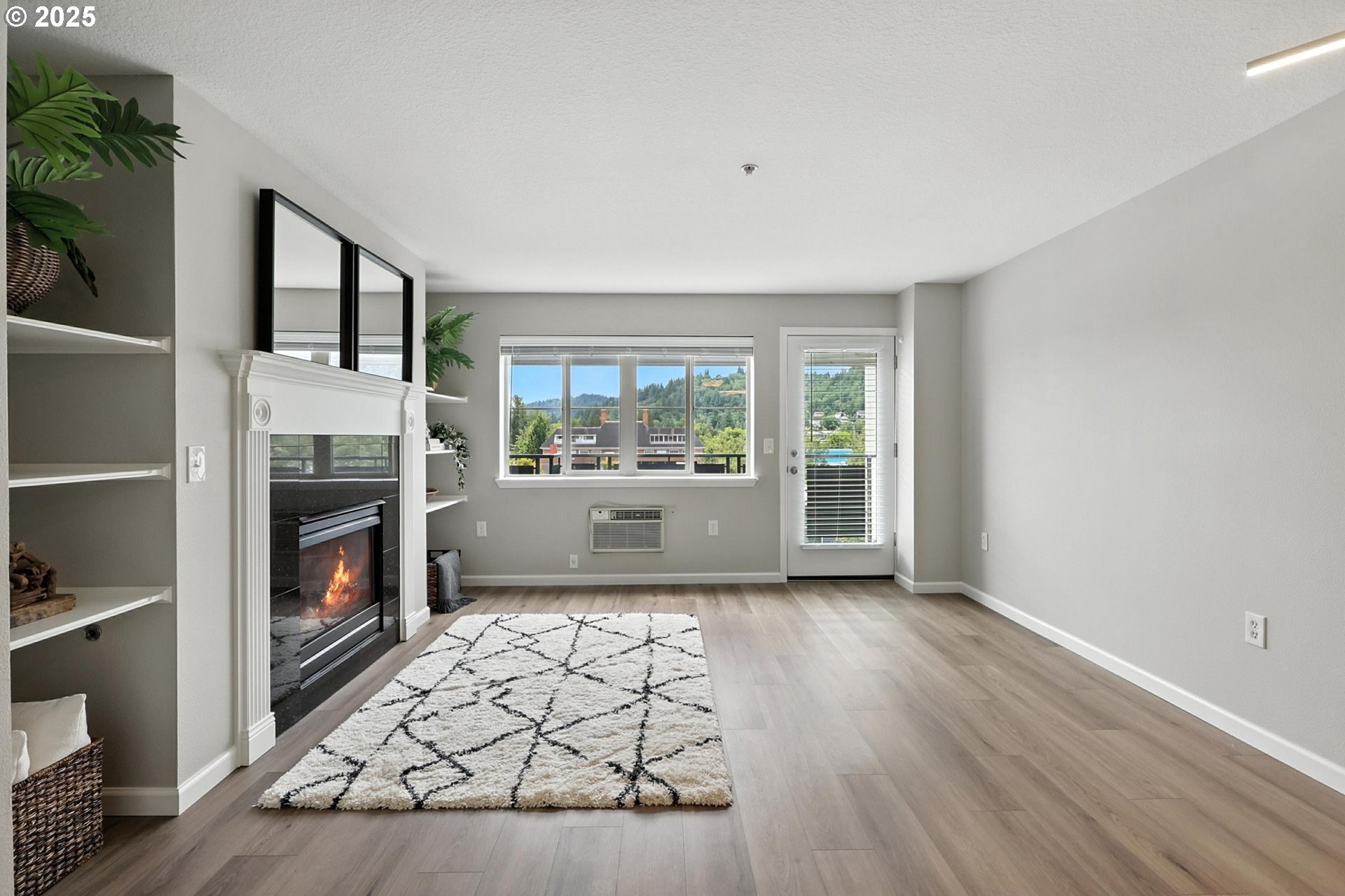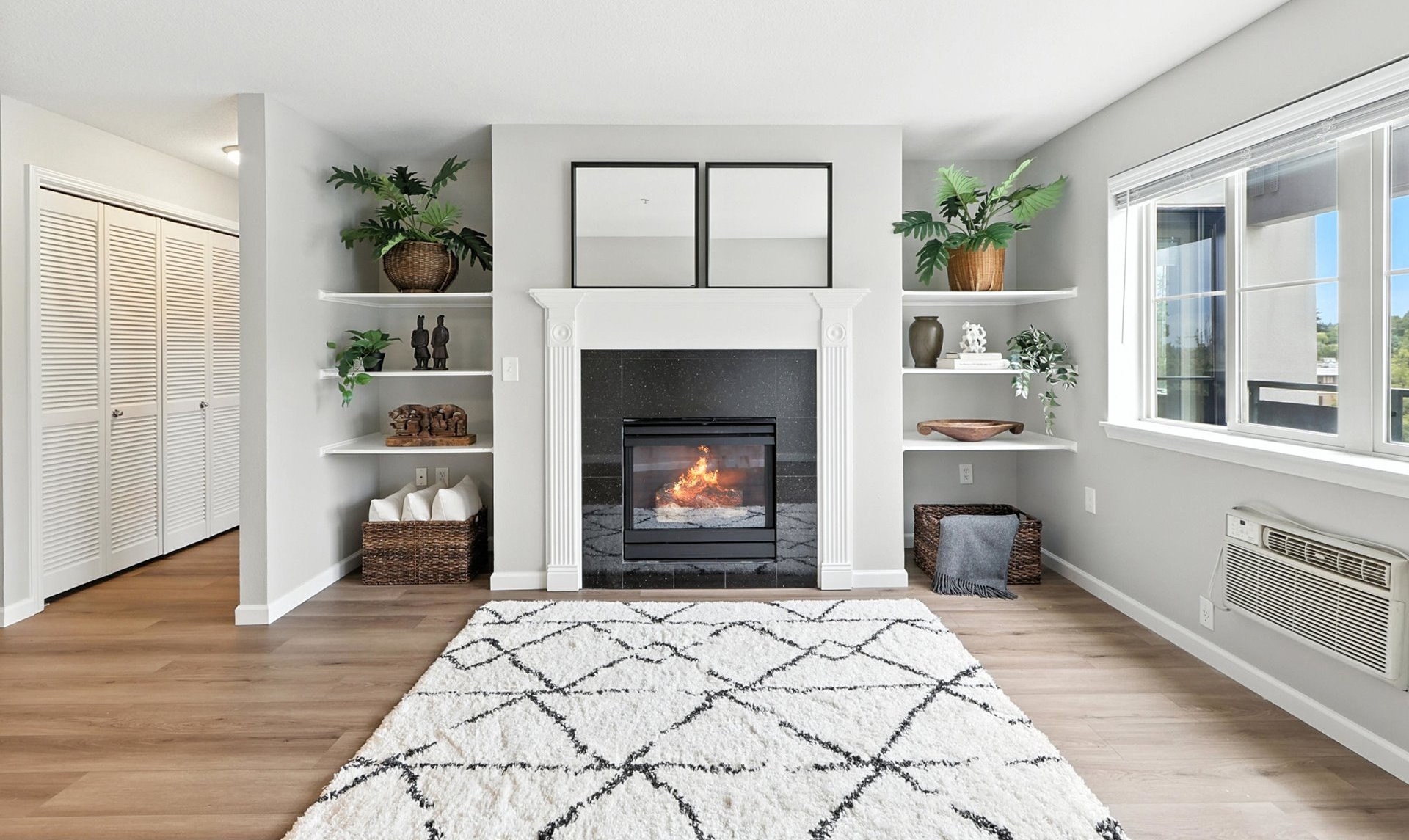 Downtown living! This beautifully updated light and bright condo offers the best of city living in the heart of Historic downtown Gresham. Perfect for those seeking an urban yet relaxed lifestyle without the hustle and bustle often associated with city life. Enjoy the ease of low-maintenance living and a vibrant and active lifestyle being just steps away from shops, restaurants, nightlife, and parks. Whether it’s procuring seasonal produce from the Farmer’s Market, dropping in for the perfect cuppa at Legacy, filling up your growler at one of the local breweries, or a night of fine dining with friends at Bocelli’s…whatever your pleasure, you’ll find it here. Begin and end your days with stunning views: a unique combination of unobstructed city scape and lush, green, natural vistas viewable from just about every room. Or step out onto your private balcony, away from prying eyes, take in the air, and relish in life’s simple pleasures.While the home features all new flooring and light fixtures throughout, new cabinets, stainless steel appliances and granite countertops in the generously sized kitchen with counter seating it’s the charming details like the wood mantel, fireplace surround and functional built-ins set that set this unit apart from cookie-cutter new builds. A gas fireplace adds warmth and ambiance to this open concept home while the AC will keep you cool on those hot summer days. With it’s prime location, breathtaking views, abundant light and smart design, this is not one to miss. Love where you live and live where you love. Amenities Include: In unit laundry, Lobby with mailroom & Elevator HOA includes: garbage, water, sewer, exterior maintenance, secure entry & Assigned Parking