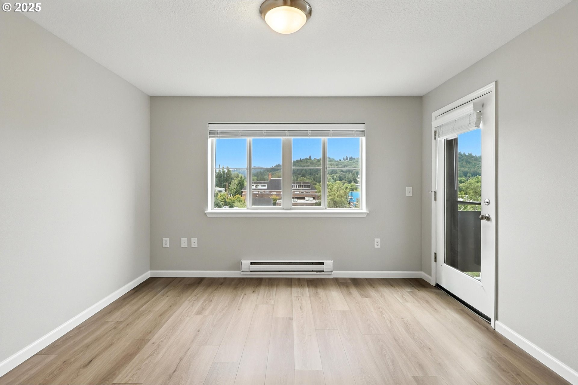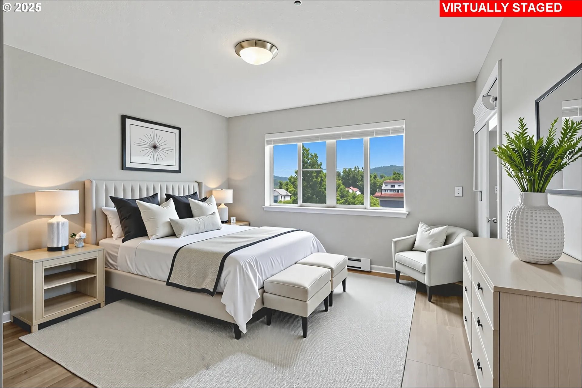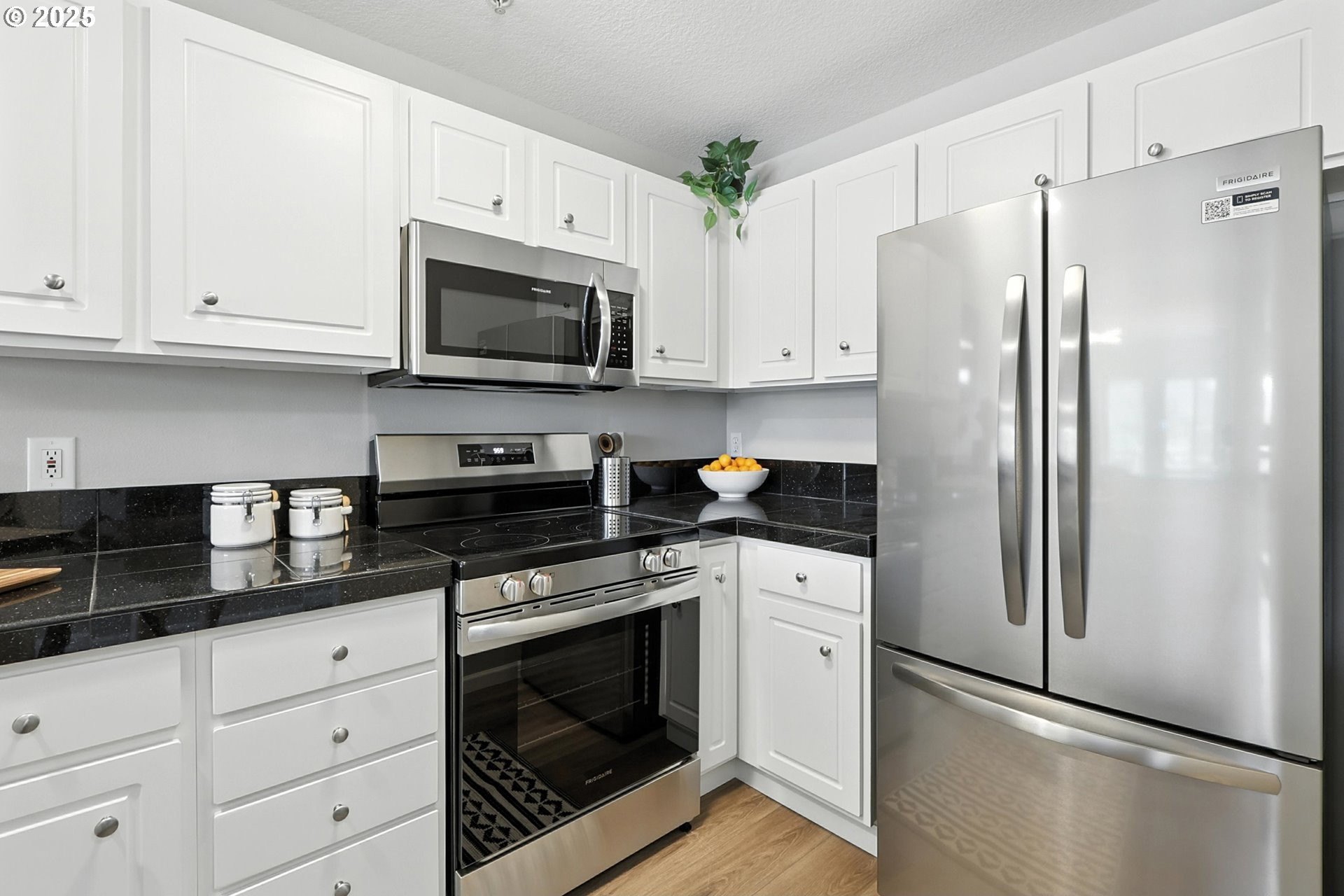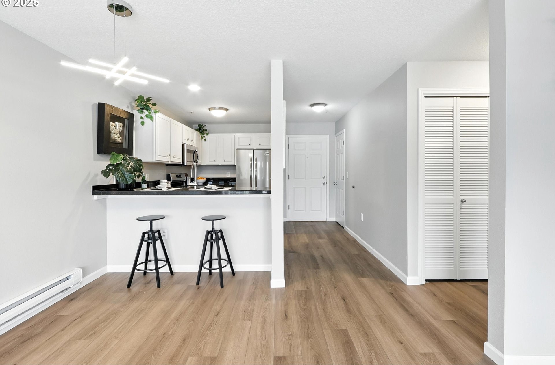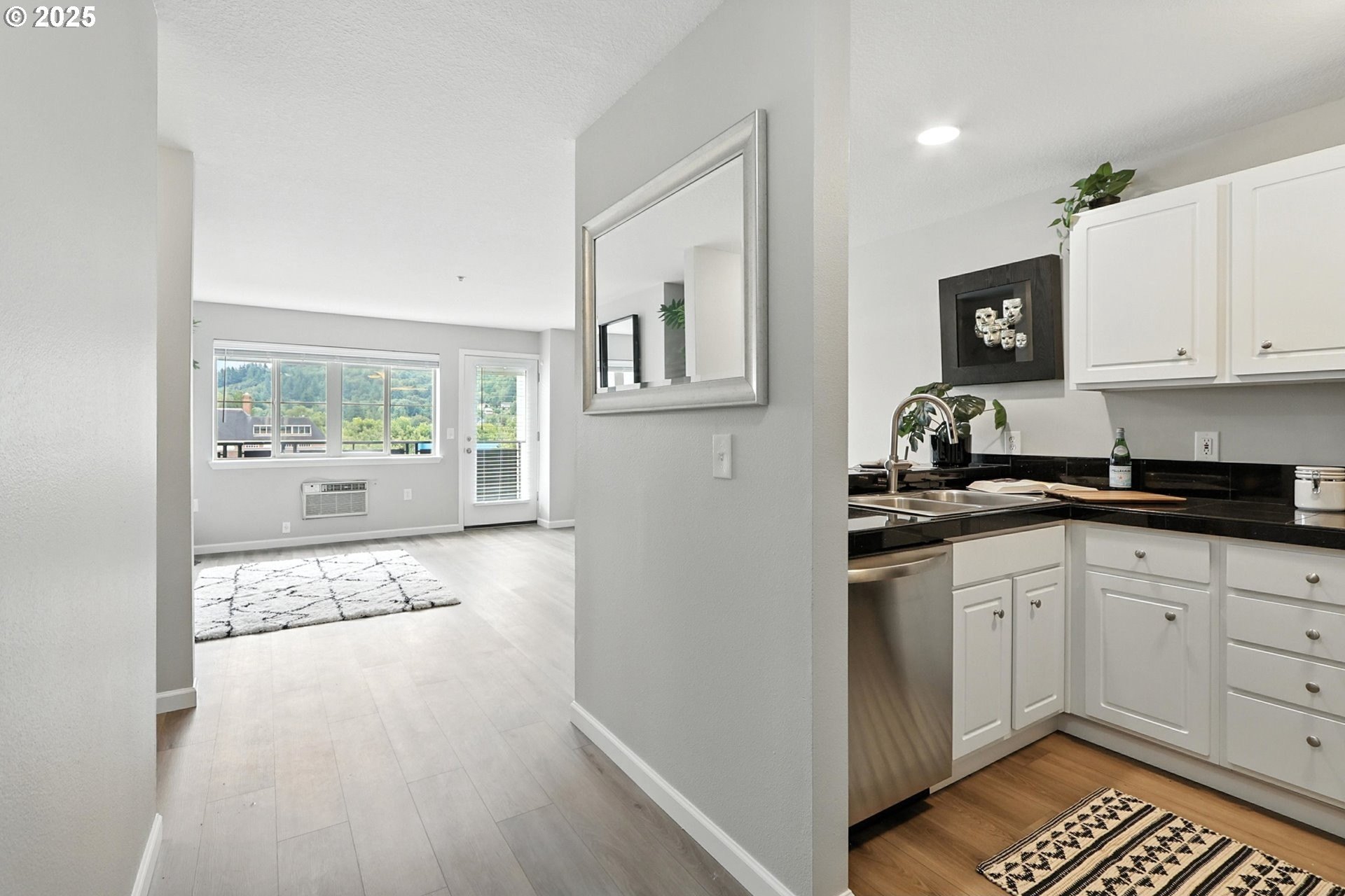 Downtown living! This beautifully updated light and bright condo offers the best of city living in the heart of Historic downtown Gresham. Perfect for those seeking an urban yet relaxed lifestyle without the hustle and bustle often associated with city life. Enjoy the ease of low-maintenance living and a vibrant and active lifestyle being just steps away from shops, restaurants, nightlife, and parks. Whether it’s procuring seasonal produce from the Farmer’s Market, dropping in for the perfect cuppa at Legacy, filling up your growler at one of the local breweries, or a night of fine dining with friends at Bocelli’s…whatever your pleasure, you’ll find it here. Begin and end your days with stunning views: a unique combination of unobstructed city scape and lush, green, natural vistas viewable from just about every room. Or step out onto your private balcony, away from prying eyes, take in the air, and relish in life’s simple pleasures.While the home features all new flooring and light fixtures throughout, new cabinets, stainless steel appliances and granite countertops in the generously sized kitchen with counter seating it’s the charming details like the wood mantel, fireplace surround and functional built-ins set that set this unit apart from cookie-cutter new builds. A gas fireplace adds warmth and ambiance to this open concept home while the AC will keep you cool on those hot summer days. With it’s prime location, breathtaking views, abundant light and smart design, this is not one to miss. Love where you live and live where you love. Amenities Include: In unit laundry, Lobby with mailroom & Elevator HOA includes: garbage, water, sewer, exterior maintenance, secure entry & Assigned Parking