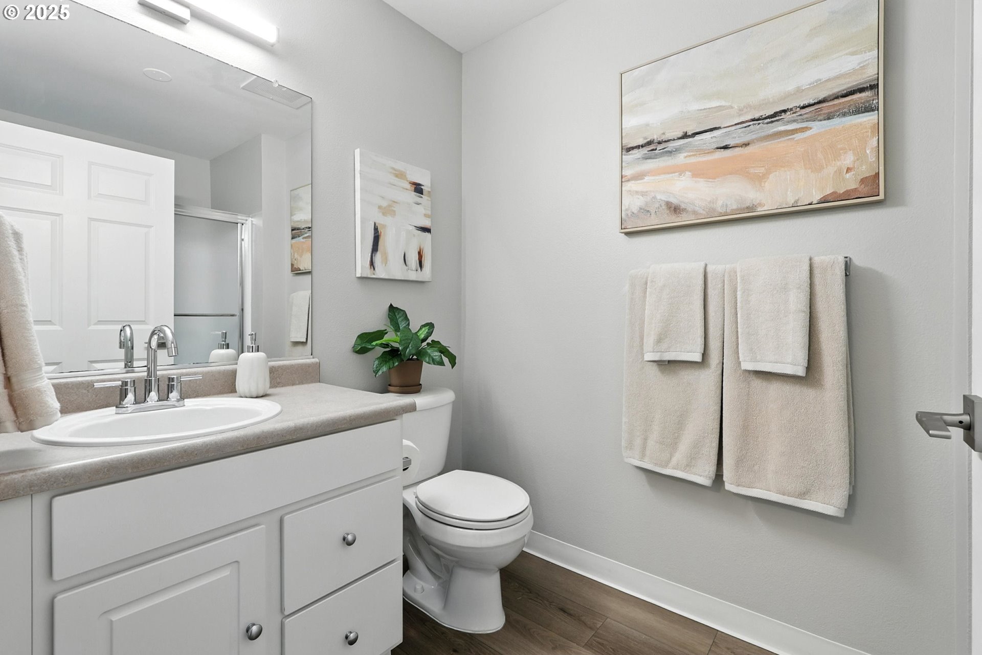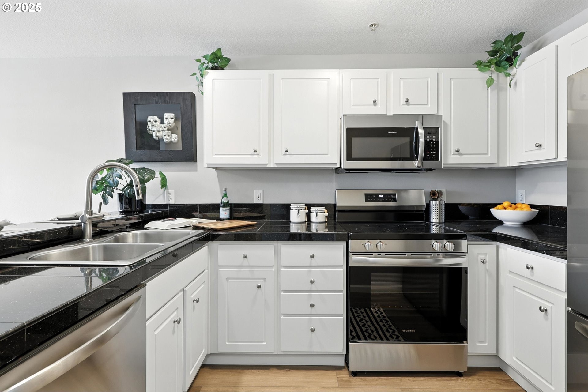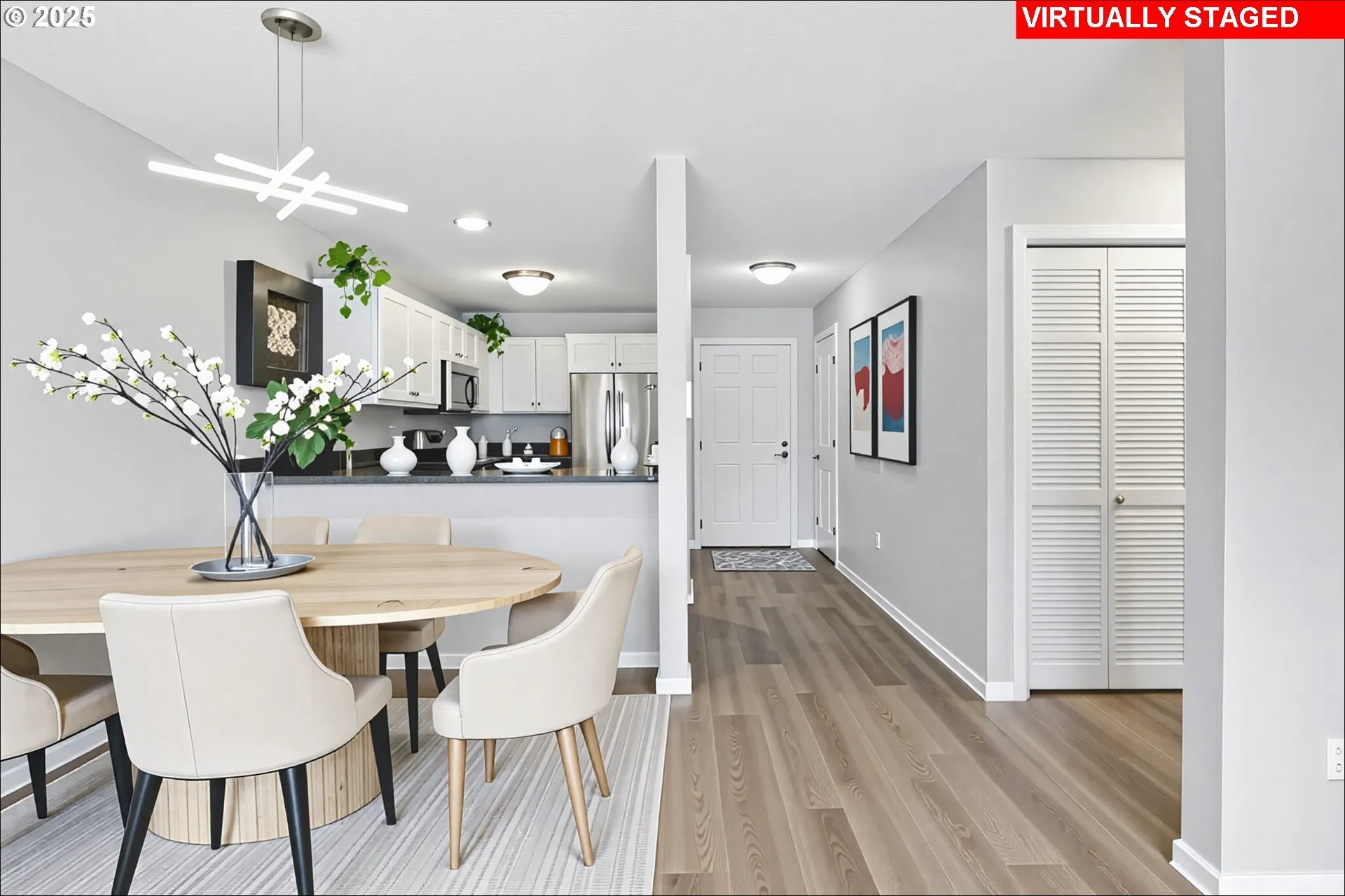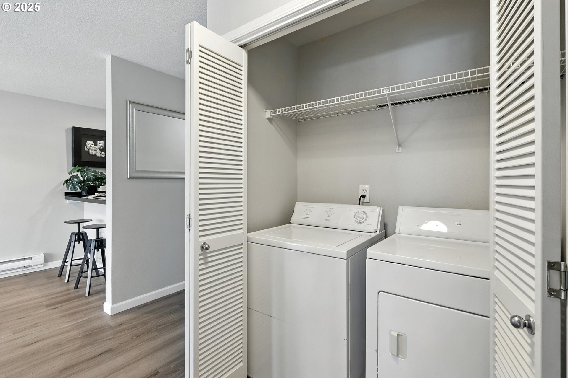 Downtown living! This beautifully updated light and bright condo offers the best of city living in the heart of Historic downtown Gresham. Perfect for those seeking an urban yet relaxed lifestyle without the hustle and bustle often associated with city life. Enjoy the ease of low-maintenance living and a vibrant and active lifestyle being just steps away from shops, restaurants, nightlife, and parks. Whether it’s procuring seasonal produce from the Farmer’s Market, dropping in for the perfect cuppa at Legacy, filling up your growler at one of the local breweries, or a night of fine dining with friends at Bocelli’s…whatever your pleasure, you’ll find it here. Begin and end your days with stunning views: a unique combination of unobstructed city scape and lush, green, natural vistas viewable from just about every room. Or step out onto your private balcony, away from prying eyes, take in the air, and relish in life’s simple pleasures.While the home features all new flooring and light fixtures throughout, new cabinets, stainless steel appliances and granite countertops in the generously sized kitchen with counter seating it’s the charming details like the wood mantel, fireplace surround and functional built-ins set that set this unit apart from cookie-cutter new builds. A gas fireplace adds warmth and ambiance to this open concept home while the AC will keep you cool on those hot summer days. With it’s prime location, breathtaking views, abundant light and smart design, this is not one to miss. Love where you live and live where you love. Amenities Include: In unit laundry, Lobby with mailroom & Elevator HOA includes: garbage, water, sewer, exterior maintenance, secure entry & Assigned Parking