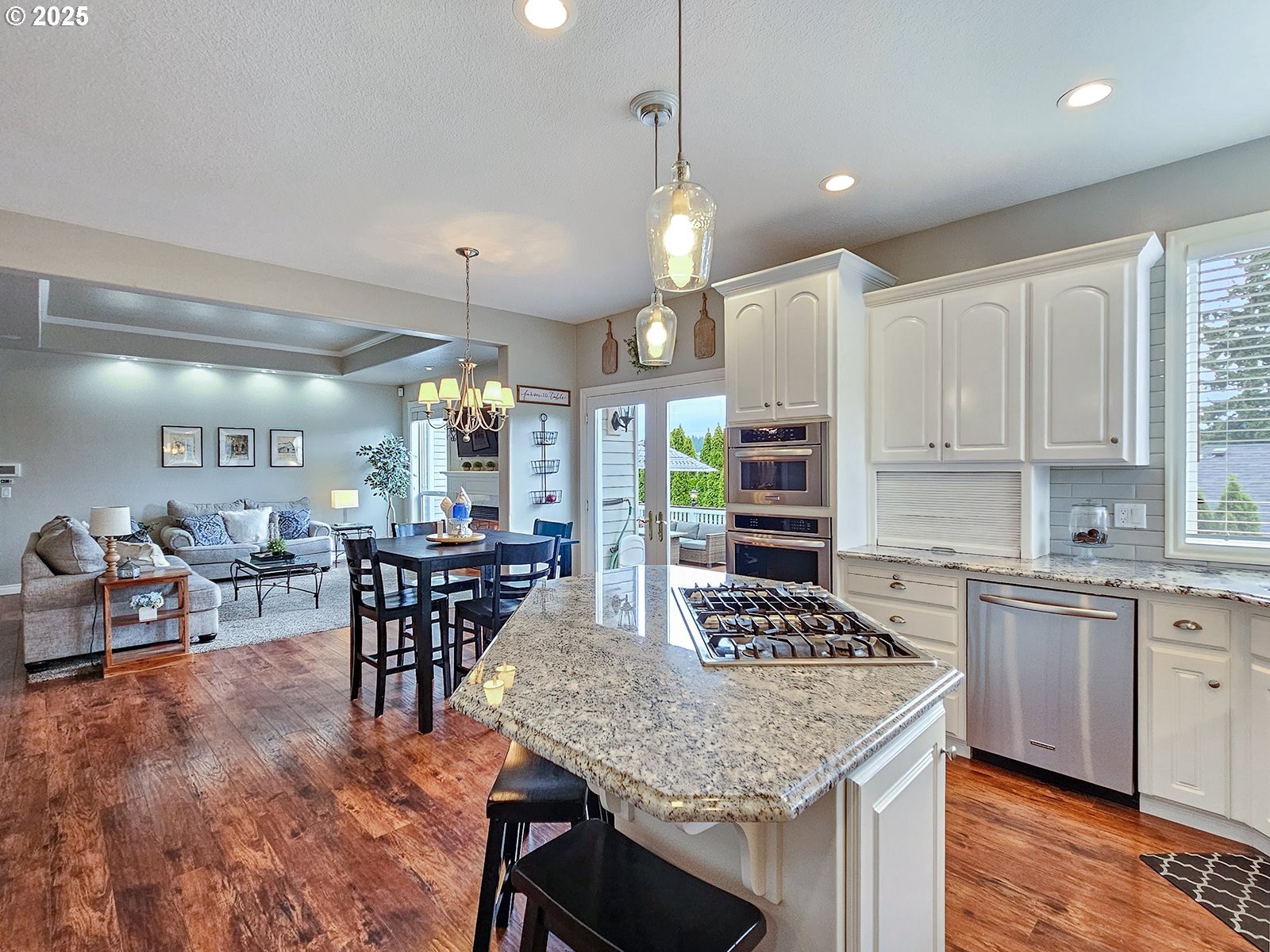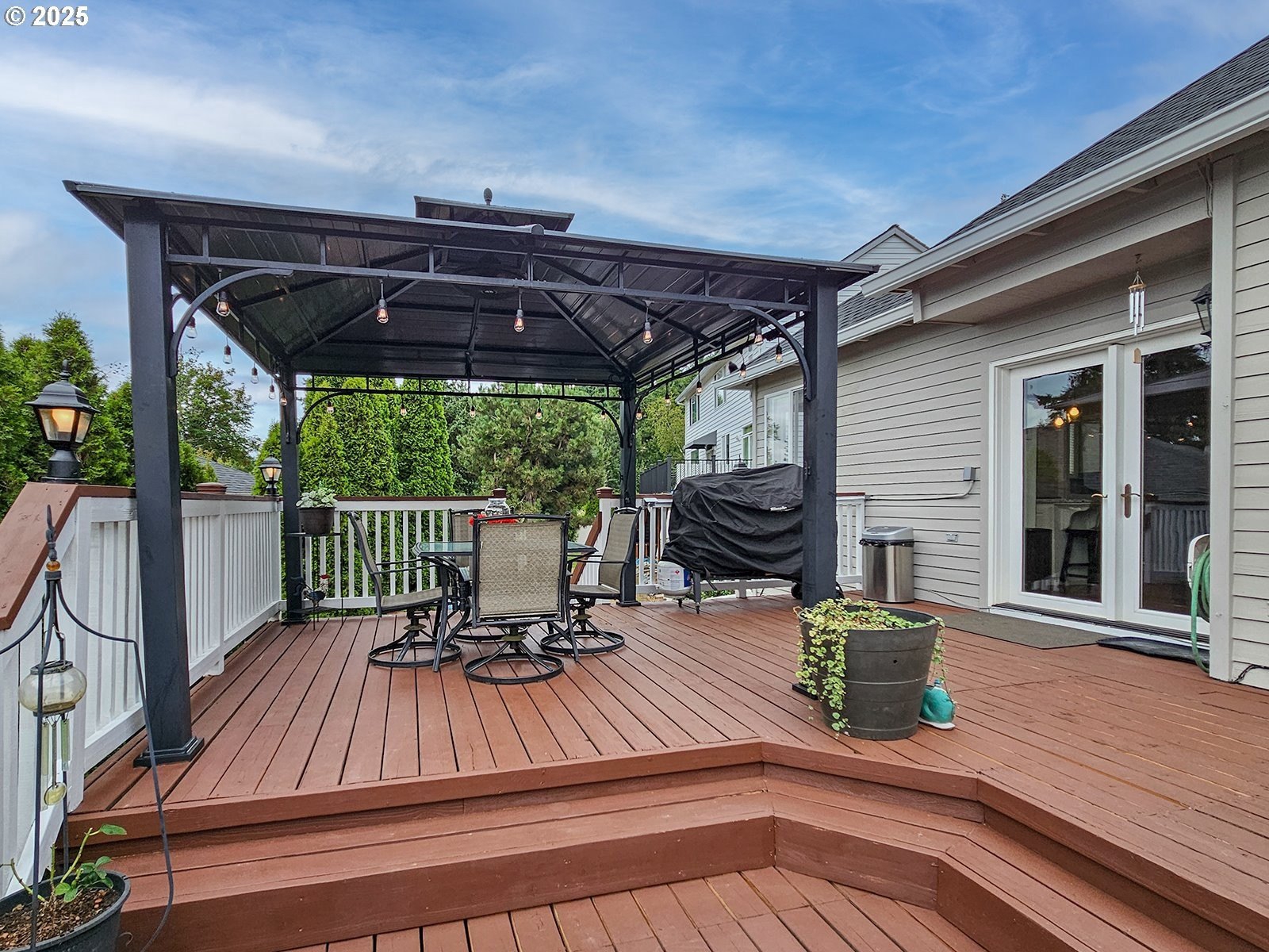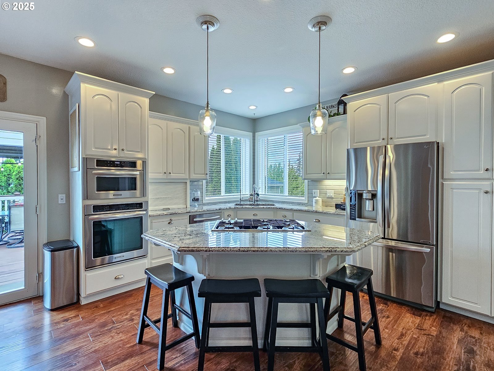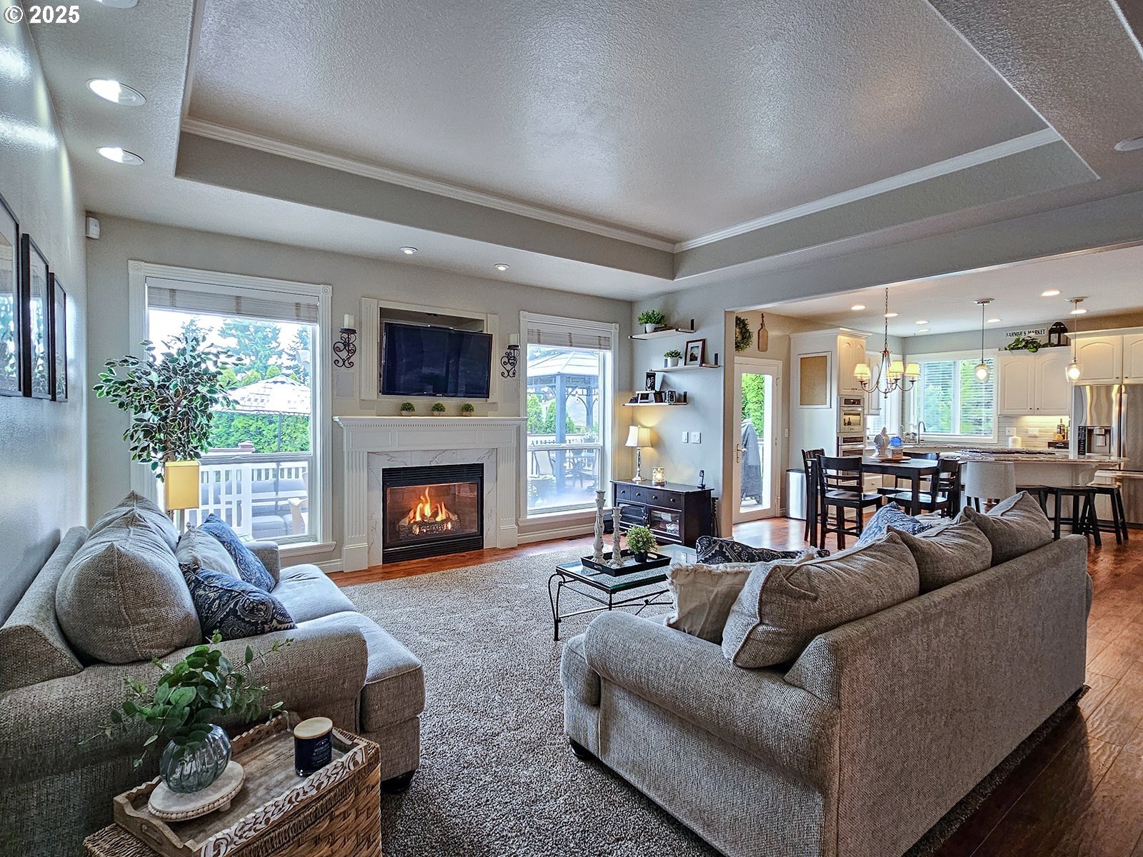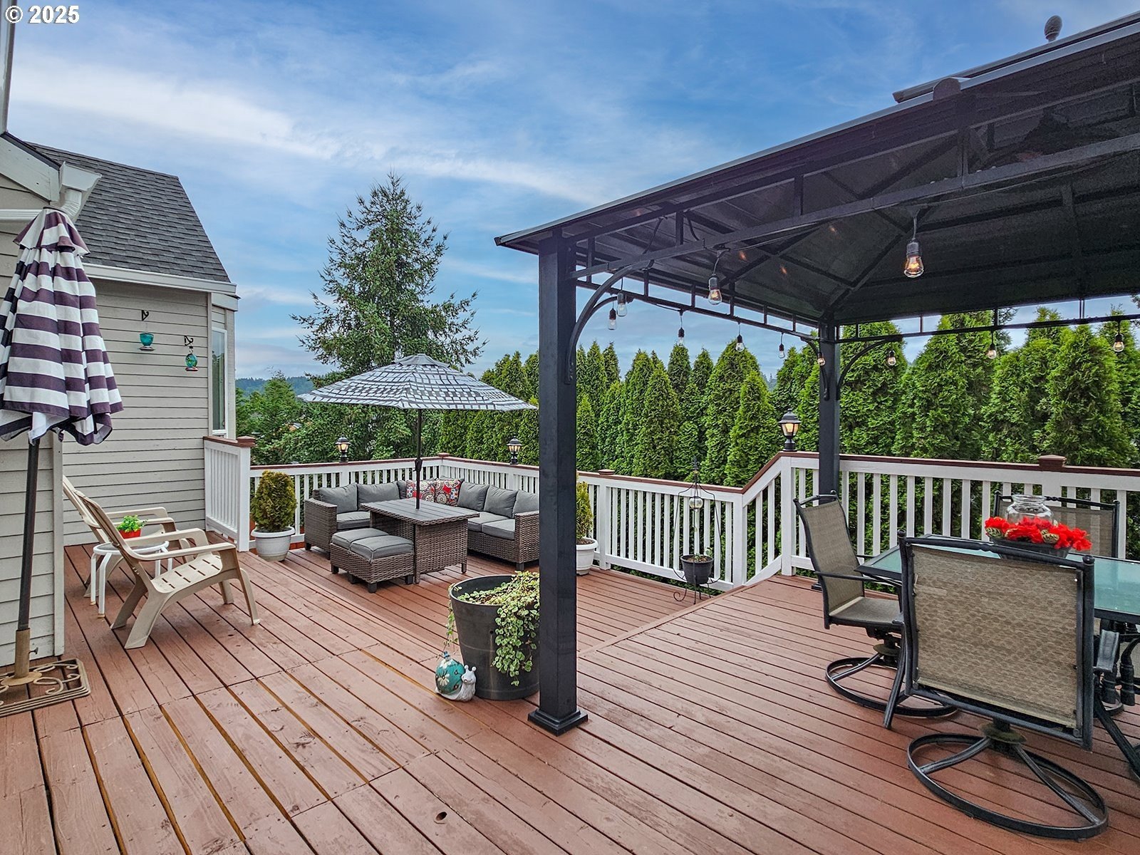 Just Listed! WELCOME HOME! OPEN HOUSE 8/10/25 1-3! Immaculately maintained, 5-bedroom, 3-bathroom home offering over 3,100 sq ft of comfortable and stylish living & large spacious .25 acre lot! Perched on a quiet hilltop in desirable Happy Valley, this spacious home features main-level living with a generous primary suite, walk-in shower, and a free-standing jetted tub—all fully remodeled in 2024. The entry level also includes a versatile 5th bedroom/office, formal living and dining, and a thoughtfully redesigned kitchen with granite counters, granite sink, upgraded lighting, and premium stainless appliances including Insta-Hot. Enjoy the convenience of dual 50-gallon water heaters with recirculating hot water, a main-level laundry room, and Armstrong water-resistant flooring throughout w/cozy carpet in bedrooms. Downstairs you will find a separate retreat-Living room w/updated gas fireplace, 3 bedrooms, full bath, Kitchenette and exterior entrance for Multi-Generational or separate living. Step outside to a park-like setting with beautifully landscaped front and back yards. A peaceful water feature greets you at the entry, while expansive back decks—complete with built-in lighting—offer multiple entertaining spaces incl. a covered gazebo, paver patio, and raised-bed gardens, Tough Shed, & a NEW 50 year roof in 2025! This property offers unmatched warmth, privacy, and pride of ownership in every detail. Don’t miss this exceptional Happy Valley retreat