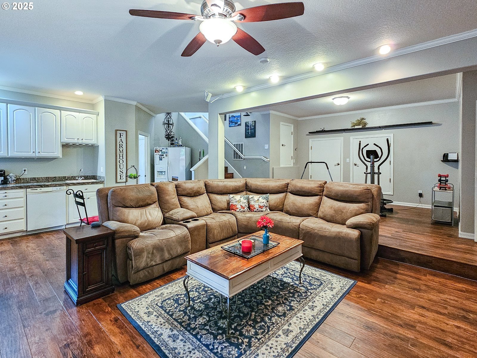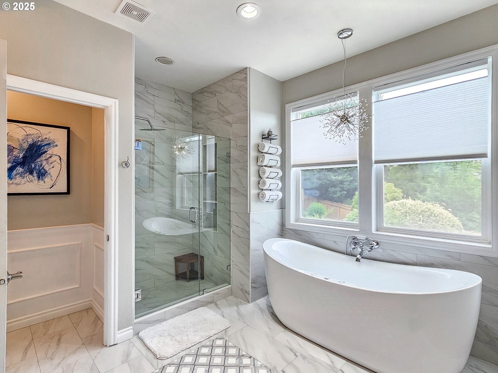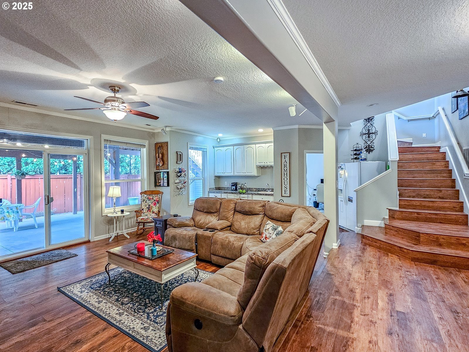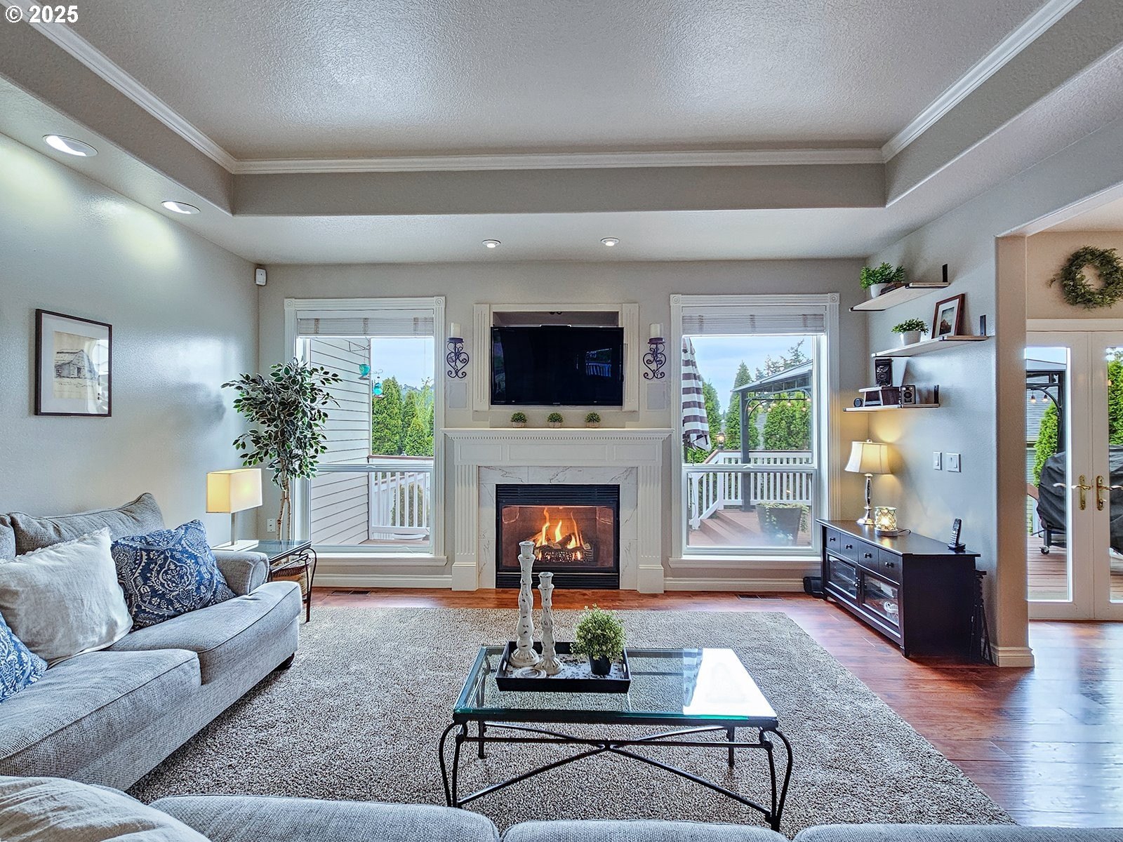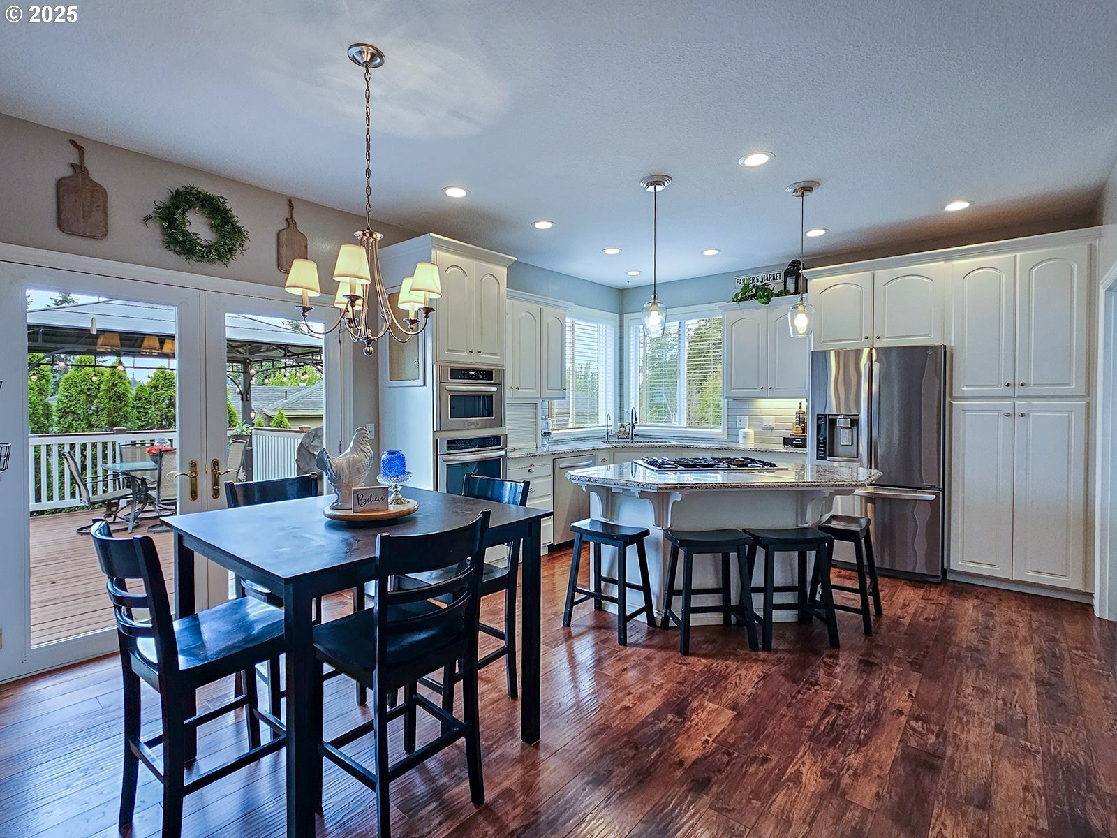 Just Listed! WELCOME HOME! OPEN HOUSE 8/10/25 1-3! Immaculately maintained, 5-bedroom, 3-bathroom home offering over 3,100 sq ft of comfortable and stylish living & large spacious .25 acre lot! Perched on a quiet hilltop in desirable Happy Valley, this spacious home features main-level living with a generous primary suite, walk-in shower, and a free-standing jetted tub—all fully remodeled in 2024. The entry level also includes a versatile 5th bedroom/office, formal living and dining, and a thoughtfully redesigned kitchen with granite counters, granite sink, upgraded lighting, and premium stainless appliances including Insta-Hot. Enjoy the convenience of dual 50-gallon water heaters with recirculating hot water, a main-level laundry room, and Armstrong water-resistant flooring throughout w/cozy carpet in bedrooms. Downstairs you will find a separate retreat-Living room w/updated gas fireplace, 3 bedrooms, full bath, Kitchenette and exterior entrance for Multi-Generational or separate living. Step outside to a park-like setting with beautifully landscaped front and back yards. A peaceful water feature greets you at the entry, while expansive back decks—complete with built-in lighting—offer multiple entertaining spaces incl. a covered gazebo, paver patio, and raised-bed gardens, Tough Shed, & a NEW 50 year roof in 2025! This property offers unmatched warmth, privacy, and pride of ownership in every detail. Don’t miss this exceptional Happy Valley retreat