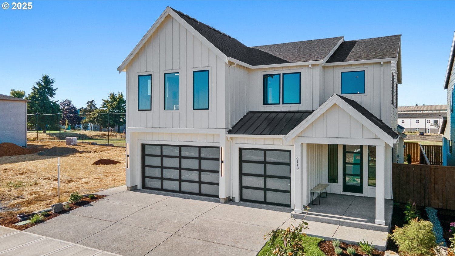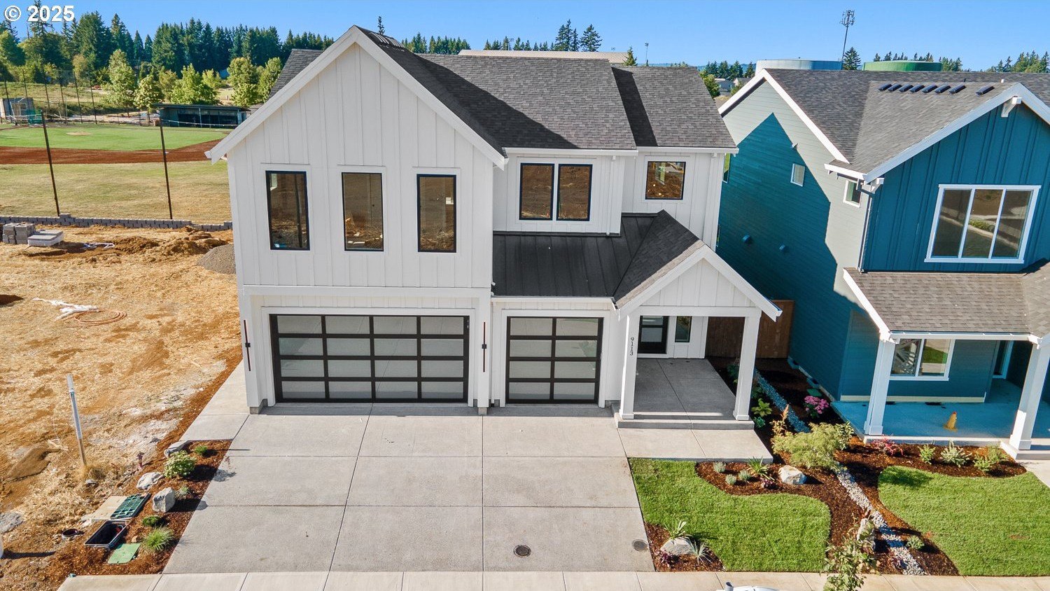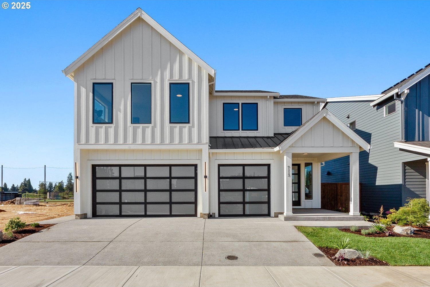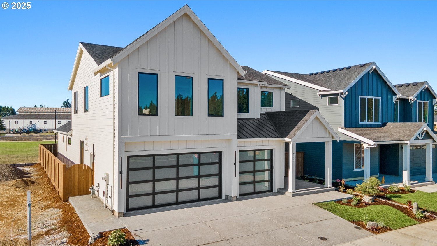 Welcome to the Hemlock, a splendid Modern Farmhouse in the Autumn Sunrise community. With a dramatic two-story entry and stairway that makes a striking first impression, the main-level primary suite is a private retreat. Vaulted ceilings create an airy ambiance, while the spa-inspired ensuite boasts dual vanities, a beautifully tiled walk-in shower, and refined finishes for a truly restorative experience. The main level also features a secondary bedroom and full bath—ideal for guests, multigenerational living, or a home office. The heart of the home features a stunning vaulted great room, anchored by expansive windows and elevated ceiling lines that create a sense of grandeur and openness. Upstairs, three generously sized bedrooms share a well-appointed full bathroom, while a versatile bonus room provides flexible space for a media lounge, playroom, or one's own retreat. Designed for elevated Pacific Northwest living, the home includes a vaulted covered outdoor living area that invites year-round entertaining. Additional highlights include a spacious three-car garage with ample storage. Earth Advantage Certified! Purposefully designed to inspire and impress, this home is a true standout in the Street of Dreams.