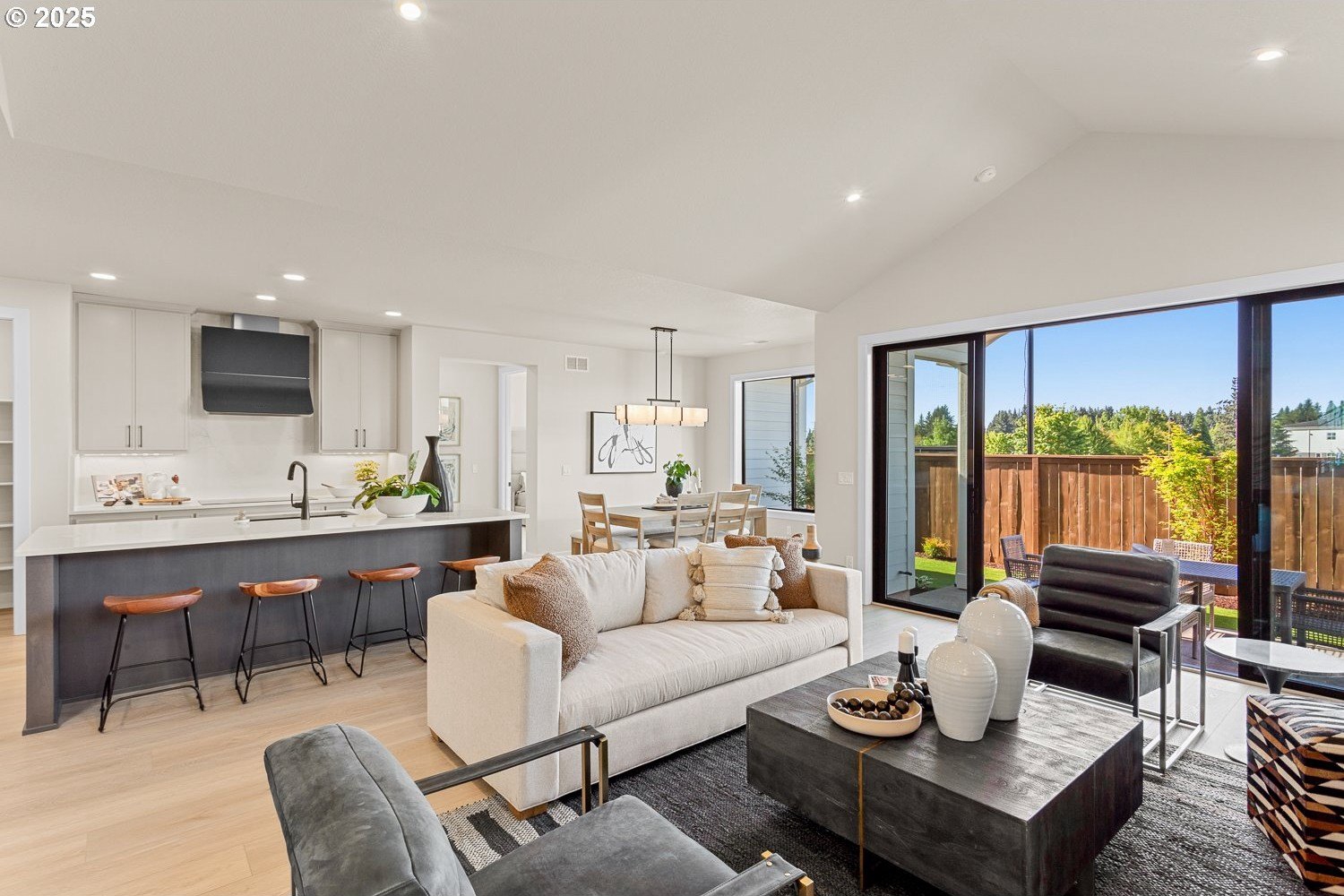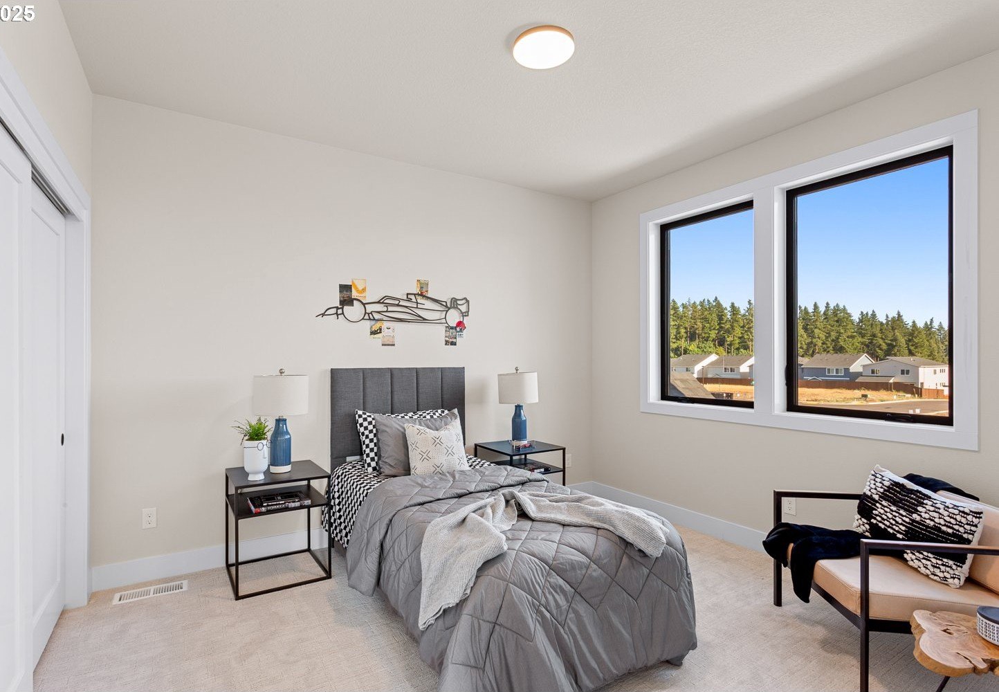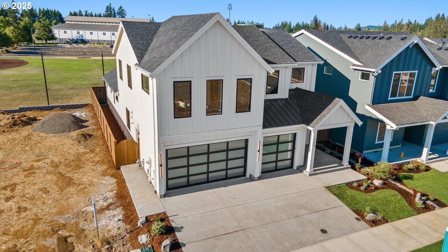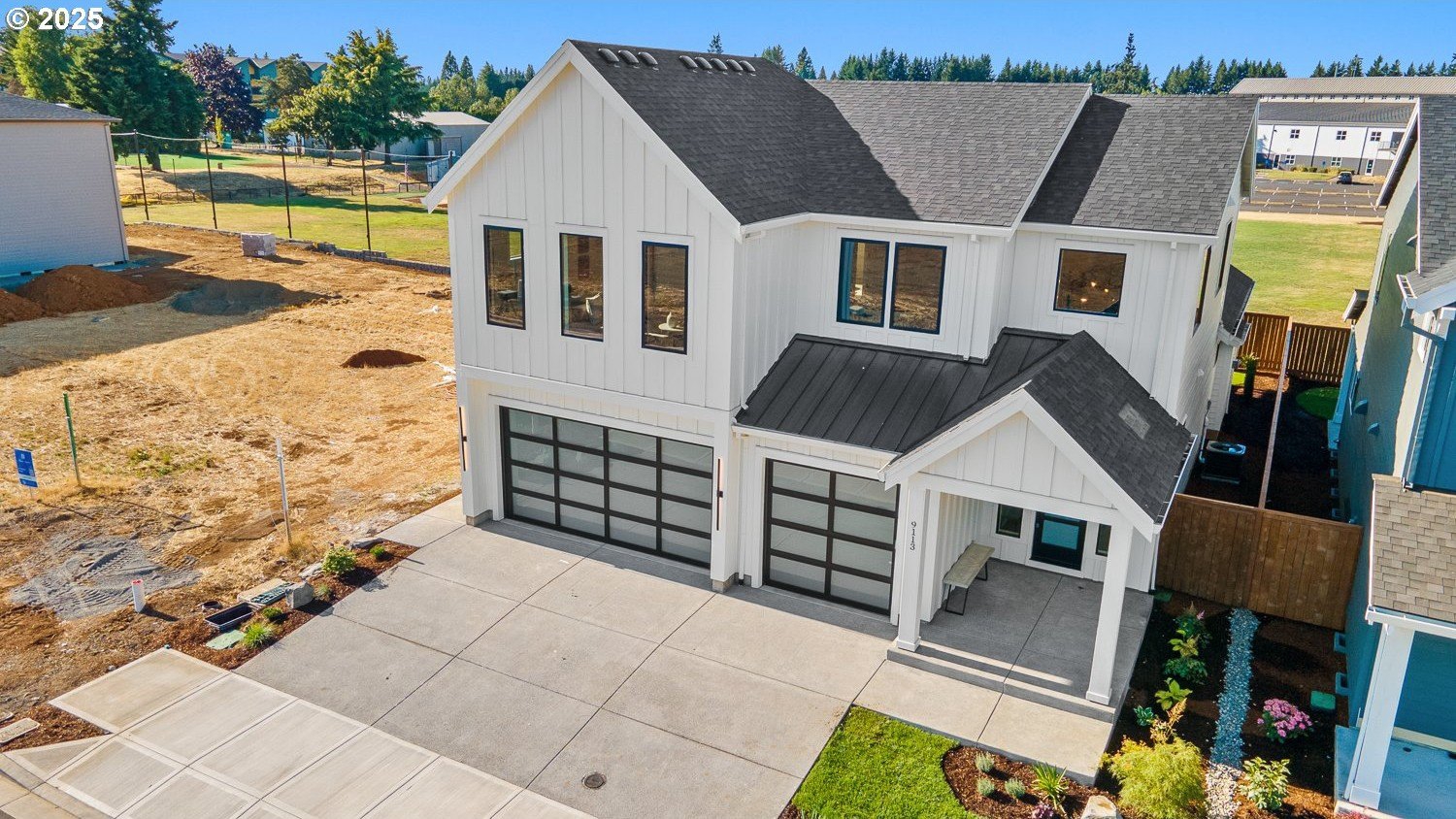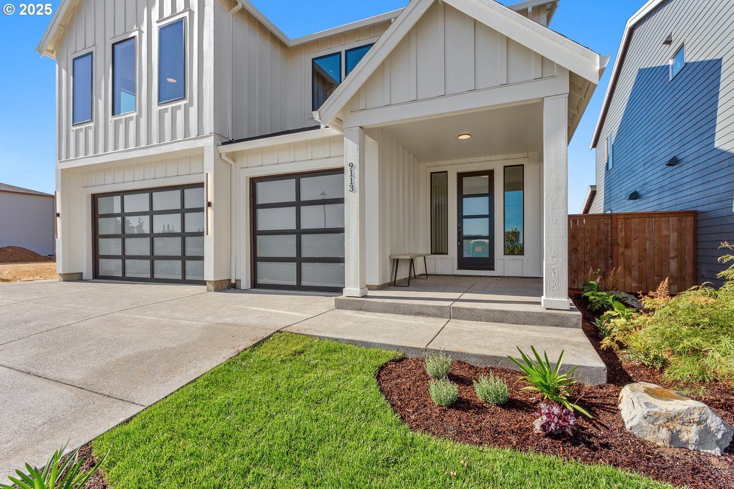 Welcome to the Hemlock, a splendid Modern Farmhouse in the Autumn Sunrise community. With a dramatic two-story entry and stairway that makes a striking first impression, the main-level primary suite is a private retreat. Vaulted ceilings create an airy ambiance, while the spa-inspired ensuite boasts dual vanities, a beautifully tiled walk-in shower, and refined finishes for a truly restorative experience. The main level also features a secondary bedroom and full bath—ideal for guests, multigenerational living, or a home office. The heart of the home features a stunning vaulted great room, anchored by expansive windows and elevated ceiling lines that create a sense of grandeur and openness. Upstairs, three generously sized bedrooms share a well-appointed full bathroom, while a versatile bonus room provides flexible space for a media lounge, playroom, or one's own retreat. Designed for elevated Pacific Northwest living, the home includes a vaulted covered outdoor living area that invites year-round entertaining. Additional highlights include a spacious three-car garage with ample storage. Earth Advantage Certified! Purposefully designed to inspire and impress, this home is a true standout in the Street of Dreams.