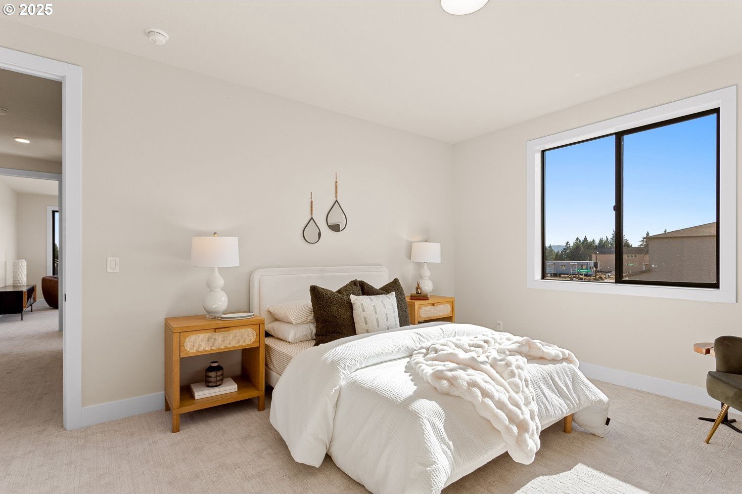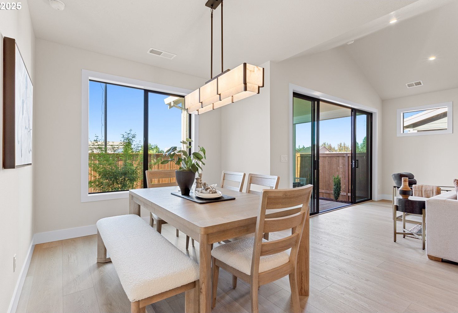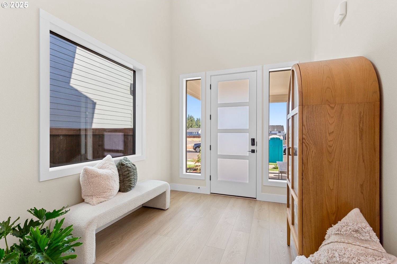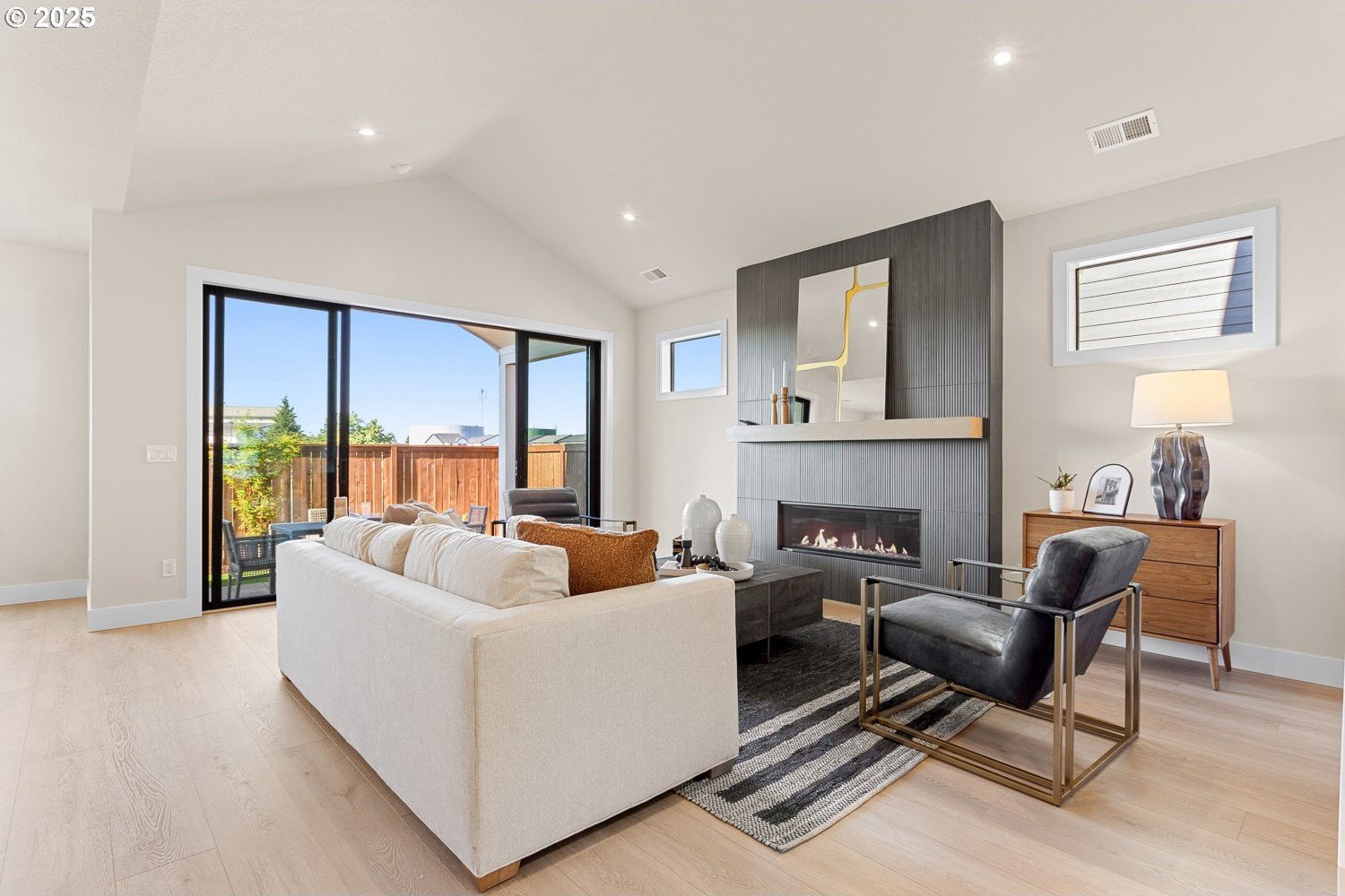 Welcome to the Hemlock, a splendid Modern Farmhouse in the Autumn Sunrise community. With a dramatic two-story entry and stairway that makes a striking first impression, the main-level primary suite is a private retreat. Vaulted ceilings create an airy ambiance, while the spa-inspired ensuite boasts dual vanities, a beautifully tiled walk-in shower, and refined finishes for a truly restorative experience. The main level also features a secondary bedroom and full bath—ideal for guests, multigenerational living, or a home office. The heart of the home features a stunning vaulted great room, anchored by expansive windows and elevated ceiling lines that create a sense of grandeur and openness. Upstairs, three generously sized bedrooms share a well-appointed full bathroom, while a versatile bonus room provides flexible space for a media lounge, playroom, or one's own retreat. Designed for elevated Pacific Northwest living, the home includes a vaulted covered outdoor living area that invites year-round entertaining. Additional highlights include a spacious three-car garage with ample storage. Earth Advantage Certified! Purposefully designed to inspire and impress, this home is a true standout in the Street of Dreams.