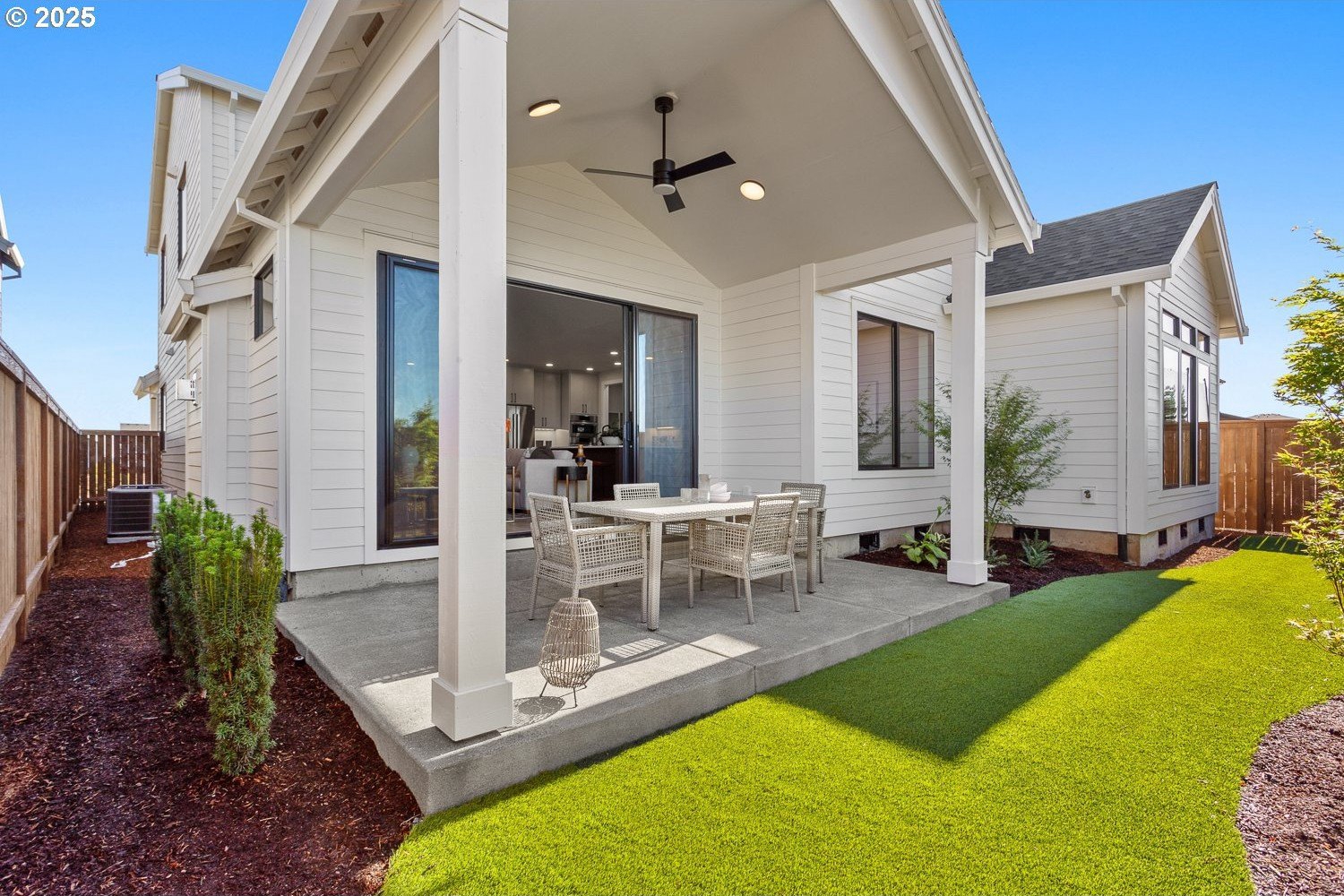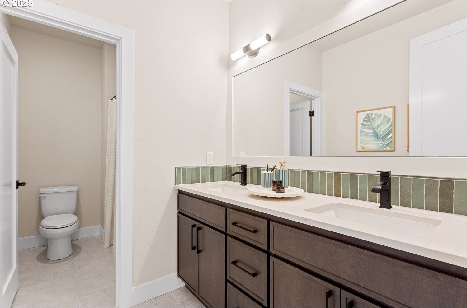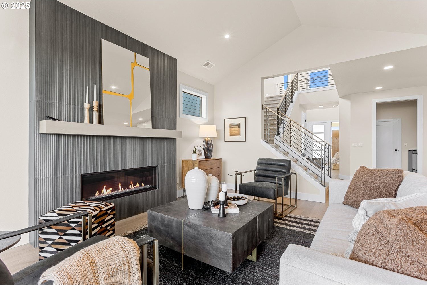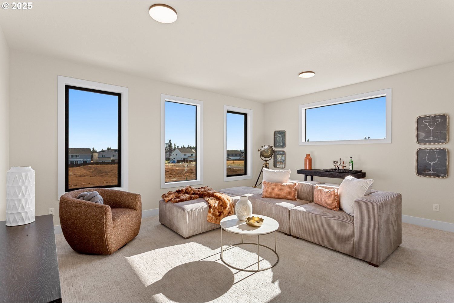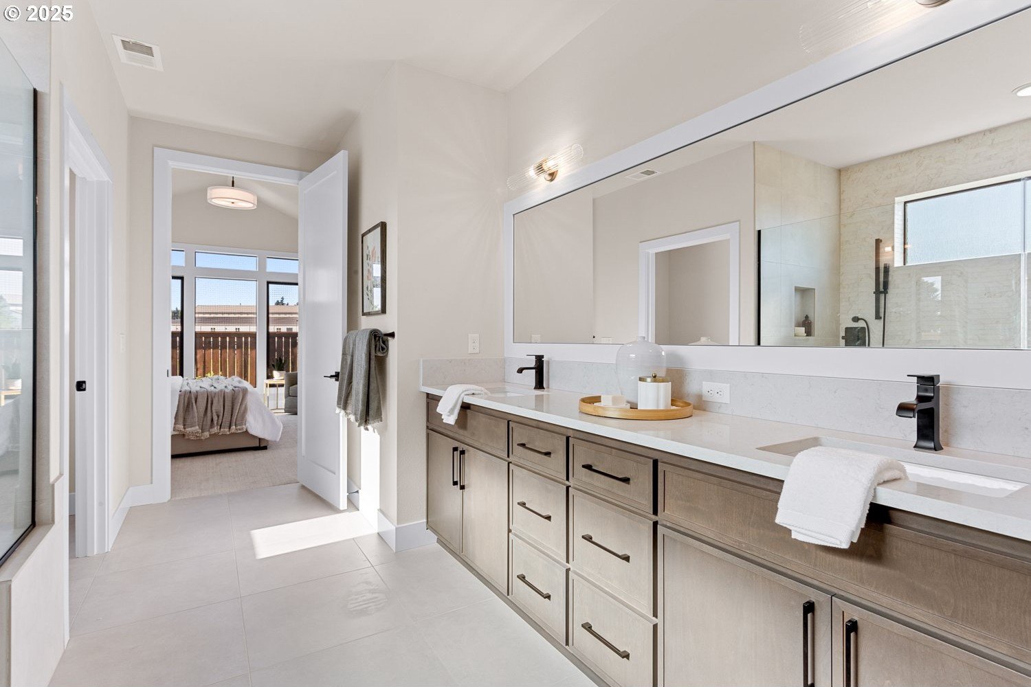 Welcome to the Hemlock, a splendid Modern Farmhouse in the Autumn Sunrise community. With a dramatic two-story entry and stairway that makes a striking first impression, the main-level primary suite is a private retreat. Vaulted ceilings create an airy ambiance, while the spa-inspired ensuite boasts dual vanities, a beautifully tiled walk-in shower, and refined finishes for a truly restorative experience. The main level also features a secondary bedroom and full bath—ideal for guests, multigenerational living, or a home office. The heart of the home features a stunning vaulted great room, anchored by expansive windows and elevated ceiling lines that create a sense of grandeur and openness. Upstairs, three generously sized bedrooms share a well-appointed full bathroom, while a versatile bonus room provides flexible space for a media lounge, playroom, or one's own retreat. Designed for elevated Pacific Northwest living, the home includes a vaulted covered outdoor living area that invites year-round entertaining. Additional highlights include a spacious three-car garage with ample storage. Earth Advantage Certified! Purposefully designed to inspire and impress, this home is a true standout in the Street of Dreams.