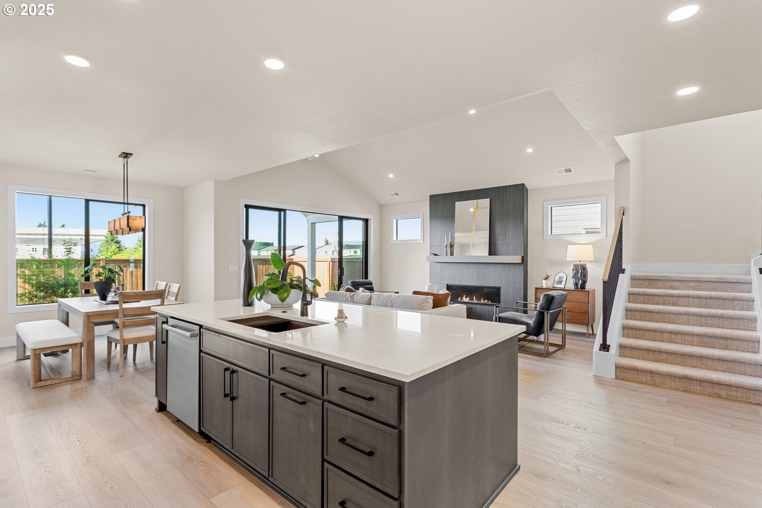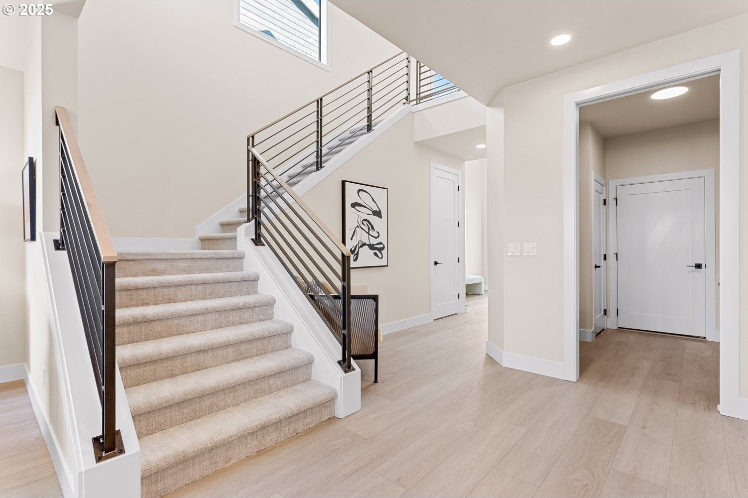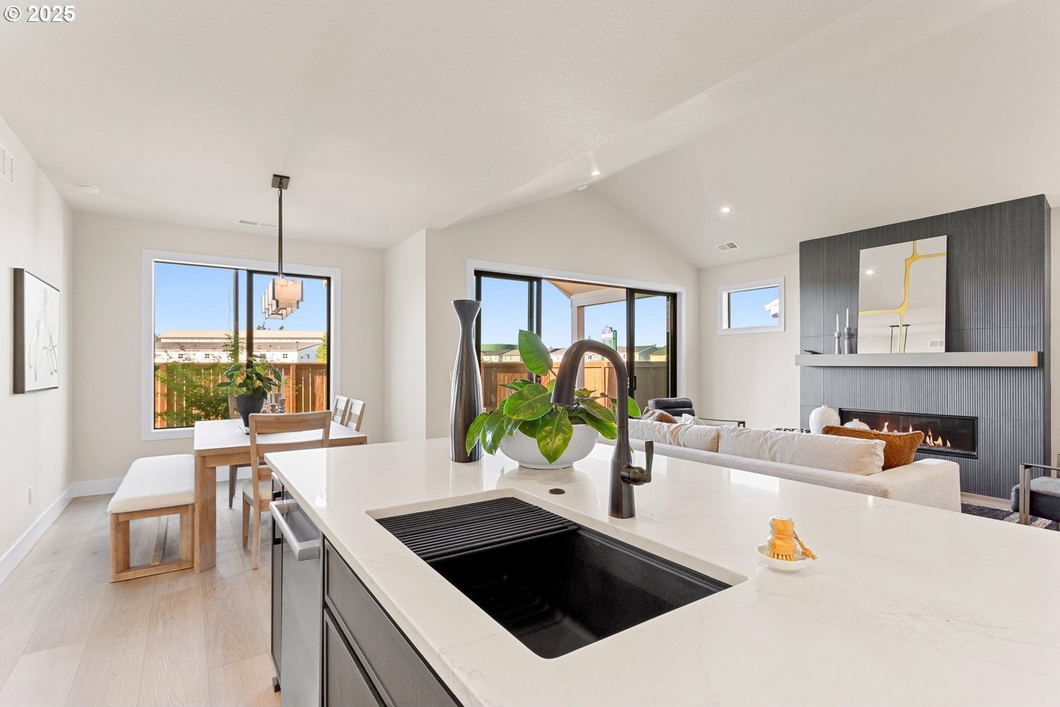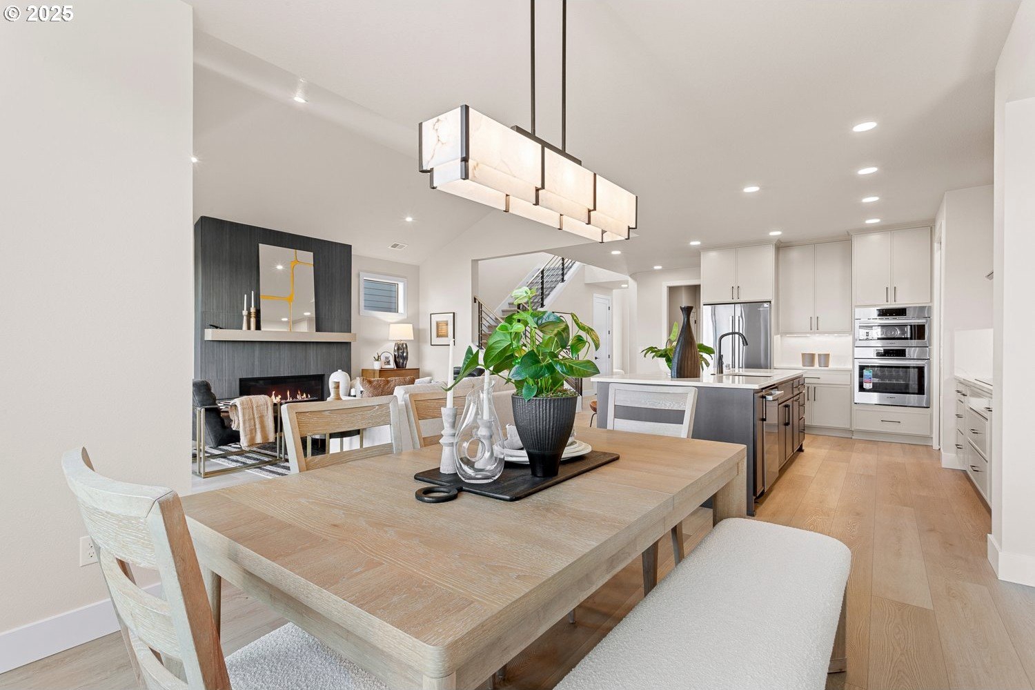Welcome to the Hemlock, a splendid Modern Farmhouse in the Autumn Sunrise community. With a dramatic two-story entry and stairway that makes a striking first impression, the main-level primary suite is a private retreat. Vaulted ceilings create an airy ambiance, while the spa-inspired ensuite boasts dual vanities, a beautifully tiled walk-in shower, and refined finishes for a truly restorative experience. The main level also features a secondary bedroom and full bath—ideal for guests, multigenerational living, or a home office. The heart of the home features a stunning vaulted great room, anchored by expansive windows and elevated ceiling lines that create a sense of grandeur and openness. Upstairs, three generously sized bedrooms share a well-appointed full bathroom, while a versatile bonus room provides flexible space for a media lounge, playroom, or one's own retreat. Designed for elevated Pacific Northwest living, the home includes a vaulted covered outdoor living area that invites year-round entertaining. Additional highlights include a spacious three-car garage with ample storage. Earth Advantage Certified! Purposefully designed to inspire and impress, this home is a true standout in the Street of Dreams.