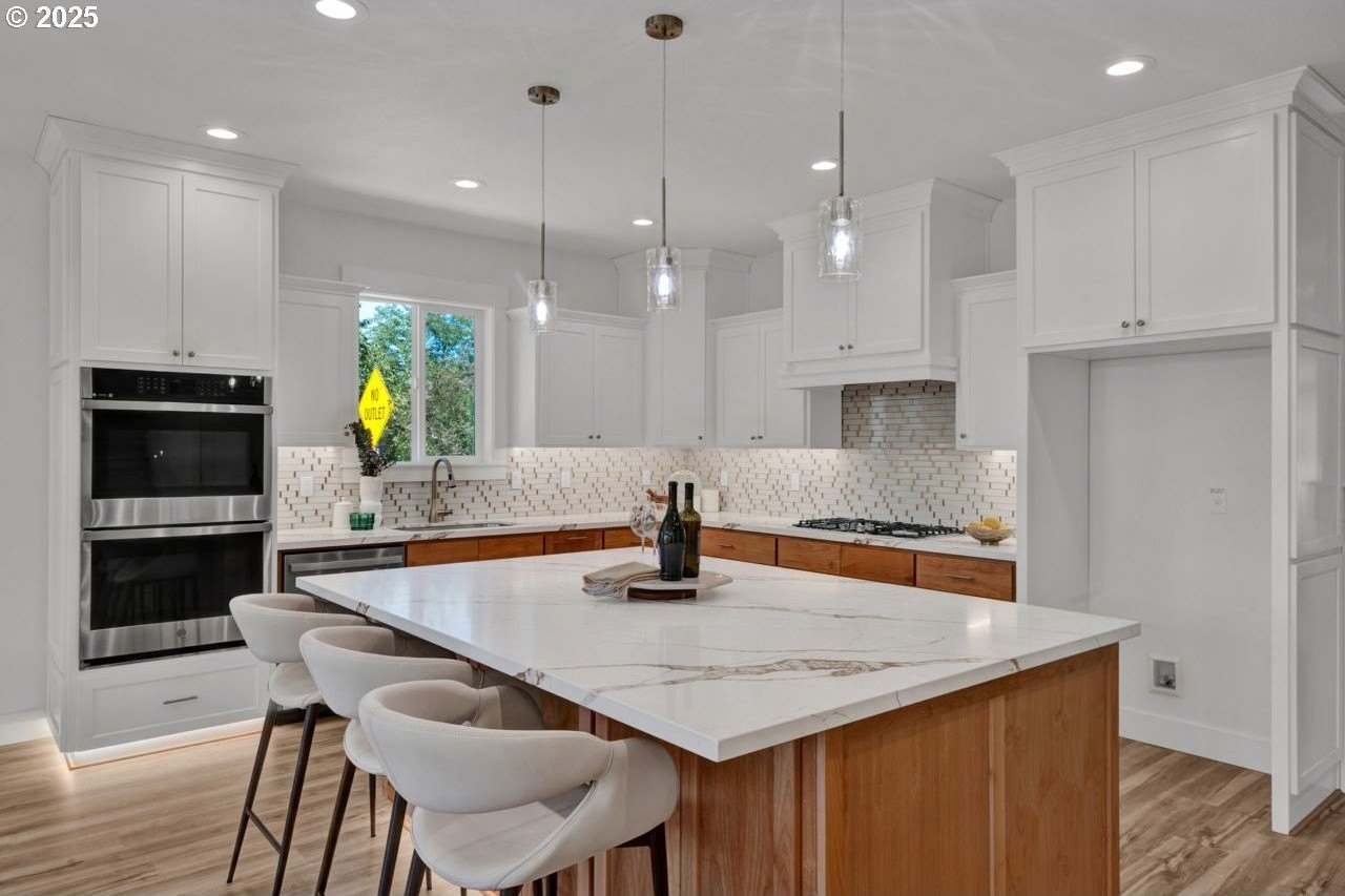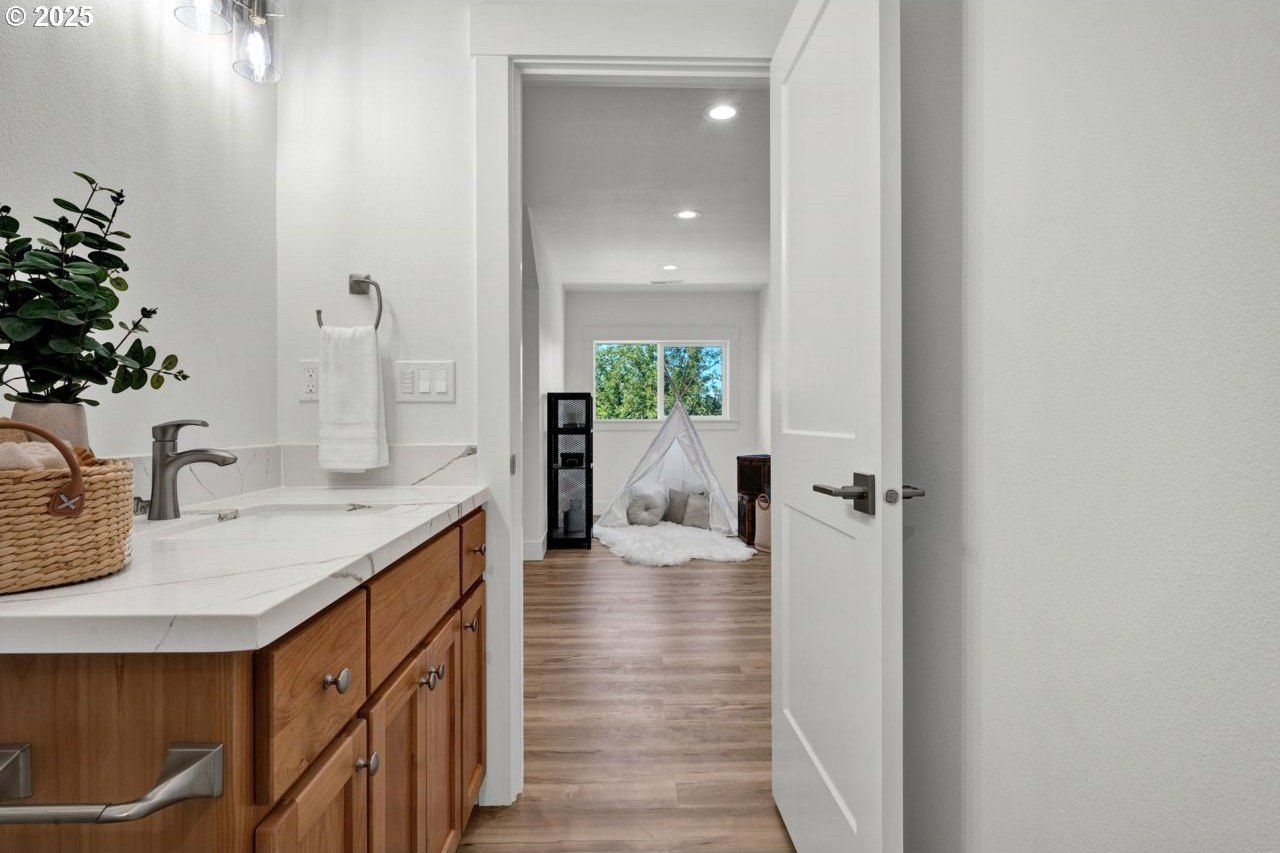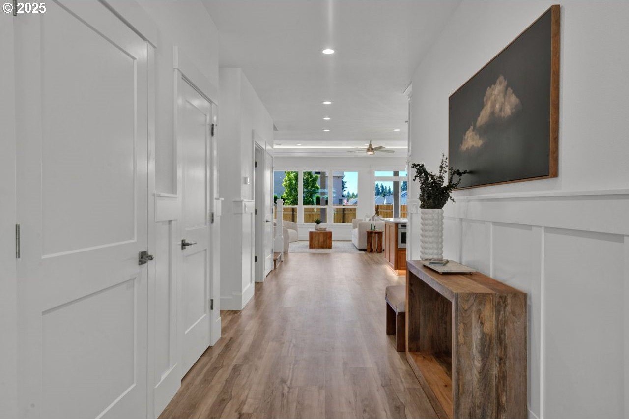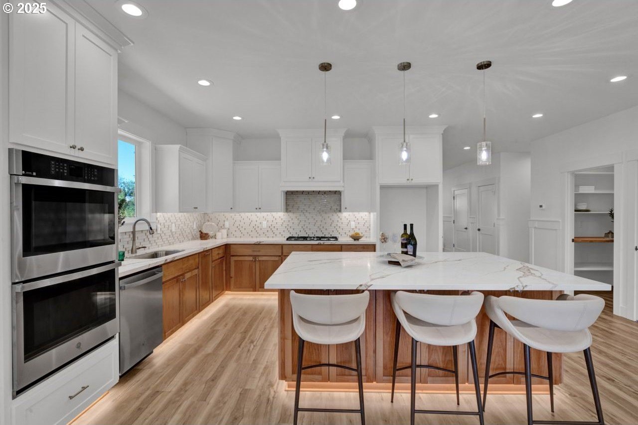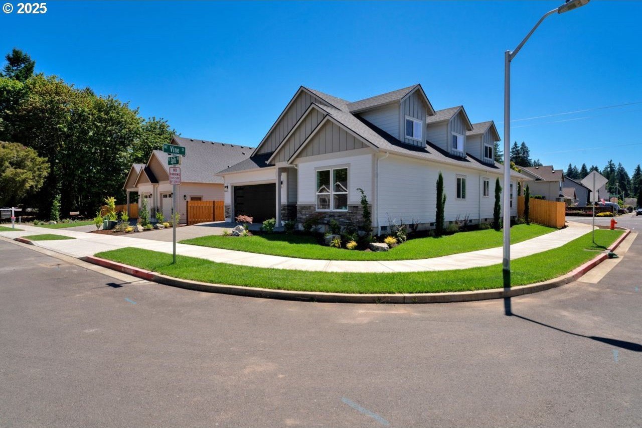 The most elegant home you'll find avalable on the market in and around the Canby area. Perfectly placed on the edge of North Canby with a walking trail along the Willamette River. The craftsmanship in this home is impeccable; everything was handpicked and executed with great taste. You’ll be blown away at this 2,994sqft 4-bedroom, 3-bathroom brand new home. Cook’s dream kitchen with custom cabinets with under-cabinet lighting, amazing quartz countertops, tile backsplash, large island, built-in pantry, and stainless-steel appliances that include a gas cooktop, double oven, dishwasher and built-in hidden microwave. Wainscotin in the entry, main floor living with primary bedroom and 2 bedrooms. A Bonus/family room, and 4th bedroom upstairs, with beautiful custom handrailing. LVP flooring throughout the home. The large master suite boasts a lit recessed ceiling, light/fan, with plenty of natural light. The exquisite tile work bathroom features a relaxing custom tile steam-room/shower and a soaker tub, as well as a custom lit mirror. Handcrafted closet organizers throughout the home. The 20'deep garage has 2 8'tall doors for your lifted full size pickup. A fully landscaped yard is also fully fenced for privacy and has a covered back patio and front sitting area. Nice being on the edge of town, just minutes away from Oregon City, I-205, and not far from I-5. Canby is a very desirable place to live, with a great community and excellent schools. This house is like no other you’ll find in Canby, except for the one right next door. Built by R-Homes LLC, both homes are uniquely different but crafted in the same manner. So many extra features on both homes. So, bring a friend or family member and purchase both, so you can be neighbors.