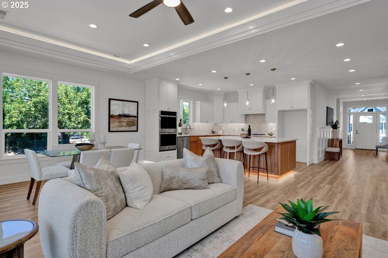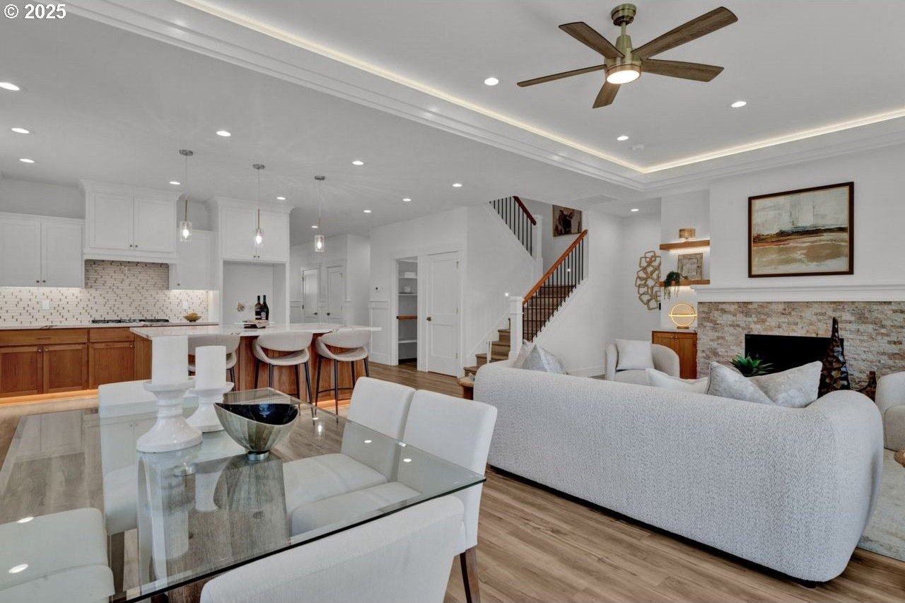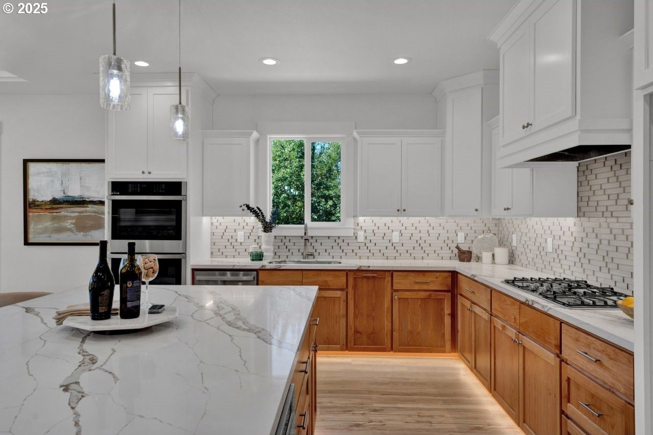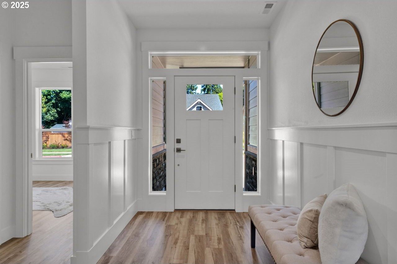 The most elegant home you'll find avalable on the market in and around the Canby area. Perfectly placed on the edge of North Canby with a walking trail along the Willamette River. The craftsmanship in this home is impeccable; everything was handpicked and executed with great taste. You’ll be blown away at this 2,994sqft 4-bedroom, 3-bathroom brand new home. Cook’s dream kitchen with custom cabinets with under-cabinet lighting, amazing quartz countertops, tile backsplash, large island, built-in pantry, and stainless-steel appliances that include a gas cooktop, double oven, dishwasher and built-in hidden microwave. Wainscotin in the entry, main floor living with primary bedroom and 2 bedrooms. A Bonus/family room, and 4th bedroom upstairs, with beautiful custom handrailing. LVP flooring throughout the home. The large master suite boasts a lit recessed ceiling, light/fan, with plenty of natural light. The exquisite tile work bathroom features a relaxing custom tile steam-room/shower and a soaker tub, as well as a custom lit mirror. Handcrafted closet organizers throughout the home. The 20'deep garage has 2 8'tall doors for your lifted full size pickup. A fully landscaped yard is also fully fenced for privacy and has a covered back patio and front sitting area. Nice being on the edge of town, just minutes away from Oregon City, I-205, and not far from I-5. Canby is a very desirable place to live, with a great community and excellent schools. This house is like no other you’ll find in Canby, except for the one right next door. Built by R-Homes LLC, both homes are uniquely different but crafted in the same manner. So many extra features on both homes. So, bring a friend or family member and purchase both, so you can be neighbors.