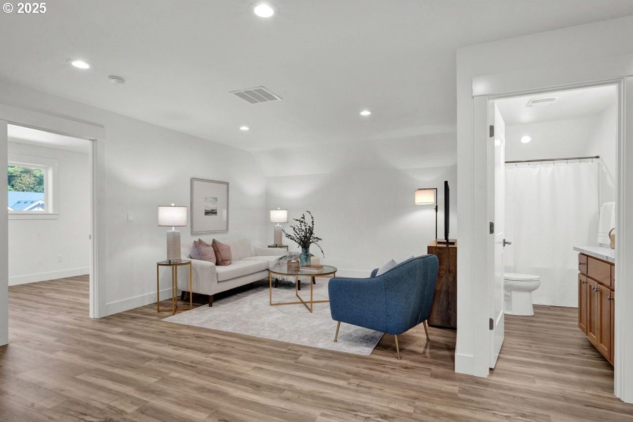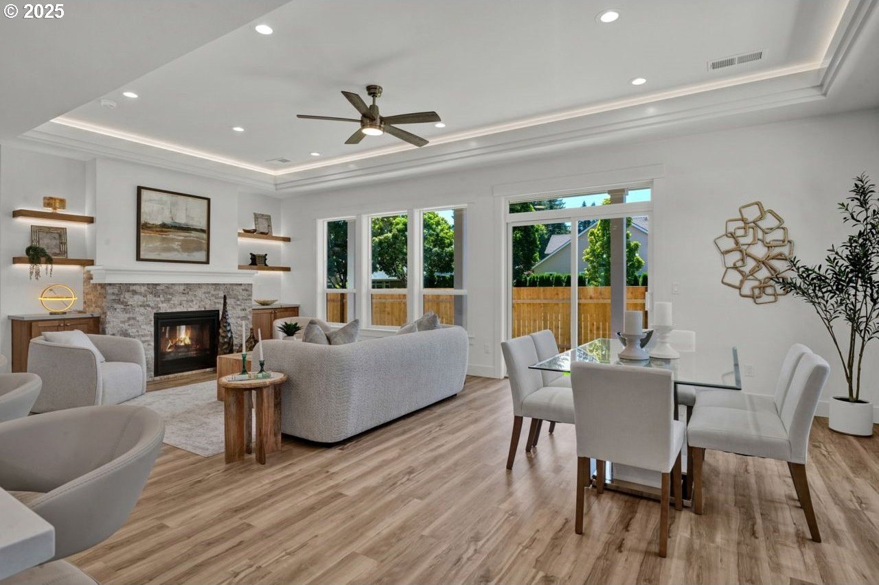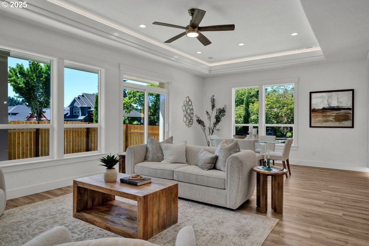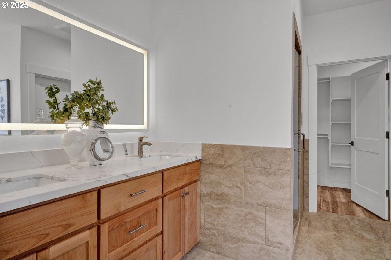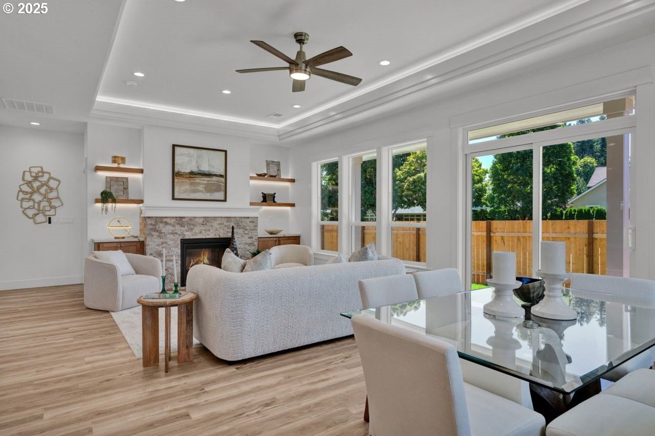 The most elegant home you'll find avalable on the market in and around the Canby area. Perfectly placed on the edge of North Canby with a walking trail along the Willamette River. The craftsmanship in this home is impeccable; everything was handpicked and executed with great taste. You’ll be blown away at this 2,994sqft 4-bedroom, 3-bathroom brand new home. Cook’s dream kitchen with custom cabinets with under-cabinet lighting, amazing quartz countertops, tile backsplash, large island, built-in pantry, and stainless-steel appliances that include a gas cooktop, double oven, dishwasher and built-in hidden microwave. Wainscotin in the entry, main floor living with primary bedroom and 2 bedrooms. A Bonus/family room, and 4th bedroom upstairs, with beautiful custom handrailing. LVP flooring throughout the home. The large master suite boasts a lit recessed ceiling, light/fan, with plenty of natural light. The exquisite tile work bathroom features a relaxing custom tile steam-room/shower and a soaker tub, as well as a custom lit mirror. Handcrafted closet organizers throughout the home. The 20'deep garage has 2 8'tall doors for your lifted full size pickup. A fully landscaped yard is also fully fenced for privacy and has a covered back patio and front sitting area. Nice being on the edge of town, just minutes away from Oregon City, I-205, and not far from I-5. Canby is a very desirable place to live, with a great community and excellent schools. This house is like no other you’ll find in Canby, except for the one right next door. Built by R-Homes LLC, both homes are uniquely different but crafted in the same manner. So many extra features on both homes. So, bring a friend or family member and purchase both, so you can be neighbors.