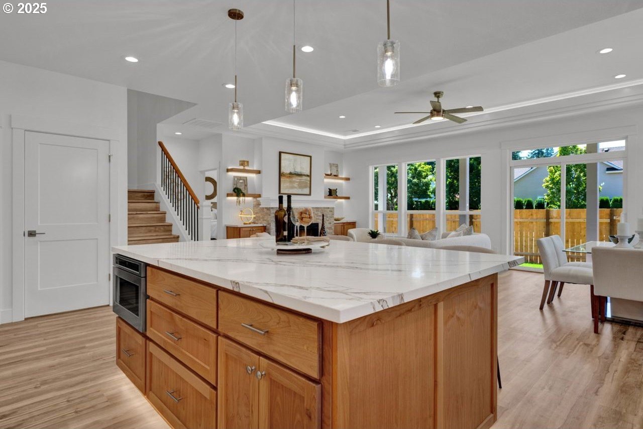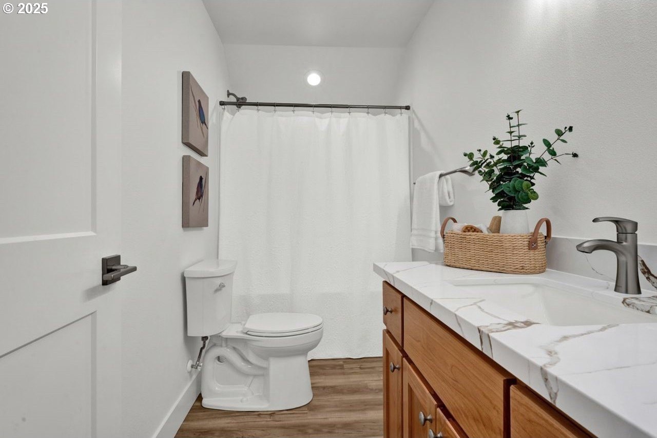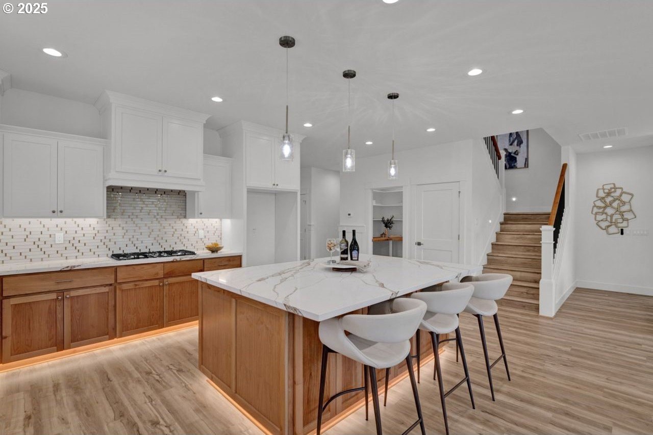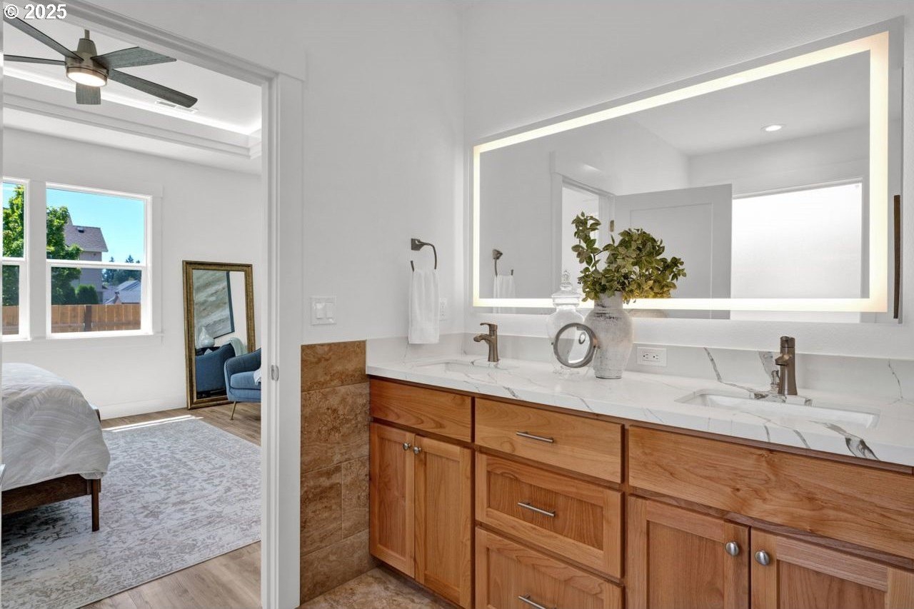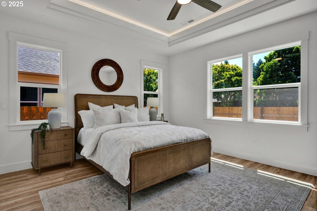 The most elegant home you'll find avalable on the market in and around the Canby area. Perfectly placed on the edge of North Canby with a walking trail along the Willamette River. The craftsmanship in this home is impeccable; everything was handpicked and executed with great taste. You’ll be blown away at this 2,994sqft 4-bedroom, 3-bathroom brand new home. Cook’s dream kitchen with custom cabinets with under-cabinet lighting, amazing quartz countertops, tile backsplash, large island, built-in pantry, and stainless-steel appliances that include a gas cooktop, double oven, dishwasher and built-in hidden microwave. Wainscotin in the entry, main floor living with primary bedroom and 2 bedrooms. A Bonus/family room, and 4th bedroom upstairs, with beautiful custom handrailing. LVP flooring throughout the home. The large master suite boasts a lit recessed ceiling, light/fan, with plenty of natural light. The exquisite tile work bathroom features a relaxing custom tile steam-room/shower and a soaker tub, as well as a custom lit mirror. Handcrafted closet organizers throughout the home. The 20'deep garage has 2 8'tall doors for your lifted full size pickup. A fully landscaped yard is also fully fenced for privacy and has a covered back patio and front sitting area. Nice being on the edge of town, just minutes away from Oregon City, I-205, and not far from I-5. Canby is a very desirable place to live, with a great community and excellent schools. This house is like no other you’ll find in Canby, except for the one right next door. Built by R-Homes LLC, both homes are uniquely different but crafted in the same manner. So many extra features on both homes. So, bring a friend or family member and purchase both, so you can be neighbors.