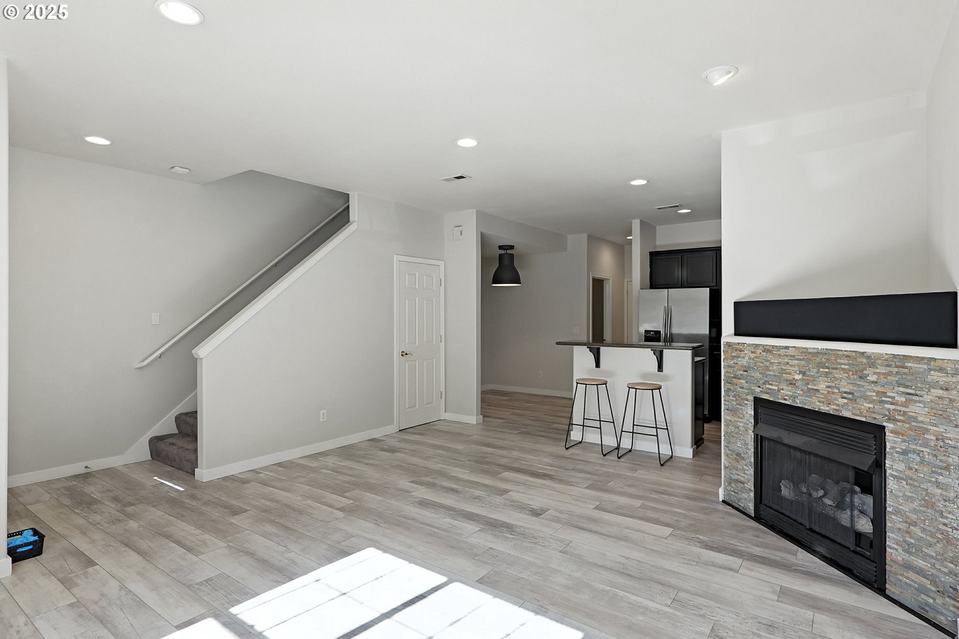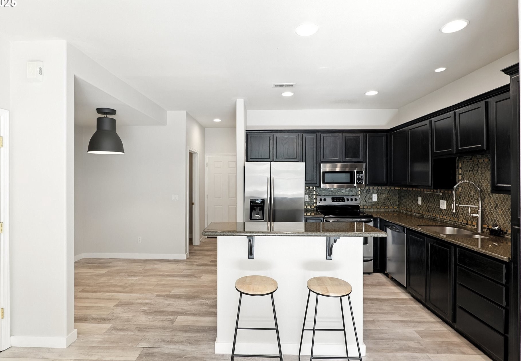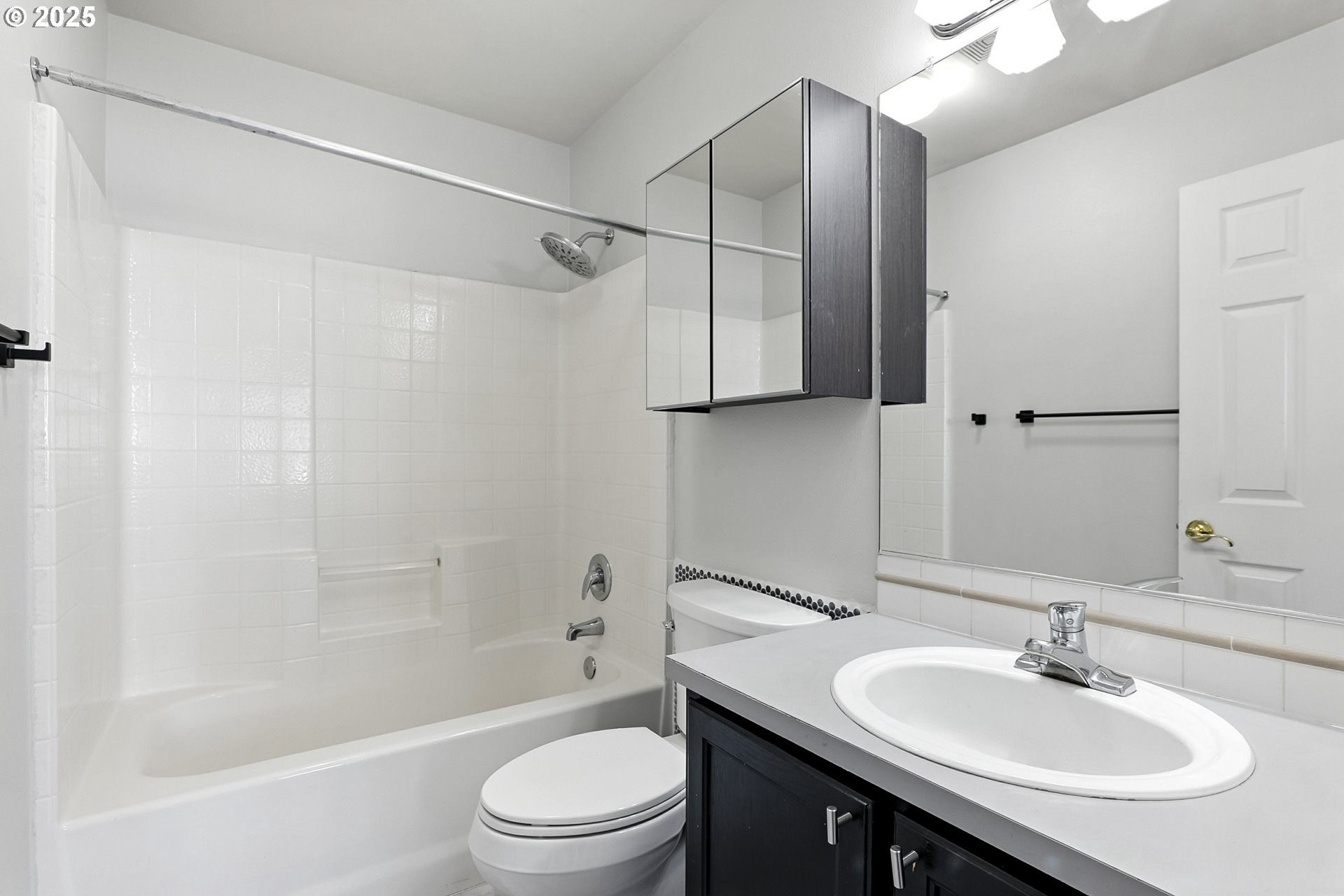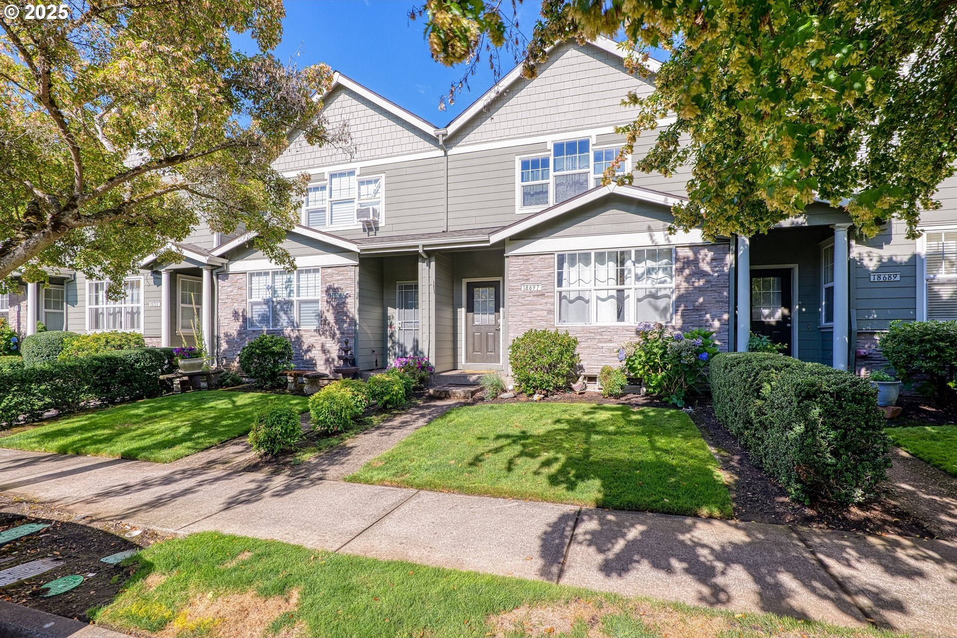This beautifully maintained, air-conditioned 2-bedroom, 2.5-bath townhome offers 1,216 square feet of light-filled living space, thoughtfully designed for comfort and convenience.Both bedrooms are spacious en-suites with vaulted ceilings—perfect for guests, roommates, or a private home office. Recent updates include fresh interior paint, while soaring ceilings and skylights enhance the open, airy feel.Enjoy low-maintenance living with an HOA that covers exterior maintenance, front yard landscaping, and common areas. The kitchen features an island with bar seating and flows seamlessly into the dining and living areas, ideal for entertaining. A cozy gas fireplace adds warmth and charm, and the convenient laundry area is just off the kitchen. The attached two-car garage offers secure parking and extra storage.Nestled in a peaceful, tree-lined neighborhood adjacent to protected wetlands, Liberty Oaks is a walkable and bikeable community with easy access to Hwy 99, I-5, and I-205. You're just minutes from grocery stores, restaurants, the public library, Tualatin Commons, and major shopping centers. Walk to the WES commuter station for a convenient ride between Wilsonville and Beaverton, or explore nearby parks like Cook Park and Tualatin Community Park.