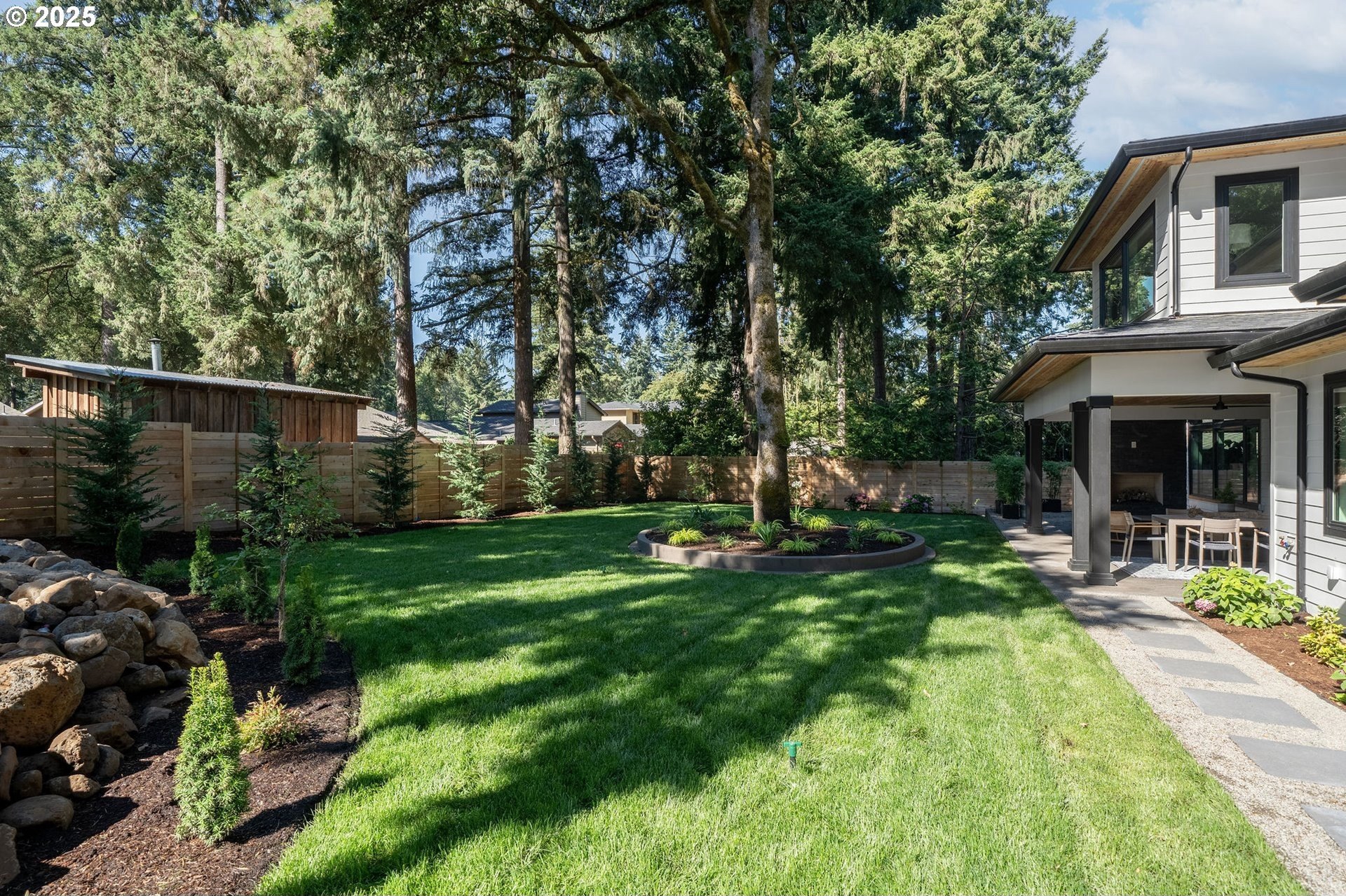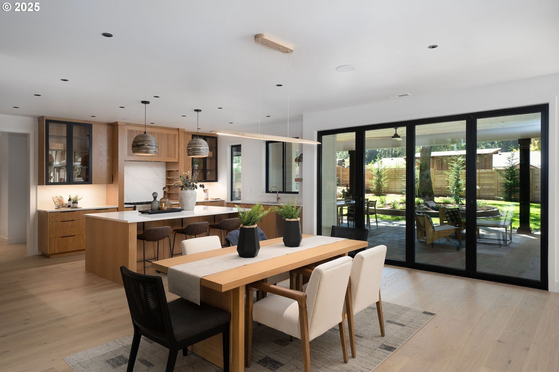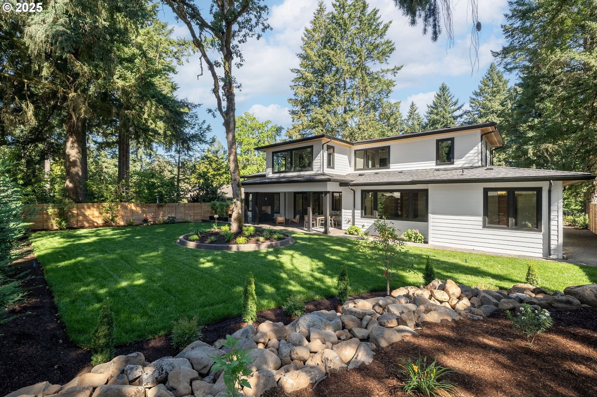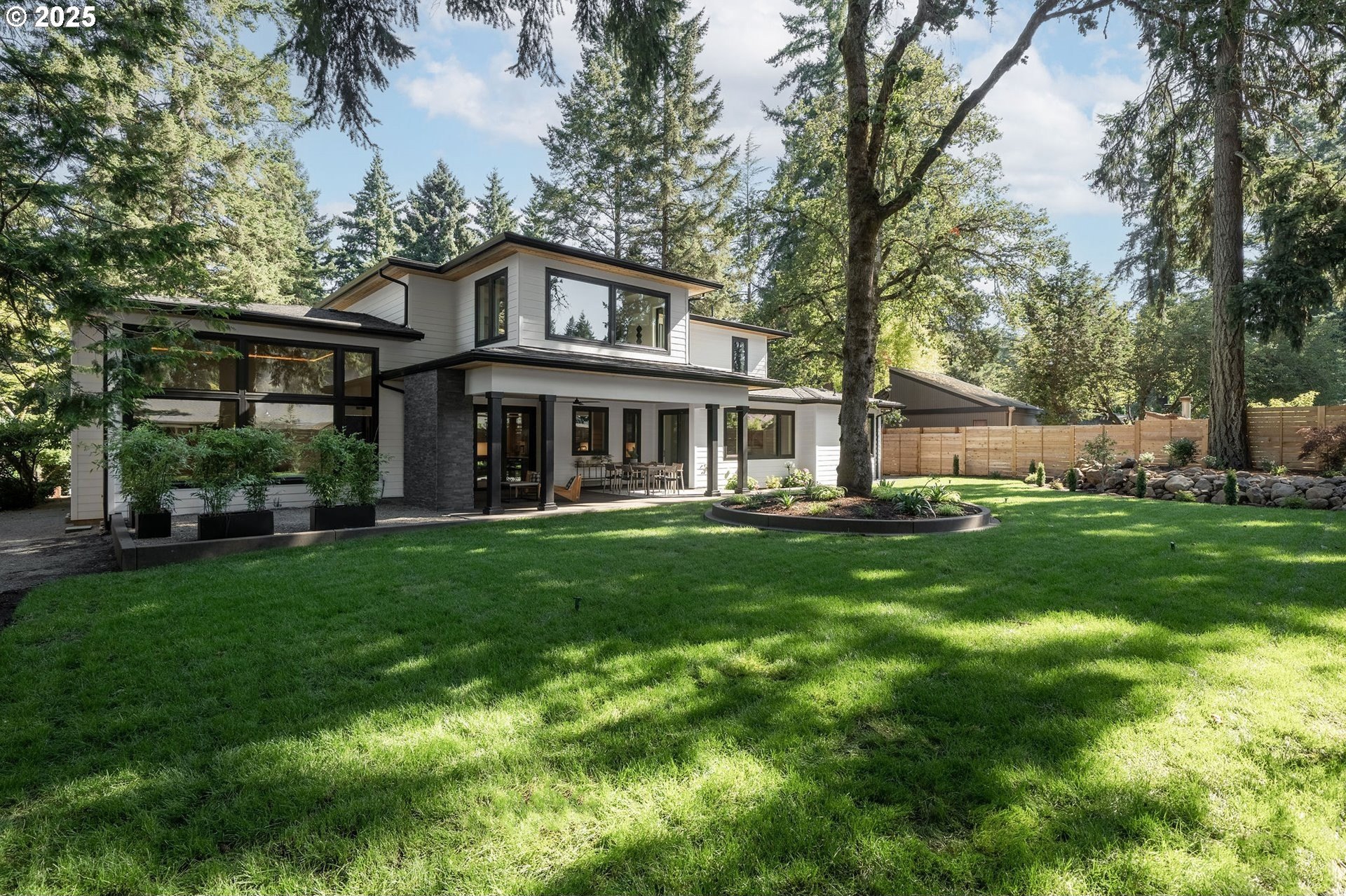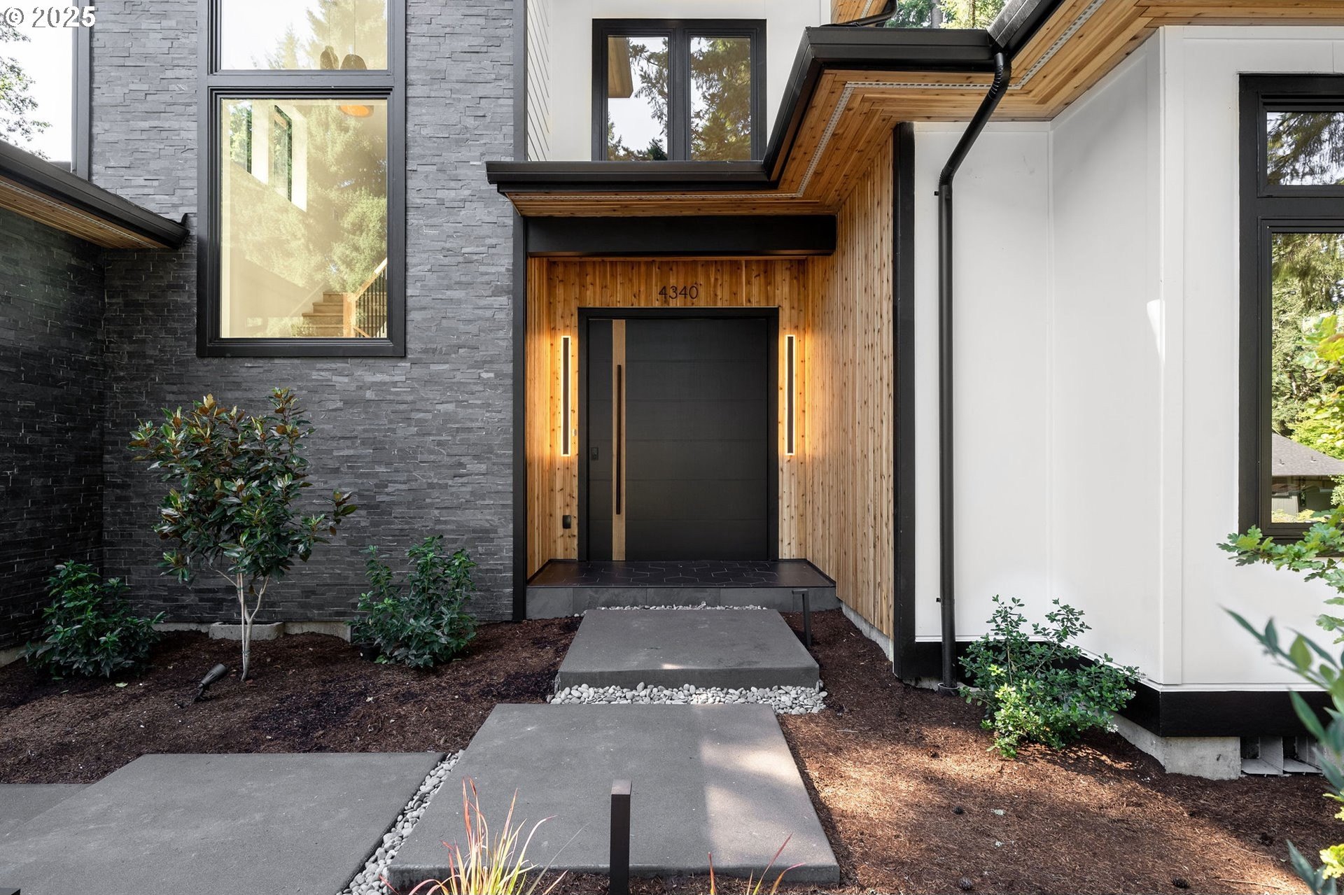 Anchored by mature trees in Lake Oswego’s Bryant neighborhood, 4340 Chapman Way is a newly constructed 4,100-square-foot home that embraces warmth, simplicity, and material integrity. The facade pairs black die sand–finish concrete with cedar soffits, ledger stone, and a custom pivot door scaled for quiet impact. Inside, wide-plank engineered hardwoods ground an open floor plan where natural light moves easily through curated spaces. Custom white oak cabinetry, quartz surfaces, and smooth wall finishes define the kitchen and great room, which connect seamlessly to a wine cellar and covered outdoor area with gas fireplace. The main level includes a generous primary suite, a second full bath, and a flexible office or guest bedroom. Every detail supports comfort: blown-in insulation, a 40-year roof, Navien tankless water heater, dual Bryant high-efficiency furnaces and A/C units, Cat6 wiring, and integrated ceiling audio. Glass and aluminum garage doors open to a fully irrigated landscape, illuminated by architectural lighting and supported by underground stormwater management. Just minutes from Bridgeport Village, Zupan’s, neighborhood parks, and trails, the home sits within one of Oregon’s top-rated school districts—with direct access I-5.