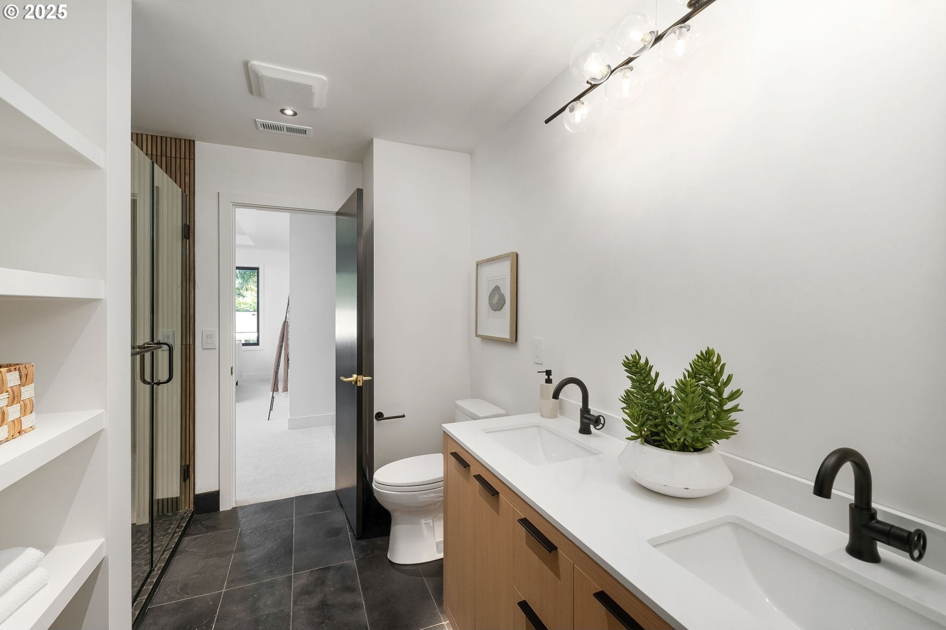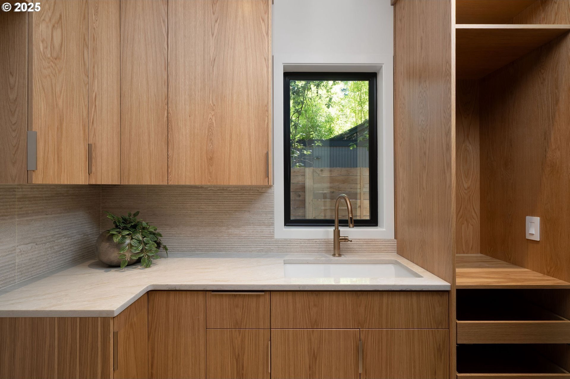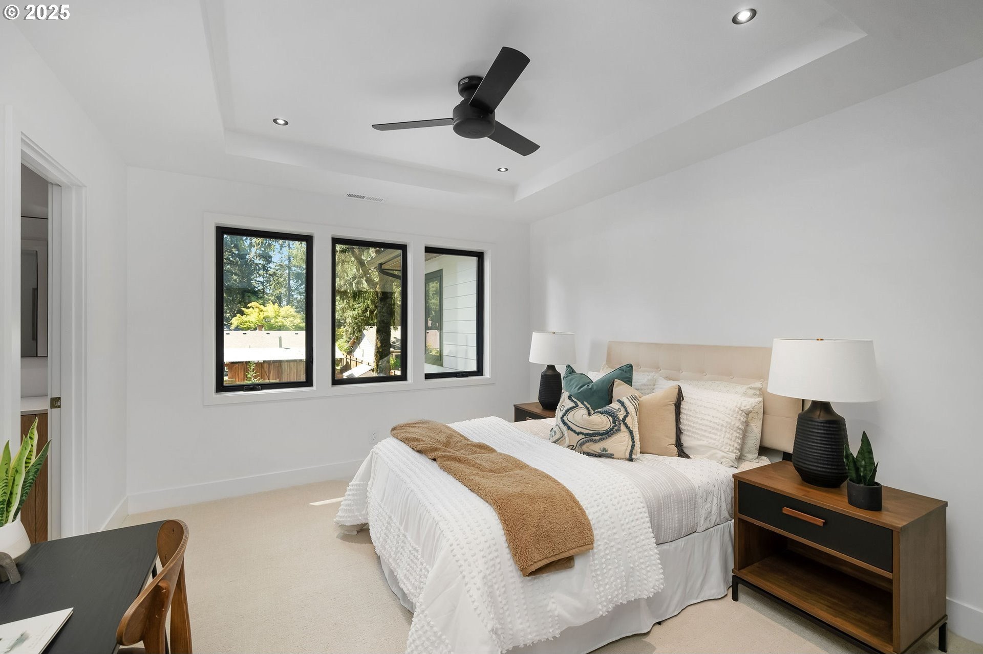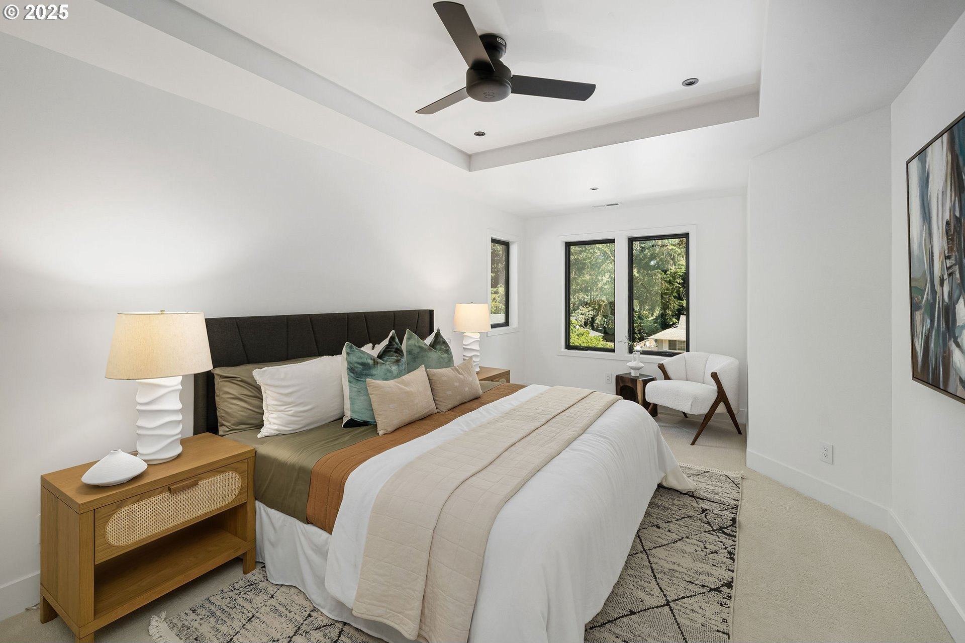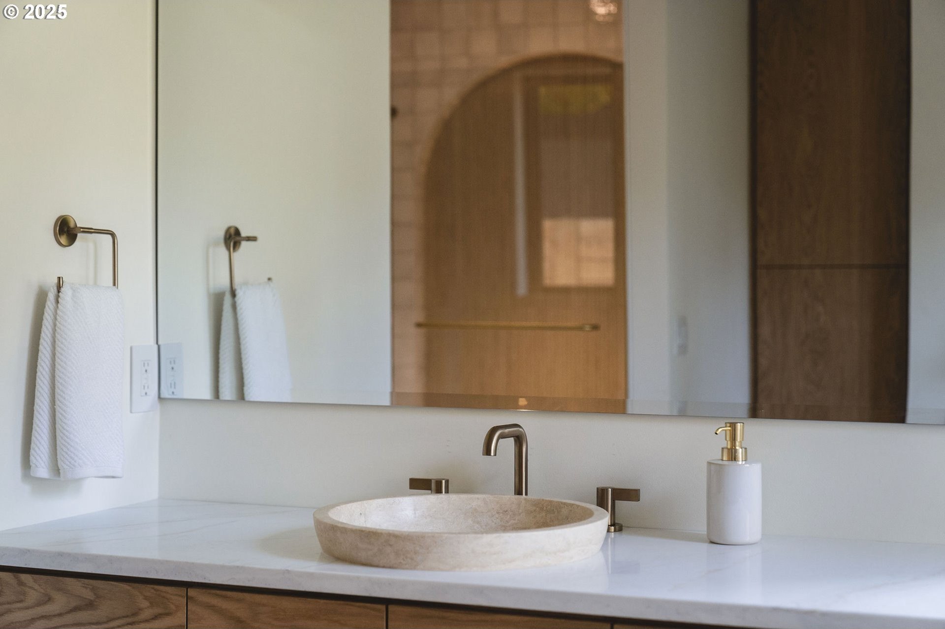 Anchored by mature trees in Lake Oswego’s Bryant neighborhood, 4340 Chapman Way is a newly constructed 4,100-square-foot home that embraces warmth, simplicity, and material integrity. The facade pairs black die sand–finish concrete with cedar soffits, ledger stone, and a custom pivot door scaled for quiet impact. Inside, wide-plank engineered hardwoods ground an open floor plan where natural light moves easily through curated spaces. Custom white oak cabinetry, quartz surfaces, and smooth wall finishes define the kitchen and great room, which connect seamlessly to a wine cellar and covered outdoor area with gas fireplace. The main level includes a generous primary suite, a second full bath, and a flexible office or guest bedroom. Every detail supports comfort: blown-in insulation, a 40-year roof, Navien tankless water heater, dual Bryant high-efficiency furnaces and A/C units, Cat6 wiring, and integrated ceiling audio. Glass and aluminum garage doors open to a fully irrigated landscape, illuminated by architectural lighting and supported by underground stormwater management. Just minutes from Bridgeport Village, Zupan’s, neighborhood parks, and trails, the home sits within one of Oregon’s top-rated school districts—with direct access I-5.