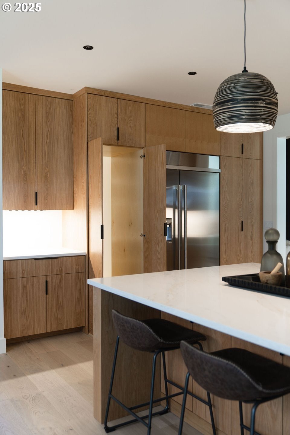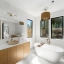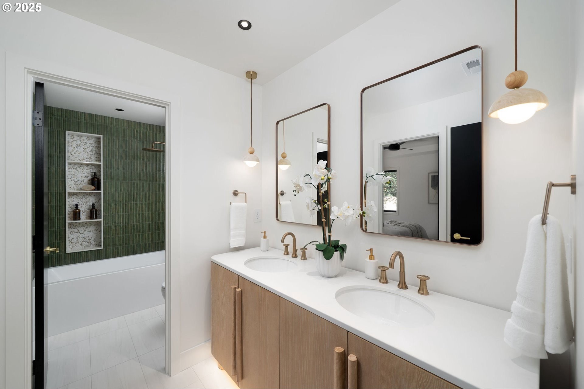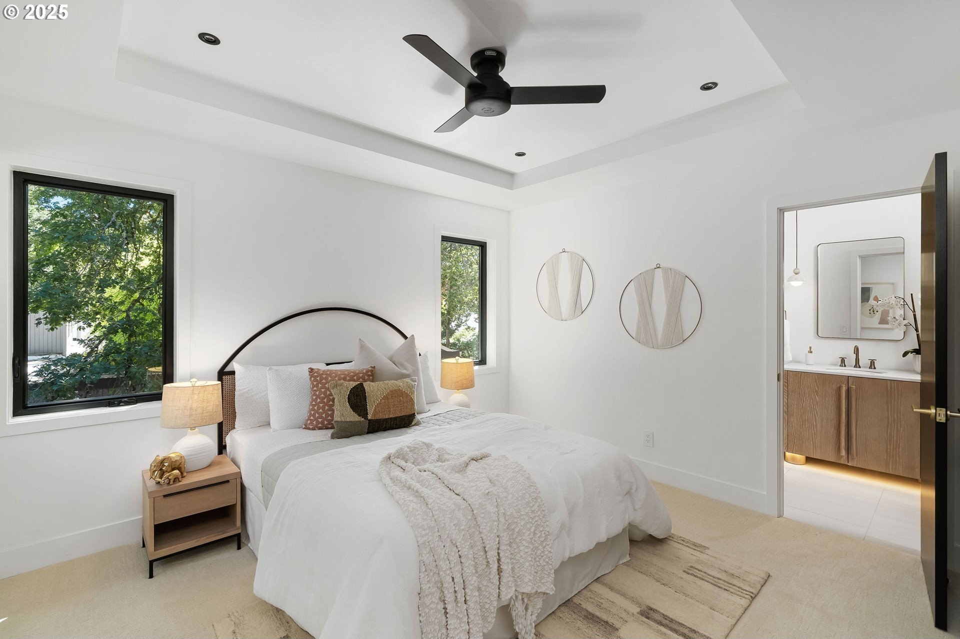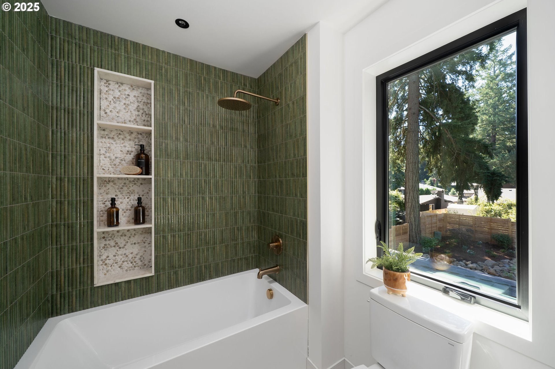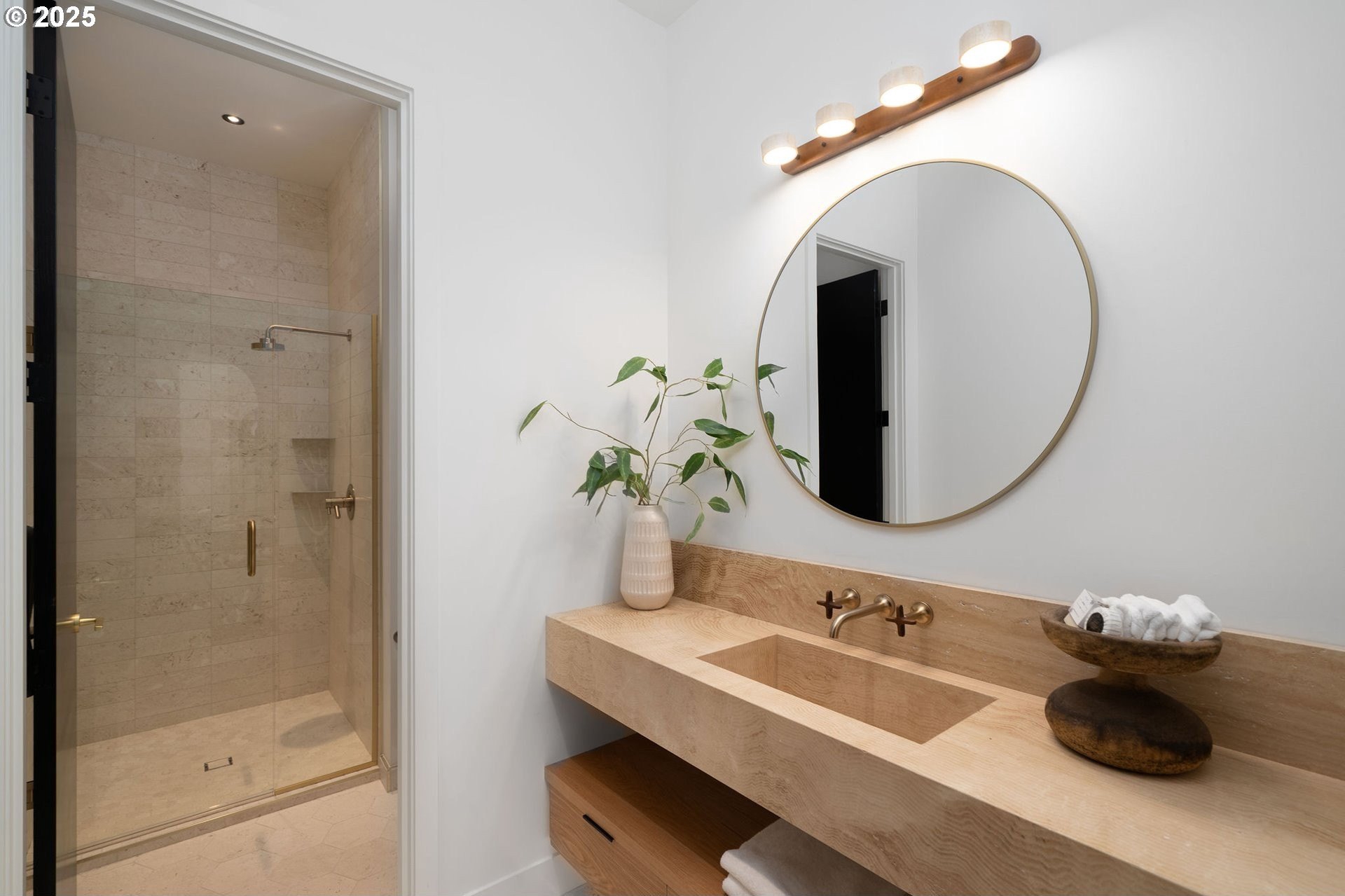 Anchored by mature trees in Lake Oswego’s Bryant neighborhood, 4340 Chapman Way is a newly constructed 4,100-square-foot home that embraces warmth, simplicity, and material integrity. The facade pairs black die sand–finish concrete with cedar soffits, ledger stone, and a custom pivot door scaled for quiet impact. Inside, wide-plank engineered hardwoods ground an open floor plan where natural light moves easily through curated spaces. Custom white oak cabinetry, quartz surfaces, and smooth wall finishes define the kitchen and great room, which connect seamlessly to a wine cellar and covered outdoor area with gas fireplace. The main level includes a generous primary suite, a second full bath, and a flexible office or guest bedroom. Every detail supports comfort: blown-in insulation, a 40-year roof, Navien tankless water heater, dual Bryant high-efficiency furnaces and A/C units, Cat6 wiring, and integrated ceiling audio. Glass and aluminum garage doors open to a fully irrigated landscape, illuminated by architectural lighting and supported by underground stormwater management. Just minutes from Bridgeport Village, Zupan’s, neighborhood parks, and trails, the home sits within one of Oregon’s top-rated school districts—with direct access I-5.