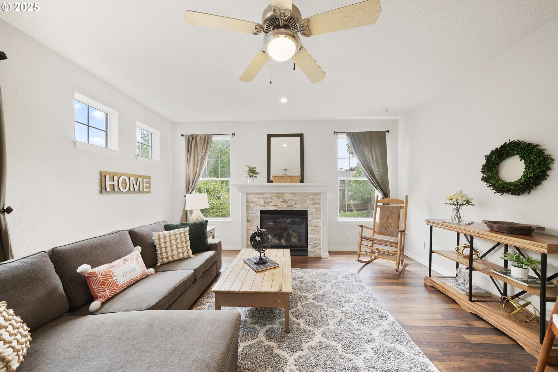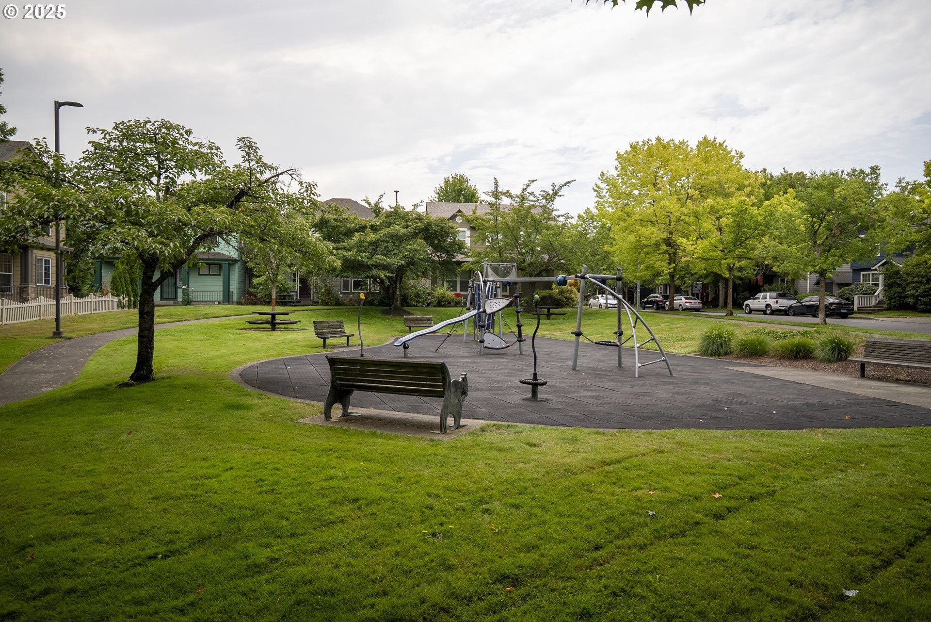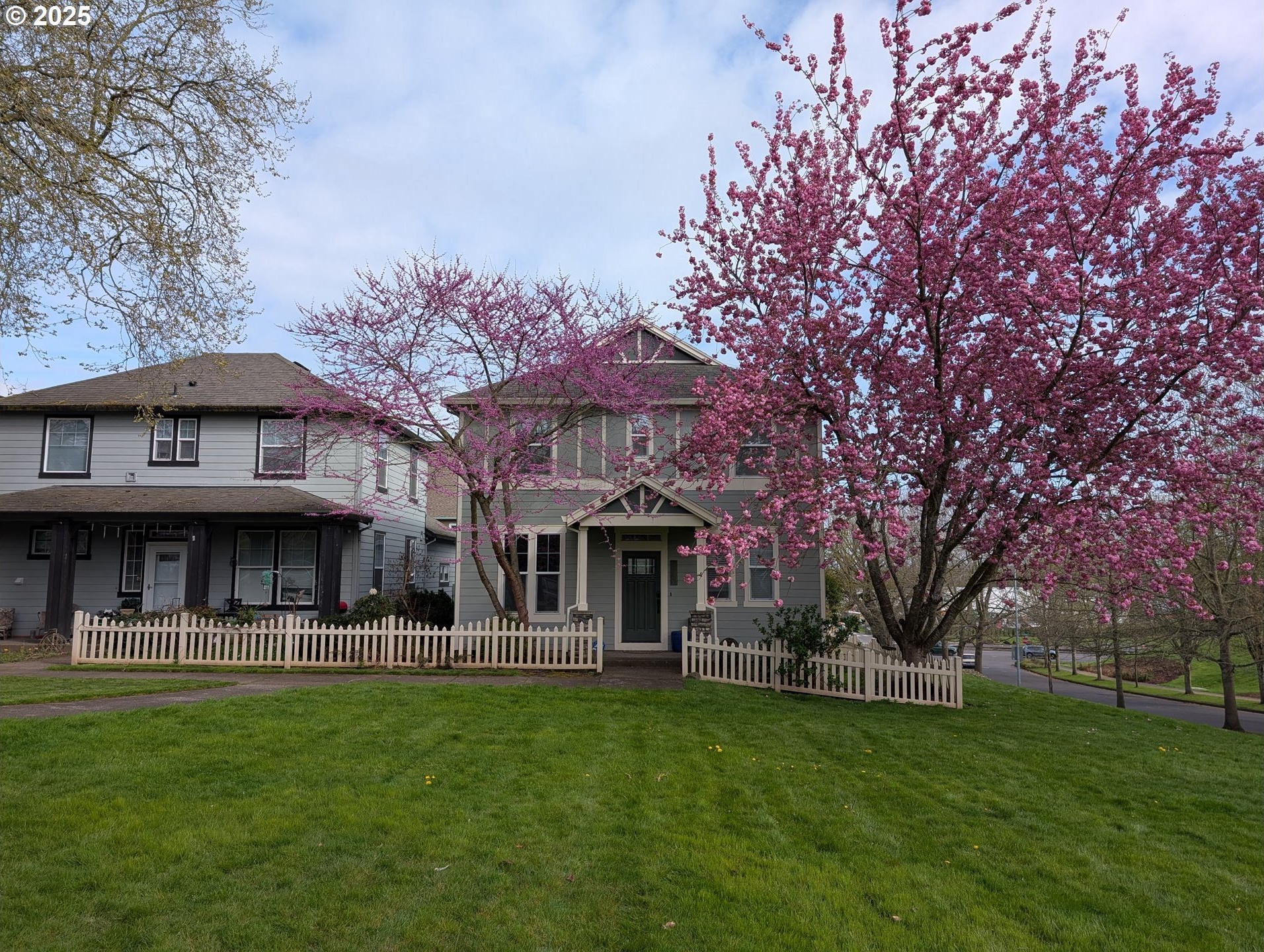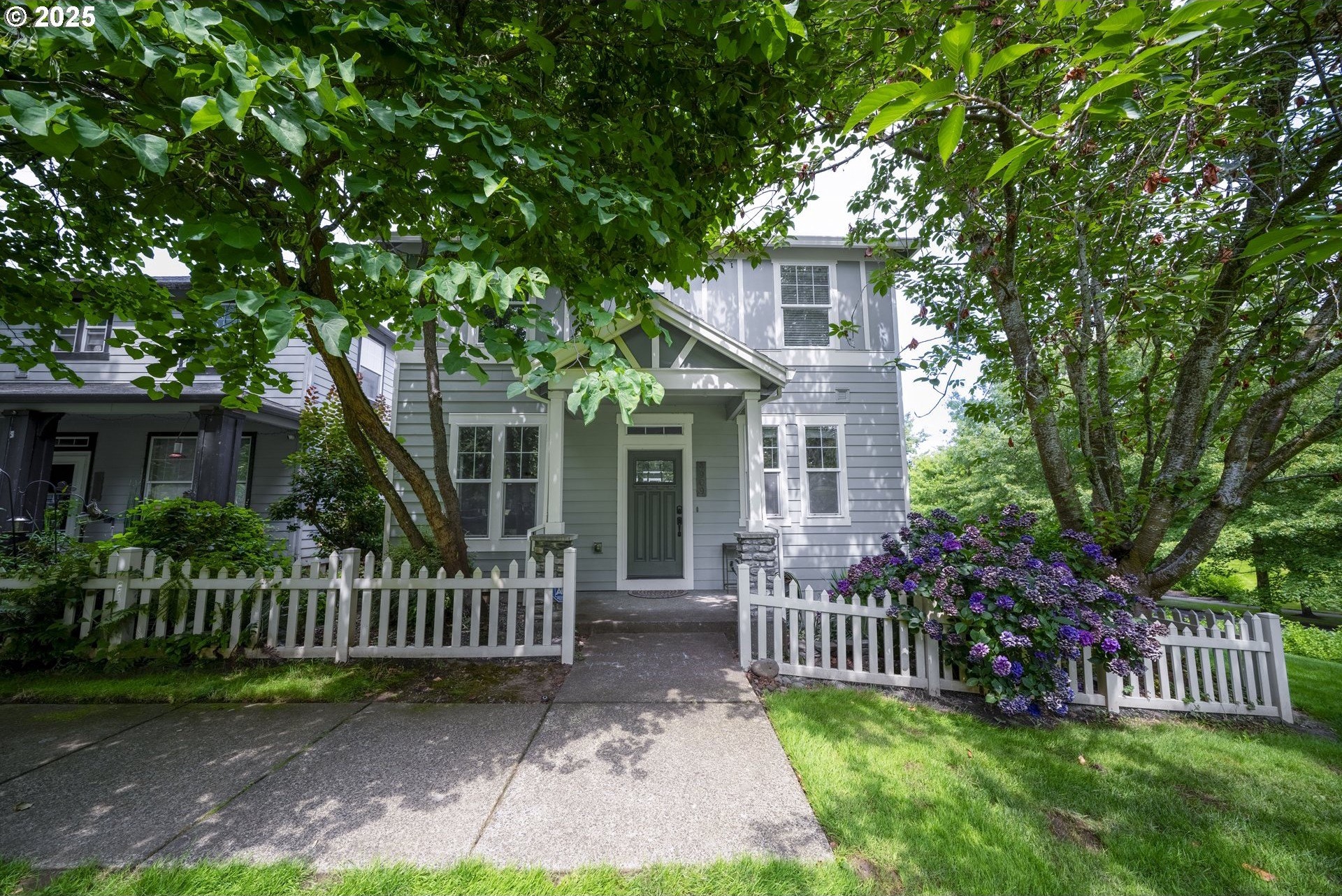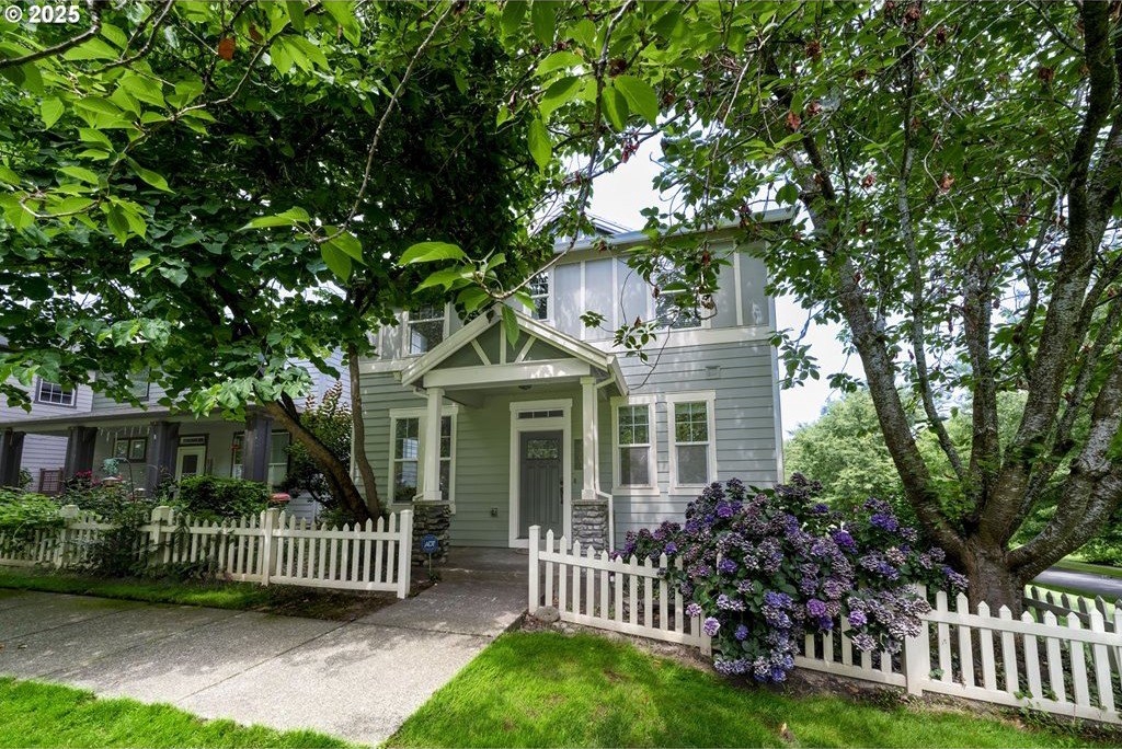 Stunning updated home located in a wonderful community that is surrounded by mature trees that provides an oasis feel after a long day. This home offers the perfect blend of nature and convenience with it being located steps away from a playground, and walkable to coffee shops, boutiques, and restaurants. Step inside to find beautiful hardwood floors flowing throughout the main level. Home also features soaring ceilings and large windows flooding the property with natural light. Enjoy a chef's kitchen with granite countertops + open-concept layout for effortless entertaining. Upstairs you will find a generous sized primary suite with a large walk-in closet and two additonal bedrooms. If you are looking for a home that you can move into and truly enjoy right away this is the one. The property has all new carpet, newer HVAC system, hot water heater, dishwasher, microwave and washer/dryer. The exterior of the home has all new trim and was painted in 2024. Home comes with an attached two car garage and all the grass area surrounding the home is maintained by the HOA. Check out the video tour and come see this exceptional home this weekend at the Open House on Sunday from 11-1PM. [Home Energy Score = 8. HES Report at https://rpt.greenbuildingregistry.com/hes/OR10153981]