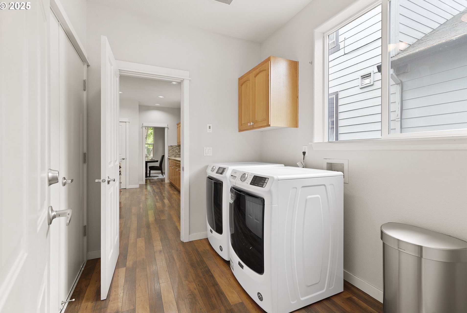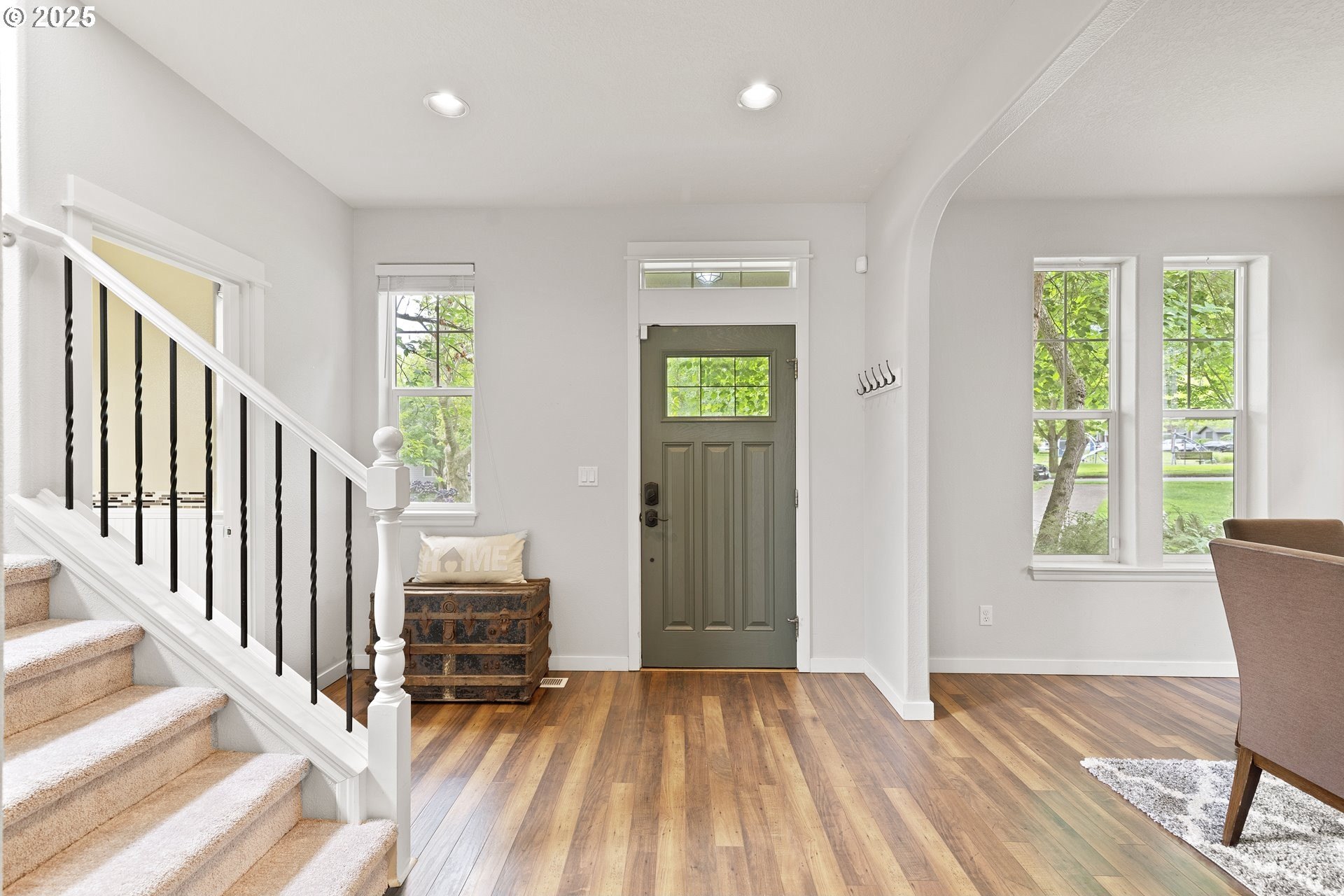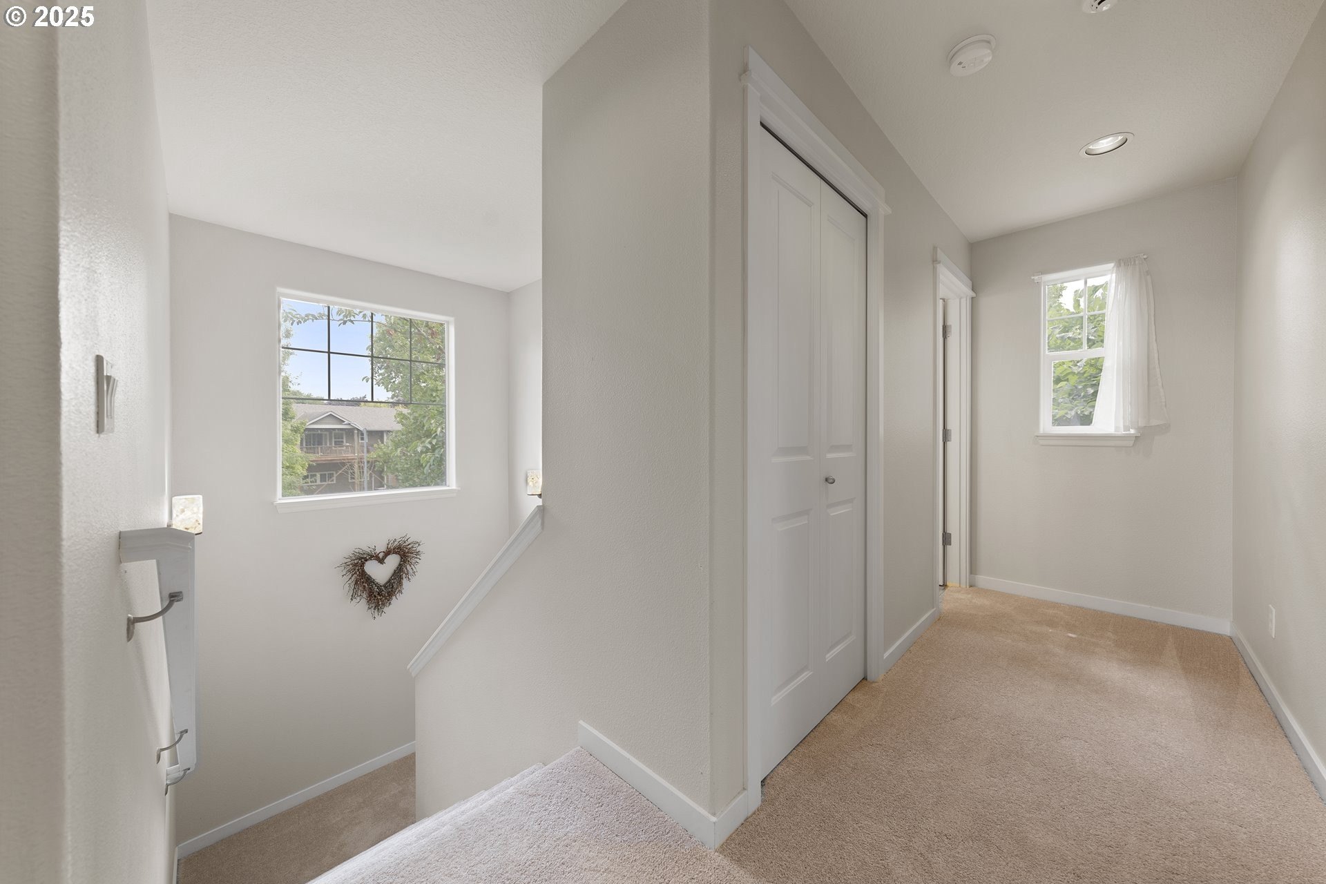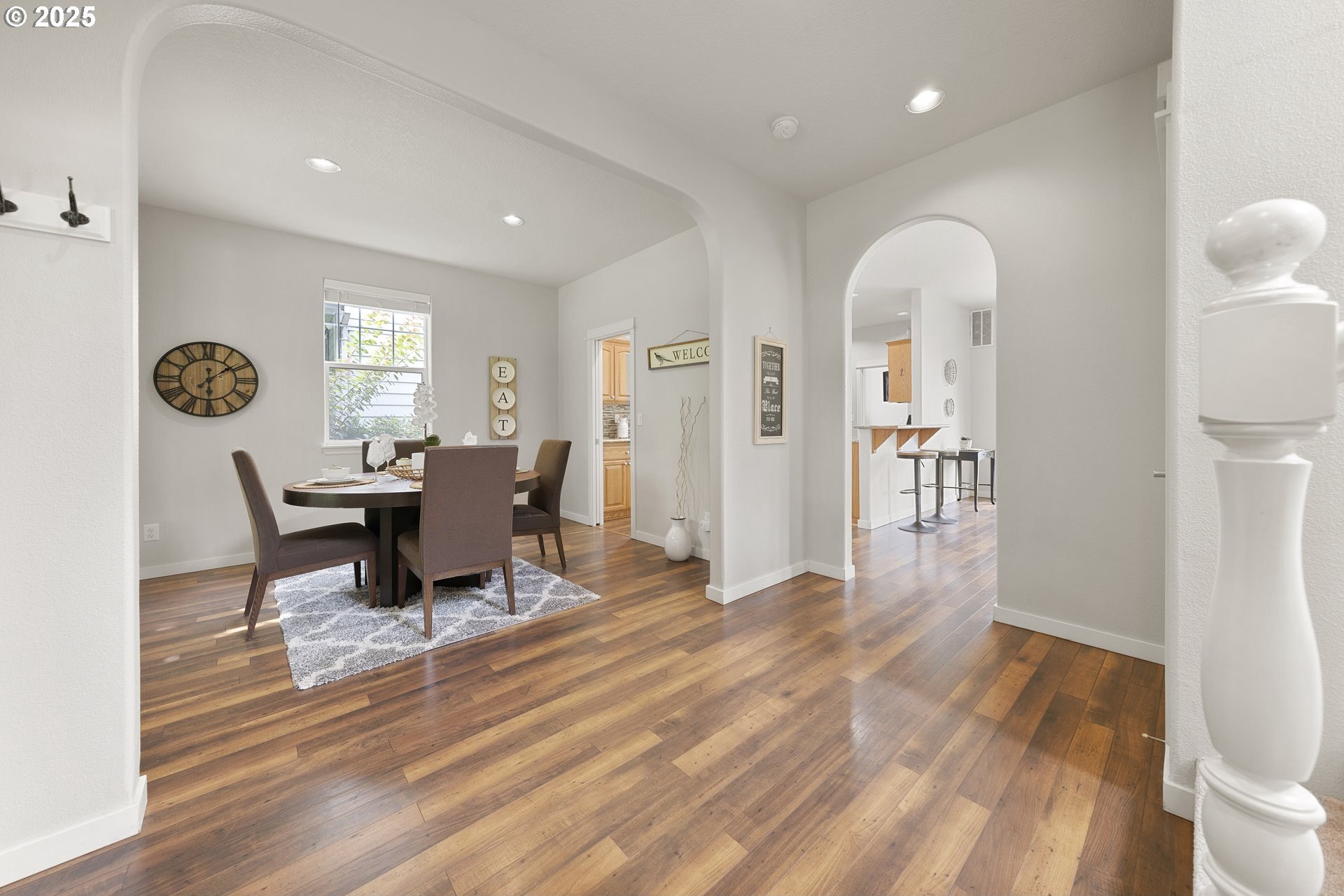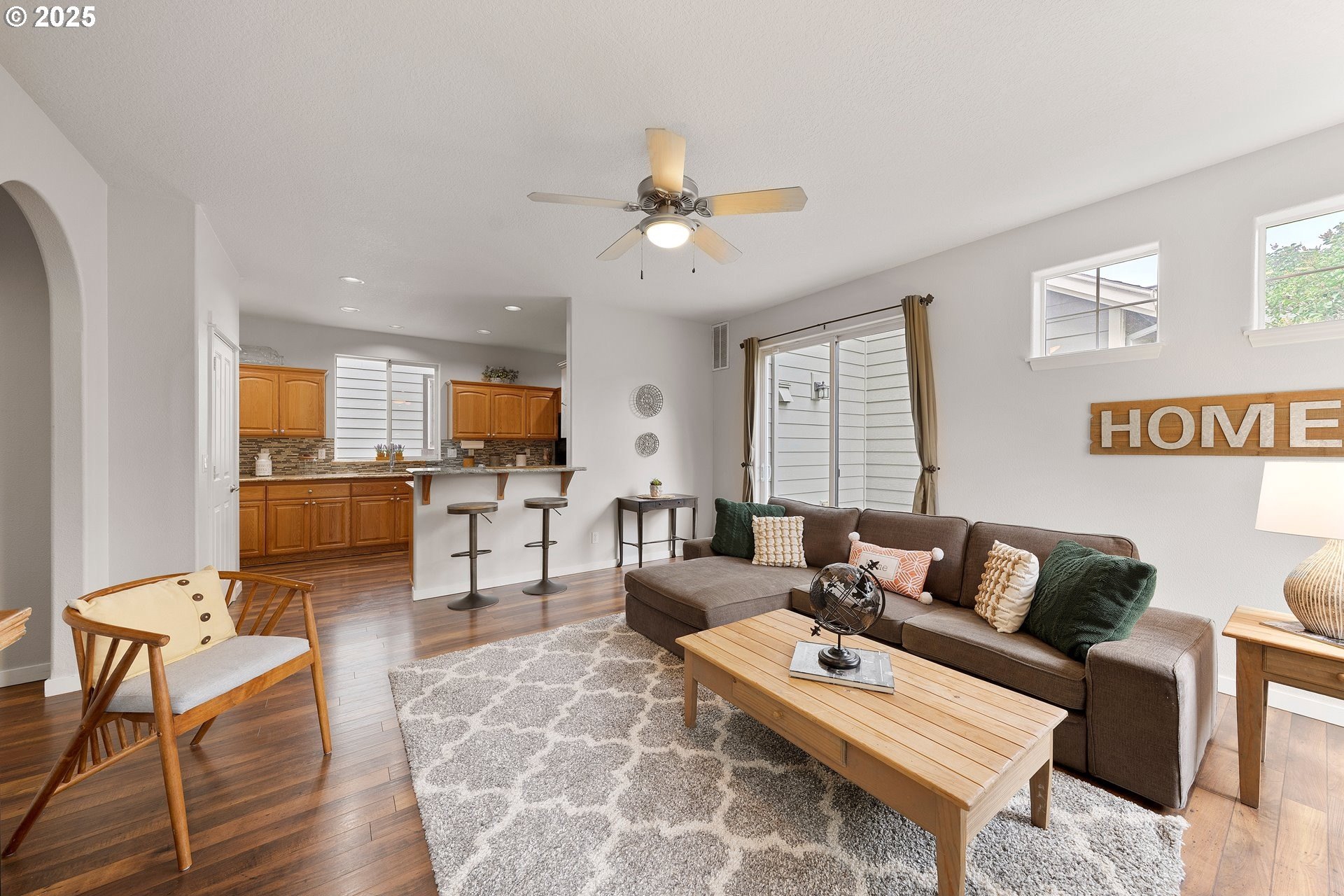 Stunning updated home located in a wonderful community that is surrounded by mature trees that provides an oasis feel after a long day. This home offers the perfect blend of nature and convenience with it being located steps away from a playground, and walkable to coffee shops, boutiques, and restaurants. Step inside to find beautiful hardwood floors flowing throughout the main level. Home also features soaring ceilings and large windows flooding the property with natural light. Enjoy a chef's kitchen with granite countertops + open-concept layout for effortless entertaining. Upstairs you will find a generous sized primary suite with a large walk-in closet and two additonal bedrooms. If you are looking for a home that you can move into and truly enjoy right away this is the one. The property has all new carpet, newer HVAC system, hot water heater, dishwasher, microwave and washer/dryer. The exterior of the home has all new trim and was painted in 2024. Home comes with an attached two car garage and all the grass area surrounding the home is maintained by the HOA. Check out the video tour and come see this exceptional home this weekend at the Open House on Sunday from 11-1PM. [Home Energy Score = 8. HES Report at https://rpt.greenbuildingregistry.com/hes/OR10153981]