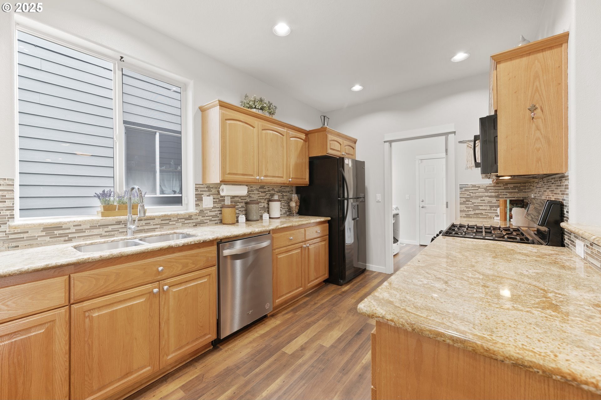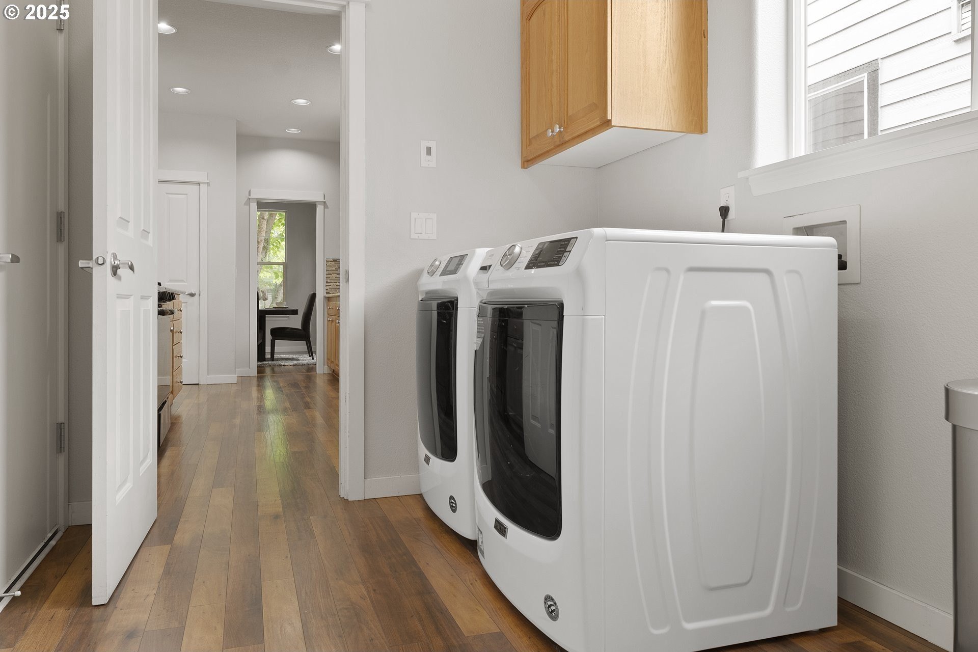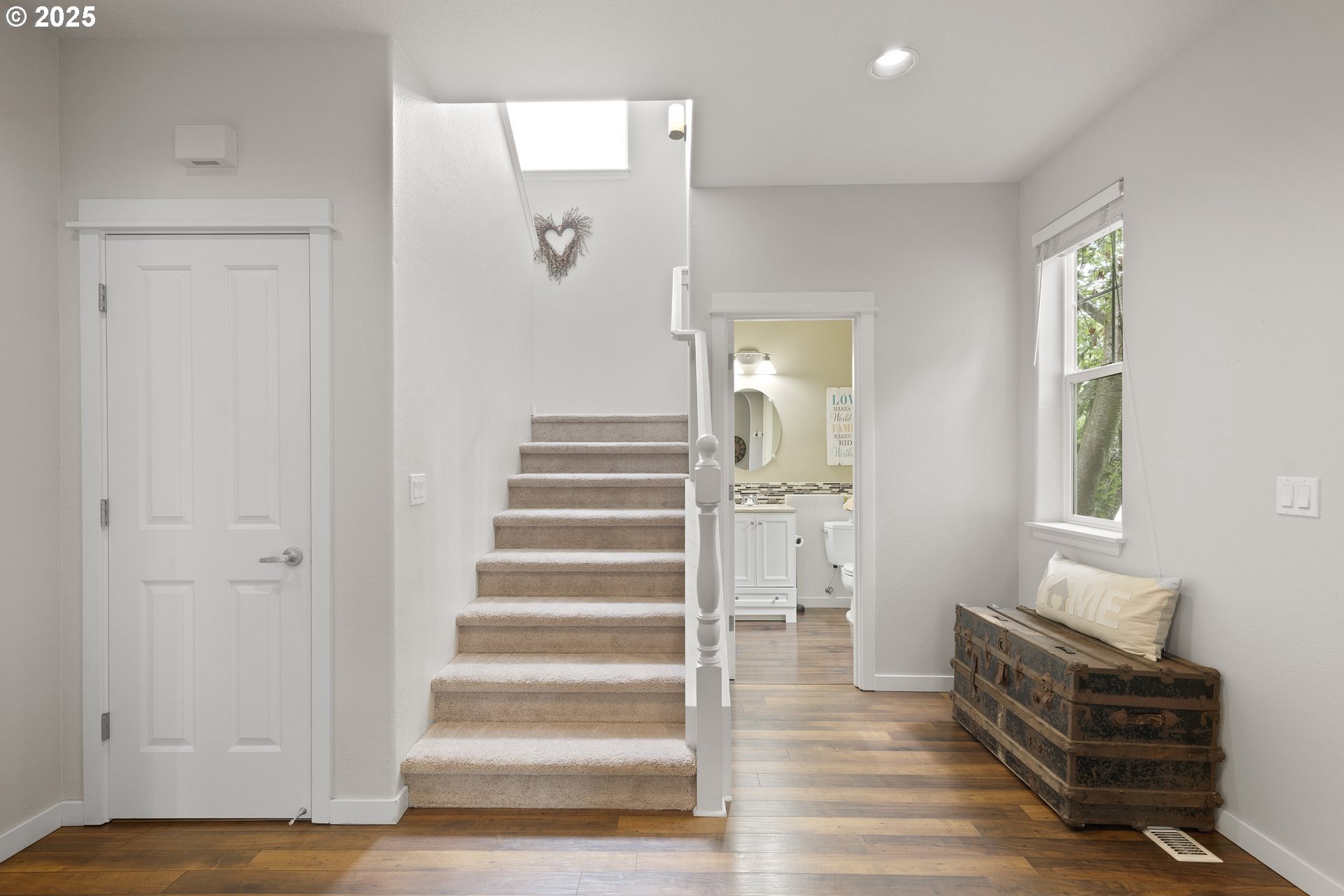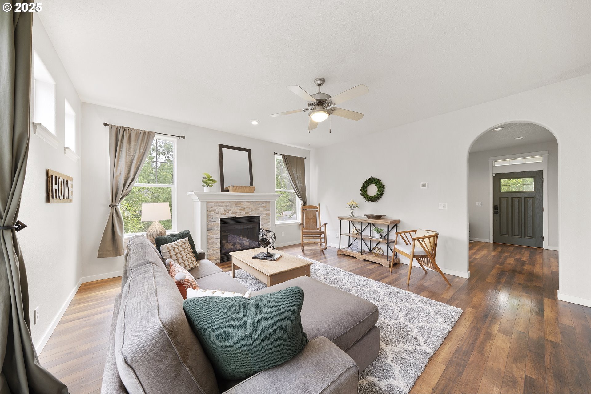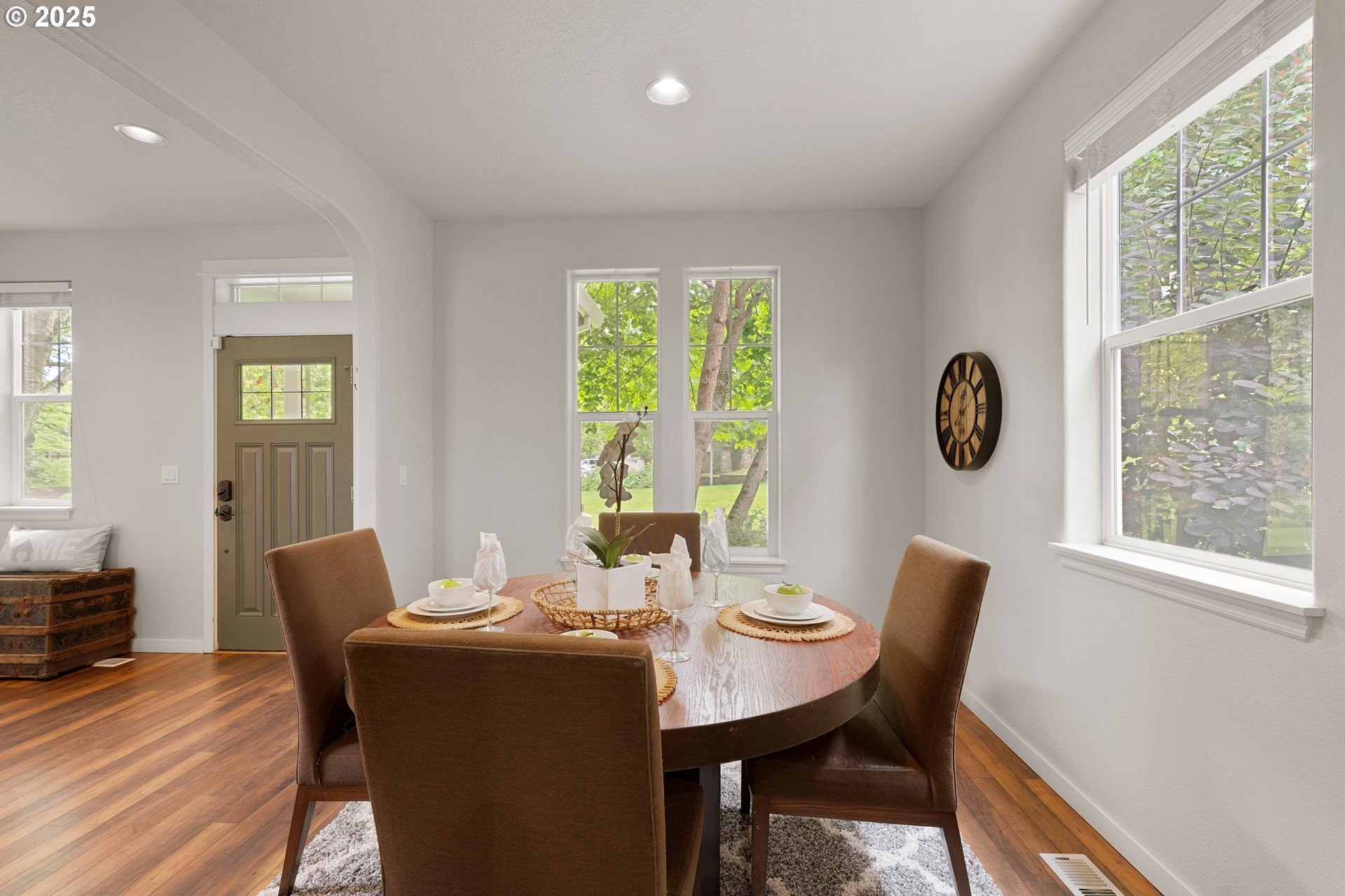 Stunning updated home located in a wonderful community that is surrounded by mature trees that provides an oasis feel after a long day. This home offers the perfect blend of nature and convenience with it being located steps away from a playground, and walkable to coffee shops, boutiques, and restaurants. Step inside to find beautiful hardwood floors flowing throughout the main level. Home also features soaring ceilings and large windows flooding the property with natural light. Enjoy a chef's kitchen with granite countertops + open-concept layout for effortless entertaining. Upstairs you will find a generous sized primary suite with a large walk-in closet and two additonal bedrooms. If you are looking for a home that you can move into and truly enjoy right away this is the one. The property has all new carpet, newer HVAC system, hot water heater, dishwasher, microwave and washer/dryer. The exterior of the home has all new trim and was painted in 2024. Home comes with an attached two car garage and all the grass area surrounding the home is maintained by the HOA. Check out the video tour and come see this exceptional home this weekend at the Open House on Sunday from 11-1PM. [Home Energy Score = 8. HES Report at https://rpt.greenbuildingregistry.com/hes/OR10153981]