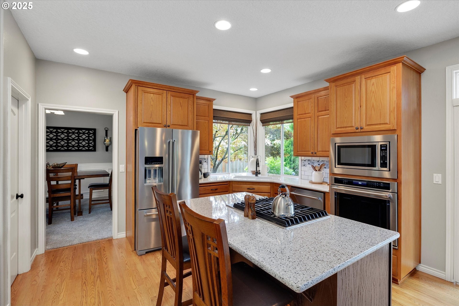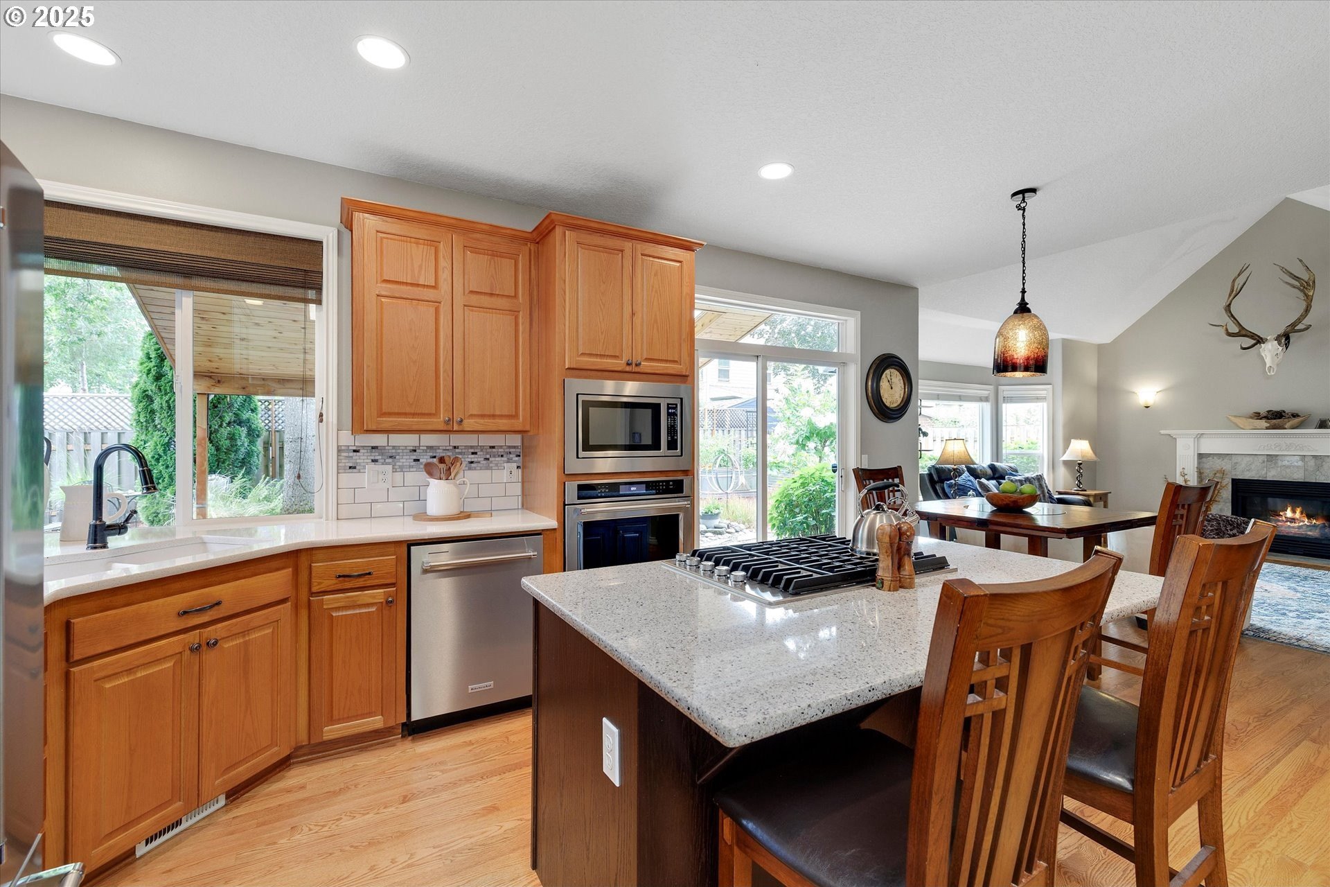 Welcome to this beautifully maintained 4-bedroom, 2.5-bathroom home offering comfortable living in one of the most desirable neighborhoods in the area. Den/office off the entry could be a modest 5th bedroom with closet. The home is perfectly positioned near a scenic nature preserve, schools, parks and community trails, this two-story residence offers the best of both convenience, livability and tranquility.From the moment you arrive in the "Loop", you're greeted by a peaceful, tree-lined setting just steps from a protected nature park filled with native wildlife. Whether it's a morning stroll along the nearby trails or simply enjoying the view from your front yard, you'll feel a true connection to the outdoors. Inside, large windows fill the home with natural light, creating a bright, warm, and welcoming atmosphere throughout.The heart of the home is ideal for both everyday living and entertaining, with a spacious open layout that seamlessly blends indoor and outdoor spaces. The covered back patio offers a year-round retreat, perfect for sipping coffee in the morning or gathering with friends under the stars on warm summer evenings.Upstairs, generous bedrooms provide space and flexibility, including a spacious primary suite with a walk-in closet and private bath. A full double-car garage offers plenty of room for storage and vehicles.What truly sets this home apart is the strong sense of community—neighbors who care, quiet streets, and seasonal traditions that bring everyone together. From nearby summer concerts in the park to the spectacular Fourth of July fireworks visible right from the front yard, life here is filled with special moments.Located just a short drive from Mt. Hood for skiing, hiking, and year-round adventure, and yet close to everyday essentials, this home combines natural beauty, community connection, and everyday comfort in one perfect package. Make this your next HOME!
