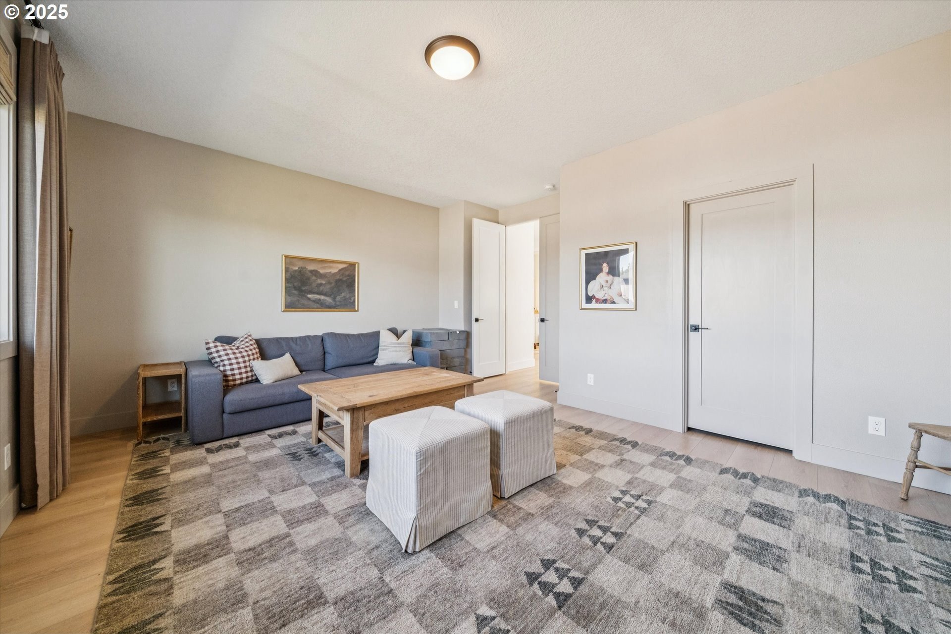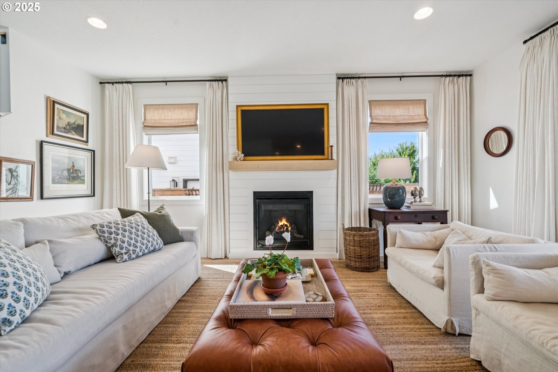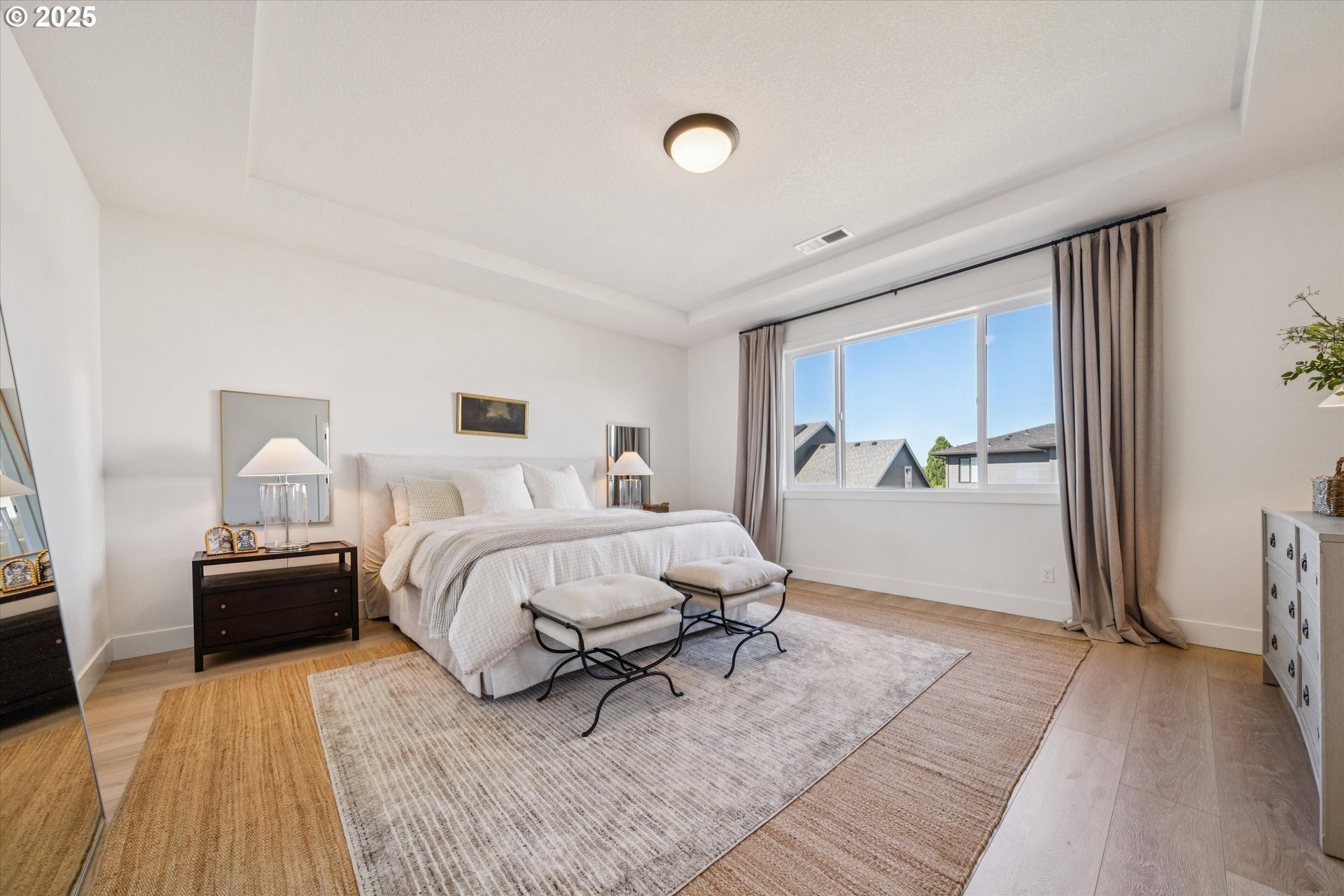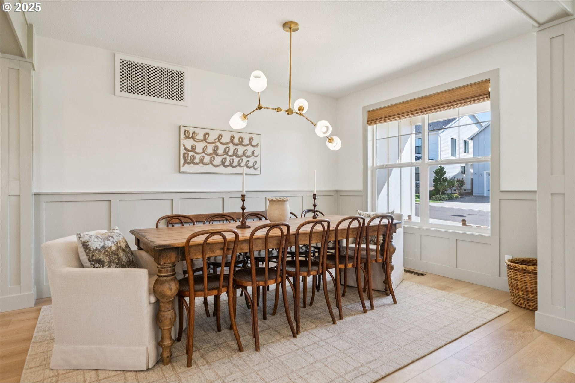 This stunning home blends modern sophistication, thoughtful design, and Northwest charm. An oversized entryway welcomes you into light-filled spaces with high ceilings and elegant wainscoting. The main level offers a formal dining room, a spacious office (or bedroom) with an adjacent full bath, and a bright great room with a gas fireplace. The gourmet kitchen features white shaker-style cabinetry, premium slab quartz countertops, top-of-the-line stainless steel appliances—including a 5-burner gas cooktop, dishwasher, and Broan hood—and a large pantry. An upgraded wall-to-wall slider opens to the expansive patio for true indoor/outdoor living. Upstairs, the serene primary suite offers a spa-inspired bath with a 5’x4’ tiled shower, freestanding soaking tub, and oversized walk-in closet. Four additional bedrooms, including a generous bonus room with a large walk-in closet, plus a well-appointed laundry room with cabinets and a sink, complete the upper level. Luxury finishes include upgraded LVP flooring throughout both levels (tile in master bath and laundry), slab quartz in all baths, central A/C, and EA Gold Certification. The fully landscaped yard has been extensively upgraded with a custom paver patio extension, leveled lawn, raised garden beds, landscape lighting, cedar fencing, irrigation, and a gas hookup for grilling. Located in a growing neighborhood with a brand new elementary school opening next fall and a large city park coming just blocks away, this home offers unmatched comfort, style, and convenience.