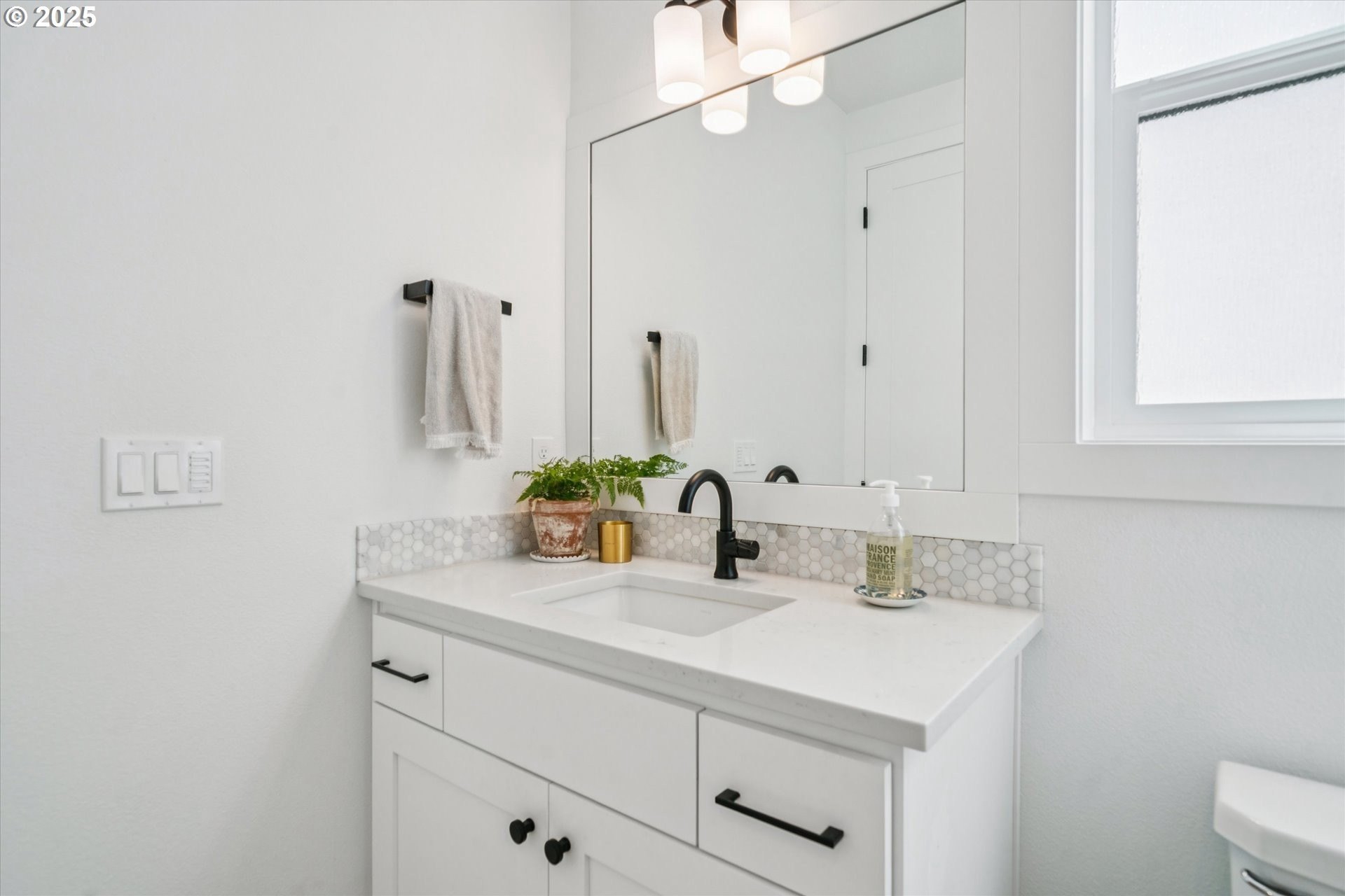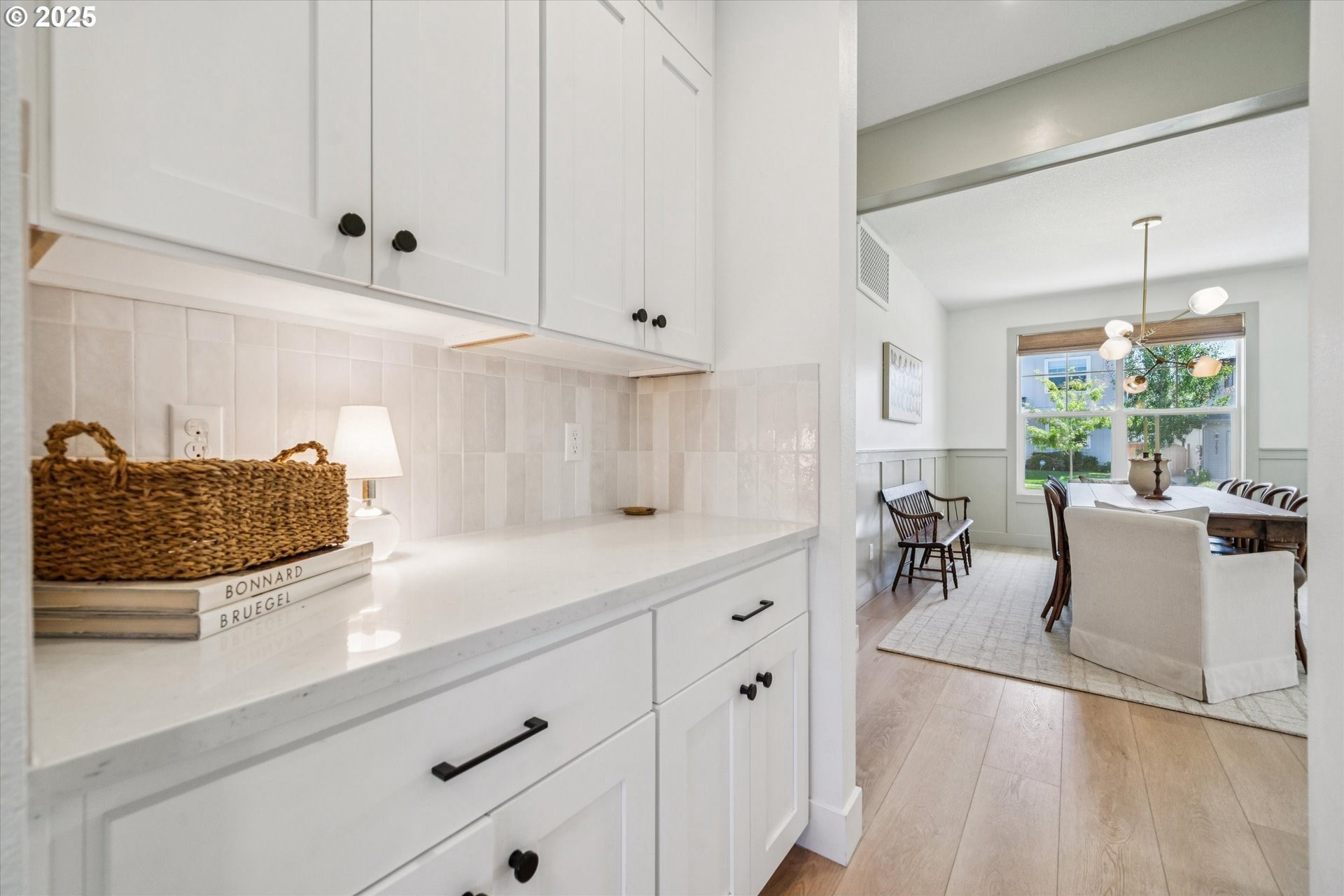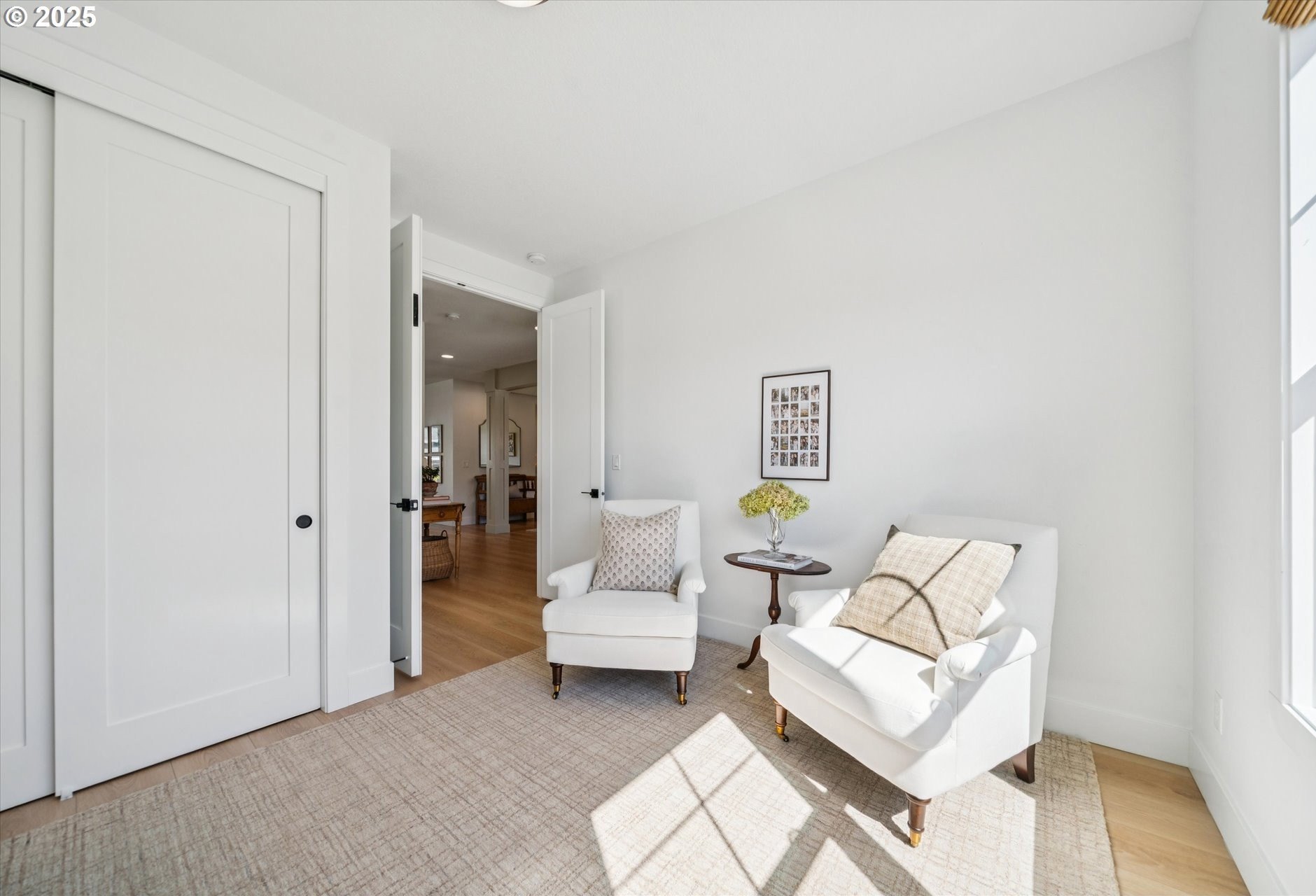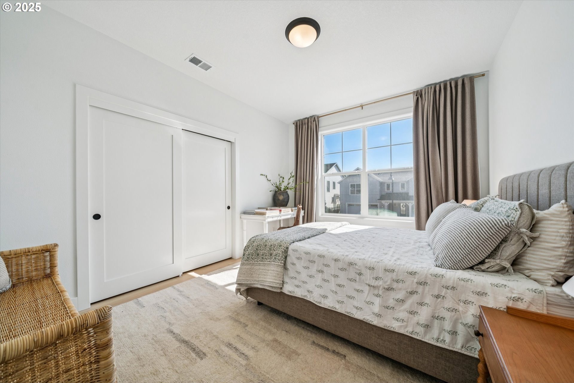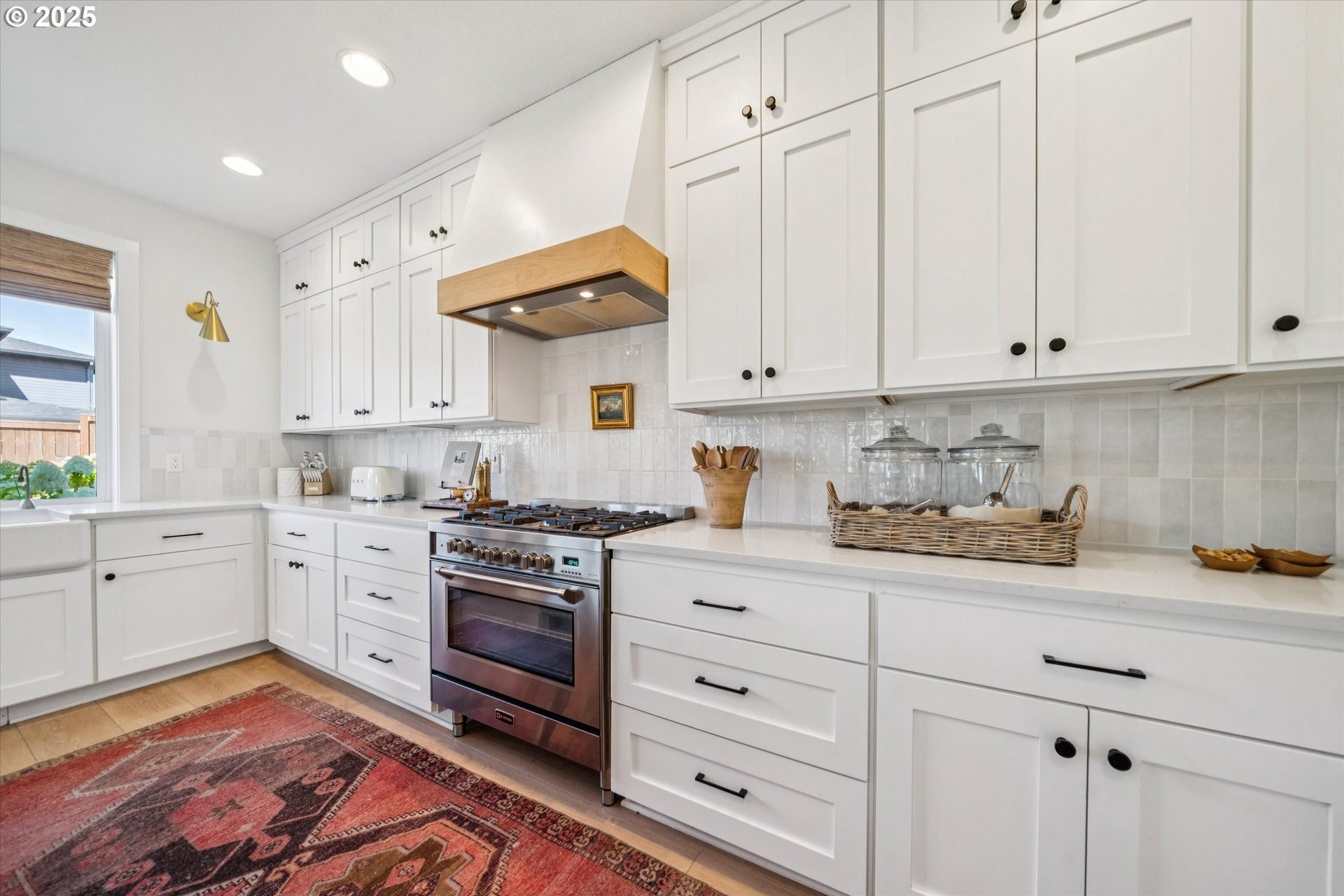This stunning home blends modern sophistication, thoughtful design, and Northwest charm. An oversized entryway welcomes you into light-filled spaces with high ceilings and elegant wainscoting. The main level offers a formal dining room, a spacious office (or bedroom) with an adjacent full bath, and a bright great room with a gas fireplace. The gourmet kitchen features white shaker-style cabinetry, premium slab quartz countertops, top-of-the-line stainless steel appliances—including a 5-burner gas cooktop, dishwasher, and Broan hood—and a large pantry. An upgraded wall-to-wall slider opens to the expansive patio for true indoor/outdoor living. Upstairs, the serene primary suite offers a spa-inspired bath with a 5’x4’ tiled shower, freestanding soaking tub, and oversized walk-in closet. Four additional bedrooms, including a generous bonus room with a large walk-in closet, plus a well-appointed laundry room with cabinets and a sink, complete the upper level. Luxury finishes include upgraded LVP flooring throughout both levels (tile in master bath and laundry), slab quartz in all baths, central A/C, and EA Gold Certification. The fully landscaped yard has been extensively upgraded with a custom paver patio extension, leveled lawn, raised garden beds, landscape lighting, cedar fencing, irrigation, and a gas hookup for grilling. Located in a growing neighborhood with a brand new elementary school opening next fall and a large city park coming just blocks away, this home offers unmatched comfort, style, and convenience.