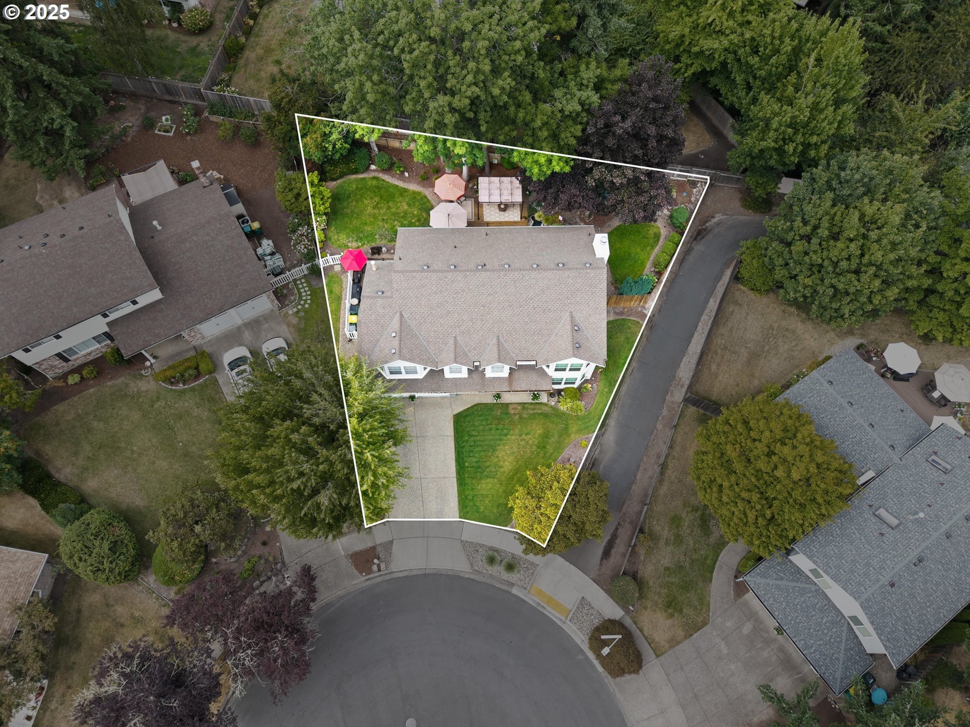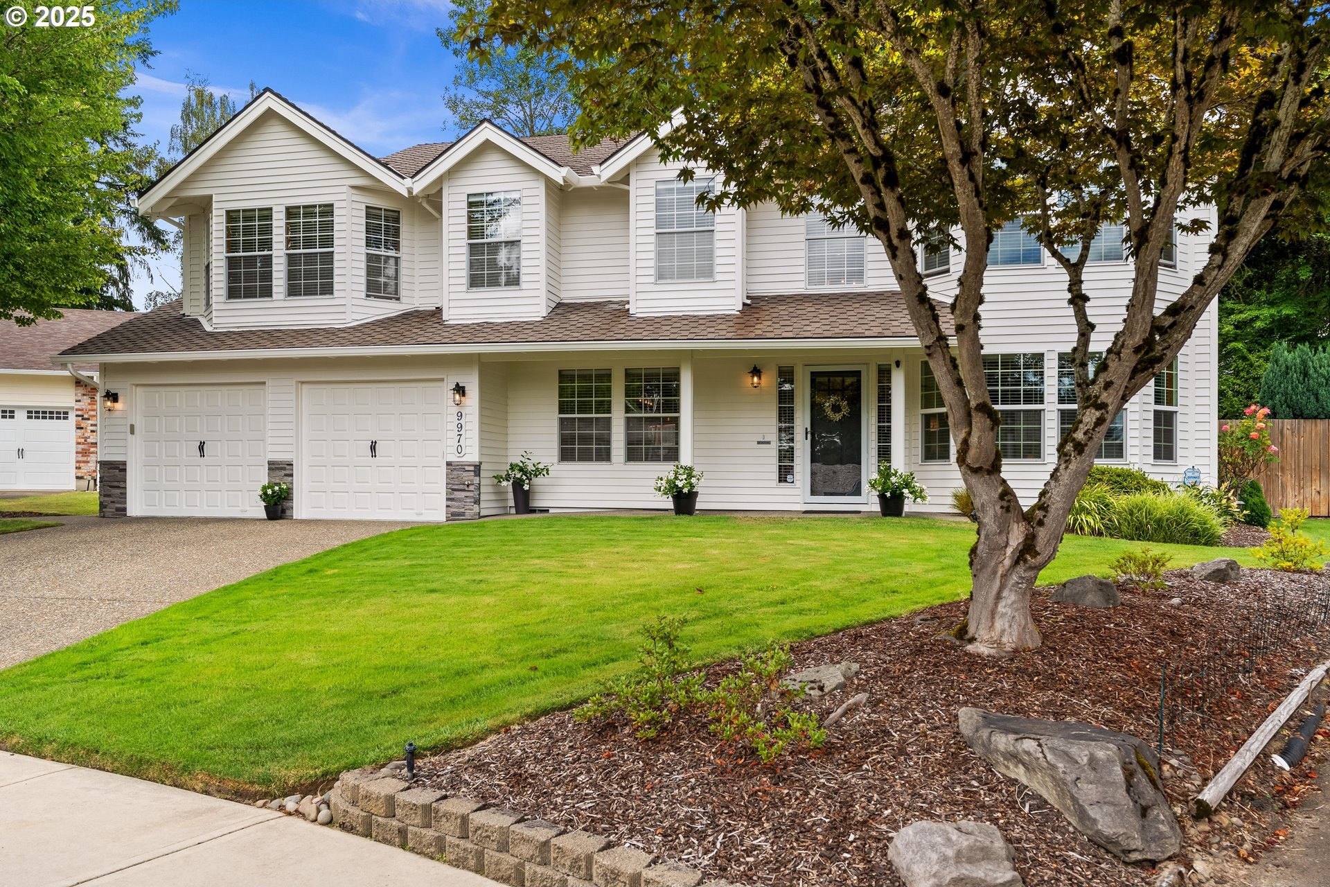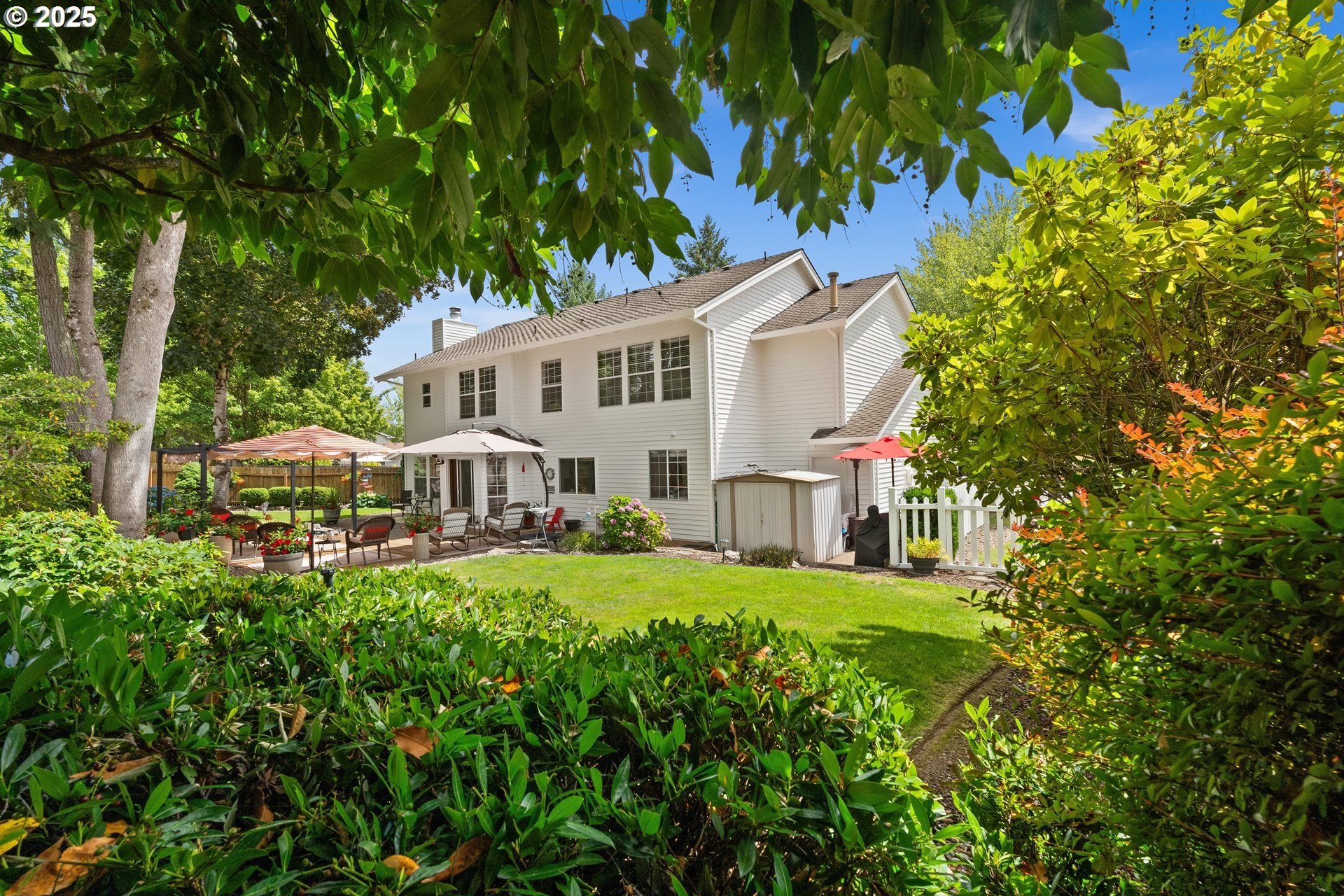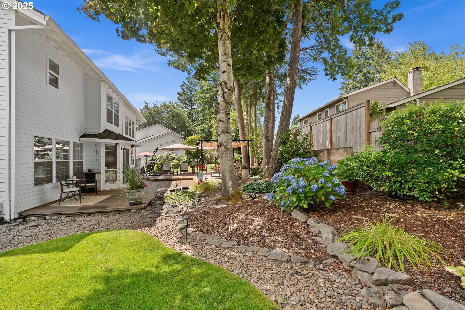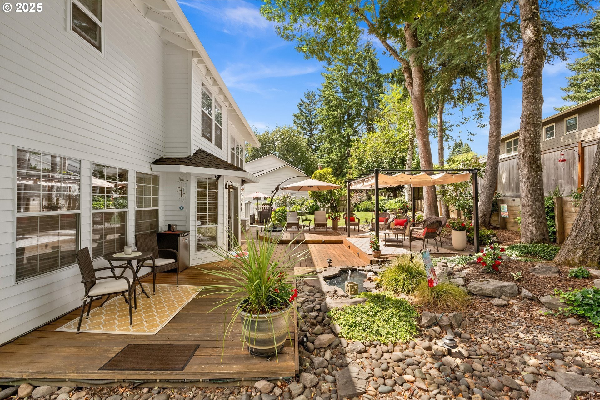 This beautiful two-story home on a cul-de-sac features high-end finishes and shows decades of pride in ownership both inside and out. The main level offers spacious rooms with French doors connecting the formal living and family rooms. The incredible open kitchen boasts custom cabinets with Coco bronze hardware, quartz countertops, and a subway tile backsplash. It includes an oversized center island, recently refinished hardwood floors, newer appliances, a pantry, and a breakfast nook. Laundry is conveniently located off the kitchen, equipped with a utility sink, a built-in counter, and cabinets with tile flooring. Upstairs, you'll find a large primary suite with a walk-in closet, double vanity, quartz countertops, three additional bedrooms, and a sizable bonus room. Off the breakfast nook, a sliding door opens to an expansive, well-maintained backyard oasis. Relax on the large cedar deck surrounded by lush landscaping—ideal for entertaining! The home is within walking distance of excellent schools and parks. No detail was spared in this home. Please see the features list for additional information.