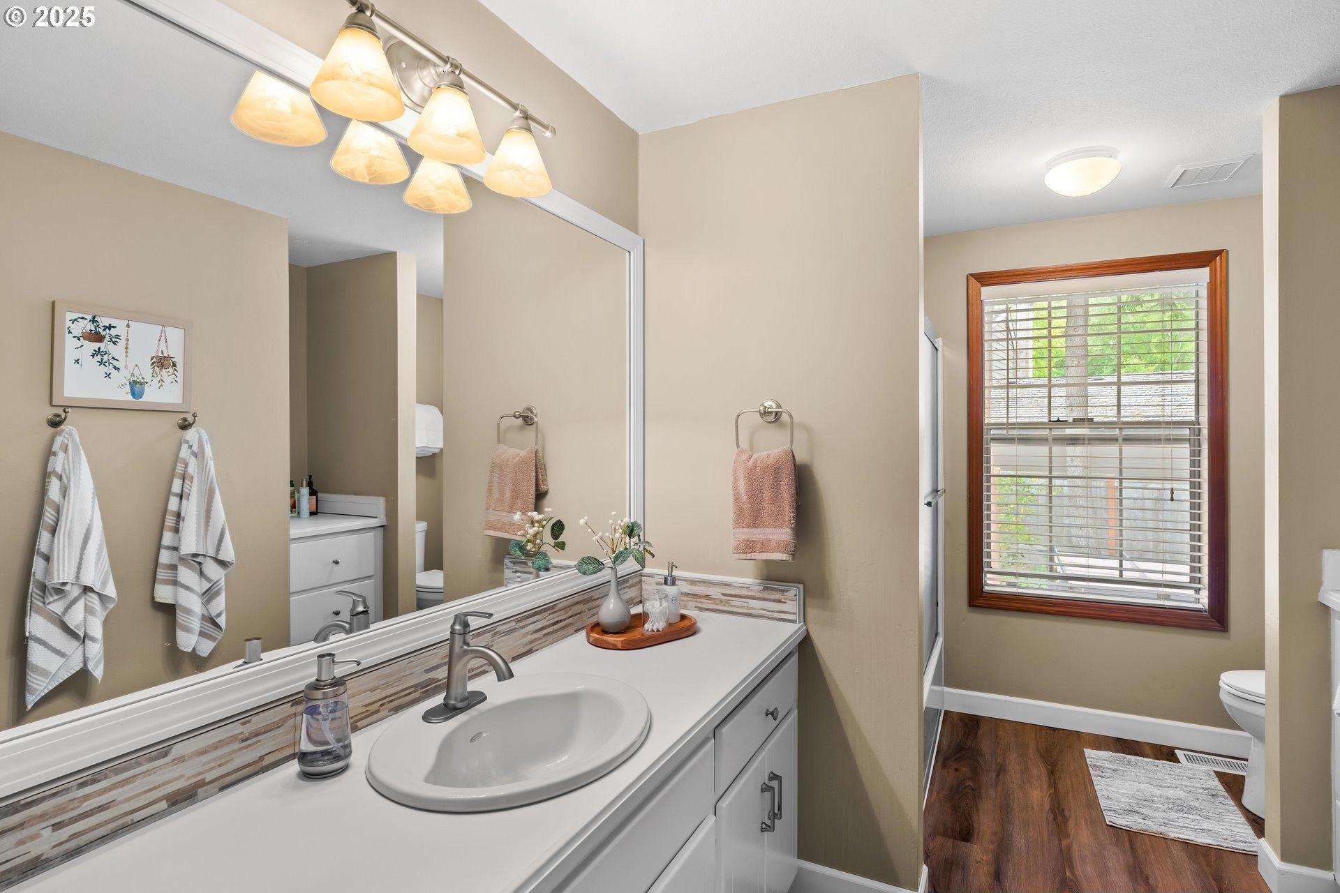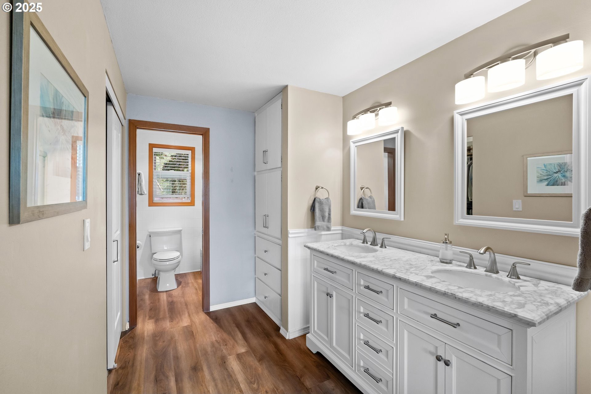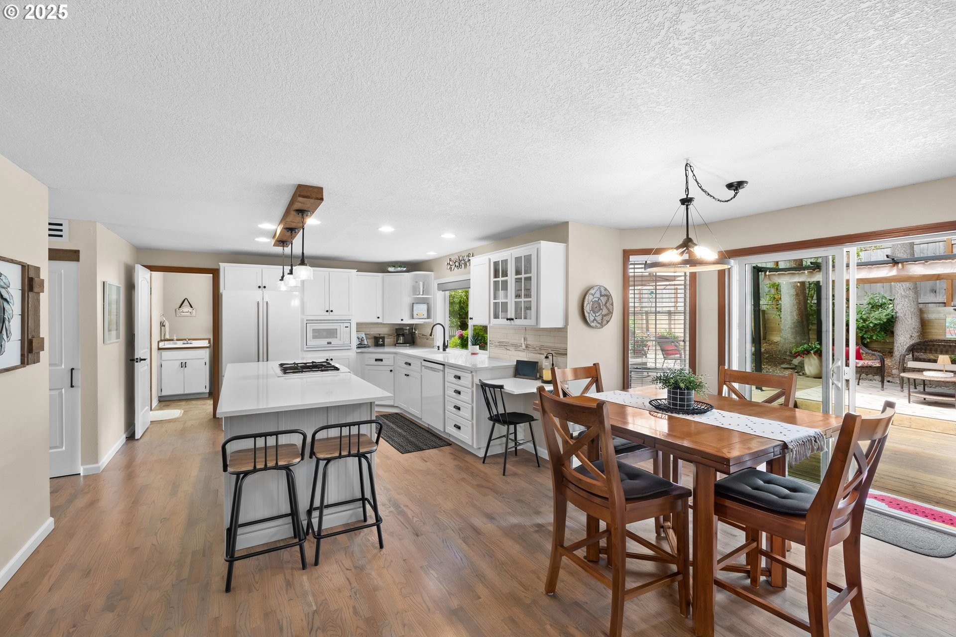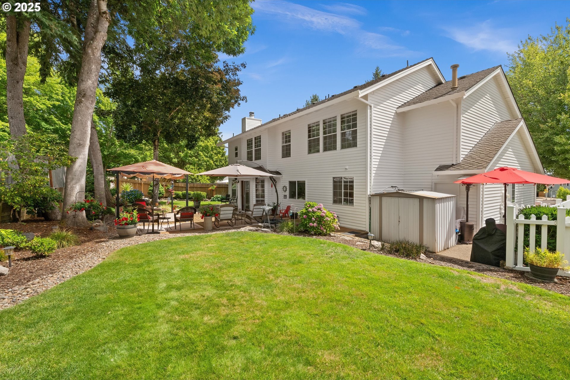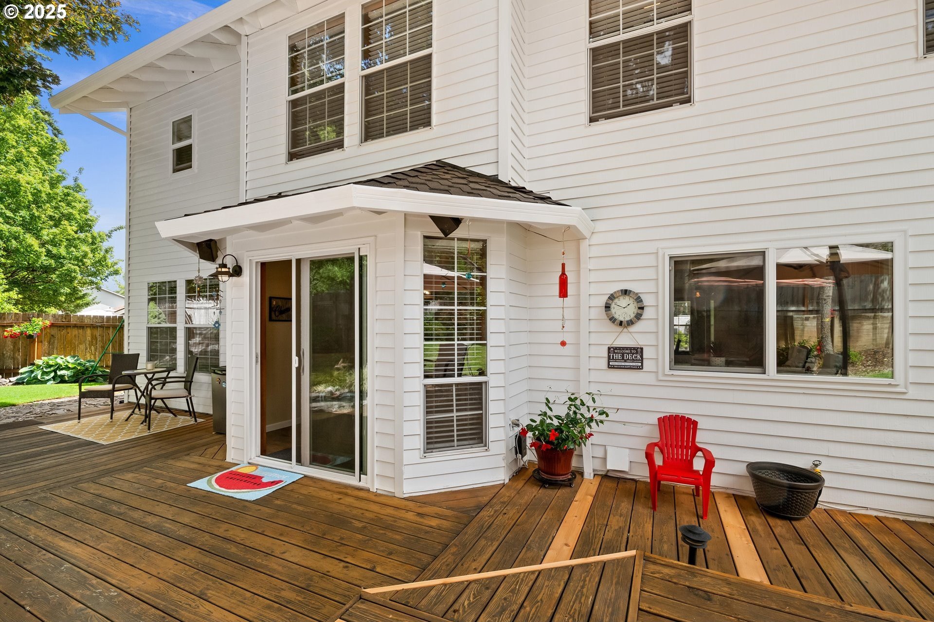 This beautiful two-story home on a cul-de-sac features high-end finishes and shows decades of pride in ownership both inside and out. The main level offers spacious rooms with French doors connecting the formal living and family rooms. The incredible open kitchen boasts custom cabinets with Coco bronze hardware, quartz countertops, and a subway tile backsplash. It includes an oversized center island, recently refinished hardwood floors, newer appliances, a pantry, and a breakfast nook. Laundry is conveniently located off the kitchen, equipped with a utility sink, a built-in counter, and cabinets with tile flooring. Upstairs, you'll find a large primary suite with a walk-in closet, double vanity, quartz countertops, three additional bedrooms, and a sizable bonus room. Off the breakfast nook, a sliding door opens to an expansive, well-maintained backyard oasis. Relax on the large cedar deck surrounded by lush landscaping—ideal for entertaining! The home is within walking distance of excellent schools and parks. No detail was spared in this home. Please see the features list for additional information.
