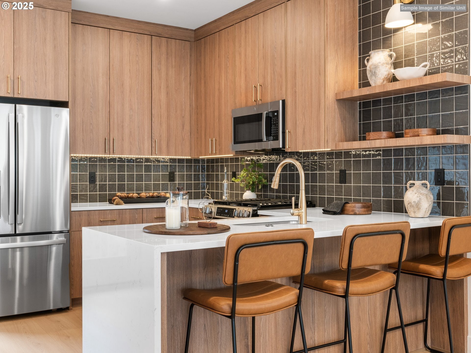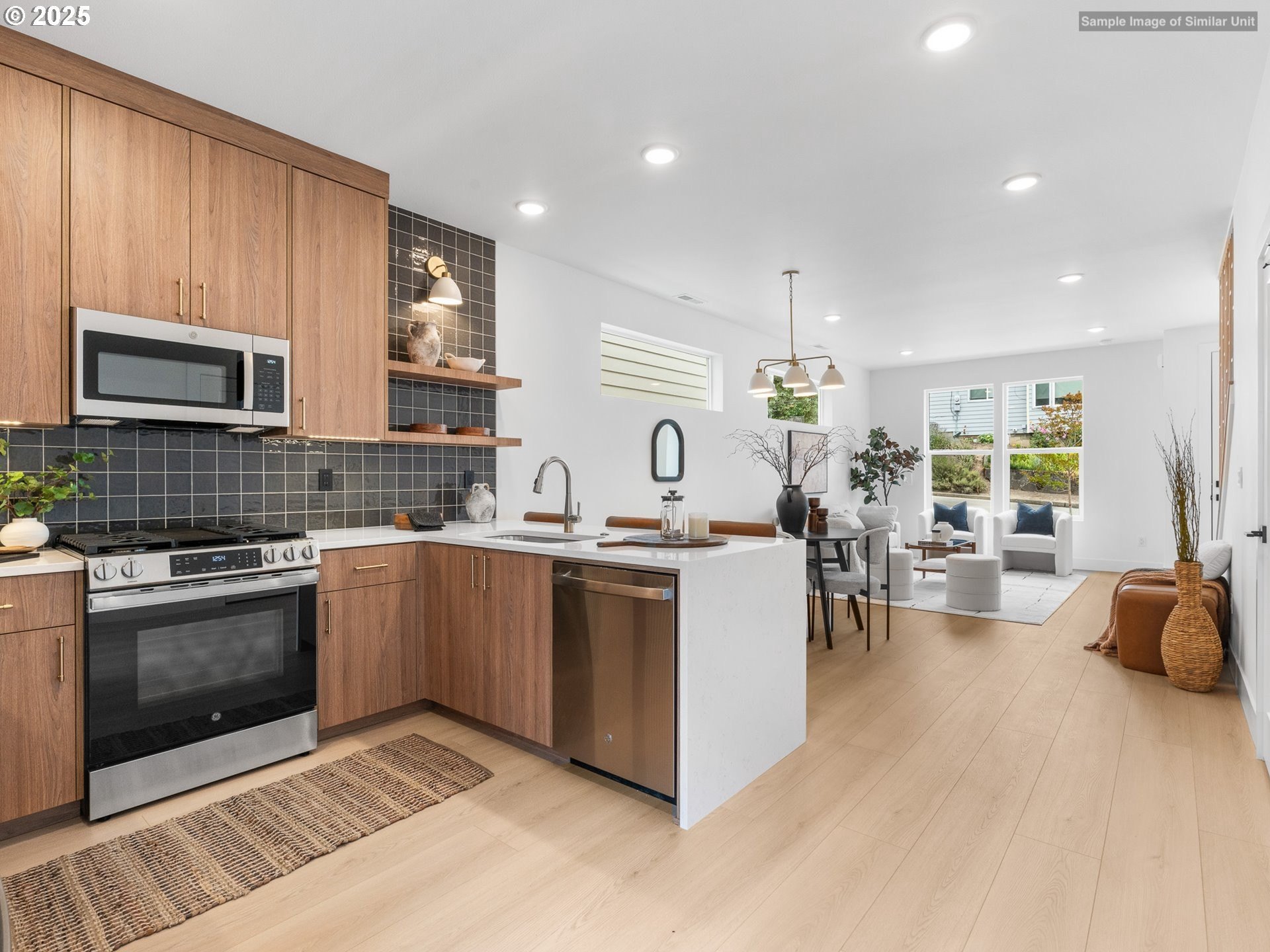 Welcome to the 2025 Street of Dreams—The Next Chapter of Portland Luxury Living Begins Here. Crafted by Aker Development, this modern masterpiece blends design-forward living with the warmth of a truly livable home. Perfectly located in Southwest Portland—just moments from the heart of Multnomah Village and the lush trails of Gabriel Park—this 3-bedroom, 2.1-bath residence offers a rare opportunity to live luxuriously in one of the city's most walkable and charming neighborhoods. Step into the light-filled great room where soaring ceilings and expansive picture windows create an uplifting sense of space. The open-concept layout is ideal for everything from lively dinner parties to lazy Sundays. In the kitchen, quartz waterfall countertops, custom soft-close cabinetry, and ENERGY STAR stainless appliances—including a built-in gas range, microwave, dishwasher, and freestanding refrigerator—offer both beauty and function. The large eat bar invites conversation while cooking or casual weeknight meals. Upstairs, the vaulted primary suite serves as a peaceful retreat with a spa-inspired ensuite bathroom, while two additional vaulted bedrooms provide space for guests, work, or creativity. Every inch of the home is elevated with custom tilework, designer hardware and lighting, Milgard windows, and a Vacuflo central vacuum system. A private patio with pavers extends your living space outdoors, ideal for summer meals, morning coffee, or container gardening. And when you step beyond your front door, daily life feels even more special. Pick up a fresh bouquet at Sage Flowers, enjoy vibrant Mediterranean flavors at Yalla, or explore the expansive craft beer selection at John’s Market—all just minutes away in Multnomah Village. With a high-efficiency HVAC system and solar-ready design, this home supports a low-impact, high-comfort lifestyle. Here, you’re not just buying a home—you’re stepping into a community known for its charm, walkability, and connection.