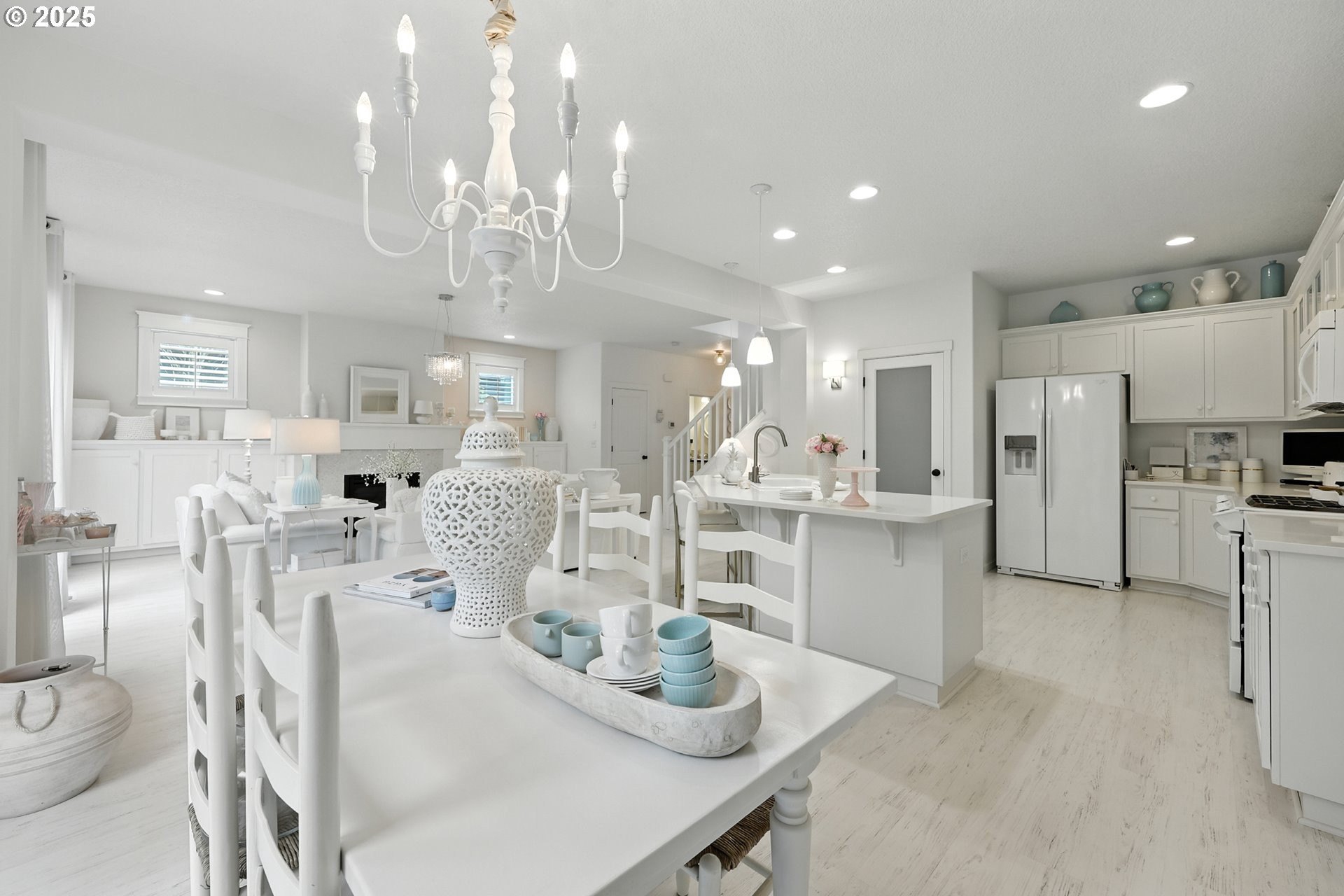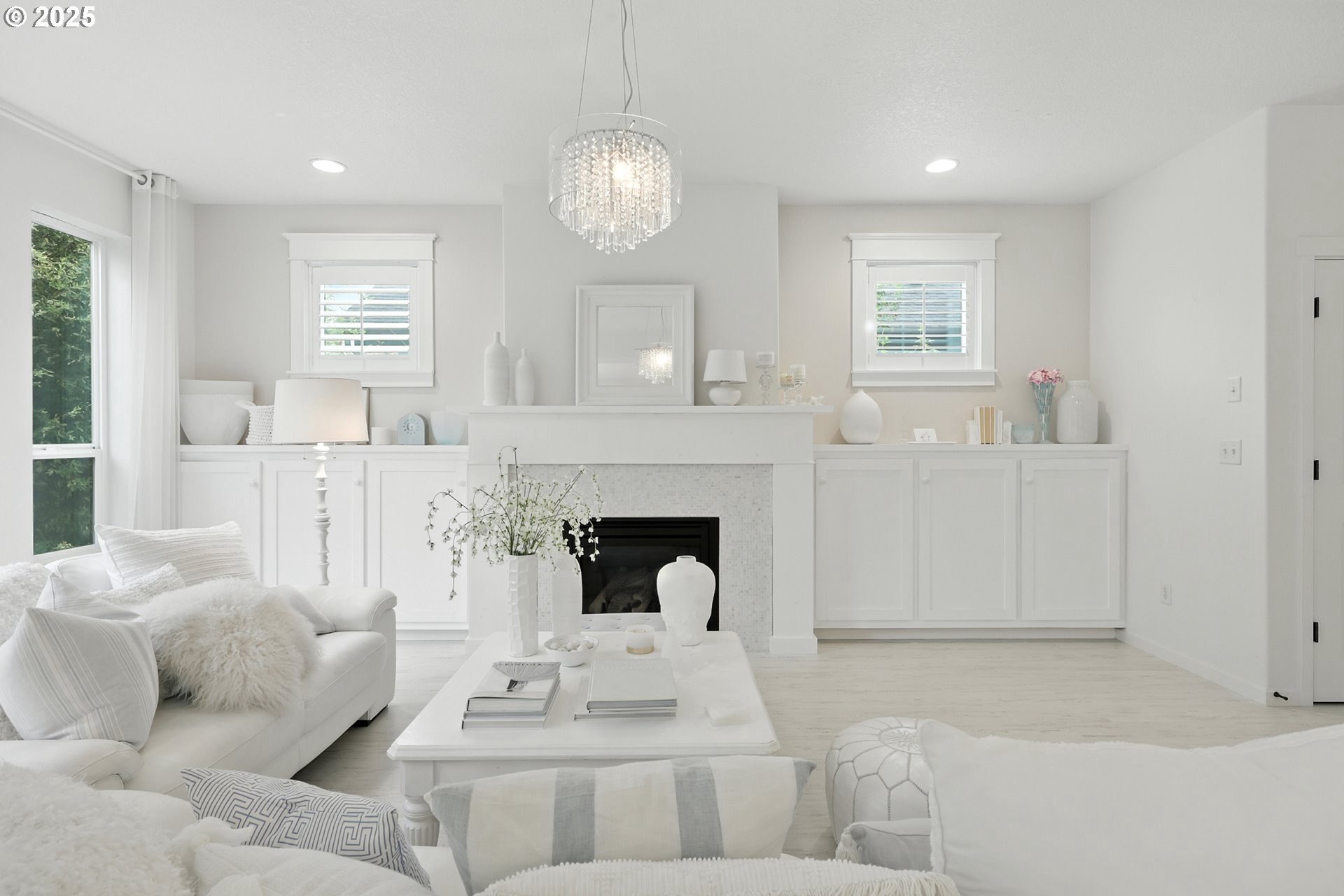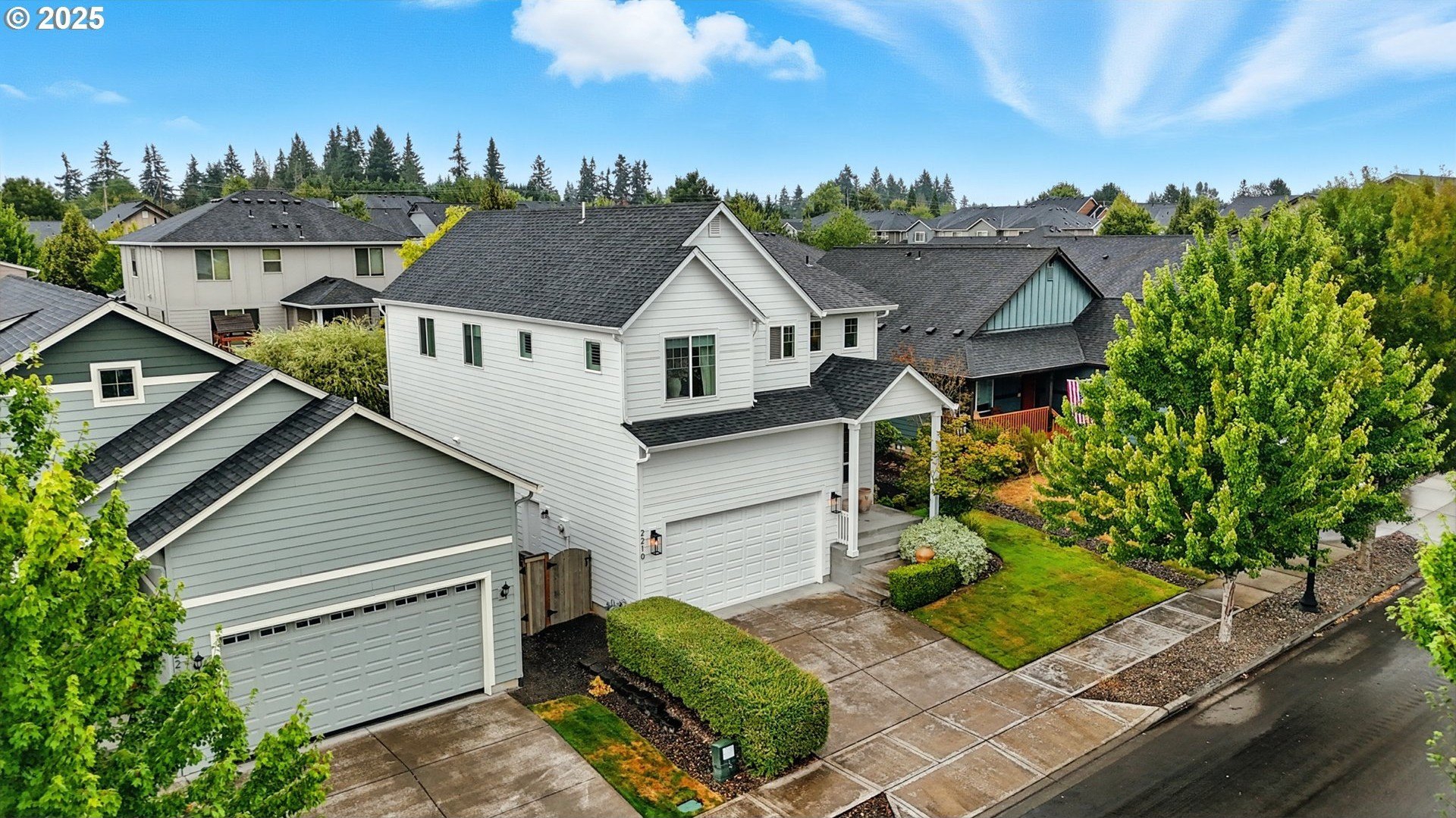Attention to detail shines throughout this meticulously maintained home in the desirable Columbia Hills Ridgefield community. Pride of ownership is evident from the moment you arrive. The light-filled living room features soaring ceilings, a cozy fireplace, and custom built-in cabinetry with a matching mantel. The gourmet kitchen offers a quartz island with sink and seating, glass-front cabinets, a pantry, and an extended dining area ideal for everyday living and entertaining. Custom atrium doors lead to an oversized, private, fully fenced backyard with two patios-perfect for relaxing or hosting gatherings. Throughout the home, enjoy custom-sized wood-wrapped windows with shutters in select rooms, laminate flooring, and new carpet in two bedrooms. An upgraded staircase railing and enhanced light fixtures in many rooms add a refined touch. The primary suite provides a peaceful retreat with vaulted ceilings, dual sinks, and a walk-in closet. Upstairs, a spacious loft with a closet offers flexible living options. Some furniture may be negotiable. This well-appointed home is truly a must-see!