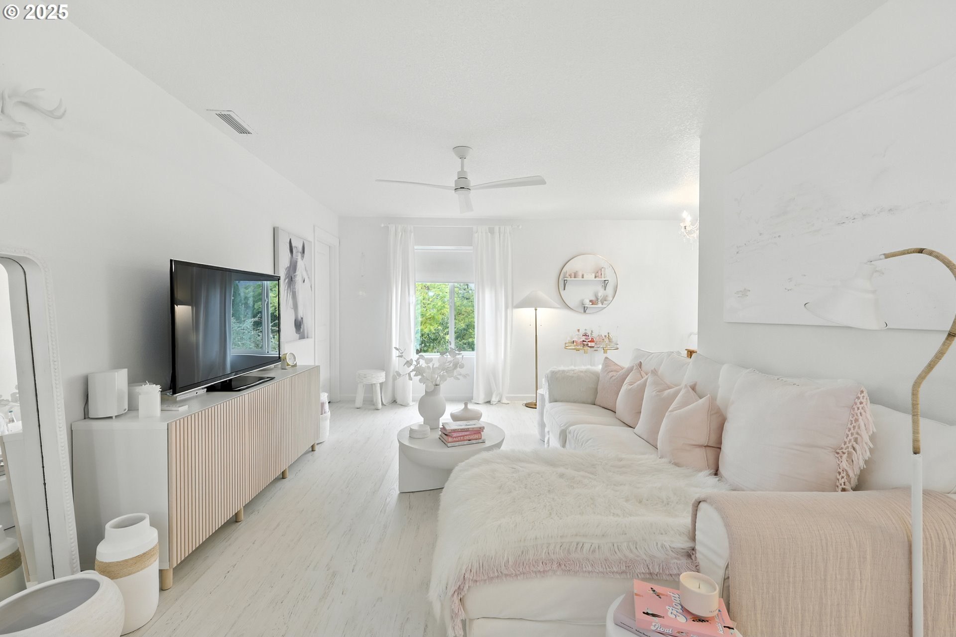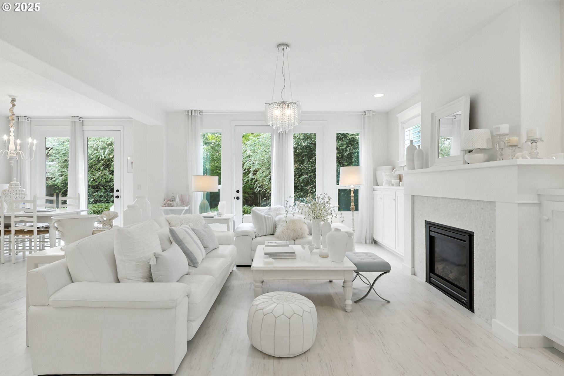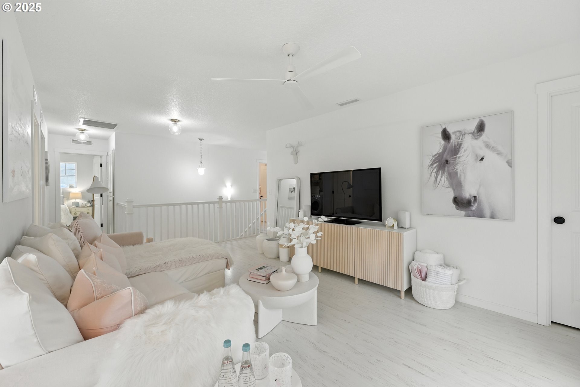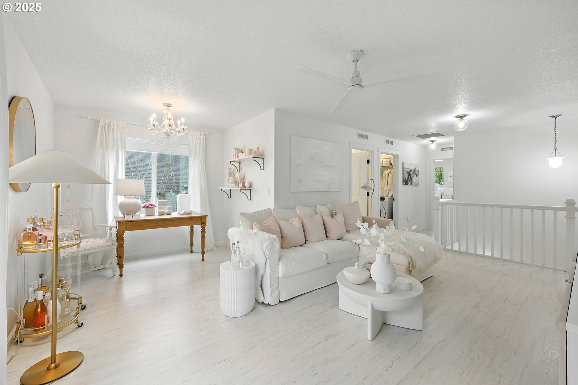 Attention to detail shines throughout this meticulously maintained home in the desirable Columbia Hills Ridgefield community. Pride of ownership is evident from the moment you arrive. The light-filled living room features soaring ceilings, a cozy fireplace, and custom built-in cabinetry with a matching mantel. The gourmet kitchen offers a quartz island with sink and seating, glass-front cabinets, a pantry, and an extended dining area ideal for everyday living and entertaining. Custom atrium doors lead to an oversized, private, fully fenced backyard with two patios-perfect for relaxing or hosting gatherings. Throughout the home, enjoy custom-sized wood-wrapped windows with shutters in select rooms, laminate flooring, and new carpet in two bedrooms. An upgraded staircase railing and enhanced light fixtures in many rooms add a refined touch. The primary suite provides a peaceful retreat with vaulted ceilings, dual sinks, and a walk-in closet. Upstairs, a spacious loft with a closet offers flexible living options. Some furniture may be negotiable. This well-appointed home is truly a must-see!