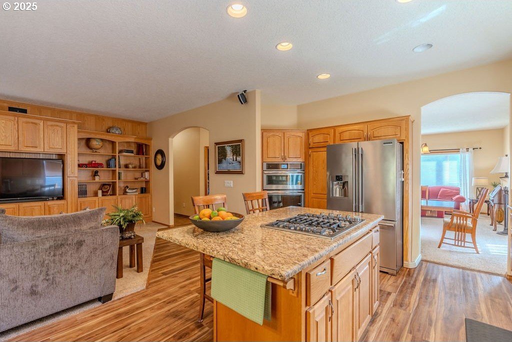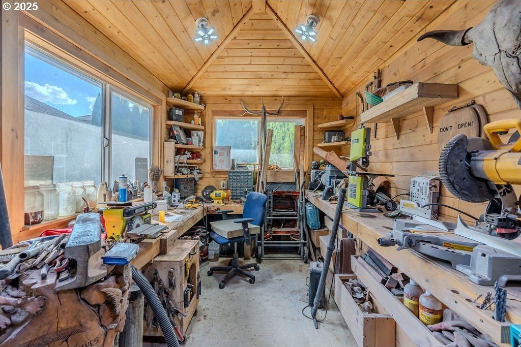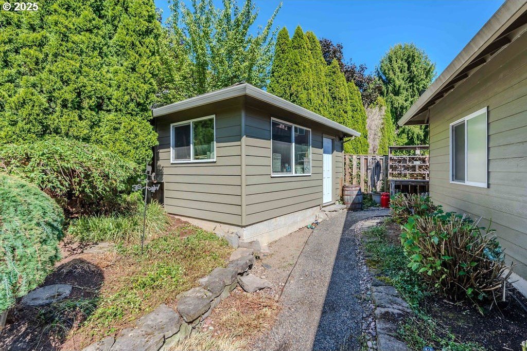 A Gem in SE Gresham! This lovely, spacious, updated one story home is pristine and move-in ready! Enter into a spacious entryway, with an inviting living/dining room. You'll walk into a large great room with beautiful CUSTOM built-ins that's open to the large, updated kitchen with granite and a large cook's island & a pantry. Gas appliances round out your cooking experience. And storage galore!!! There are 3 spacious bedrooms (one is currently being used as a den/office). The Primary bedroom has a beautiful coved ceiling, with large bath with soaking tub & shower, and a large walk-in closet. A large laundry room near the bedrooms makes laundry day easy. Off of the kitchen and through the sliding glass door is a large deck that opens up to a beautifully landscaped backyard. Also in the yard is an 18x10 woodshop, craft shop, she/shed or mancave - for use with whatever your hobby/pleasure is! Built in work bench with lots of storage makes this multi-functional. The garage also has a built-in bench and shelving, and storage up above with a built-in ladder. Newer roof, newer water heater. This home has it all! You must see it before it's gone!
