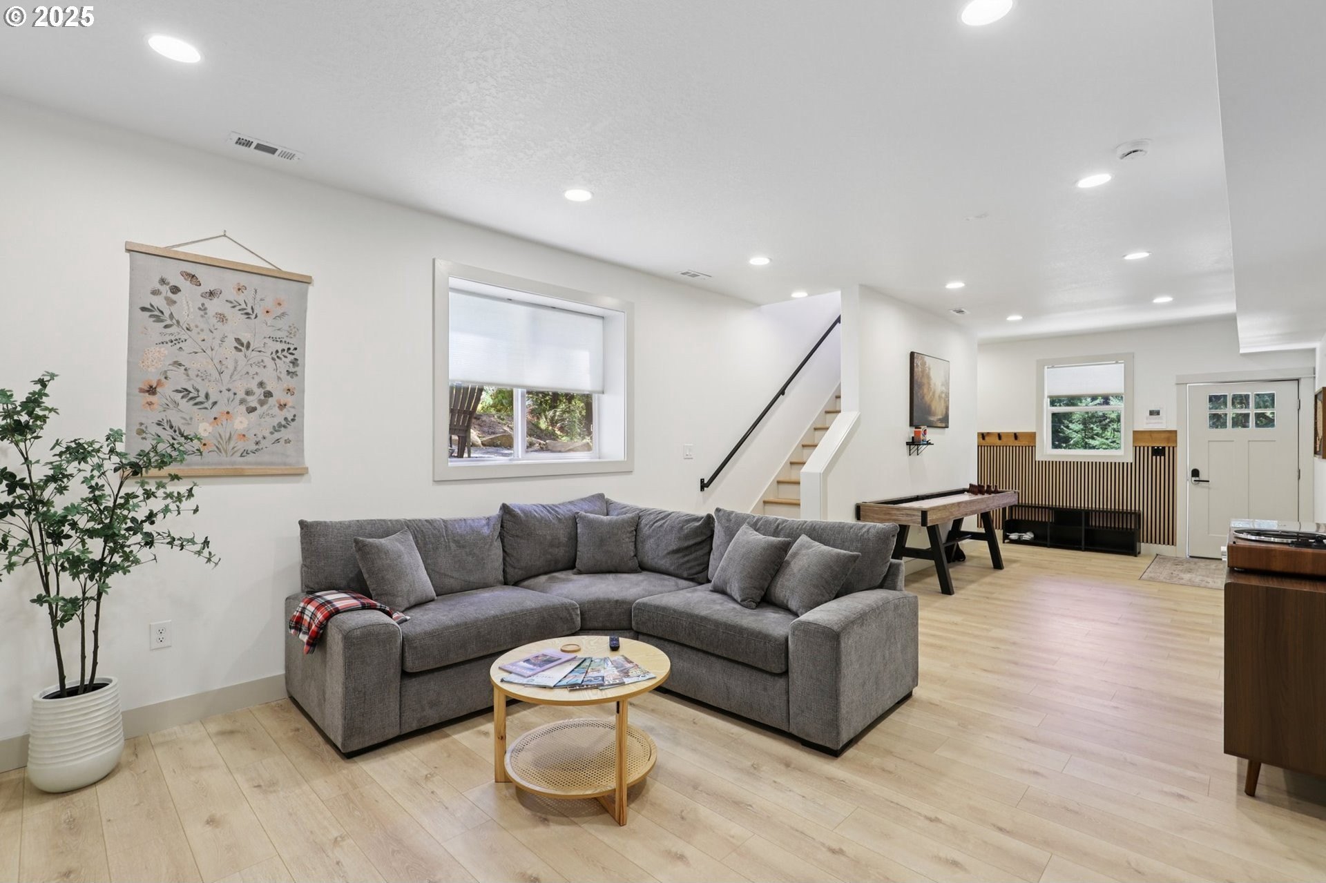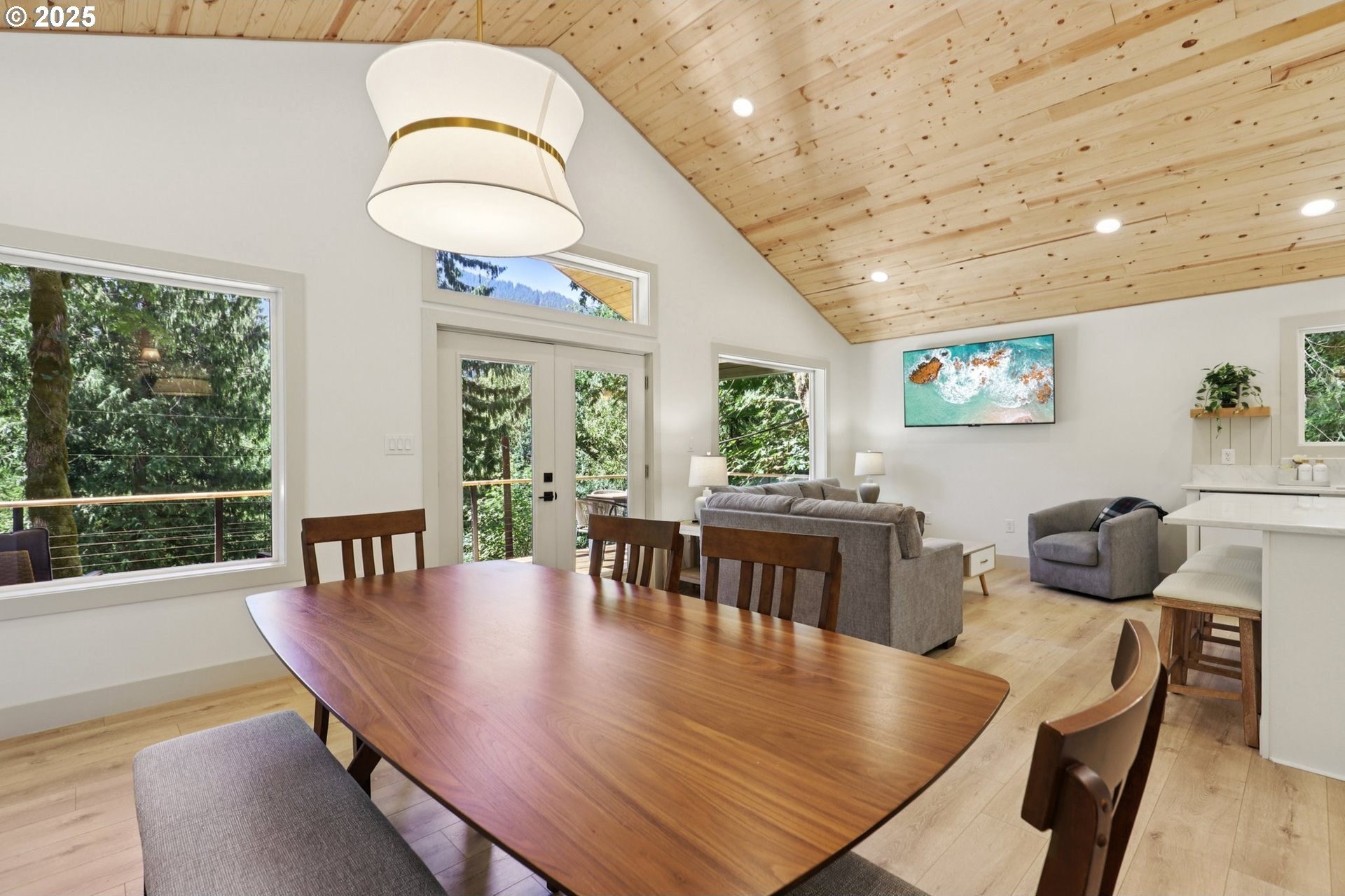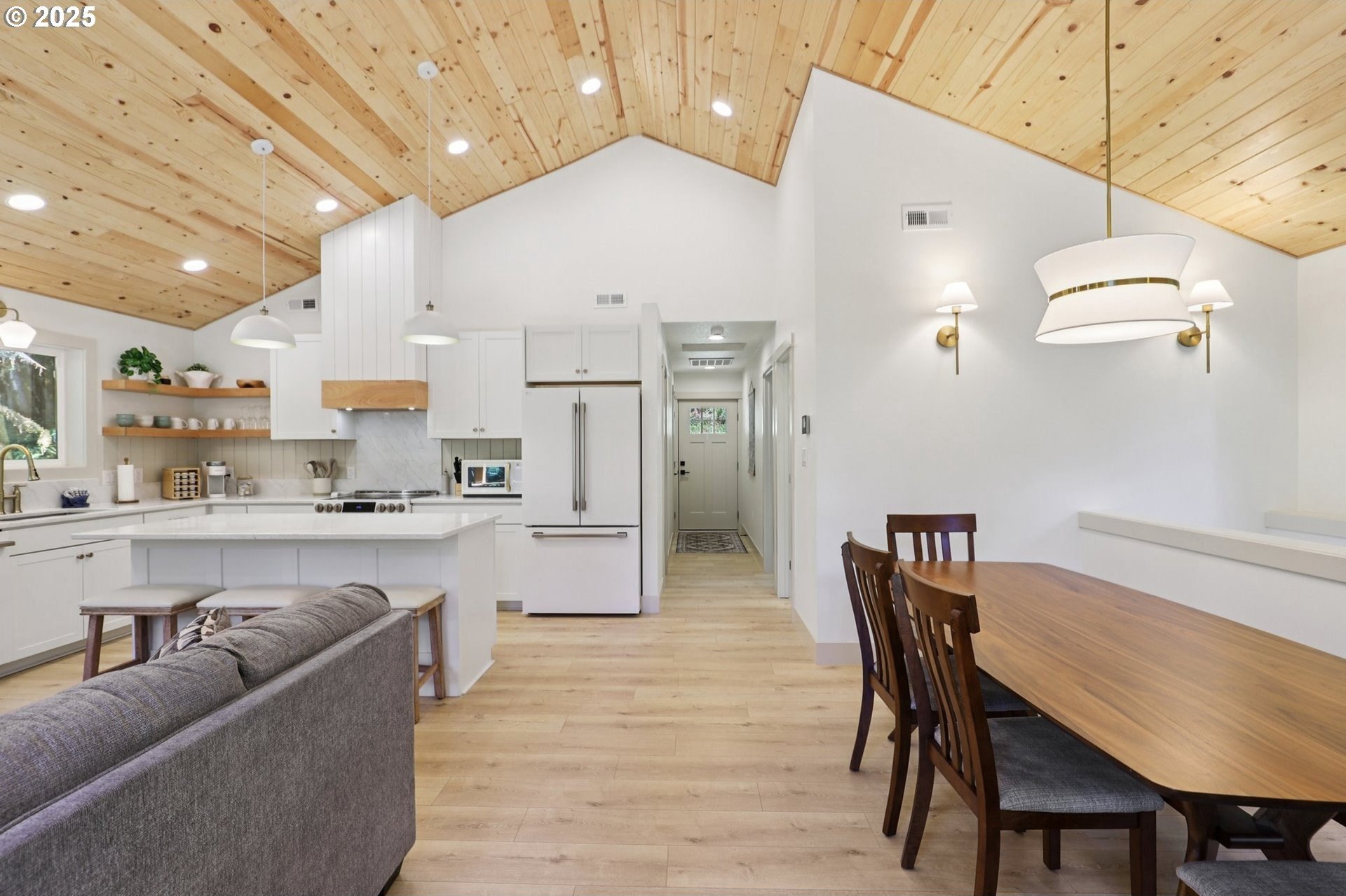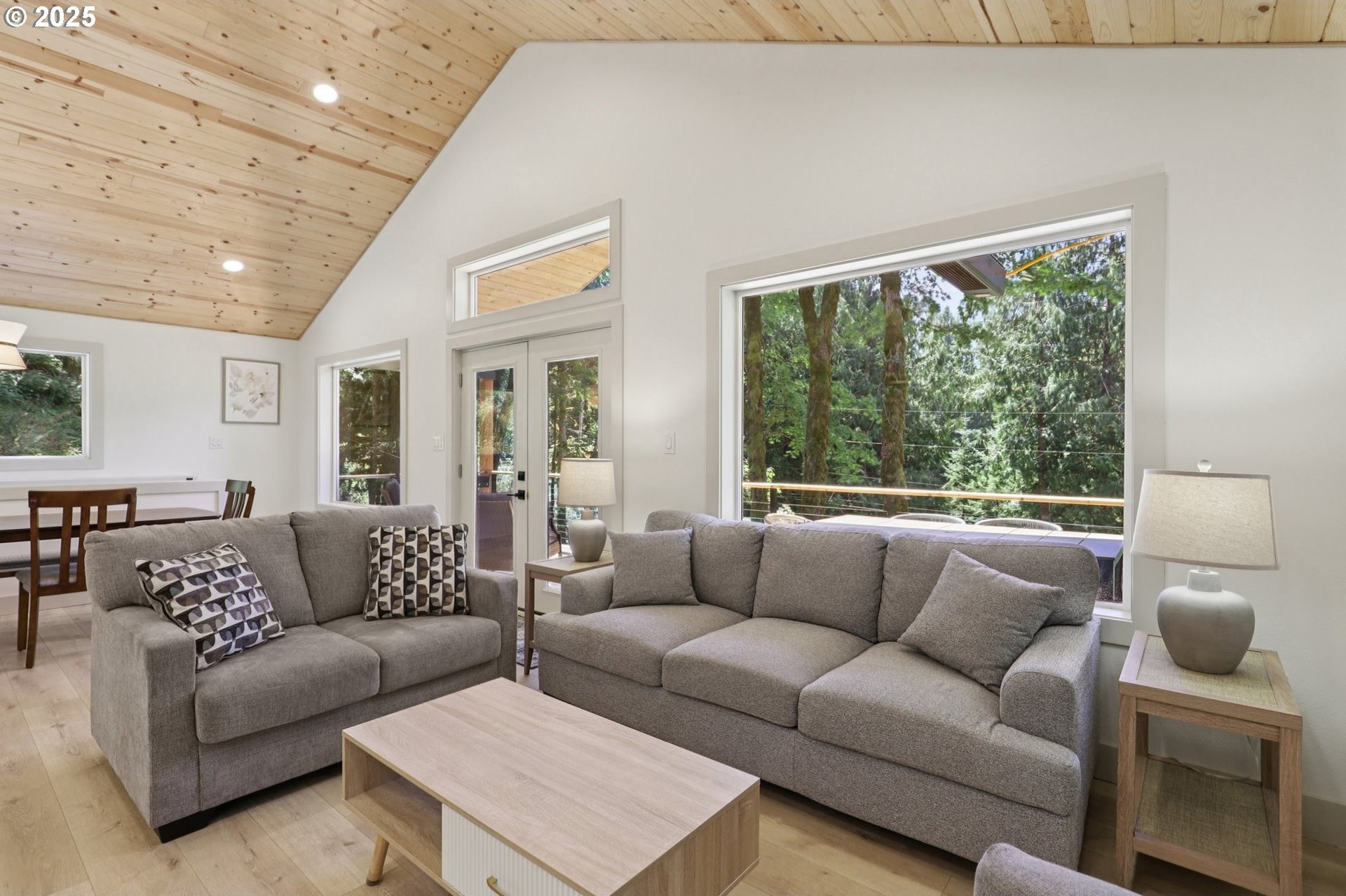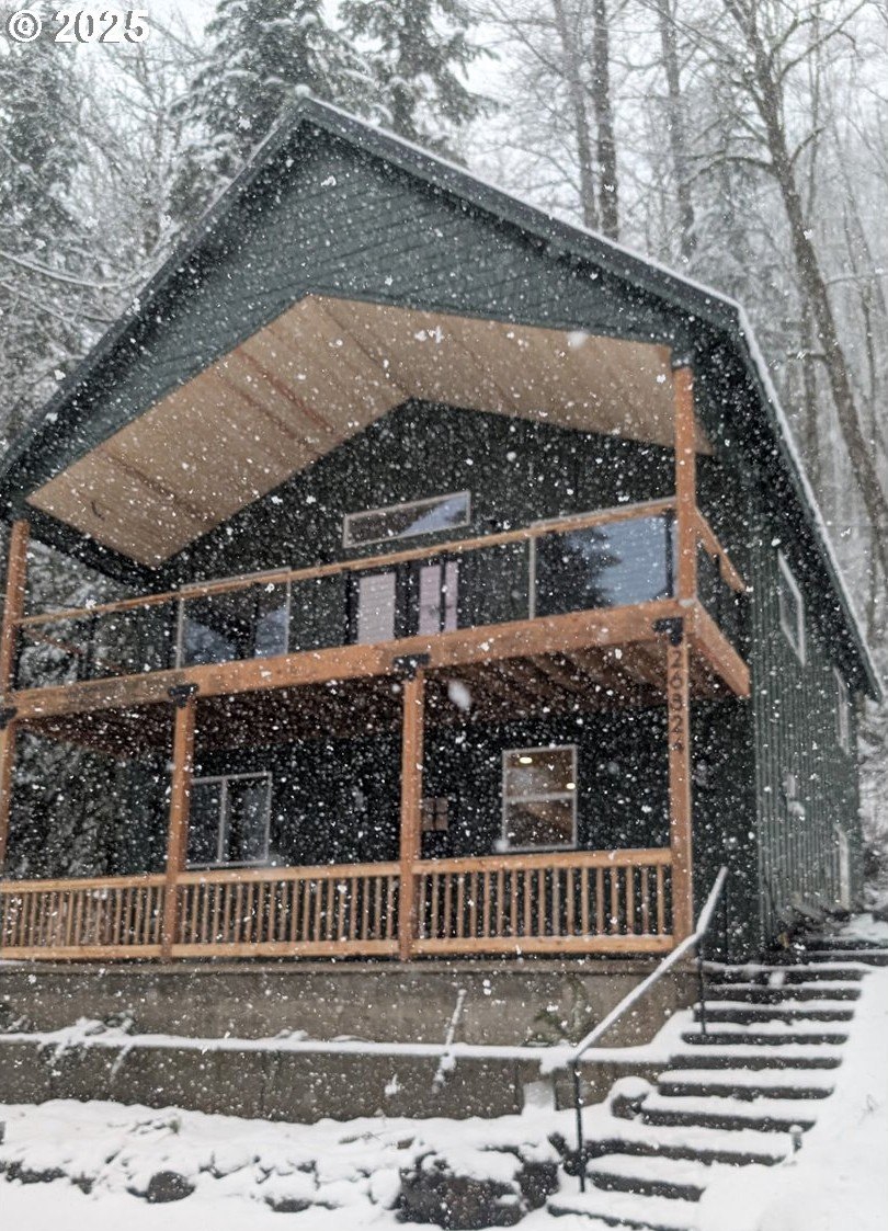 **Contemporary Mountain Chalet in Rhododendron - Your Cozy Getaway**Escape to this stunning, nearly 2,000 square foot mountain chalet, newly constructed in 2024 and nestled on a private half-acre of old-growth forest in Rhododendron. Located on peaceful Henry Creek Road, this contemporary fully furnished retreat offers the perfect balance of seclusion and convenience, just 10 minutes from Government Camp and all major ski areas, yet completely removed from highway noise.This exceptional home features 4 spacious bedrooms with smart TVs, dual living areas that function independently, and a game room with shuffleboard and 75-inch TV. The design includes 2 full bathrooms plus 1 half bath, dual-zone 5-stage heat pump heating and cooling, hybrid resilient flooring throughout, quartz countertops, and custom cabinetry. Premium touches include WiFi-connected LG Studio appliances, all interior walls feature rock-wool soundproof insulation, and vaulted wood ceilings upstairs.Outdoor living is enhanced by covered front porch and rear patio with overhead heating, while luxurious bathrooms feature walk-in showers with dual shower heads and a soaking tub. The property includes high-speed internet and connects to Rhododendron Water Association for just $450 per year unlimited water. Located just 2 minutes to local coffee shops for your morning caffeine fix.This exceptional investment opportunity comes completely furnished including all appliances making it turnkey and move-in ready, perfect for short-term rental with proven Airbnb potential. The flexible layout accommodates both couples' retreats and large groups, while the prime location provides year-round access to world-class skiing, hiking trails, and outdoor recreation. Walking distance to Henry Creek and minutes from Mirror Lake, Timothy Lake, and Trillium Lake make this a rare find in the Mt. Hood corridor. Please click on link for more pictures!! Not on leased land.