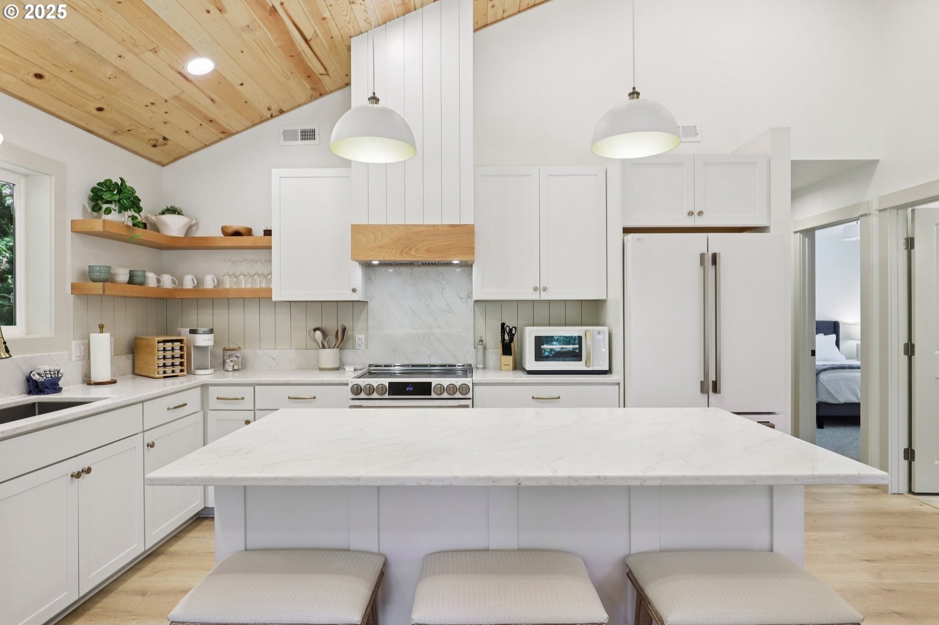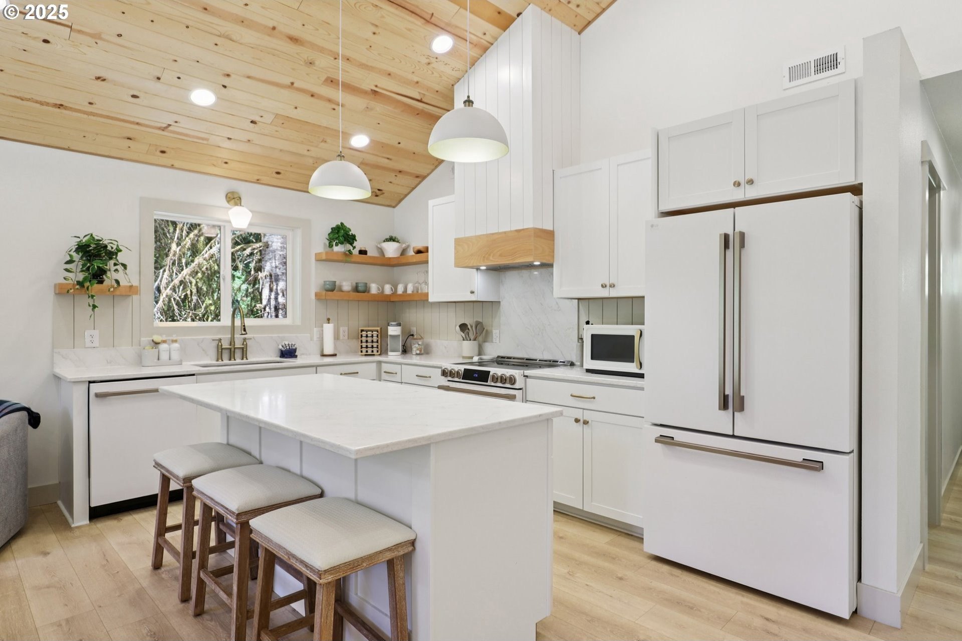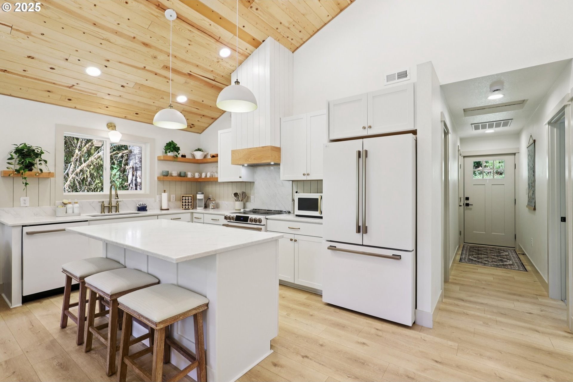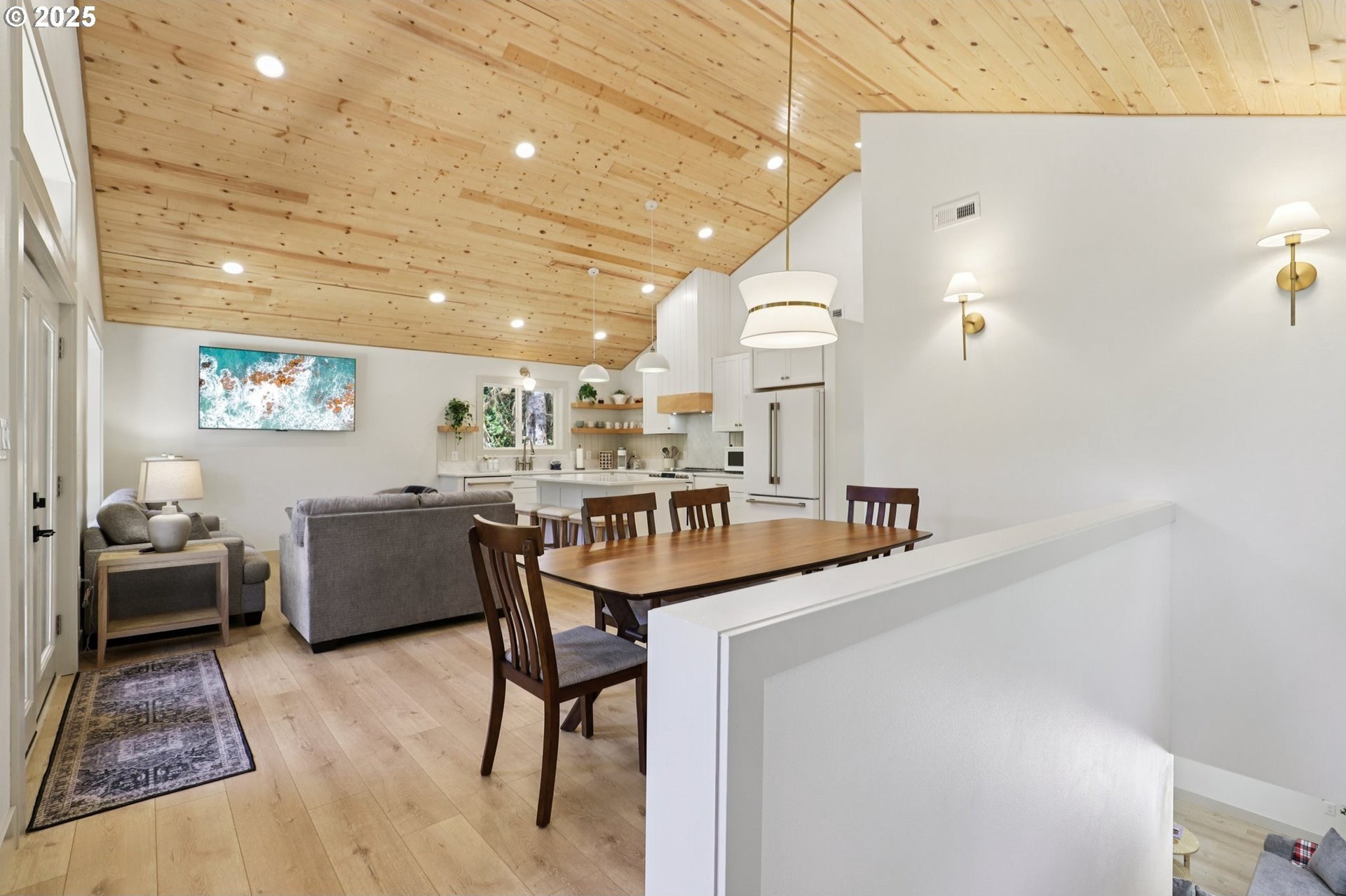 **Contemporary Mountain Chalet in Rhododendron - Your Cozy Getaway**Escape to this stunning, nearly 2,000 square foot mountain chalet, newly constructed in 2024 and nestled on a private half-acre of old-growth forest in Rhododendron. Located on peaceful Henry Creek Road, this contemporary fully furnished retreat offers the perfect balance of seclusion and convenience, just 10 minutes from Government Camp and all major ski areas, yet completely removed from highway noise.This exceptional home features 4 spacious bedrooms with smart TVs, dual living areas that function independently, and a game room with shuffleboard and 75-inch TV. The design includes 2 full bathrooms plus 1 half bath, dual-zone 5-stage heat pump heating and cooling, hybrid resilient flooring throughout, quartz countertops, and custom cabinetry. Premium touches include WiFi-connected LG Studio appliances, all interior walls feature rock-wool soundproof insulation, and vaulted wood ceilings upstairs.Outdoor living is enhanced by covered front porch and rear patio with overhead heating, while luxurious bathrooms feature walk-in showers with dual shower heads and a soaking tub. The property includes high-speed internet and connects to Rhododendron Water Association for just $450 per year unlimited water. Located just 2 minutes to local coffee shops for your morning caffeine fix.This exceptional investment opportunity comes completely furnished including all appliances making it turnkey and move-in ready, perfect for short-term rental with proven Airbnb potential. The flexible layout accommodates both couples' retreats and large groups, while the prime location provides year-round access to world-class skiing, hiking trails, and outdoor recreation. Walking distance to Henry Creek and minutes from Mirror Lake, Timothy Lake, and Trillium Lake make this a rare find in the Mt. Hood corridor. Please click on link for more pictures!! Not on leased land.