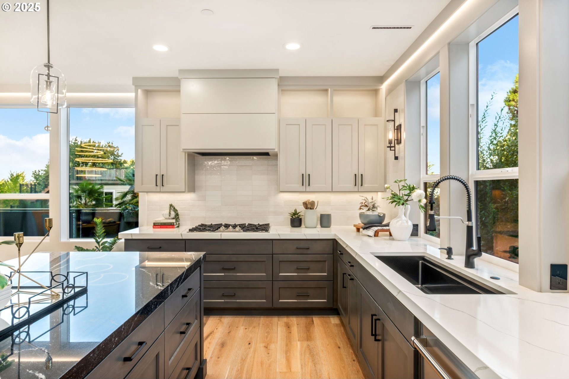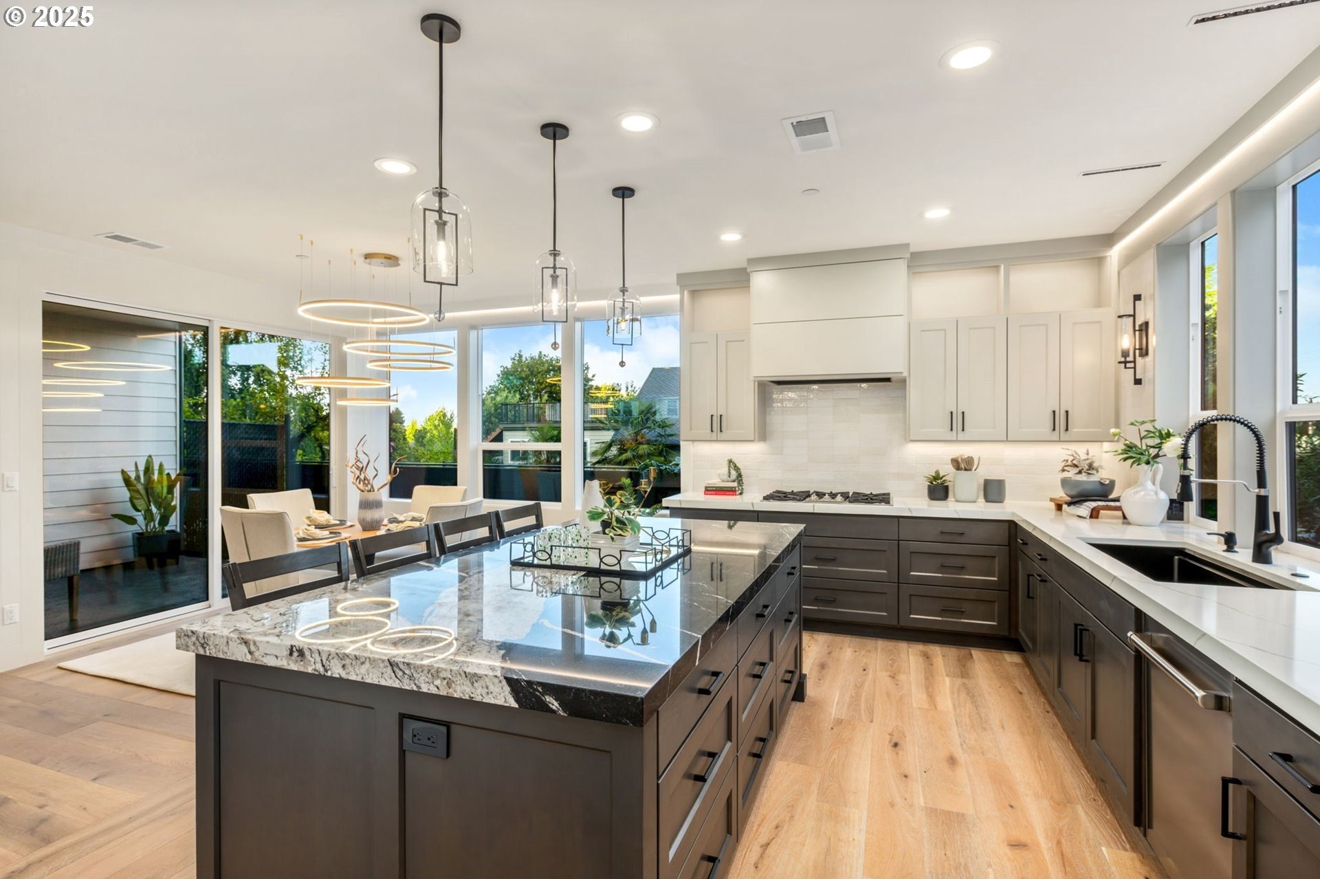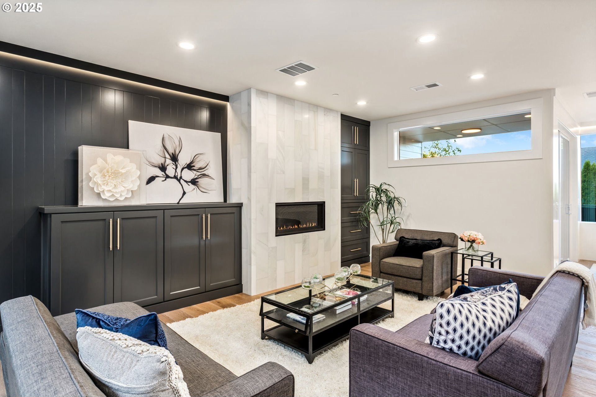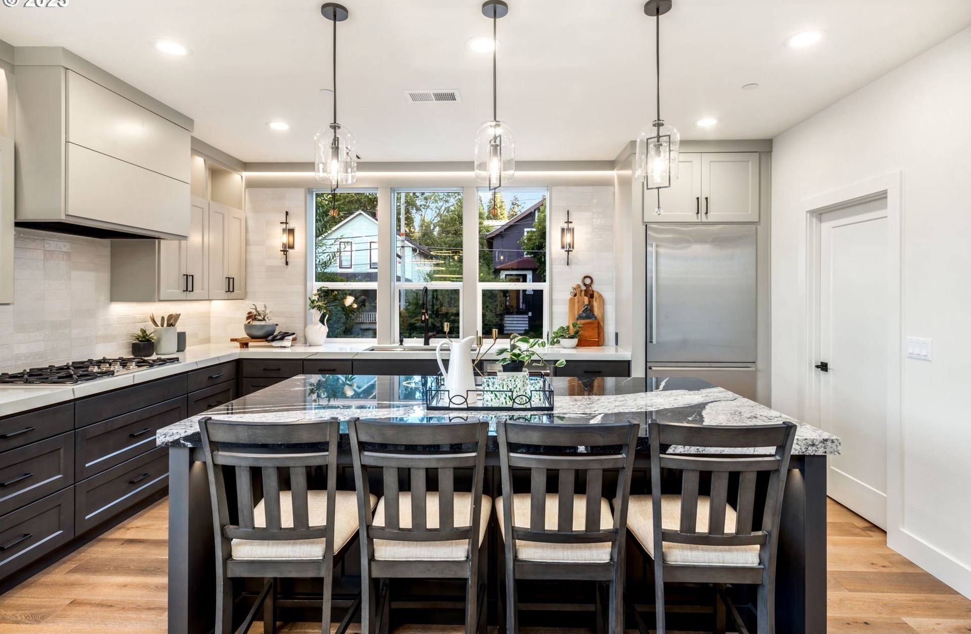 Modern Luxe × Award-Winning Craftsmanship?4 BD · 3.5 BA · 3,404 SF · John’s LandingExperience next-level design and engineering in this brand-new masterpiece by Exceptional Homes by Andre—Portland’s 2024 Luxury Structure & Style Award winner and a featured builder in the 2025 NW Natural Street of Dreams. With its striking contemporary profile, independent joist system, high-density insulation, and full one-inch airspace between walls, this home is built for beauty, strength, and whisper-quiet privacy.Panoramic Mt. Hood views are showcased from the main-level living room and kitchen, the upstairs bonus room balcony, and the serene primary suite. The gourmet kitchen features an all natural stone quartz island, gas appliances, full stainless appliance suite, and moody LED accent lighting for a sophisticated “spice-ambience” effect. The primary retreat offers private Mt. Hood views, a spa-worthy bath wrapped in Calcutta marble and walk in closet. Upstairs, the bonus entertaining space includes a wet bar and an expansive balcony—perfect for morning coffee or sunset cocktails with Mt Hood as your backdrop.Four generous bedrooms boasting a separate living area w/bedroom studio with private entrance, electrical panel & water heater - Amazing for ADU potential, guests or multigenerational living. The multiple gathering spaces allow for flexible living. A rare two-car garage provides secure parking and extra storage in coveted John’s Landing.Enjoy the best of city and nature—stroll to the Willamette River Greenway, nearby cafés, parks, and top schools, with downtown Portland, OHSU, and South Waterfront just minutes away. This is more than a home—it’s a statement of modern style, structural excellence, and everyday livability. Opportunities like this disappear fast.
