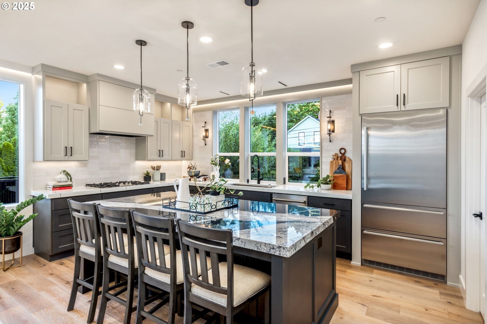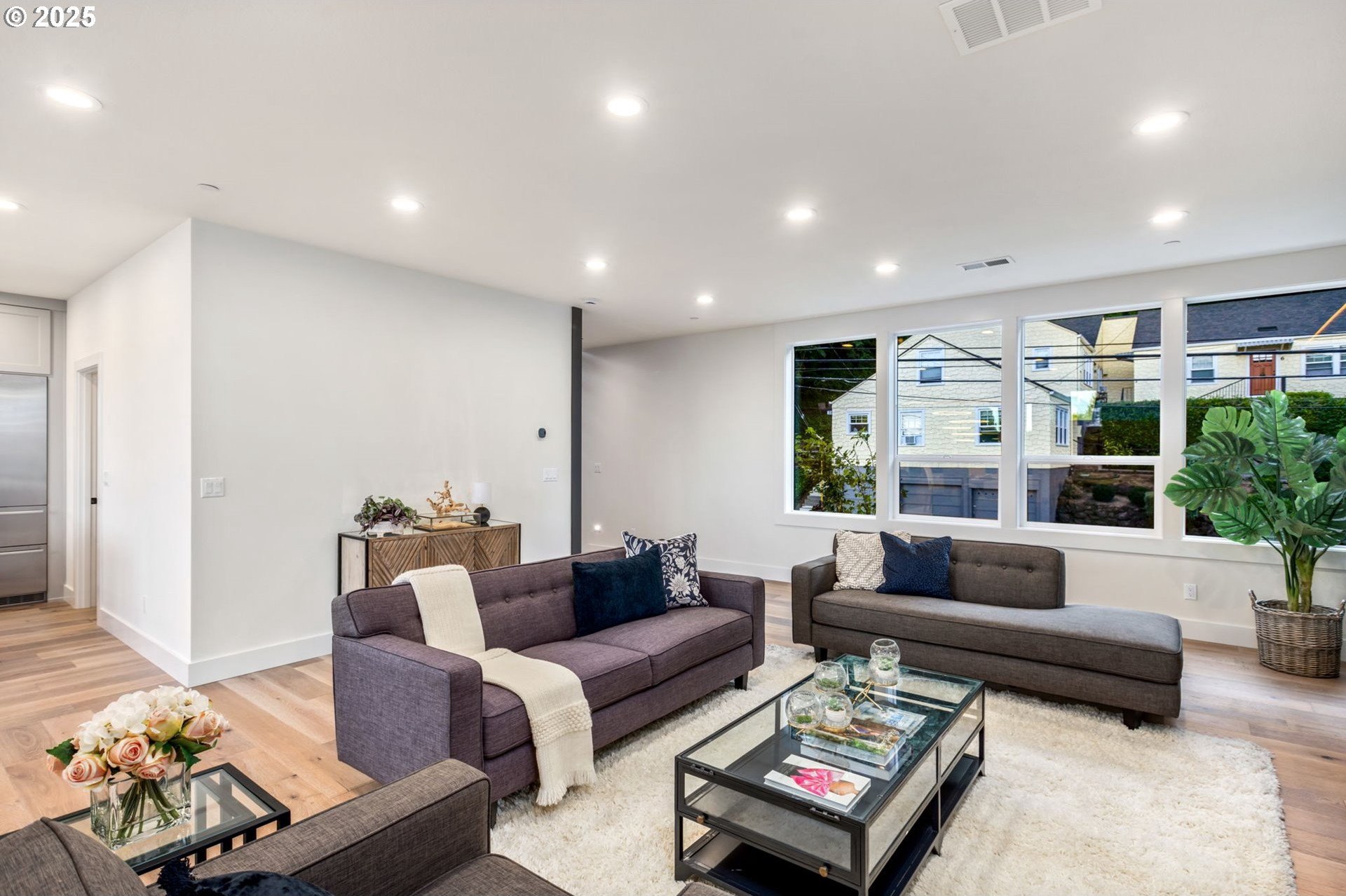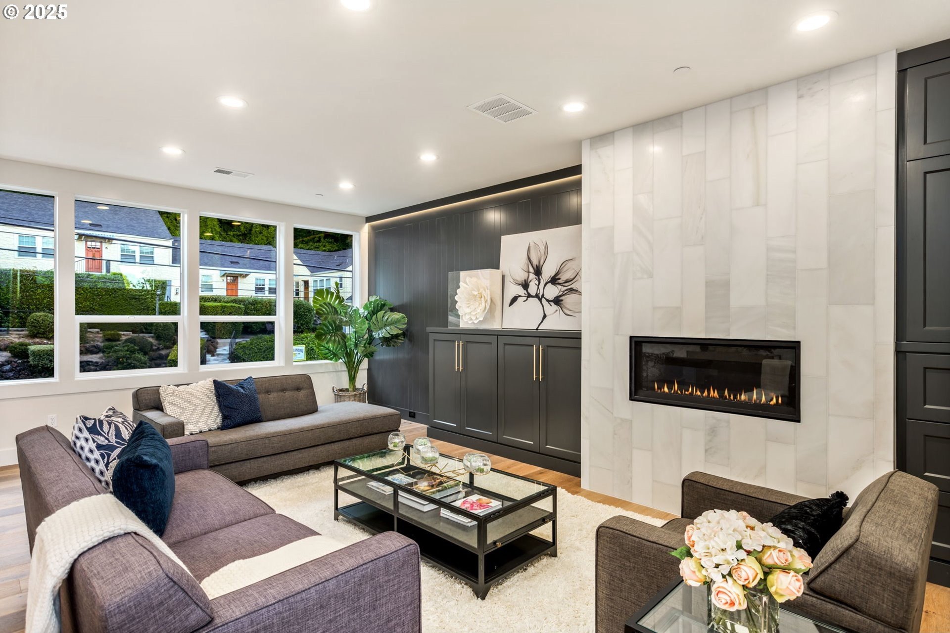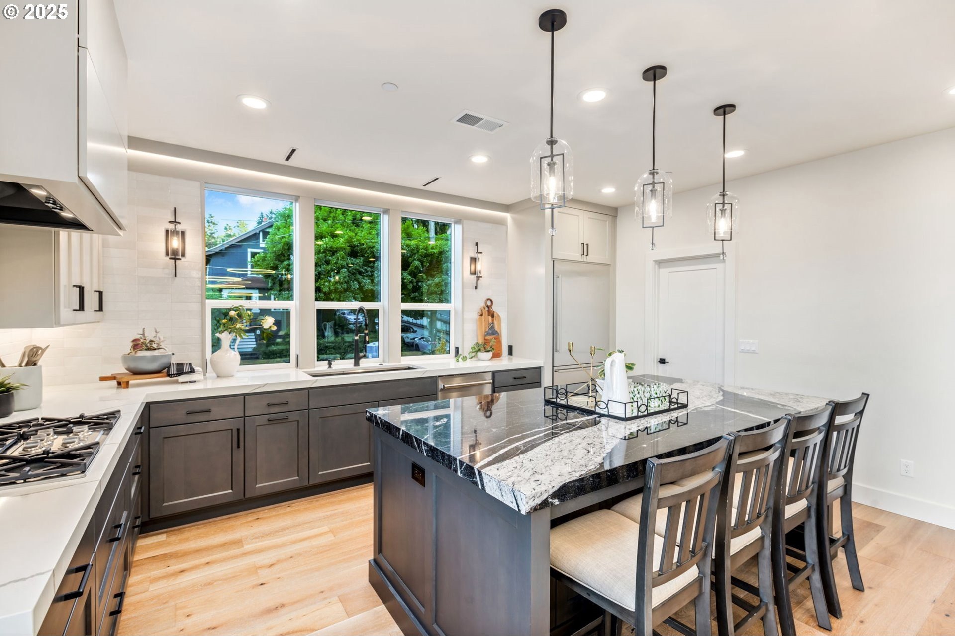 Modern Luxe × Award-Winning Craftsmanship?4 BD · 3.5 BA · 3,404 SF · John’s LandingExperience next-level design and engineering in this brand-new masterpiece by Exceptional Homes by Andre—Portland’s 2024 Luxury Structure & Style Award winner and a featured builder in the 2025 NW Natural Street of Dreams. With its striking contemporary profile, independent joist system, high-density insulation, and full one-inch airspace between walls, this home is built for beauty, strength, and whisper-quiet privacy.Panoramic Mt. Hood views are showcased from the main-level living room and kitchen, the upstairs bonus room balcony, and the serene primary suite. The gourmet kitchen features an all natural stone quartz island, gas appliances, full stainless appliance suite, and moody LED accent lighting for a sophisticated “spice-ambience” effect. The primary retreat offers private Mt. Hood views, a spa-worthy bath wrapped in Calcutta marble and walk in closet. Upstairs, the bonus entertaining space includes a wet bar and an expansive balcony—perfect for morning coffee or sunset cocktails with Mt Hood as your backdrop.Four generous bedrooms boasting a separate living area w/bedroom studio with private entrance, electrical panel & water heater - Amazing for ADU potential, guests or multigenerational living. The multiple gathering spaces allow for flexible living. A rare two-car garage provides secure parking and extra storage in coveted John’s Landing.Enjoy the best of city and nature—stroll to the Willamette River Greenway, nearby cafés, parks, and top schools, with downtown Portland, OHSU, and South Waterfront just minutes away. This is more than a home—it’s a statement of modern style, structural excellence, and everyday livability. Opportunities like this disappear fast.
