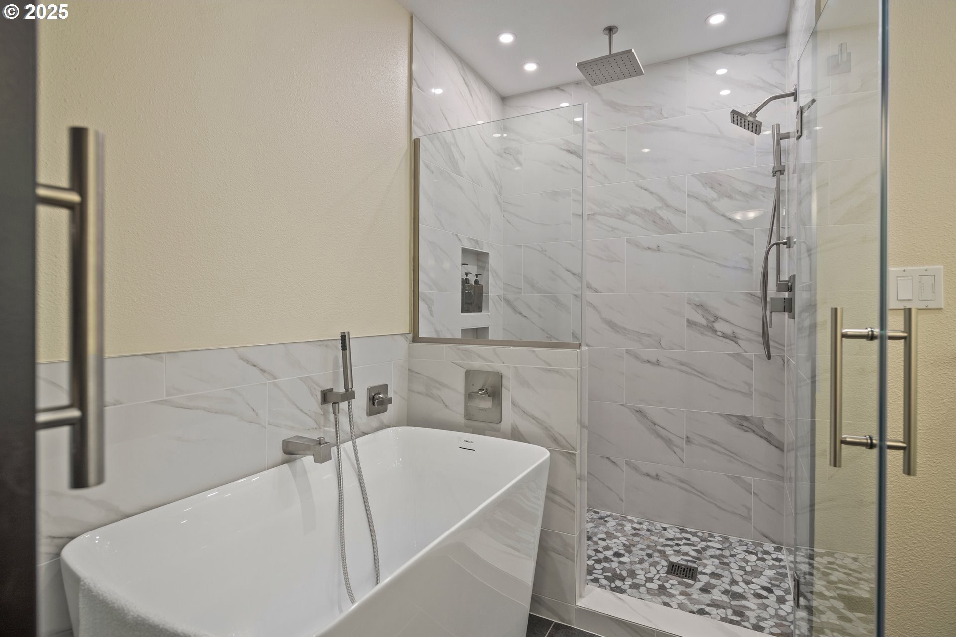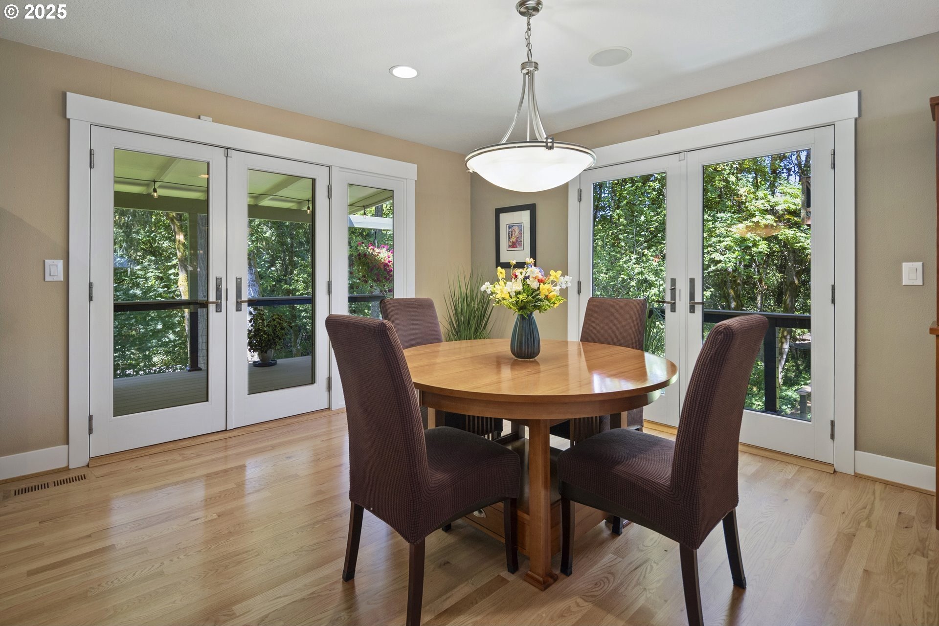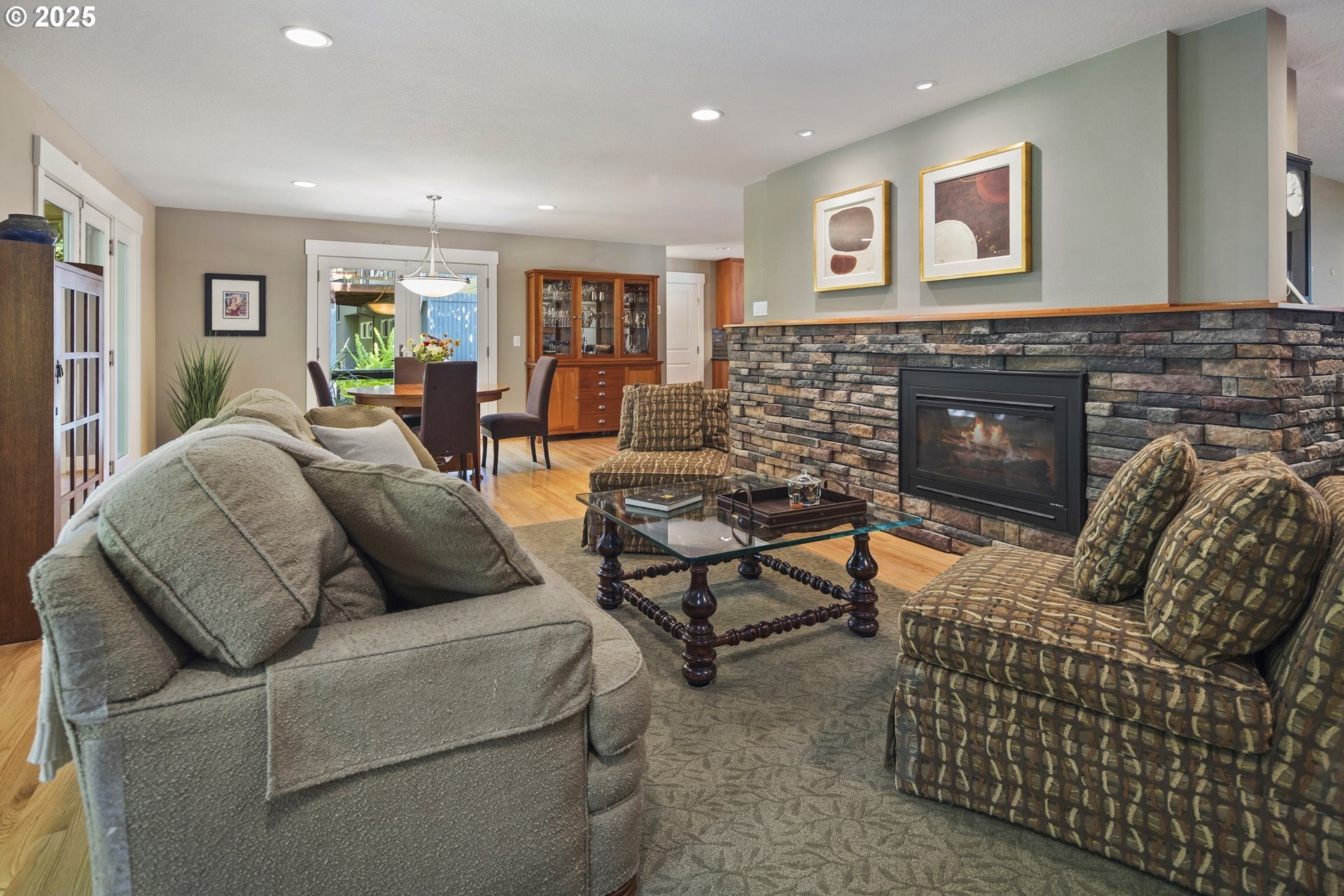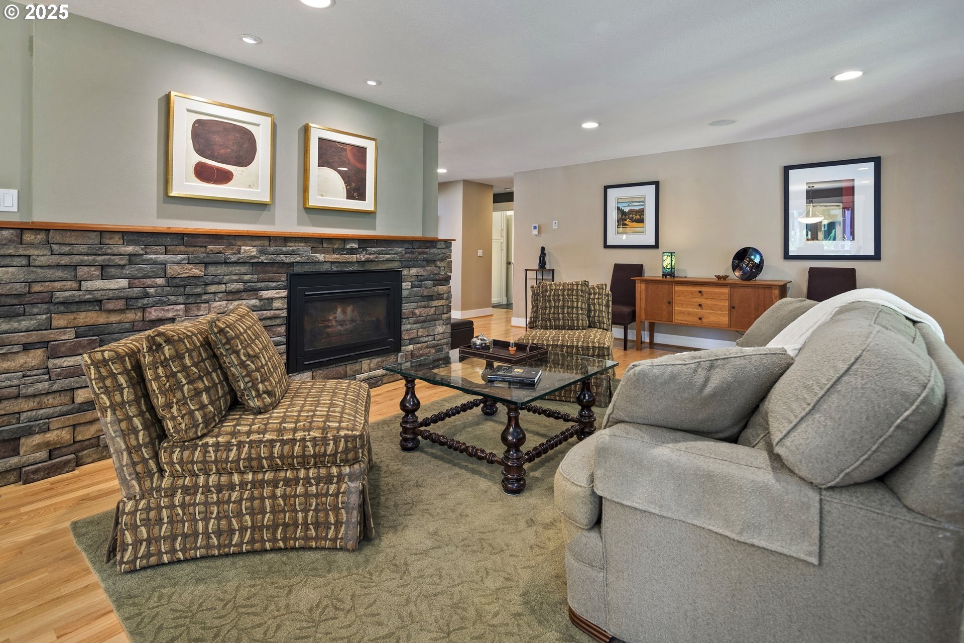 Lake Oswego Daylight Ranch – Remodeled to Perfection. This exquisitely updated 3-bedroom, 3-bath daylight ranch offers 3,408 sq ft of refined living space with exceptional attention to detail throughout. Thoughtful upgrades and luxurious finishes create a home that blends style, comfort, and functionality. The gourmet kitchen features custom cherry cabinets, slide-out shelving, slab granite counters, 6-burner cooktop, double convection ovens and microwave, ultra-quiet exhaust system, 3 dishwashers, fireplace, elegant entertainment lighting. The kitchen opens to a bright family room with gas fireplace, expansive windows and patio door opening to a large deck. The main level includes the primary and second bedrooms, each featuring fully updated baths, hardwood floors and a stairway leading to the lower level with a spacious family room, custom-built bar, insulated wine cellar, third bedroom with a remodeled full bath, versatile media/exercise room, and a gas fireplace perfect for cozy gatherings. Recent 2024/2025 updates include: new decking on two decks, fully updated bathrooms with quartz counters, tile floors, new vanities, and tile-bottom showers, new roof, gutters, new lower level windows and patio doors, solid core interior doors, baseboards & trim, and new exterior paint. The large, wooded backyard offers privacy, serenity, and outdoor enjoyment. Move-in ready, this Lake Oswego daylight ranch embodies timeless craftsmanship and modern luxury, offering versatile living spaces and sophisticated upgrades throughout. Every detail has been carefully curated, from the gourmet kitchen and beautifully appointed fireplaces to the fully updated bathrooms and resurfaced decks. Situated within the highly regarded Lake Oswego school district and the Greentree Pool boundary, this extensively remodeled home presents a rare opportunity to enjoy elegance, comfort, and functionality—perfect for entertaining or everyday living in one of Lake Oswego’s most desirable neighborhoods.