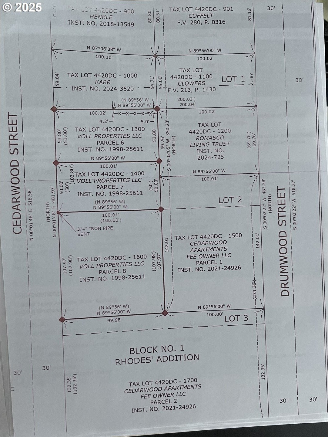 Approximately, 10,800 sqft (108'x 100' per surveyor), level lot, zoned R-3. Tax lot 1600 on the plat map photo. Water meter already at this lot from previous house that was removed. Check with City on utilities availability and permitted uses, including "middle housing" which allows duplexes, triplexes, cottage clusters and townhouses. This zoning also permits tiny houses, single detached dwellings and accessory dwelling units (ADU's). Buyer to confirm with city on all permitted uses, costs and requirements associated with building on the lot. Lot is only a few blocks from Linfield University and downtown McMinnville. This lot will only be sold along with the two adjacent lots, of 5,380 sqft and 5,001 sqft (RMLS #683109000 and #594960678). Although, the two adjacent lots can be sold separately. Seller is related to a licensed Oregon Realtor.