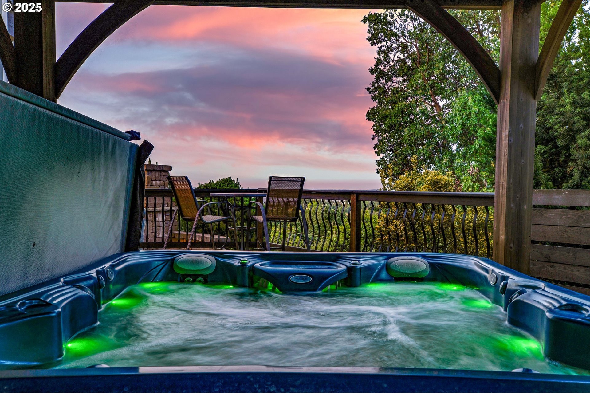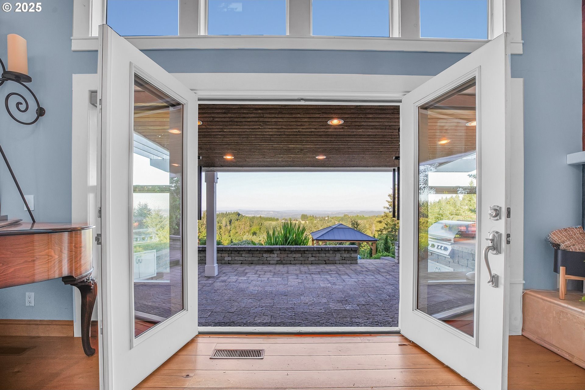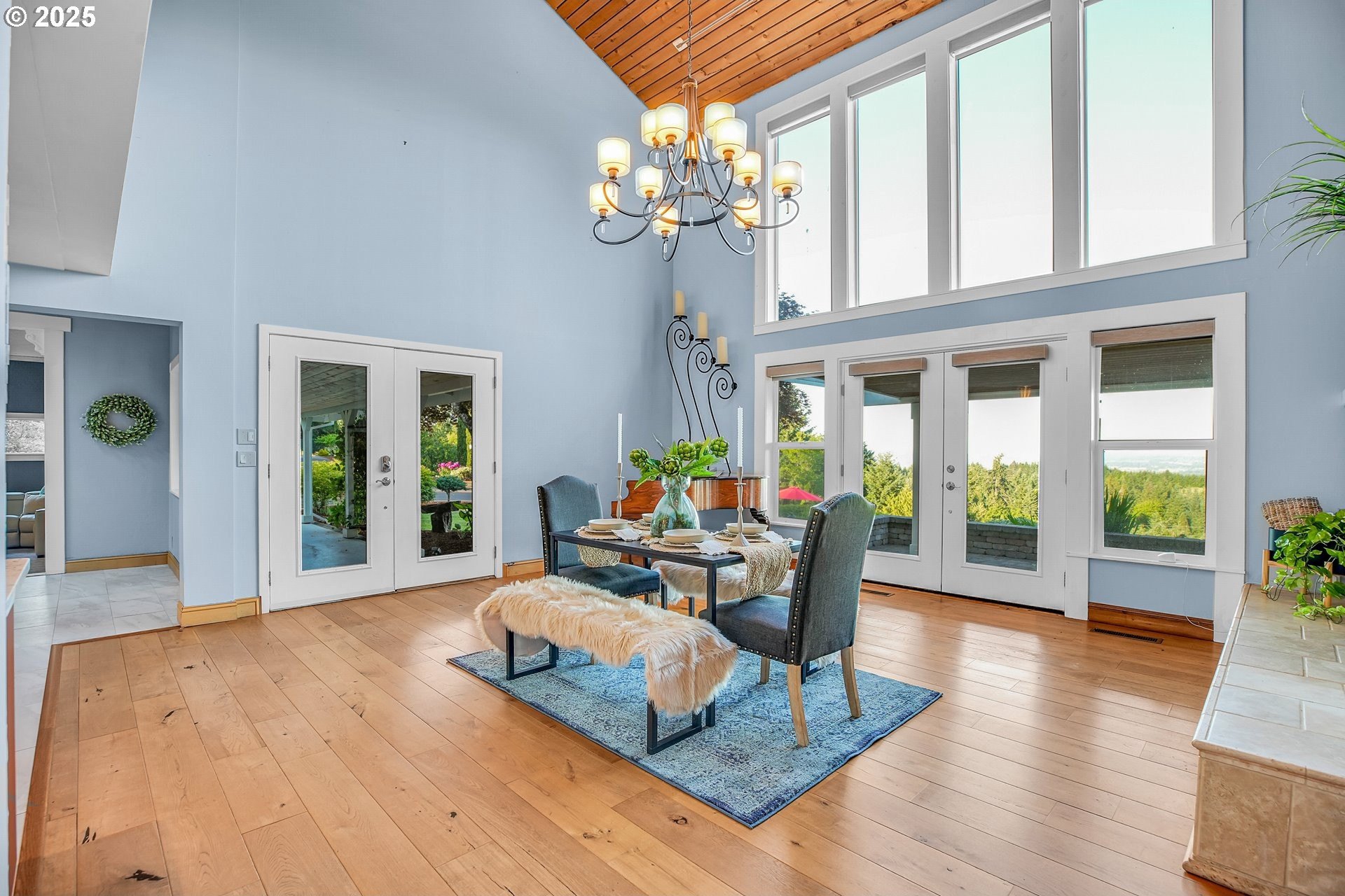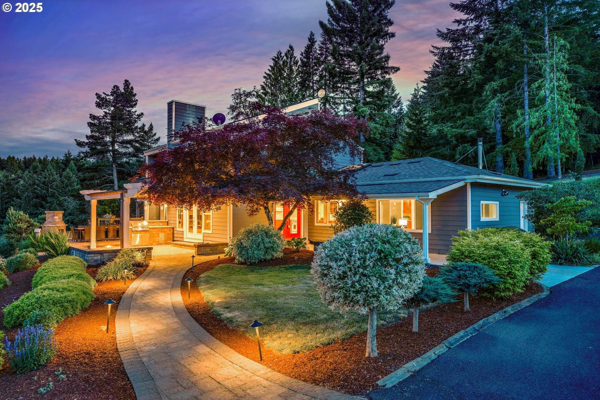 Welcome to a truly one-of-a-kind contemporary masterpiece, offering a private retreat on 3 acres with showstopper panoramic Mt. Hood and the valley views. This stunning 2-bedroomwith optional nonconforming 3rd bedroom/office upstairs, 2-bathroom, 2,400 sq ft home seamlessly blends modern amenities with elegant French countryside touches, including wood-wrapped arched windows, French doors, and hardwood floors. The heart of the home, a completely remodeled kitchen, boasts professional-grade cooking and venting, dual wine fridges, new cabinetry, countertops, and appliances – a chef's dream. Soaring vaults and open upstairs loft create an original and expansive feel while maintaining a warm, comfortable ambiance. Step outside to an entertainer's paradise and enjoy a covered patio with an outdoor cooking area, perfect for al fresco dining. Relax and soak in the breathtaking views from the hot tub or take a dip in the heated/cooled saltwater inground pool, complete with an electric pool cover. Beyond the main residence, discover an incredible 87' x 22' dream garage/shop. This ultimate space features a luxury full bathroom, heated floors, industrial mechanical systems, three parking bays, a dog washing station, laundry facilities, and a heated/cooled office space. This property isn't just a home; it's a lifestyle of unparalleled comfort, luxury, and tranquility. Additionally, this property offers unlimited potential for a separate ADU in the garage/shop already has full bathroom and laundry, Wedding venue that already has parking lot for 25-30 cars, Vinyard tast