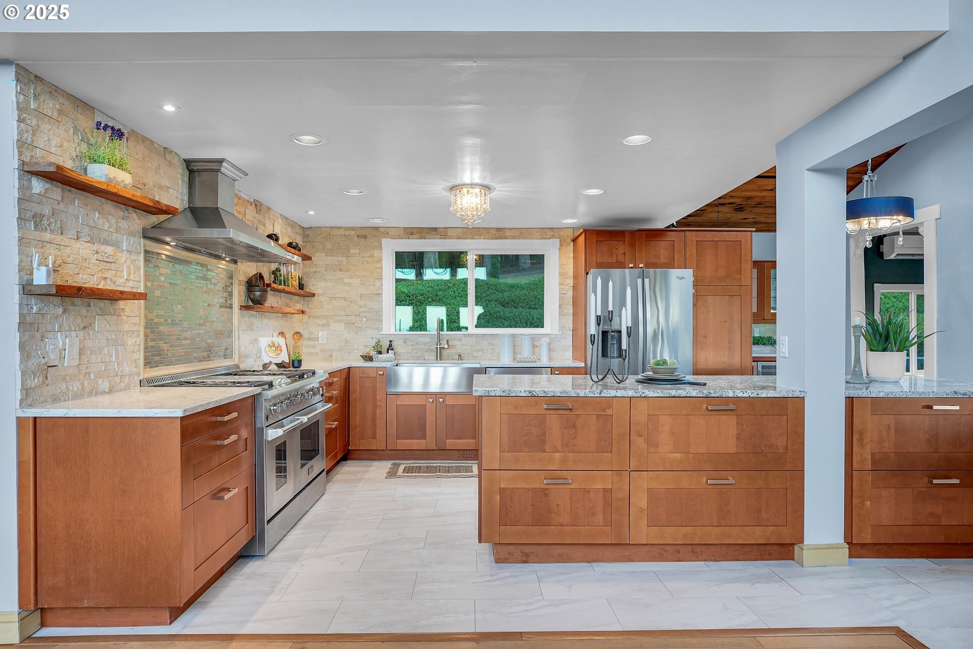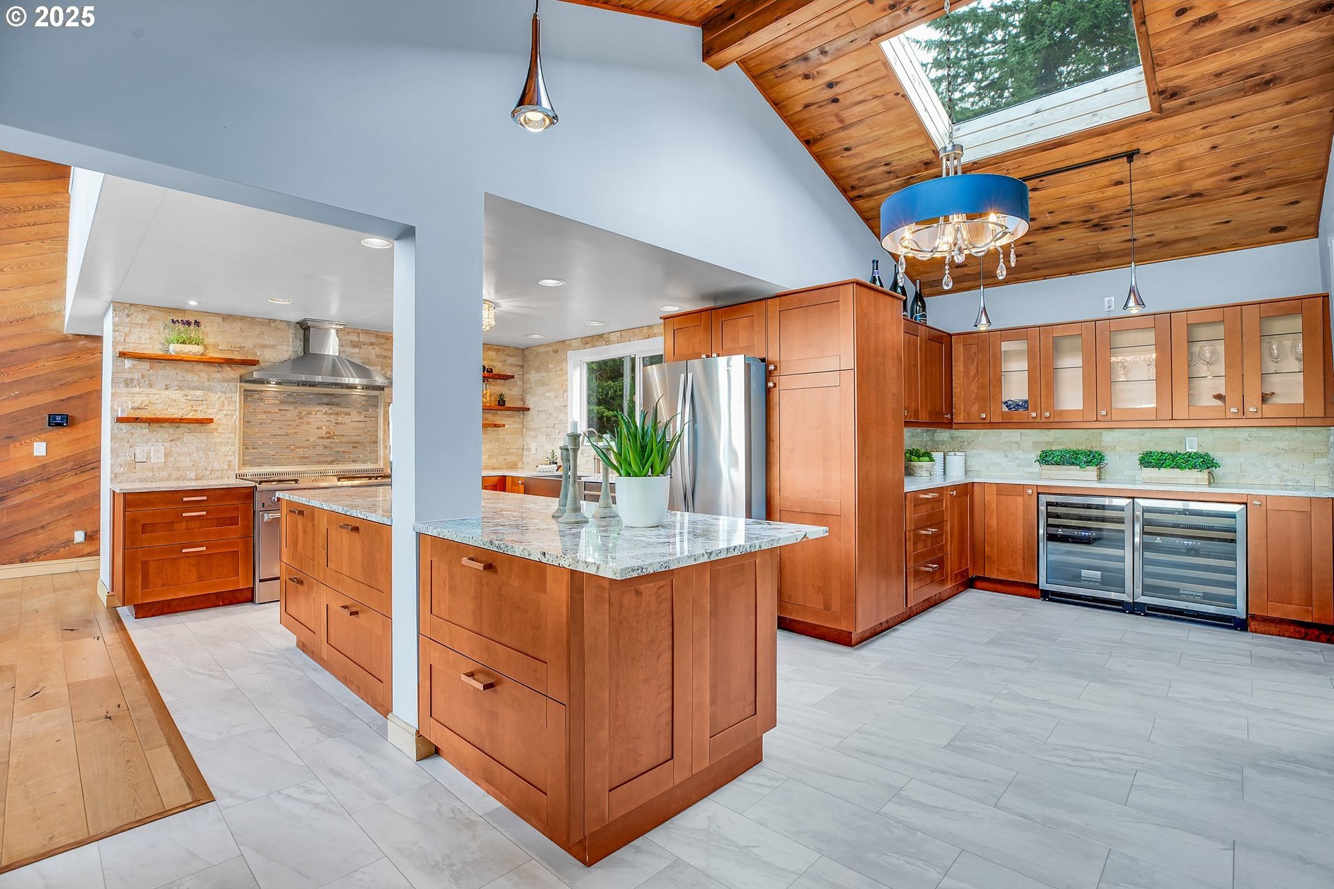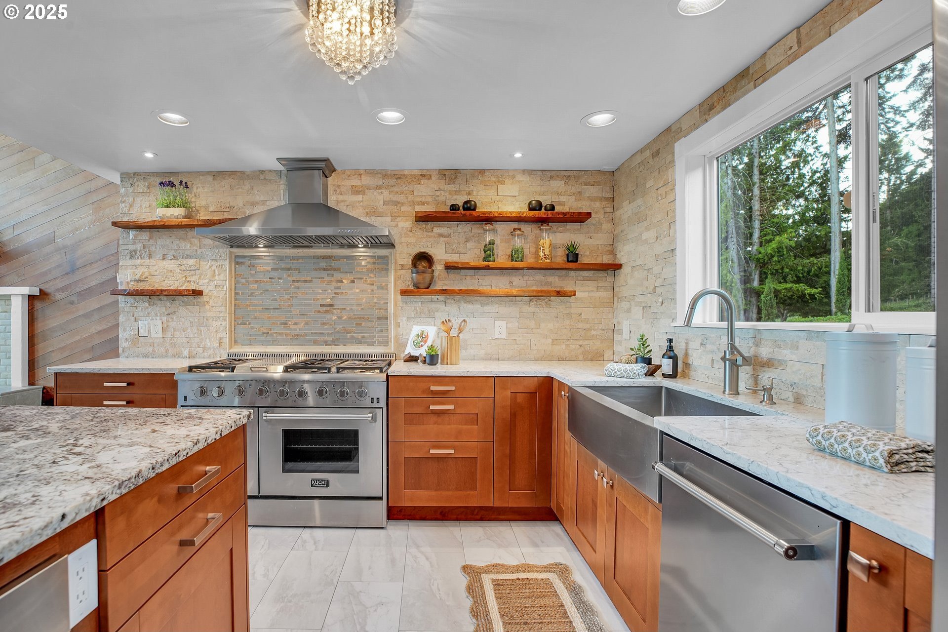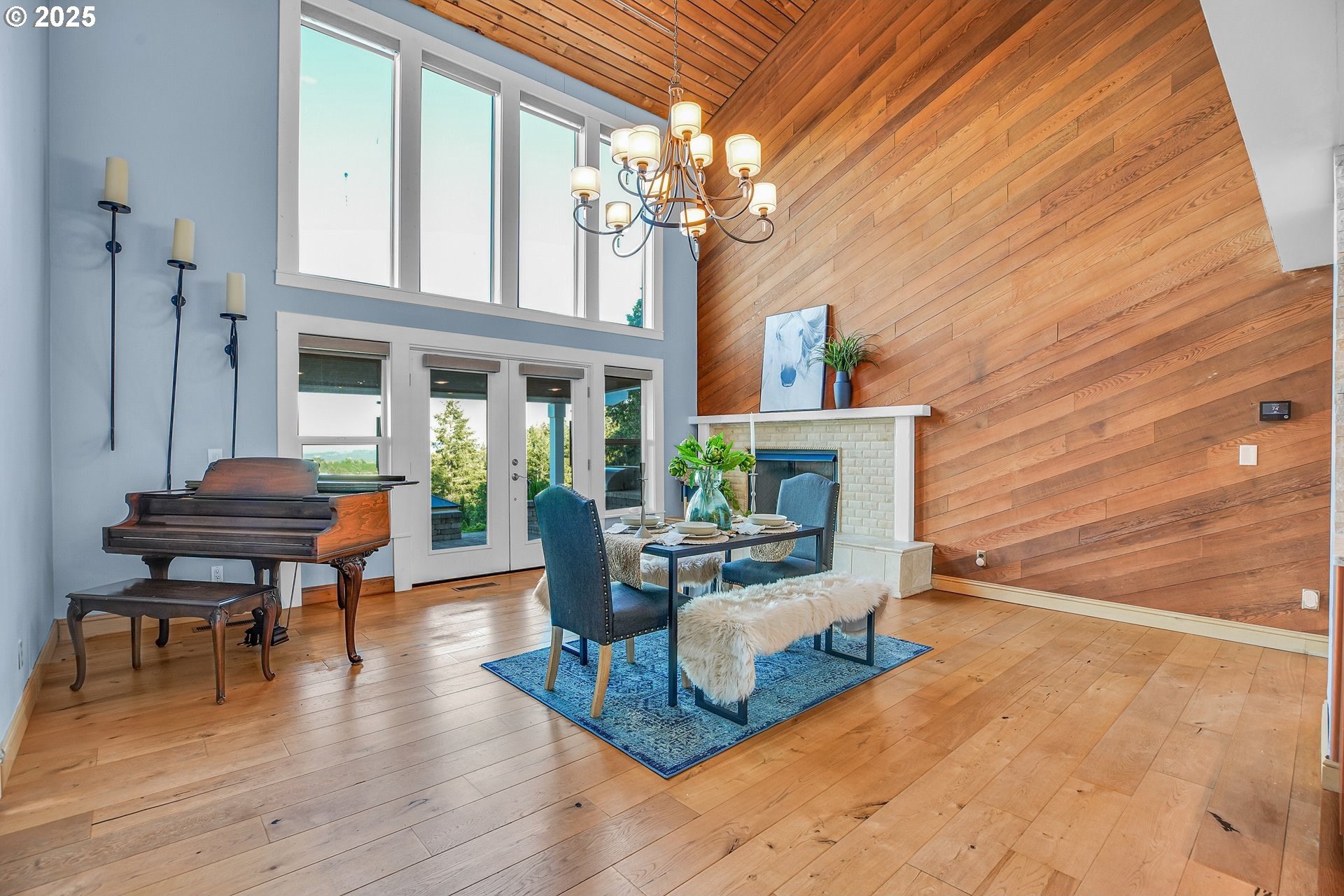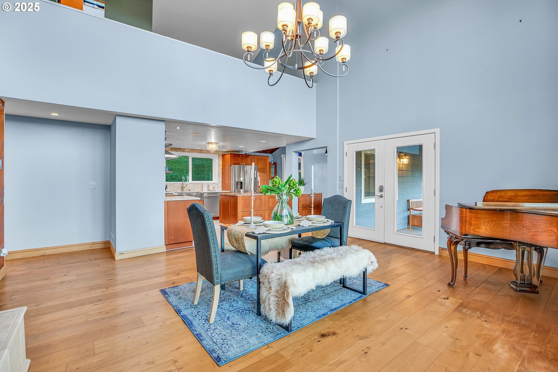 Welcome to a truly one-of-a-kind contemporary masterpiece, offering a private retreat on 3 acres with showstopper panoramic Mt. Hood and the valley views. This stunning 2-bedroomwith optional nonconforming 3rd bedroom/office upstairs, 2-bathroom, 2,400 sq ft home seamlessly blends modern amenities with elegant French countryside touches, including wood-wrapped arched windows, French doors, and hardwood floors. The heart of the home, a completely remodeled kitchen, boasts professional-grade cooking and venting, dual wine fridges, new cabinetry, countertops, and appliances – a chef's dream. Soaring vaults and open upstairs loft create an original and expansive feel while maintaining a warm, comfortable ambiance. Step outside to an entertainer's paradise and enjoy a covered patio with an outdoor cooking area, perfect for al fresco dining. Relax and soak in the breathtaking views from the hot tub or take a dip in the heated/cooled saltwater inground pool, complete with an electric pool cover. Beyond the main residence, discover an incredible 87' x 22' dream garage/shop. This ultimate space features a luxury full bathroom, heated floors, industrial mechanical systems, three parking bays, a dog washing station, laundry facilities, and a heated/cooled office space. This property isn't just a home; it's a lifestyle of unparalleled comfort, luxury, and tranquility. Additionally, this property offers unlimited potential for a separate ADU in the garage/shop already has full bathroom and laundry, Wedding venue that already has parking lot for 25-30 cars, Vinyard tast