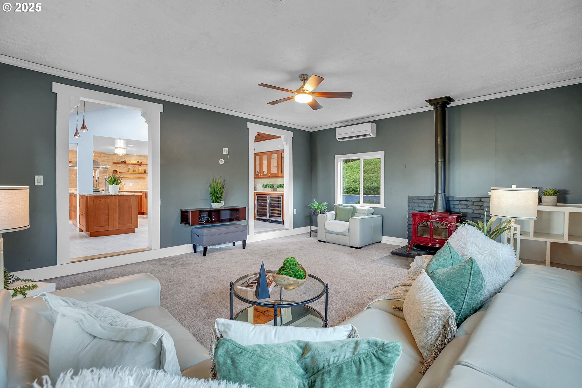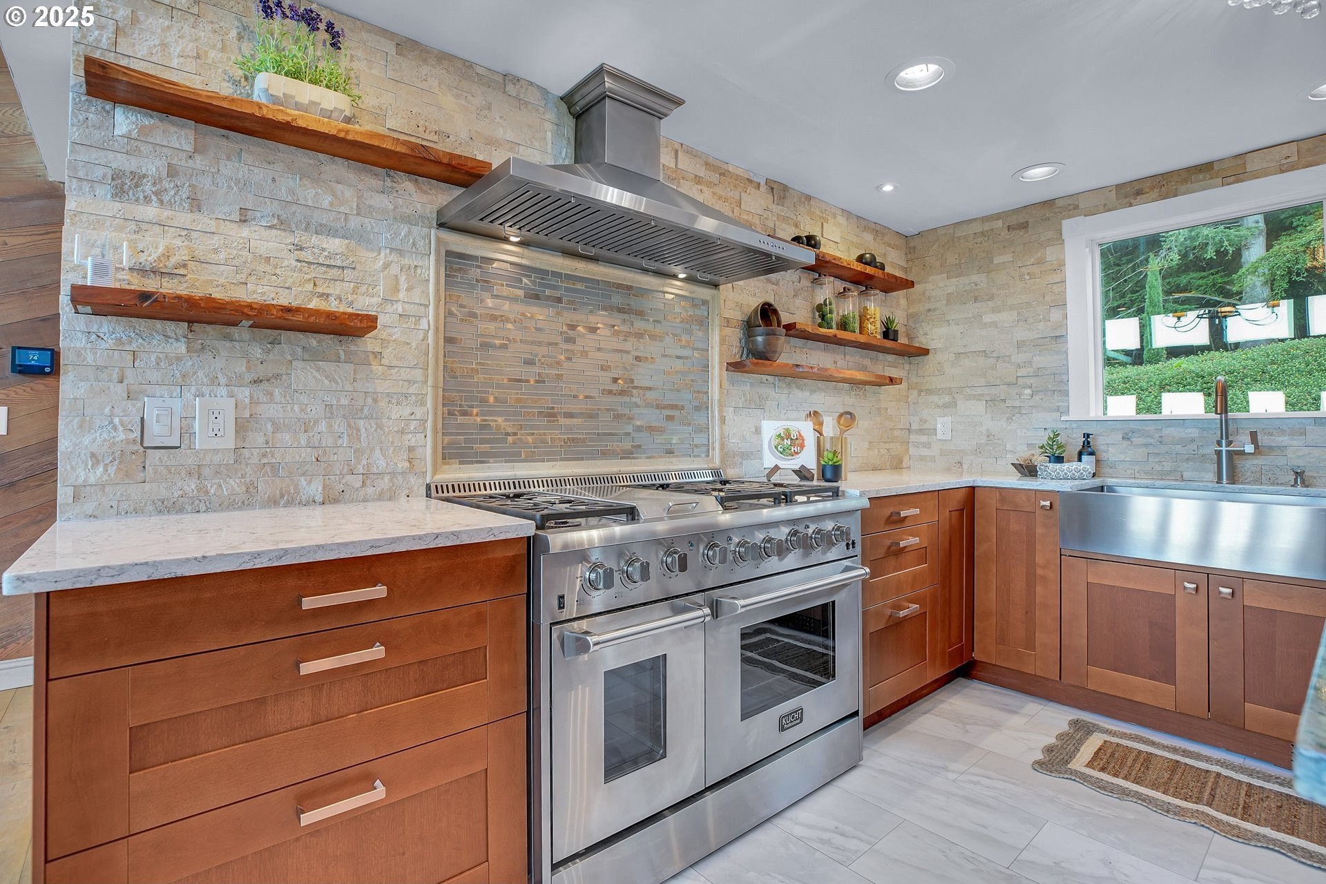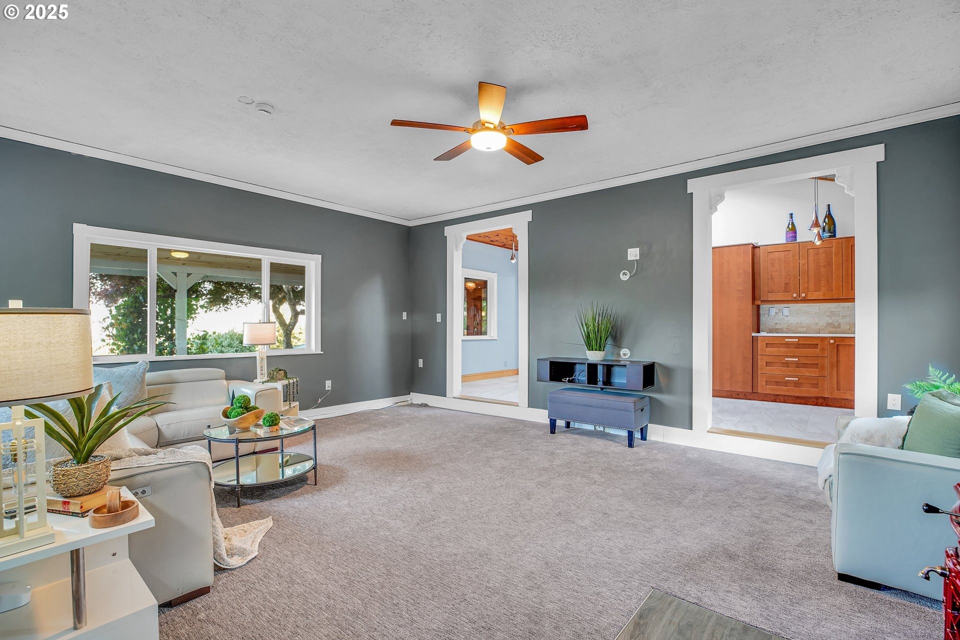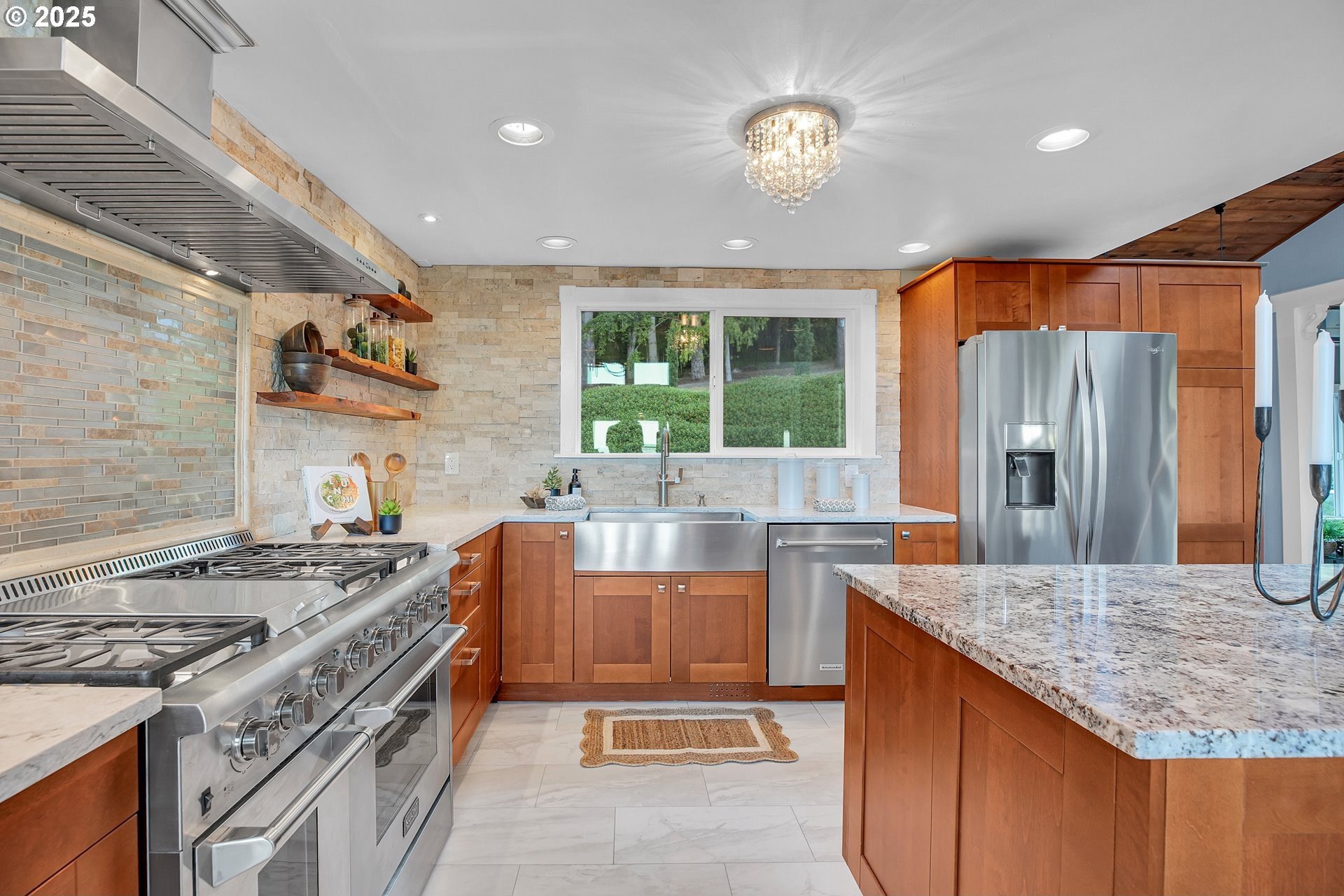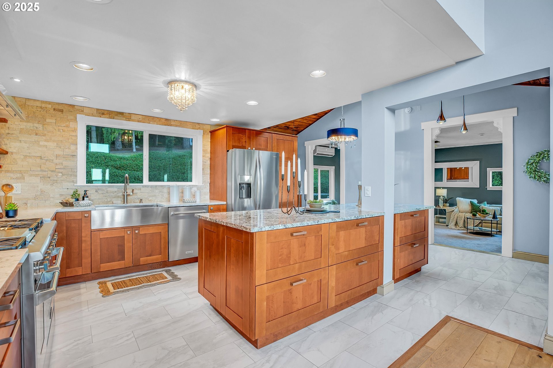 Welcome to a truly one-of-a-kind contemporary masterpiece, offering a private retreat on 3 acres with showstopper panoramic Mt. Hood and the valley views. This stunning 2-bedroomwith optional nonconforming 3rd bedroom/office upstairs, 2-bathroom, 2,400 sq ft home seamlessly blends modern amenities with elegant French countryside touches, including wood-wrapped arched windows, French doors, and hardwood floors. The heart of the home, a completely remodeled kitchen, boasts professional-grade cooking and venting, dual wine fridges, new cabinetry, countertops, and appliances – a chef's dream. Soaring vaults and open upstairs loft create an original and expansive feel while maintaining a warm, comfortable ambiance. Step outside to an entertainer's paradise and enjoy a covered patio with an outdoor cooking area, perfect for al fresco dining. Relax and soak in the breathtaking views from the hot tub or take a dip in the heated/cooled saltwater inground pool, complete with an electric pool cover. Beyond the main residence, discover an incredible 87' x 22' dream garage/shop. This ultimate space features a luxury full bathroom, heated floors, industrial mechanical systems, three parking bays, a dog washing station, laundry facilities, and a heated/cooled office space. This property isn't just a home; it's a lifestyle of unparalleled comfort, luxury, and tranquility. Additionally, this property offers unlimited potential for a separate ADU in the garage/shop already has full bathroom and laundry, Wedding venue that already has parking lot for 25-30 cars, Vinyard tast