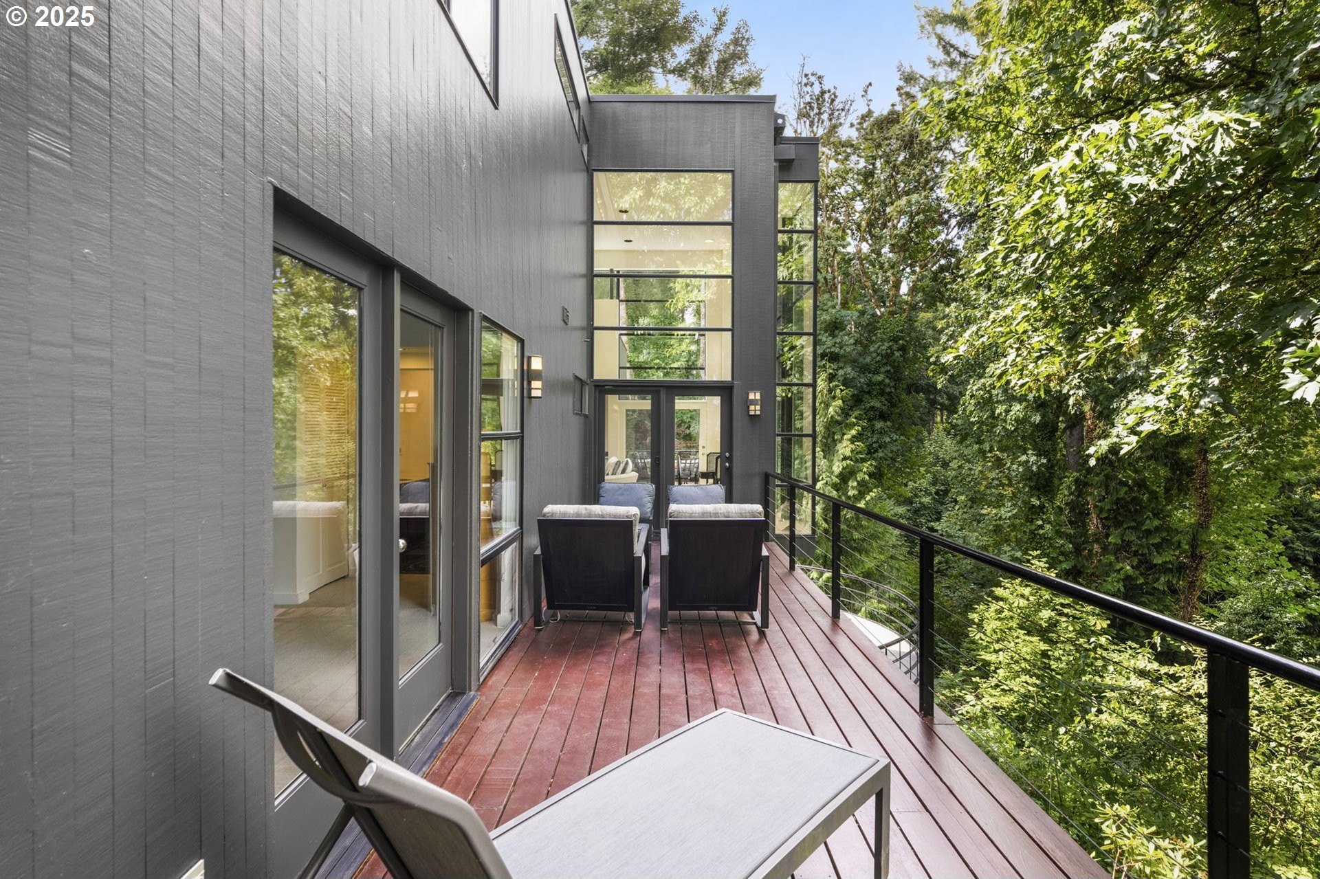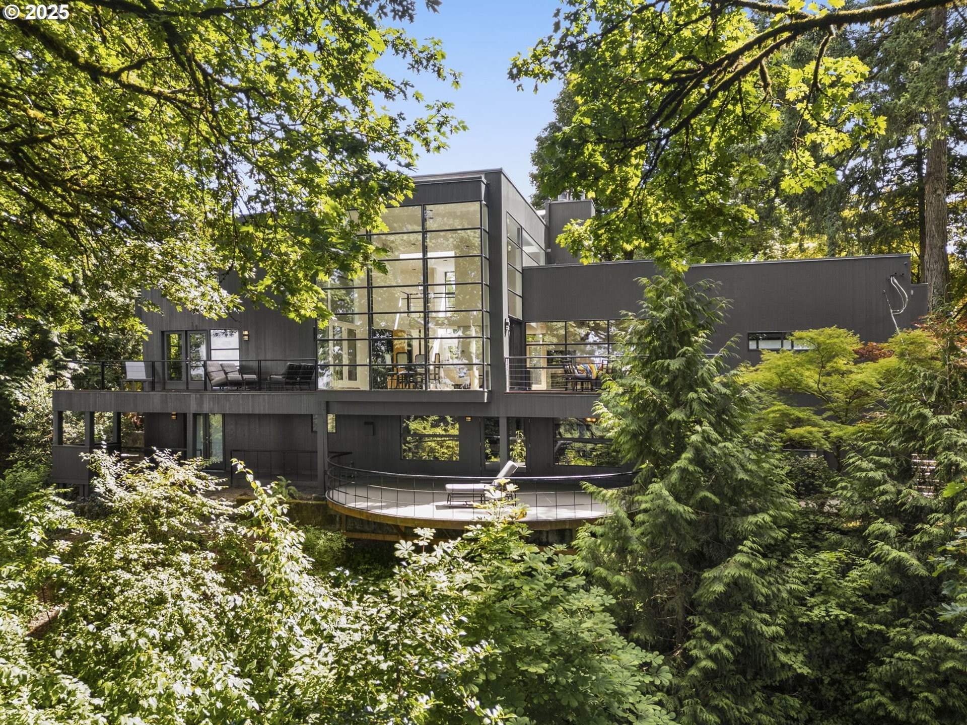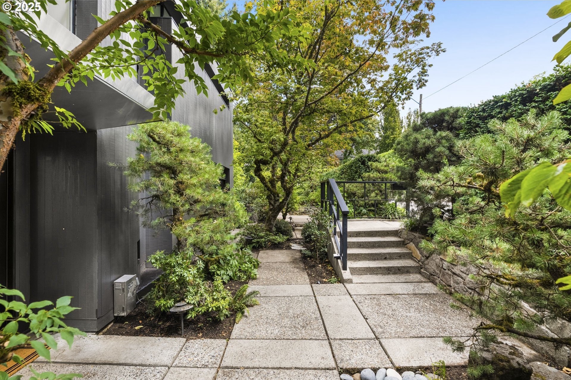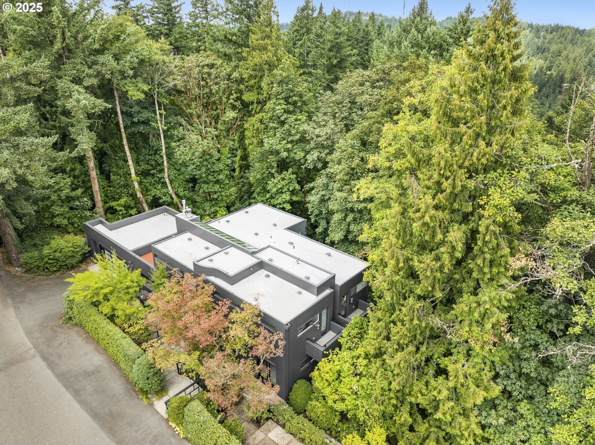 Experience the best of modern NW living in this stunning architectural masterpiece perched on one of Portland’s most coveted streets. On nearly half an acre of lush, private landscape, this home offers a rare blend of clean, contemporary design and breathtaking natural surroundings. With 5 spacious bedrooms, 3.5 bathrooms, and over 5,000 square feet of living space spread across three levels, this home is designed for both refined living and everyday comfort. Step inside and be immediately captivated by floor-to-ceiling windows, framing sweeping mountain and forest views that create a living work of art throughout the home. The functional layout is anchored by freshly refinished maple hardwood floors, while crisp white interior paint enhances the airy, gallery-like ambiance. The main level primary suite is a true retreat. Imagine waking up each morning to breathtaking panoramic views—the soft morning light filtering through the trees, with the mountain stretching out beyond. Every space of this home has been thoughtfully updated, including new carpet in the bedrooms and sleek new exterior paint that beautifully complements the modern lines of the architecture. Multiple decks are strategically placed to take full advantage of the peaceful surroundings—perfect for morning coffee, evening wine, or simply soaking in the quiet stillness of nature. Tucked into the lush landscaping, a Japanese-inspired garden offers a moment of zen with every step. This is more than a home—it’s a private sanctuary in the city, where modern design, timeless views, and premier location come together in perfect harmony. [Home Energy Score = 1. HES Report at https://rpt.greenbuildingregistry.com/hes/OR10241151]