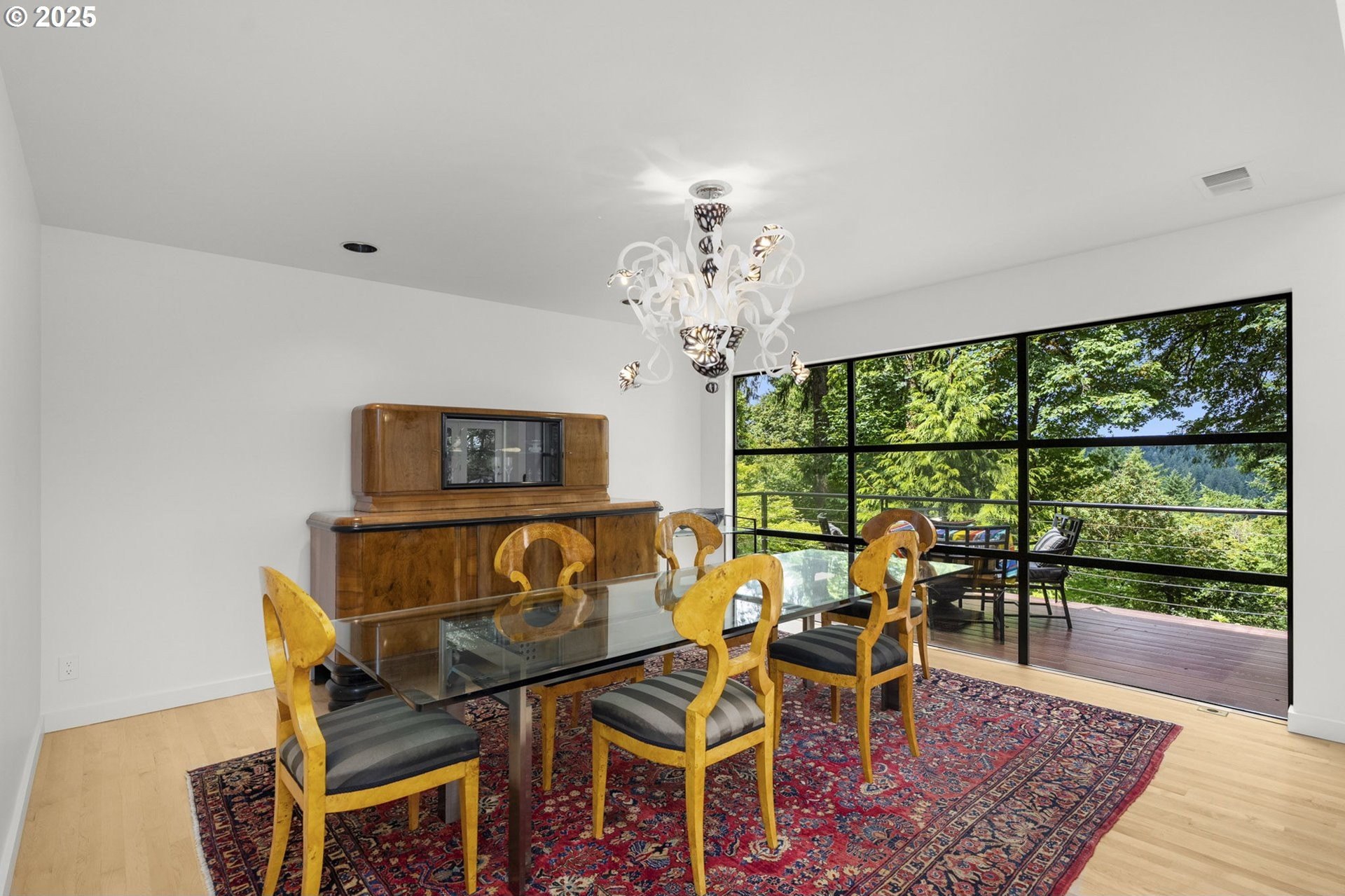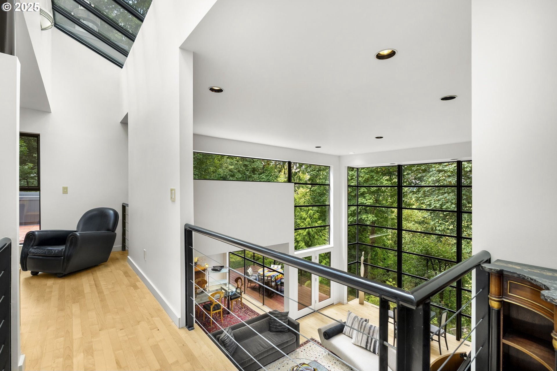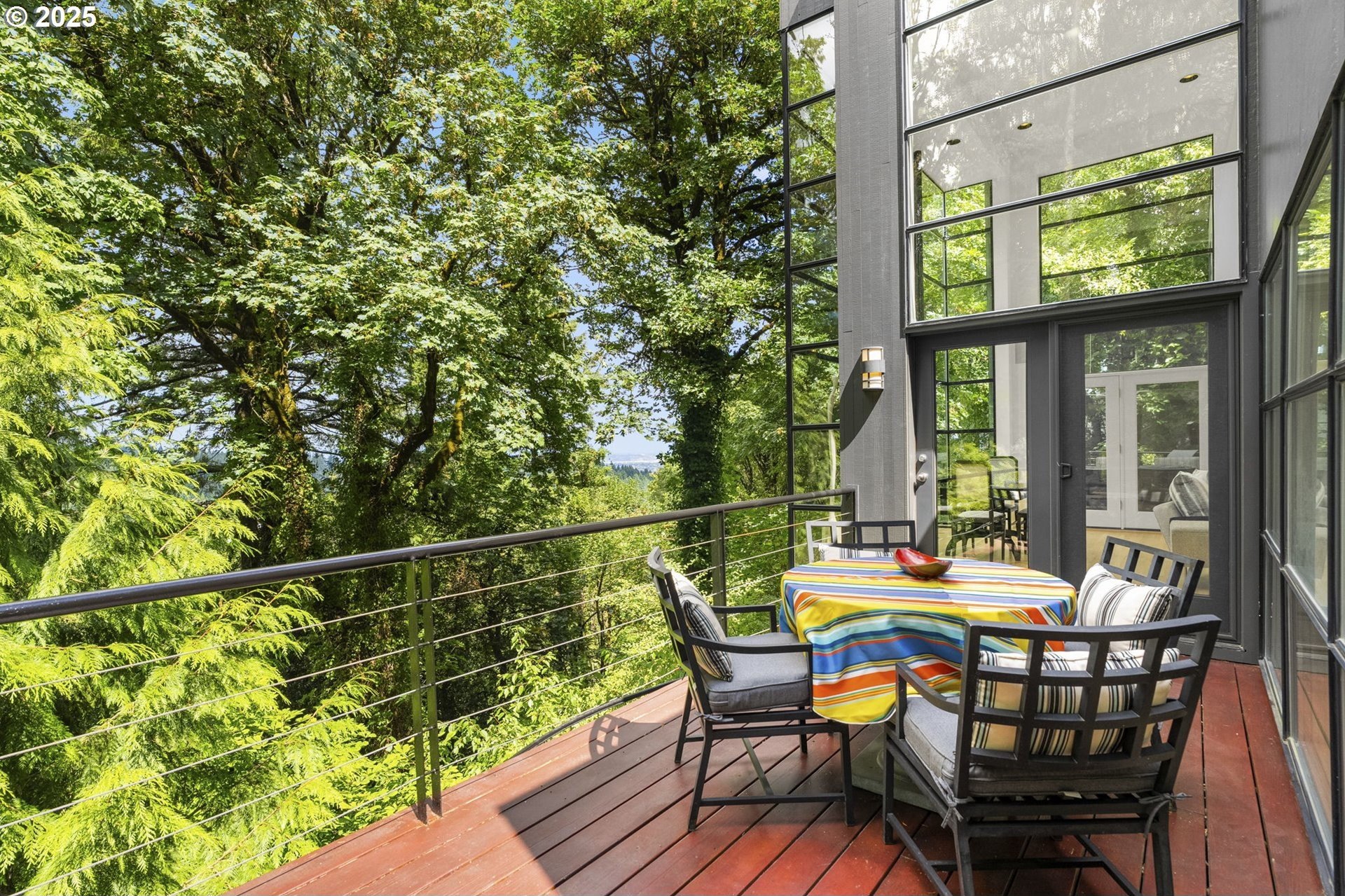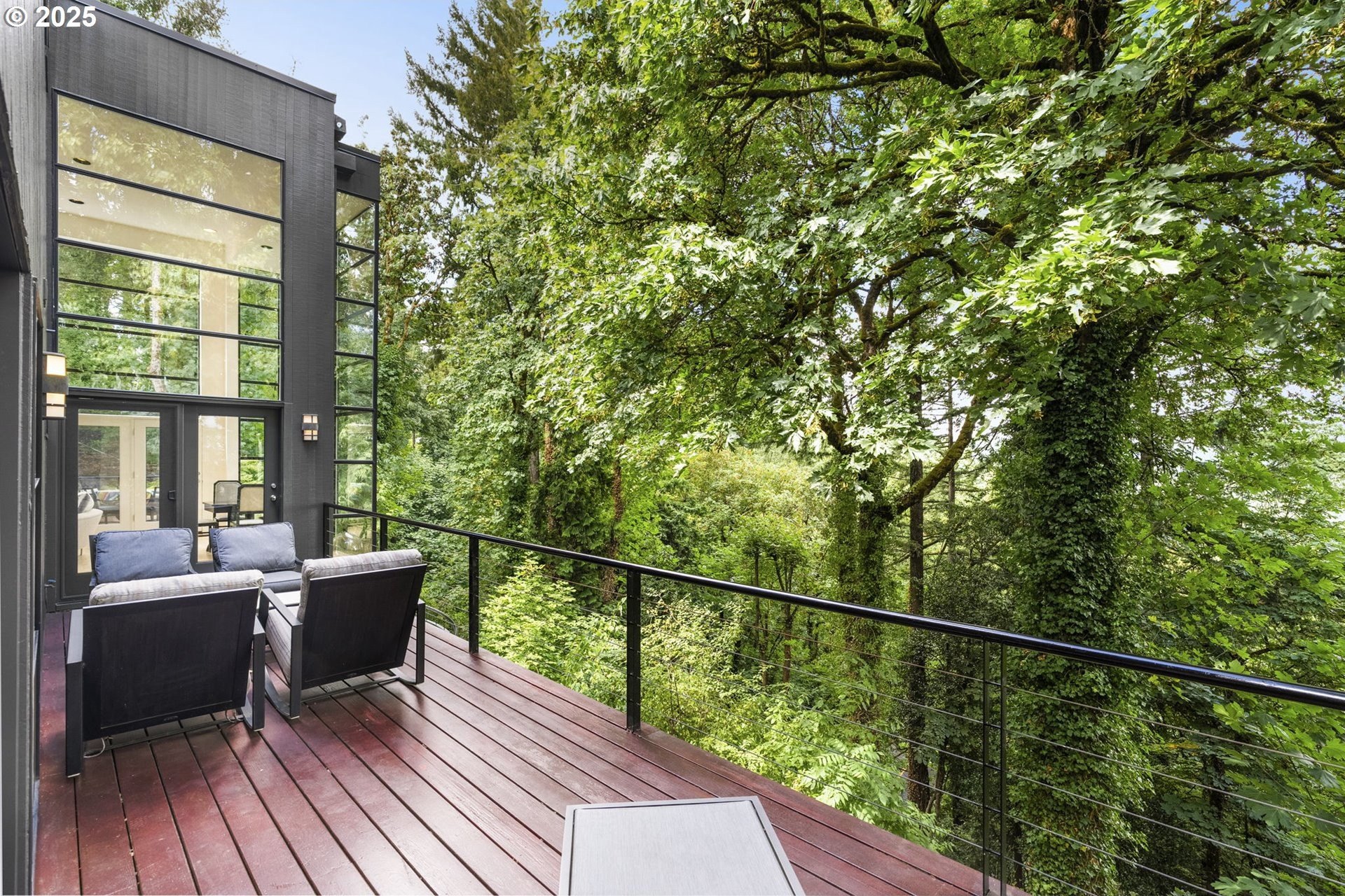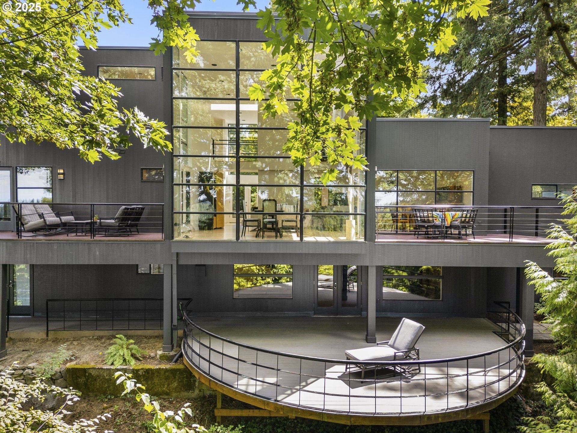 Experience the best of modern NW living in this stunning architectural masterpiece perched on one of Portland’s most coveted streets. On nearly half an acre of lush, private landscape, this home offers a rare blend of clean, contemporary design and breathtaking natural surroundings. With 5 spacious bedrooms, 3.5 bathrooms, and over 5,000 square feet of living space spread across three levels, this home is designed for both refined living and everyday comfort. Step inside and be immediately captivated by floor-to-ceiling windows, framing sweeping mountain and forest views that create a living work of art throughout the home. The functional layout is anchored by freshly refinished maple hardwood floors, while crisp white interior paint enhances the airy, gallery-like ambiance. The main level primary suite is a true retreat. Imagine waking up each morning to breathtaking panoramic views—the soft morning light filtering through the trees, with the mountain stretching out beyond. Every space of this home has been thoughtfully updated, including new carpet in the bedrooms and sleek new exterior paint that beautifully complements the modern lines of the architecture. Multiple decks are strategically placed to take full advantage of the peaceful surroundings—perfect for morning coffee, evening wine, or simply soaking in the quiet stillness of nature. Tucked into the lush landscaping, a Japanese-inspired garden offers a moment of zen with every step. This is more than a home—it’s a private sanctuary in the city, where modern design, timeless views, and premier location come together in perfect harmony. [Home Energy Score = 1. HES Report at https://rpt.greenbuildingregistry.com/hes/OR10241151]