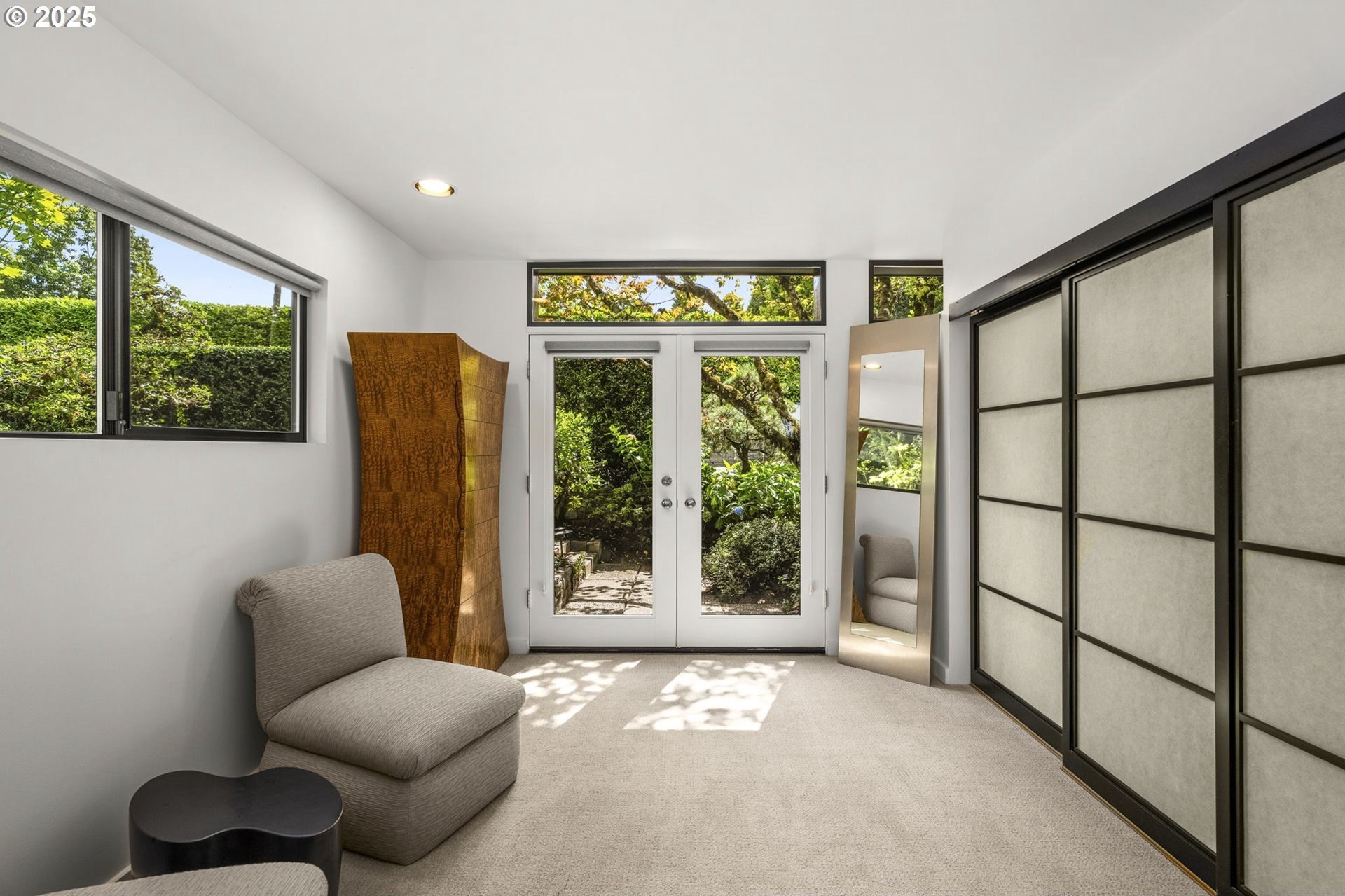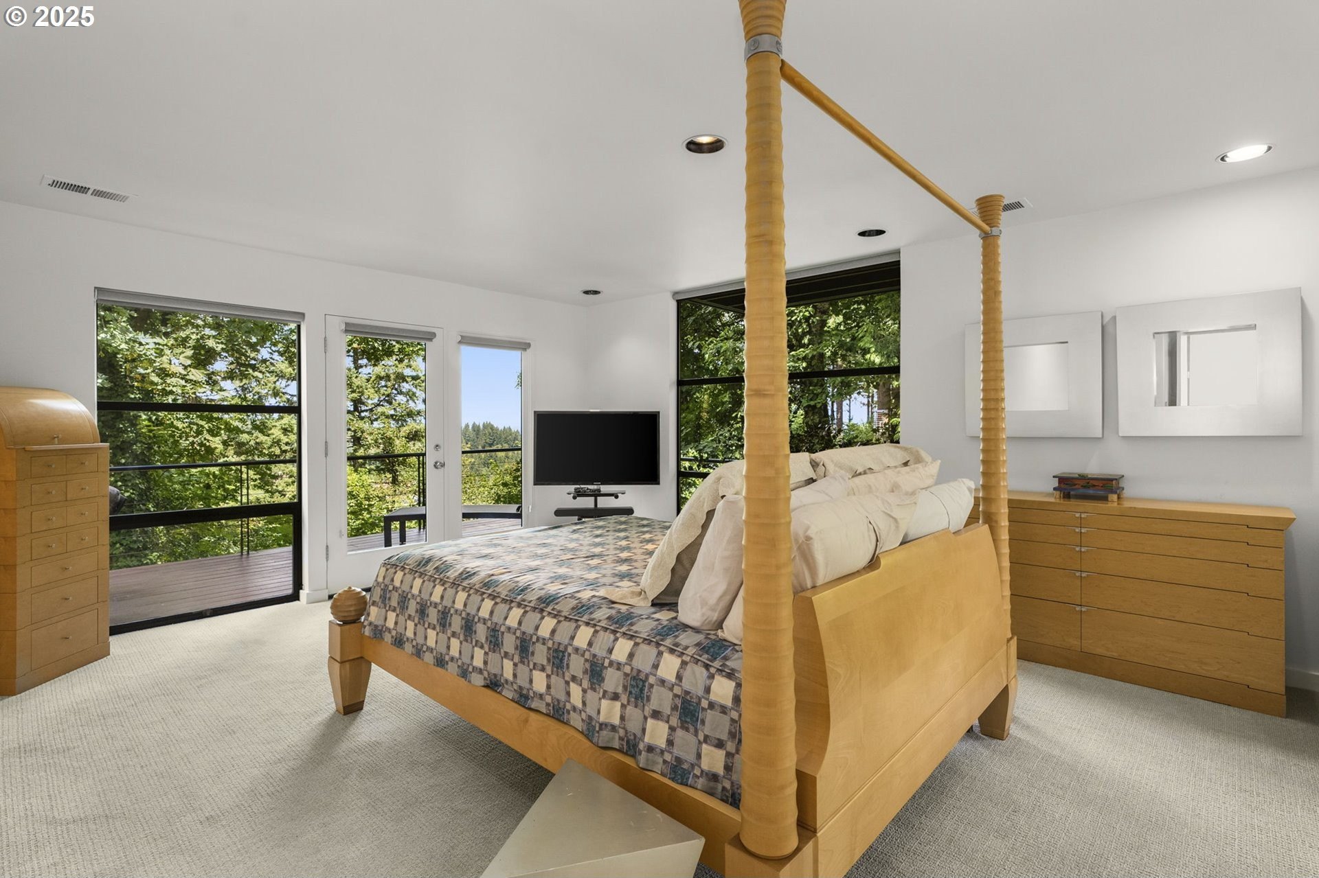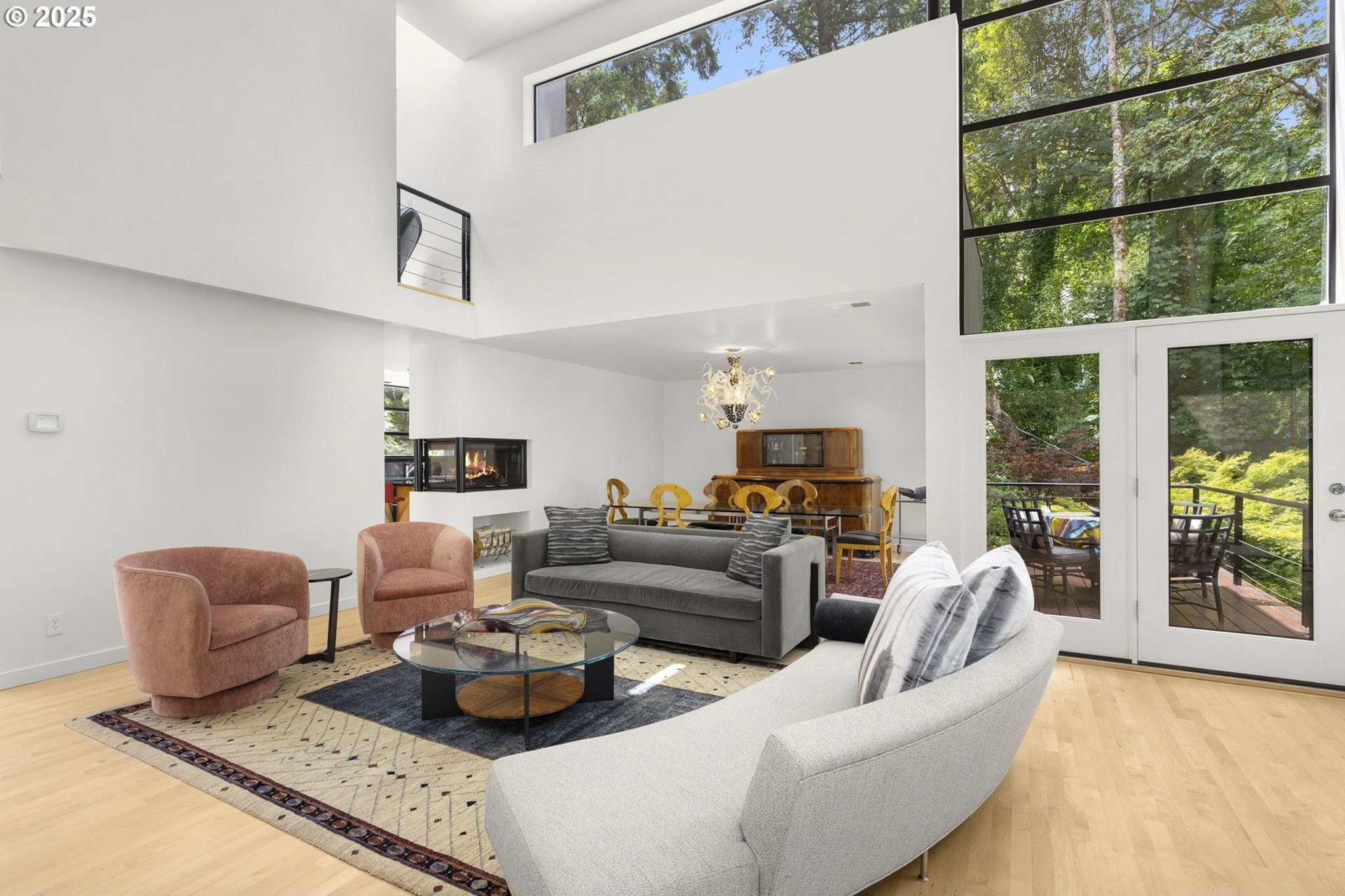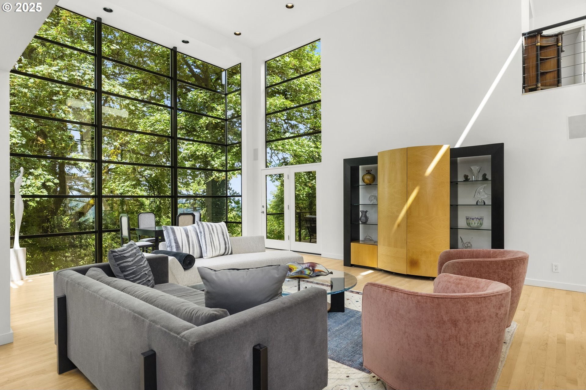 Experience the best of modern NW living in this stunning architectural masterpiece perched on one of Portland’s most coveted streets. On nearly half an acre of lush, private landscape, this home offers a rare blend of clean, contemporary design and breathtaking natural surroundings. With 5 spacious bedrooms, 3.5 bathrooms, and over 5,000 square feet of living space spread across three levels, this home is designed for both refined living and everyday comfort. Step inside and be immediately captivated by floor-to-ceiling windows, framing sweeping mountain and forest views that create a living work of art throughout the home. The functional layout is anchored by freshly refinished maple hardwood floors, while crisp white interior paint enhances the airy, gallery-like ambiance. The main level primary suite is a true retreat. Imagine waking up each morning to breathtaking panoramic views—the soft morning light filtering through the trees, with the mountain stretching out beyond. Every space of this home has been thoughtfully updated, including new carpet in the bedrooms and sleek new exterior paint that beautifully complements the modern lines of the architecture. Multiple decks are strategically placed to take full advantage of the peaceful surroundings—perfect for morning coffee, evening wine, or simply soaking in the quiet stillness of nature. Tucked into the lush landscaping, a Japanese-inspired garden offers a moment of zen with every step. This is more than a home—it’s a private sanctuary in the city, where modern design, timeless views, and premier location come together in perfect harmony. [Home Energy Score = 1. HES Report at https://rpt.greenbuildingregistry.com/hes/OR10241151]