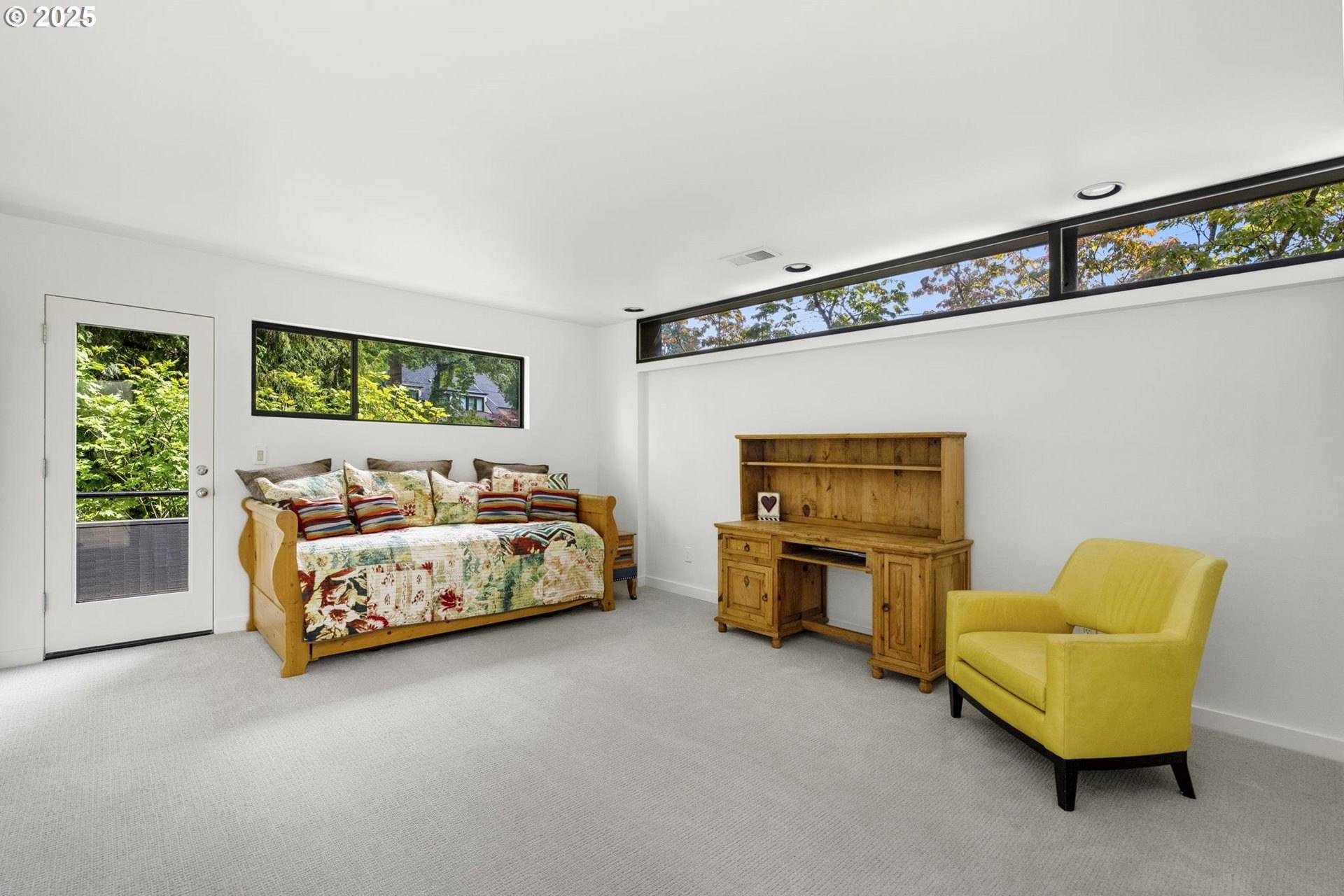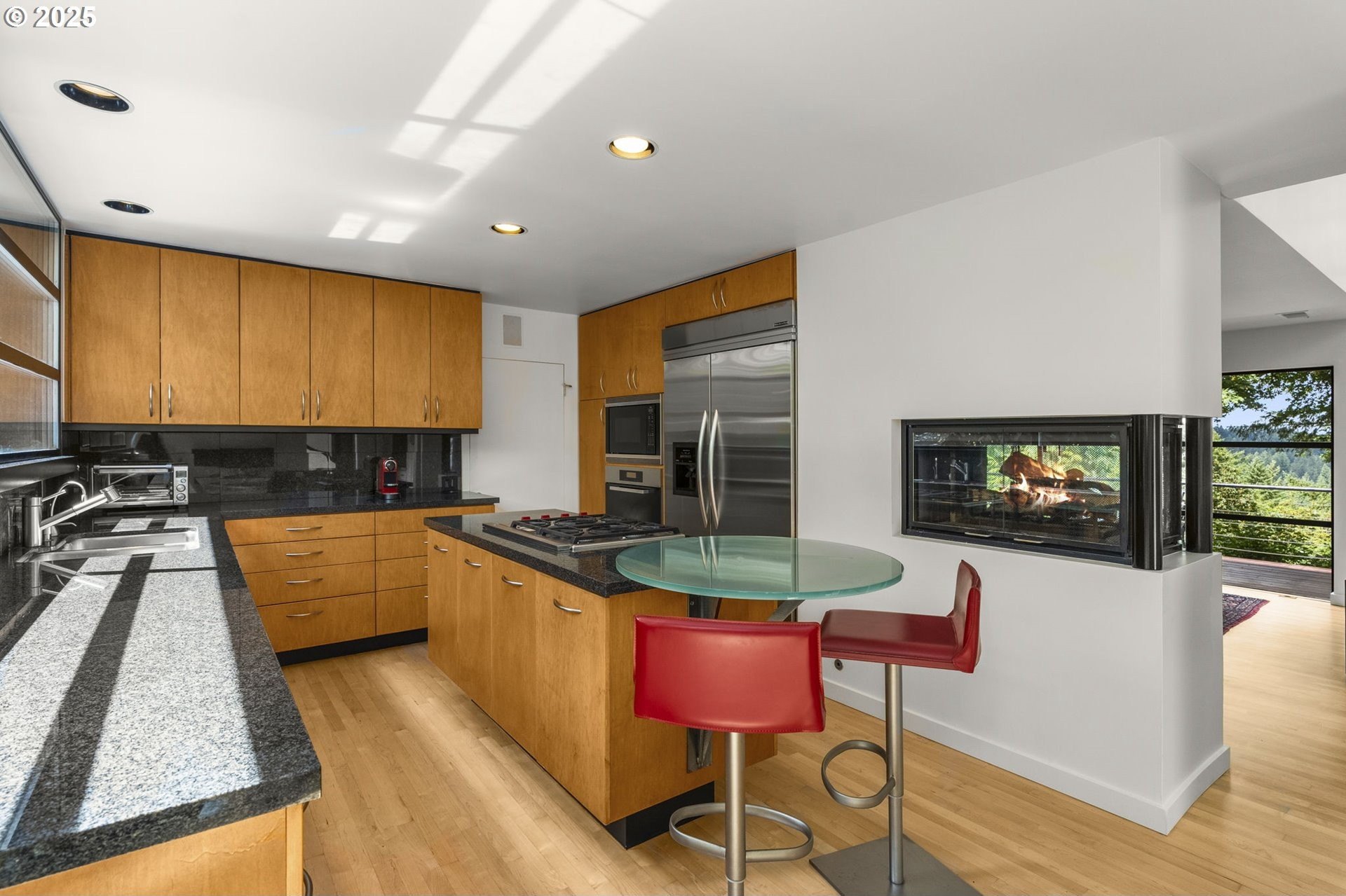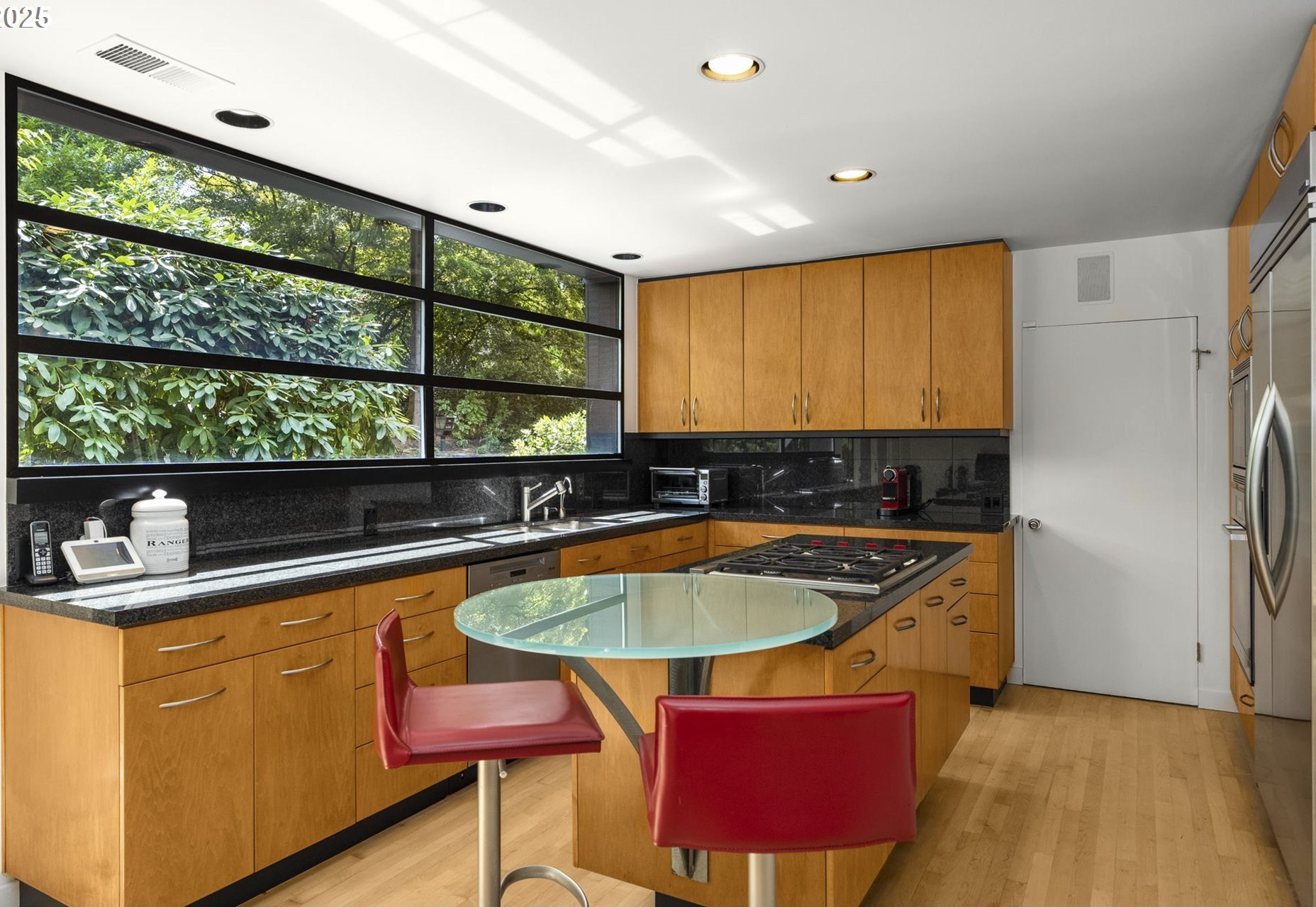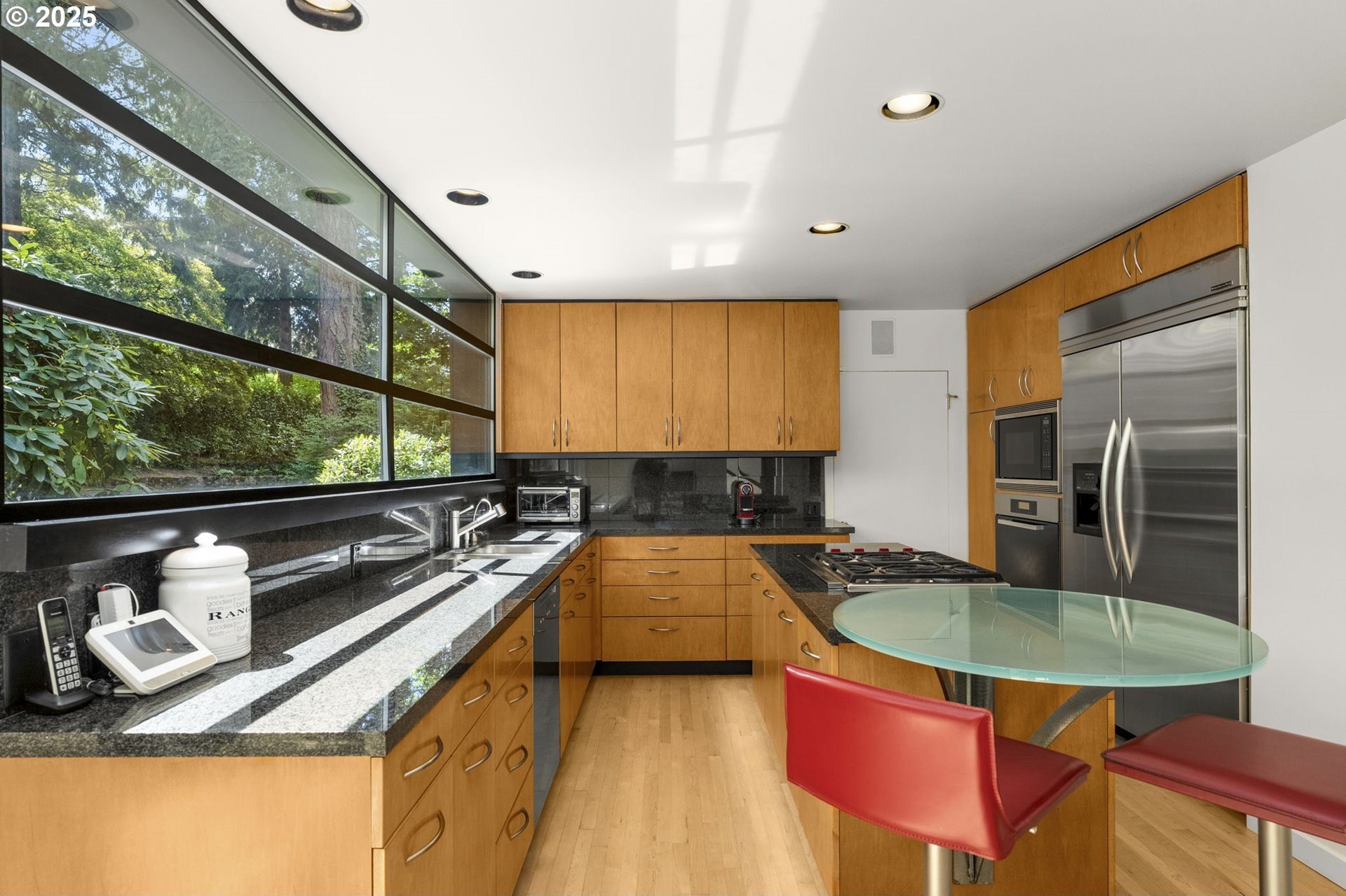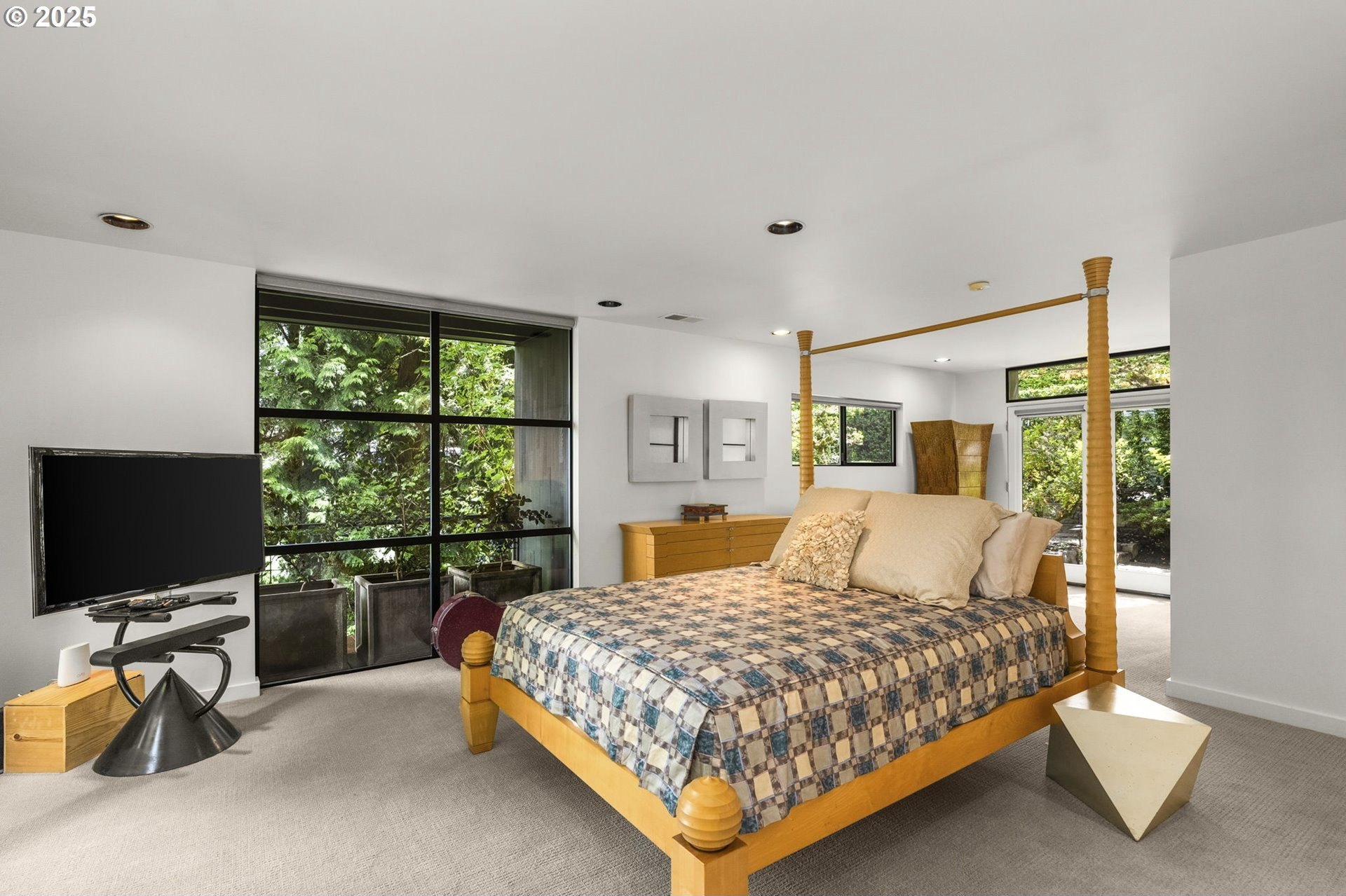 Experience the best of modern NW living in this stunning architectural masterpiece perched on one of Portland’s most coveted streets. On nearly half an acre of lush, private landscape, this home offers a rare blend of clean, contemporary design and breathtaking natural surroundings. With 5 spacious bedrooms, 3.5 bathrooms, and over 5,000 square feet of living space spread across three levels, this home is designed for both refined living and everyday comfort. Step inside and be immediately captivated by floor-to-ceiling windows, framing sweeping mountain and forest views that create a living work of art throughout the home. The functional layout is anchored by freshly refinished maple hardwood floors, while crisp white interior paint enhances the airy, gallery-like ambiance. The main level primary suite is a true retreat. Imagine waking up each morning to breathtaking panoramic views—the soft morning light filtering through the trees, with the mountain stretching out beyond. Every space of this home has been thoughtfully updated, including new carpet in the bedrooms and sleek new exterior paint that beautifully complements the modern lines of the architecture. Multiple decks are strategically placed to take full advantage of the peaceful surroundings—perfect for morning coffee, evening wine, or simply soaking in the quiet stillness of nature. Tucked into the lush landscaping, a Japanese-inspired garden offers a moment of zen with every step. This is more than a home—it’s a private sanctuary in the city, where modern design, timeless views, and premier location come together in perfect harmony. [Home Energy Score = 1. HES Report at https://rpt.greenbuildingregistry.com/hes/OR10241151]