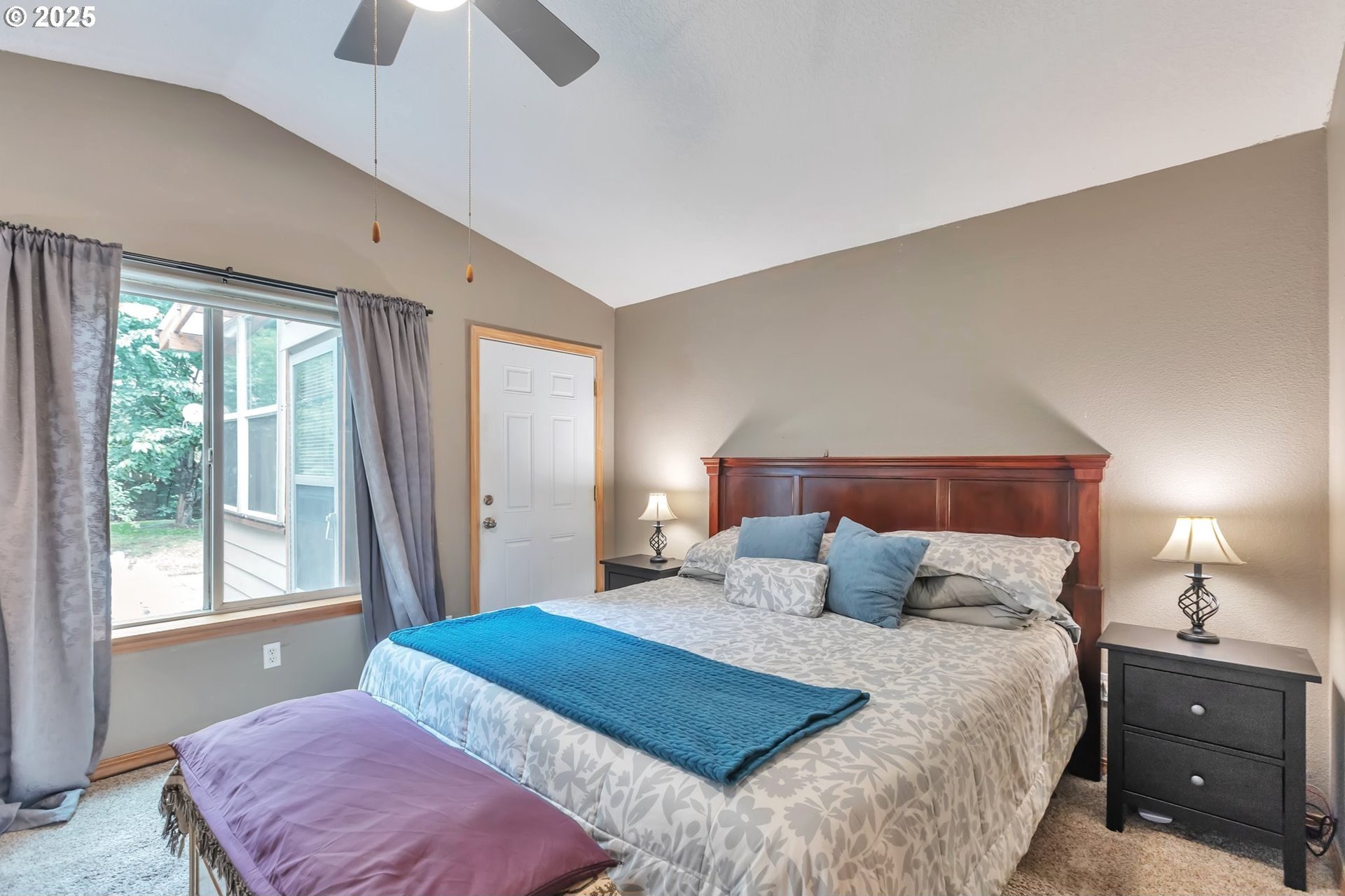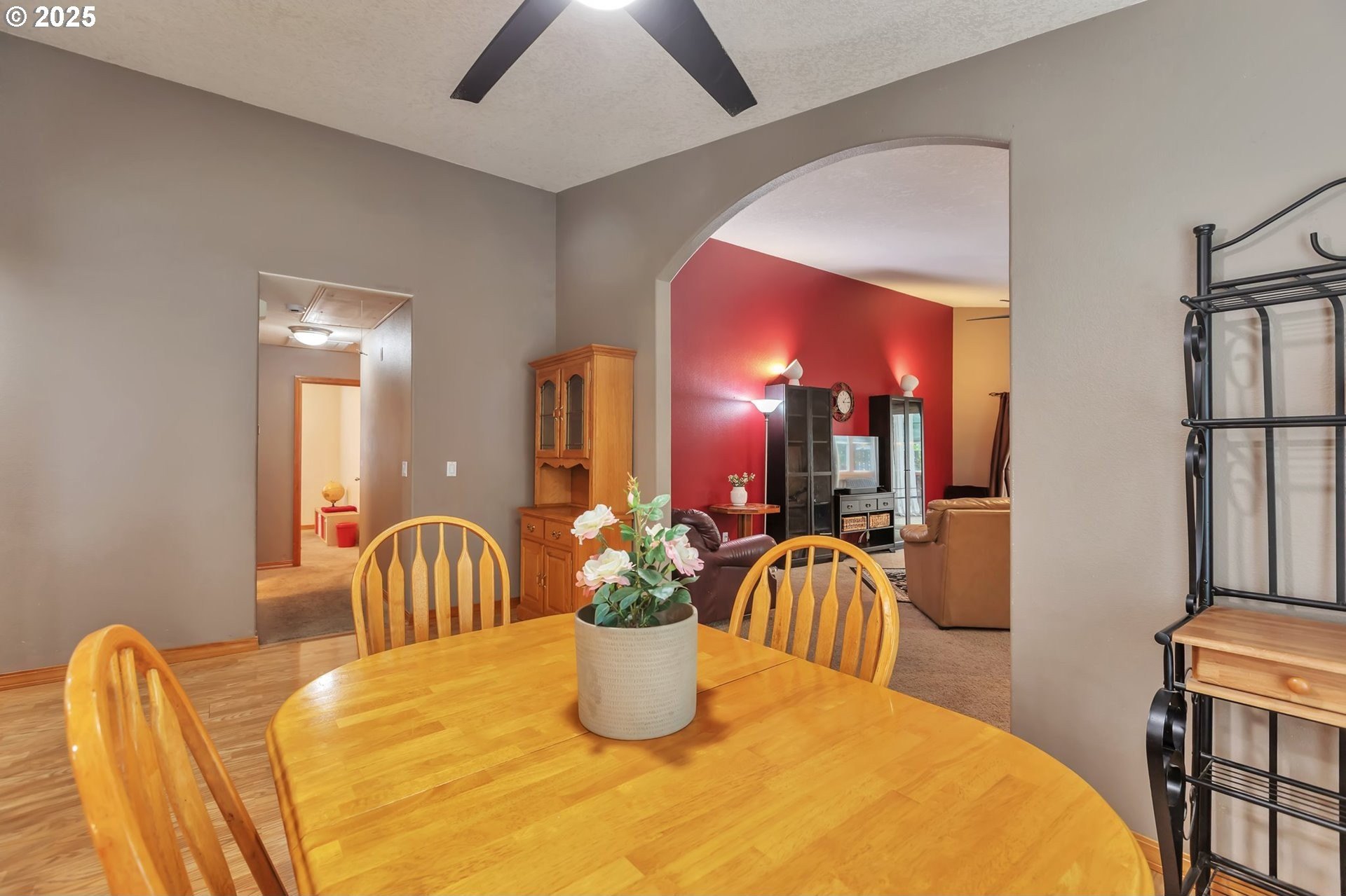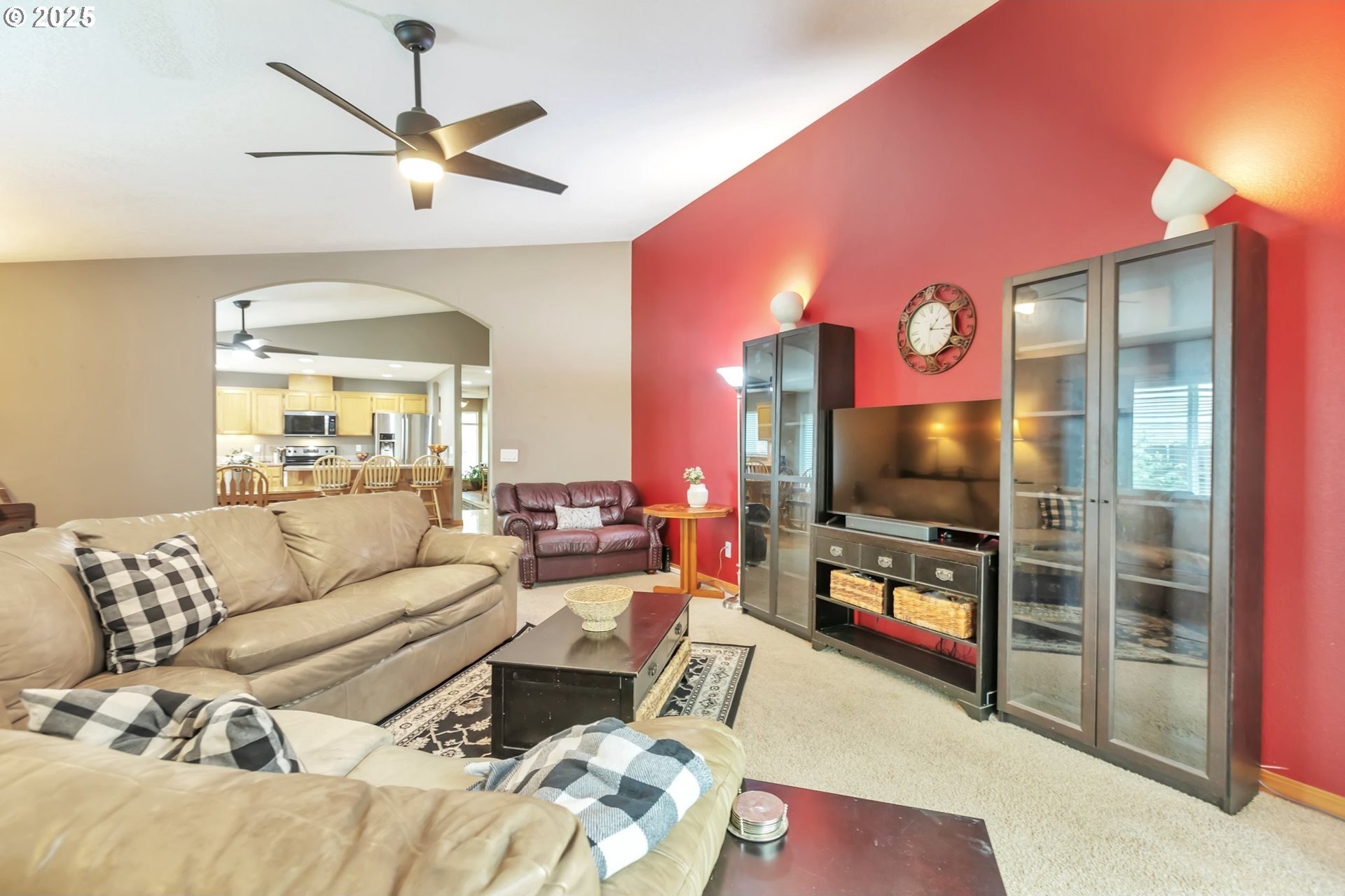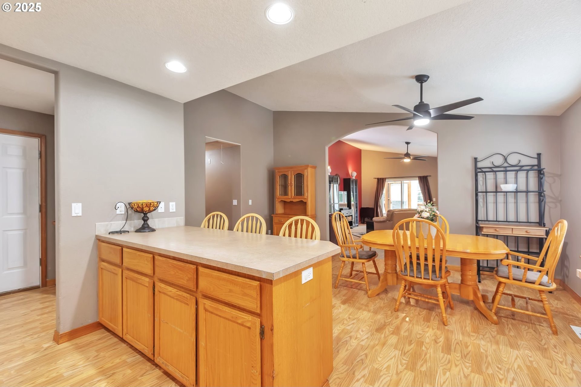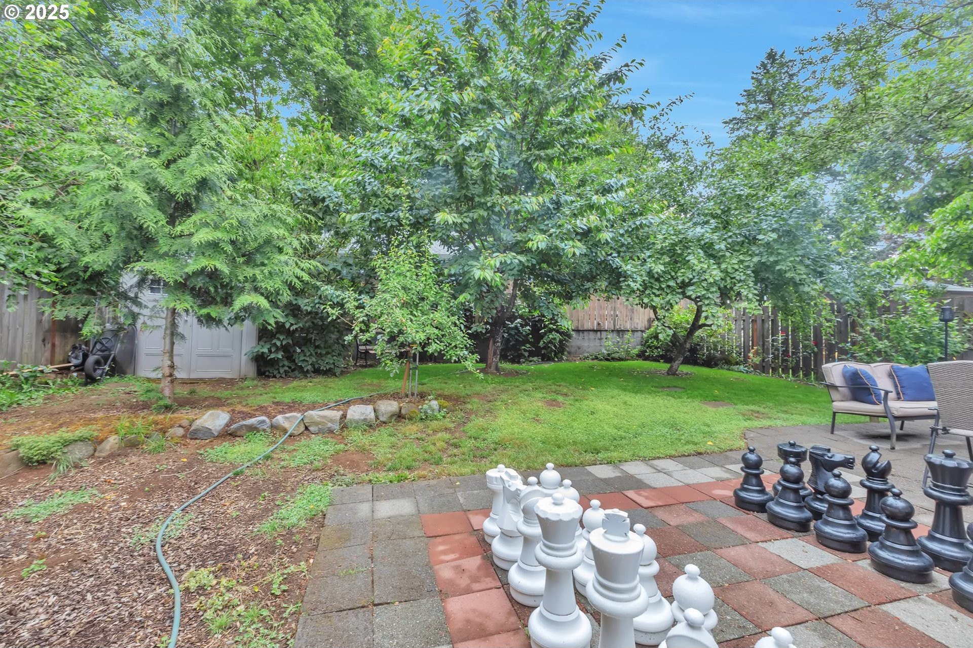 This home features an open floor plan with vaulted ceilings, creating an airy atmosphere. The kitchen is equipped with numerous cabinets, ample storage space, and generous countertop areas, all complemented by stainless steel appliances. It includes four bedrooms, with the primary bedroom offering an ensuite bathroom that boasts skylights and direct access to the backyard. This home has 2.5 bathrooms and a two-car garage. The great room features a cozy fireplace and a sliding door that opens to the backyard. The wide hallways and single-level layout provide easy access throughout the home. The backyard is a private oasis, featuring a covered deck area, a fully fenced yard that receives plenty of sunlight, fruit trees, and a shed for additional storage. The original owners have well-maintained the property, recently replacing the water heater, furnace, and adding central air conditioning. This home is conveniently located near public transportation, grocery stores, and the newly expanded Parklane Park. [Home Energy Score = 6. HES Report at https://rpt.greenbuildingregistry.com/hes/OR10238962]