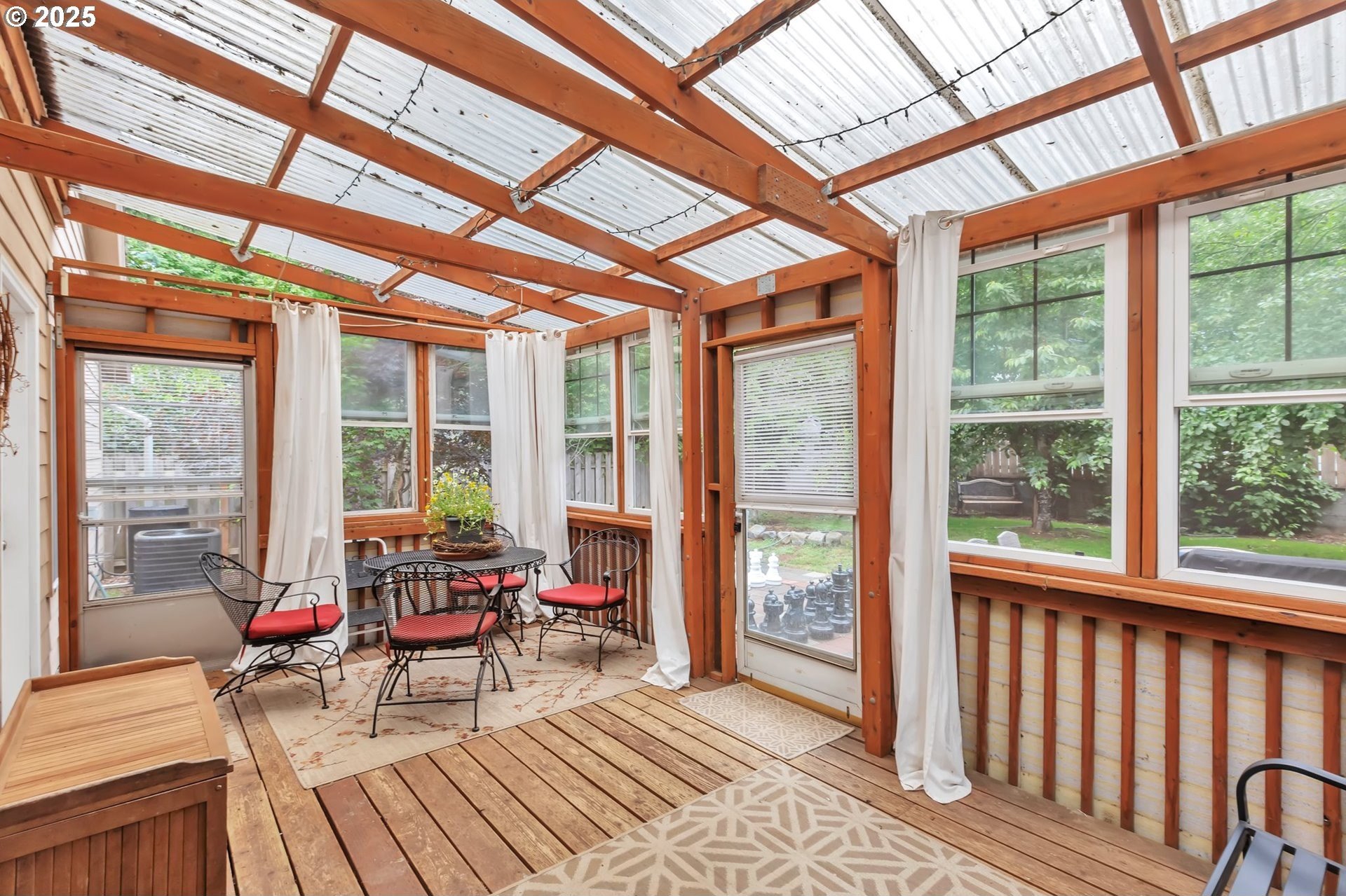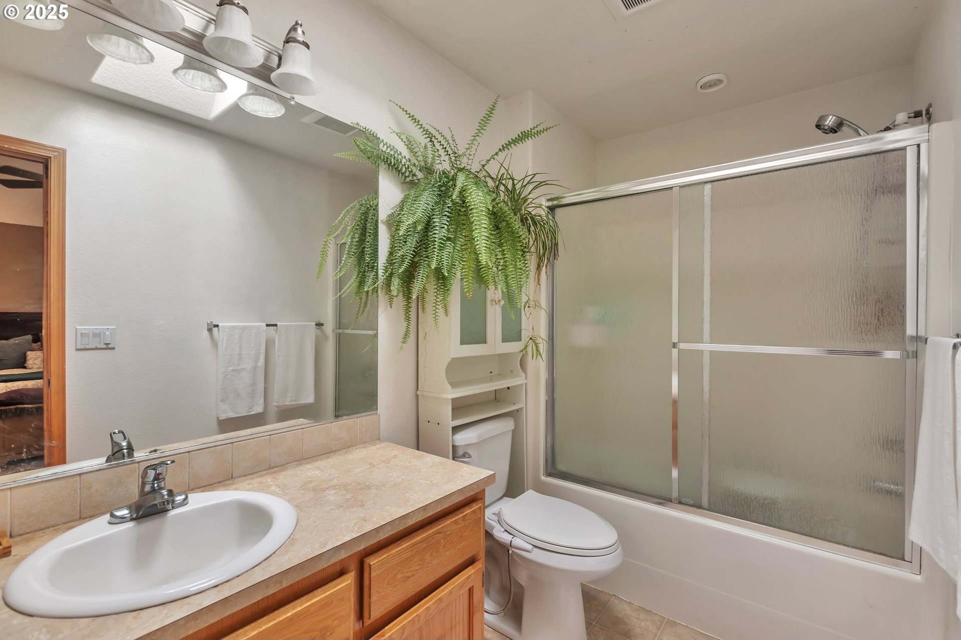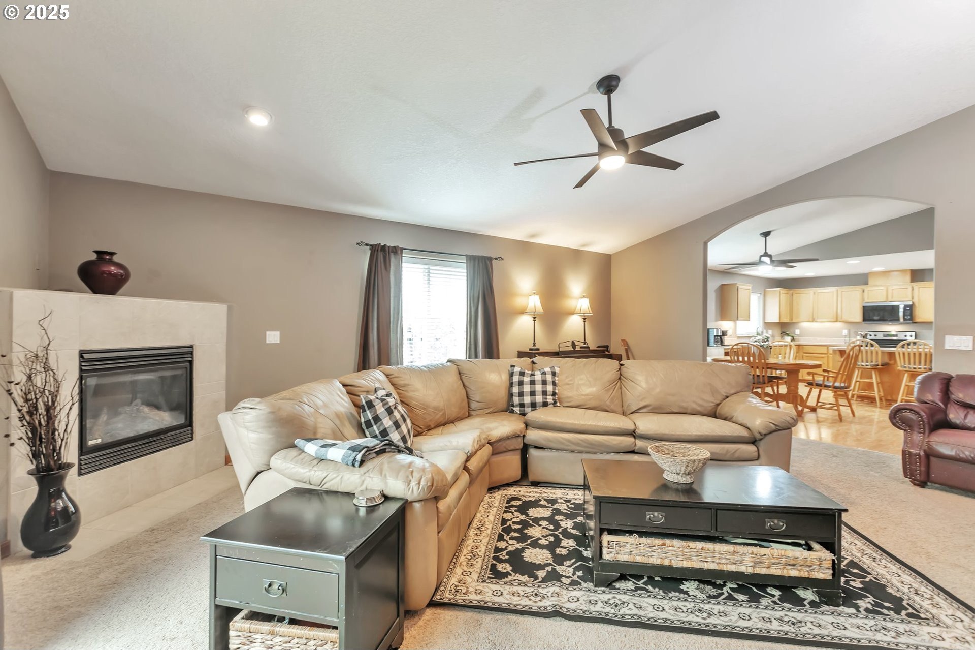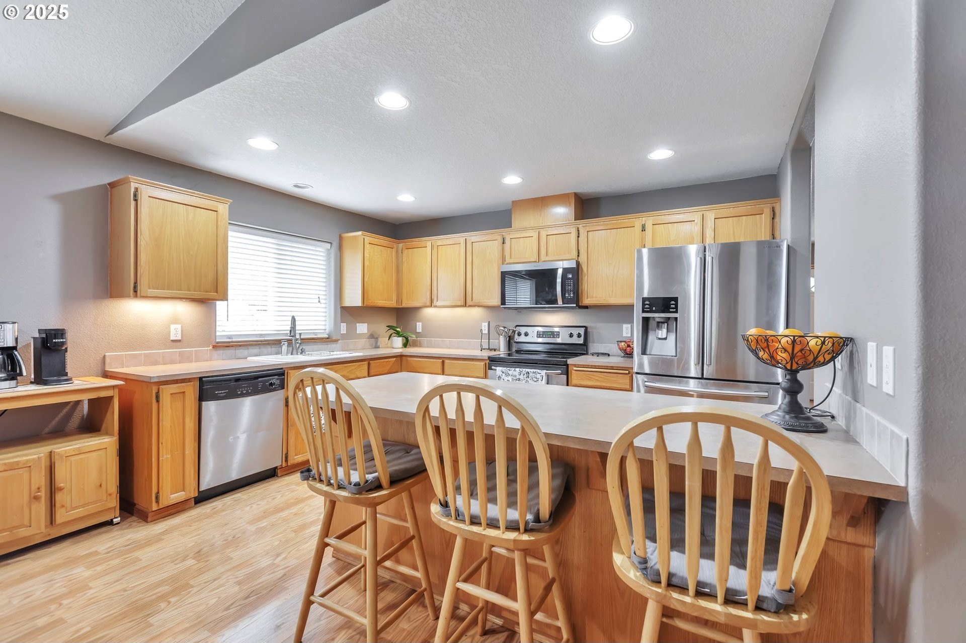 This home features an open floor plan with vaulted ceilings, creating an airy atmosphere. The kitchen is equipped with numerous cabinets, ample storage space, and generous countertop areas, all complemented by stainless steel appliances. It includes four bedrooms, with the primary bedroom offering an ensuite bathroom that boasts skylights and direct access to the backyard. This home has 2.5 bathrooms and a two-car garage. The great room features a cozy fireplace and a sliding door that opens to the backyard. The wide hallways and single-level layout provide easy access throughout the home. The backyard is a private oasis, featuring a covered deck area, a fully fenced yard that receives plenty of sunlight, fruit trees, and a shed for additional storage. The original owners have well-maintained the property, recently replacing the water heater, furnace, and adding central air conditioning. This home is conveniently located near public transportation, grocery stores, and the newly expanded Parklane Park. [Home Energy Score = 6. HES Report at https://rpt.greenbuildingregistry.com/hes/OR10238962]