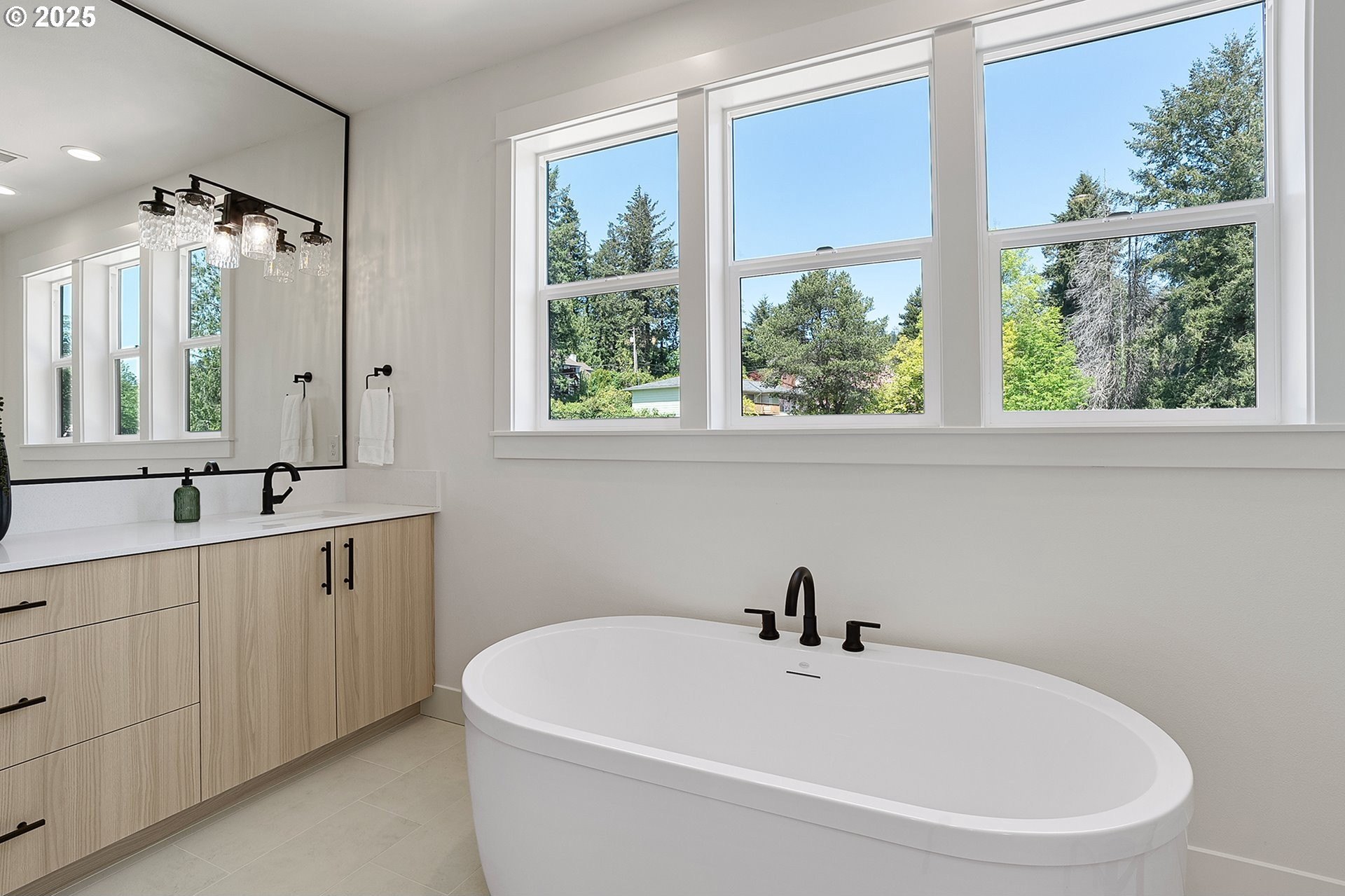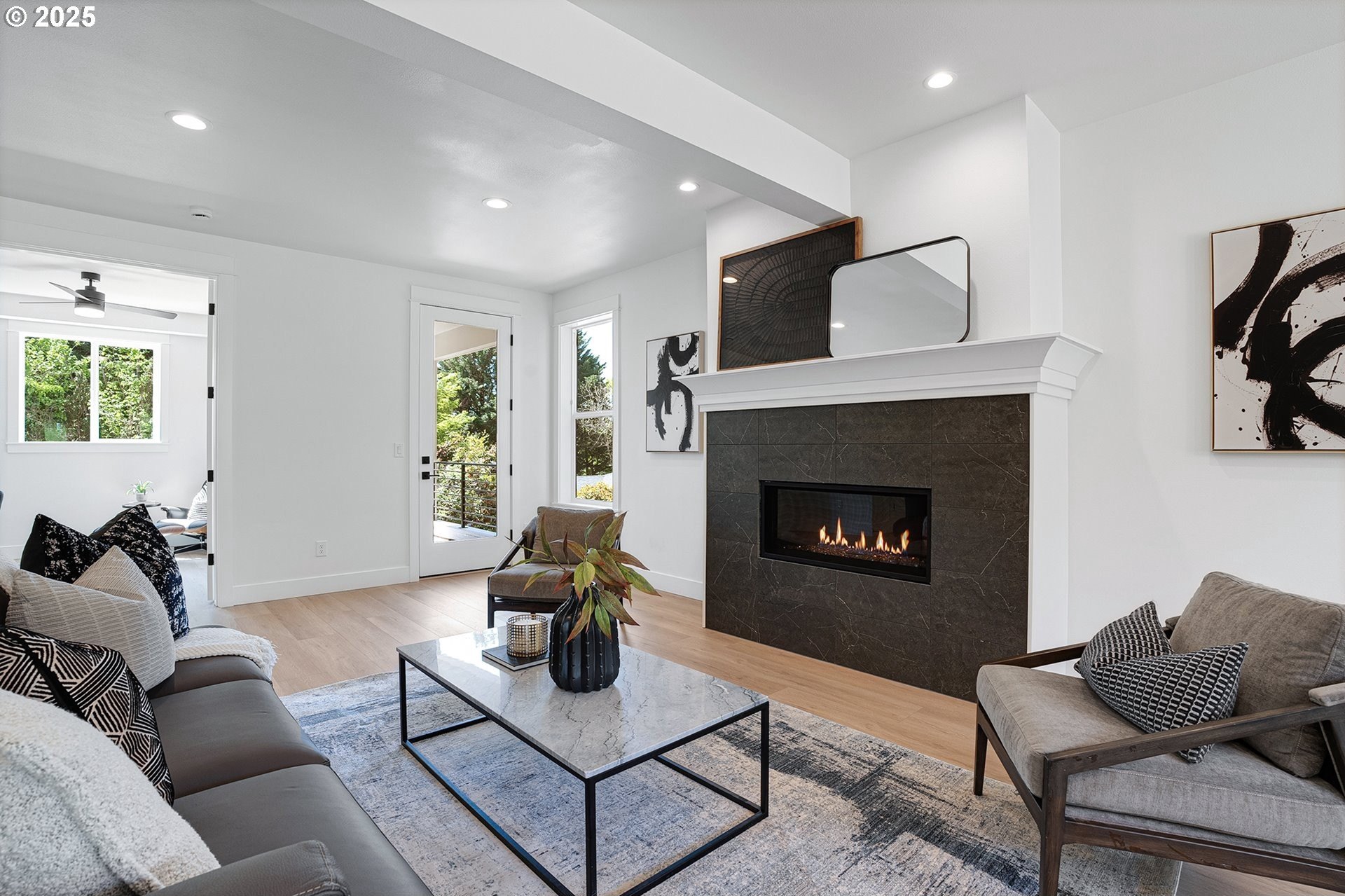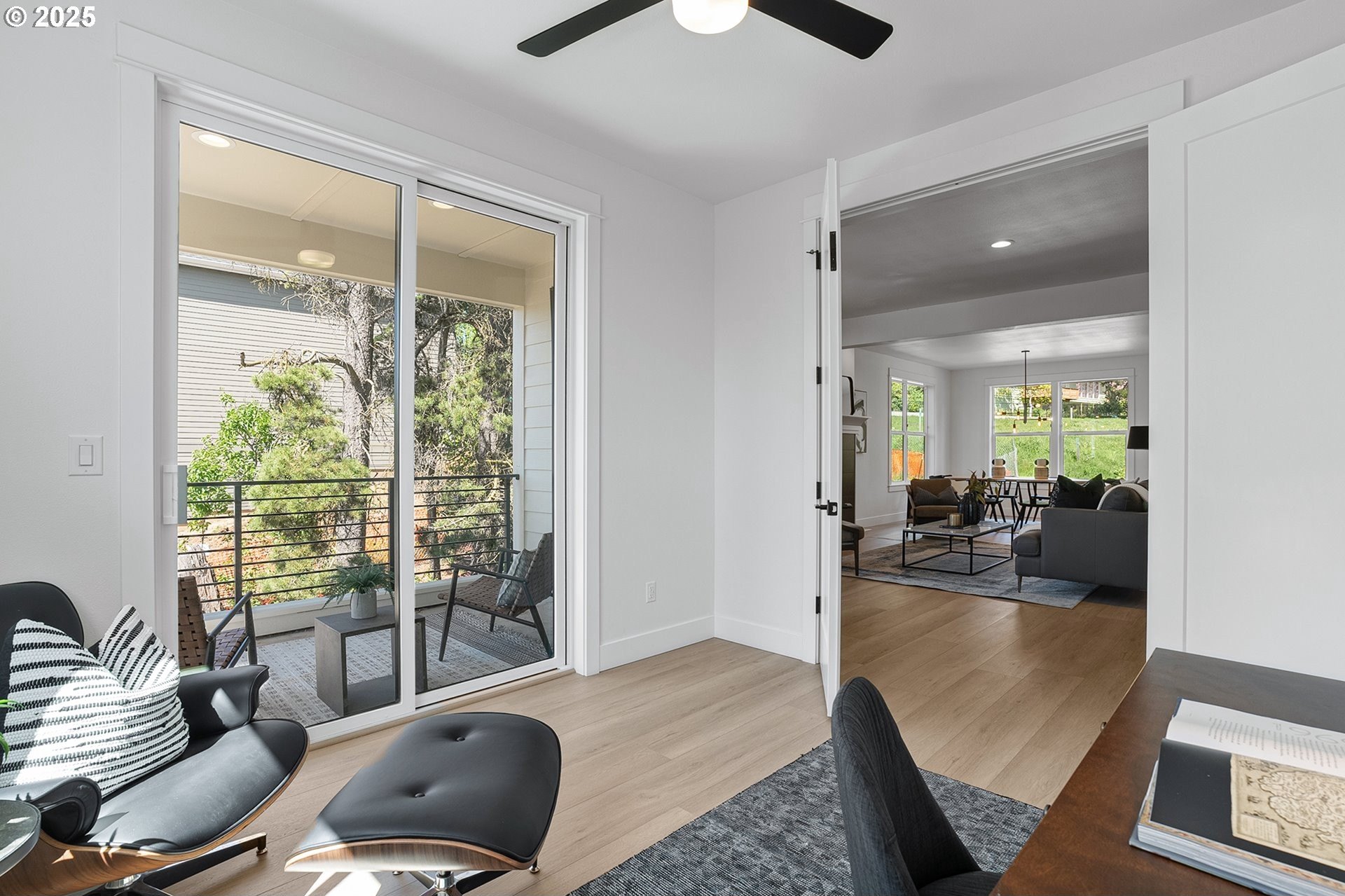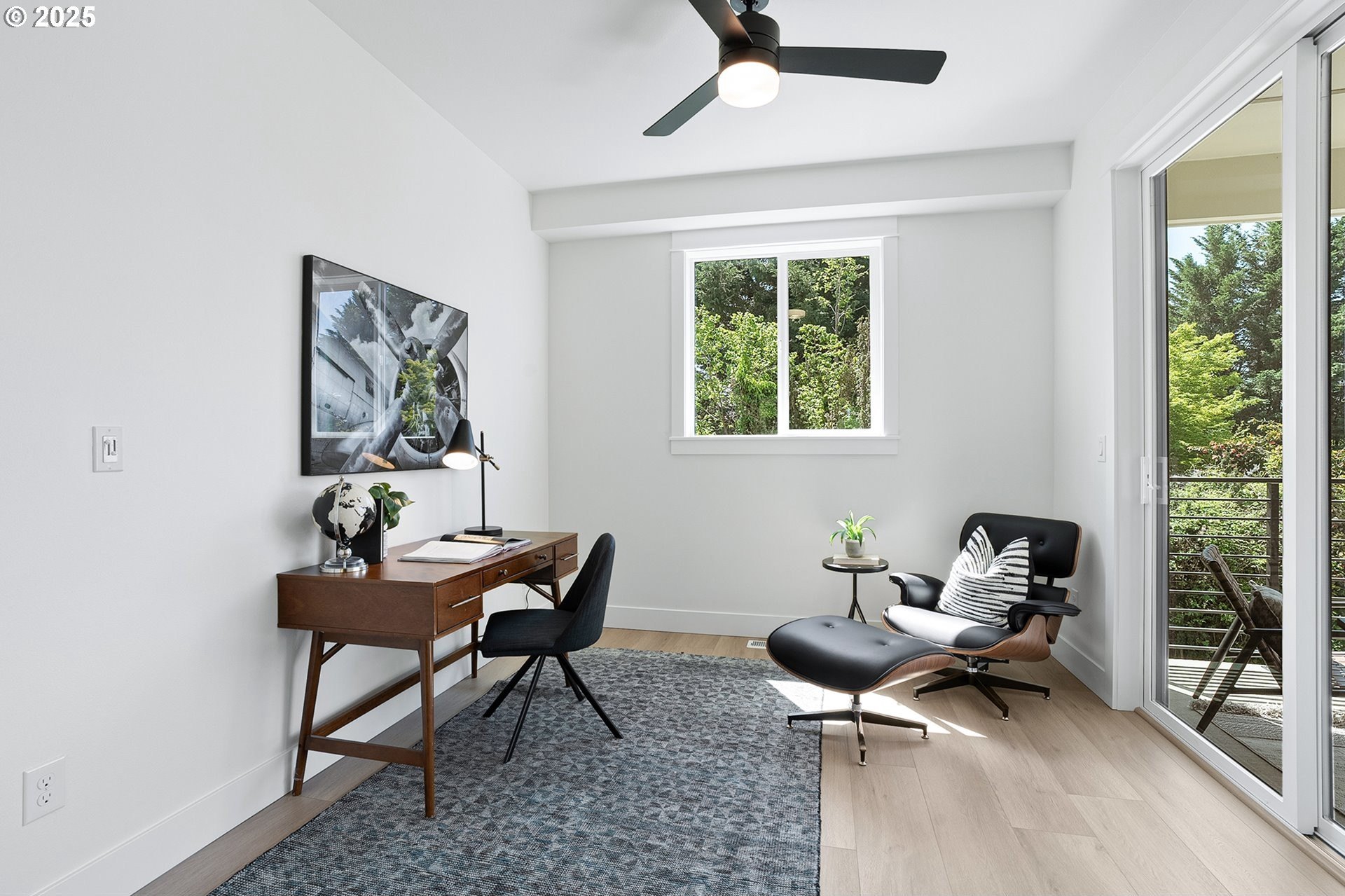 This stunning contemporary home, designed by Portland's acclaimed architect, Ralph Tahran, and built by Main Street Development, an esteemed fourth generation local builder, is one of nine unique homes in this exclusive in this development. It features 3 bedrooms, a main floor office, an upstairs large loft/family room. The home offers high end finishes, a gourmet kitchen with premium cabinets,9 foot ceilings, an open layout, striking sight lines, abundant natural light, and sweeping territorial views. Nestled on a lane in one of Portland's best neighborhoods, it's steps from vibrant heart of Hillsdale and Multnomah Village beyond, with downtown only a 10 minute drive away. Highlights include engineered hardwood in the main living areas, tiled bathrooms a covered deck ideal for entertaining, and a large two car garage plus additional covered parking. The spacious primary suite boasts vaulted ceilings and an impressive 8' x 11' closet. Take advantage of the lower level studio/ADU with a separate entrance, ideal for guests, rental income, or extended living. The back yard connects with a beautiful common greenspace. With a Walk Score of 86 and a Bike Score of 83, this home combines luxury with convenience.