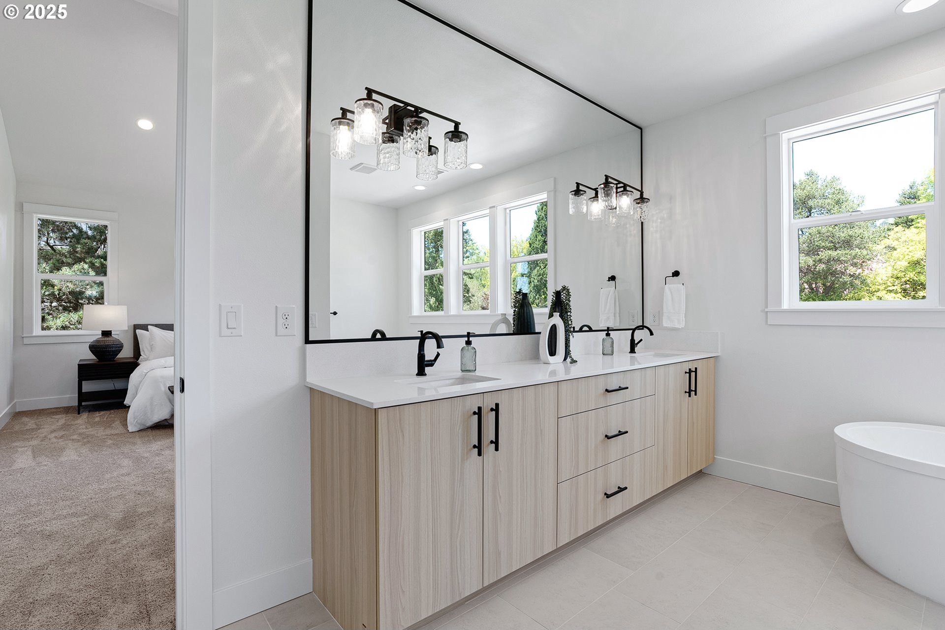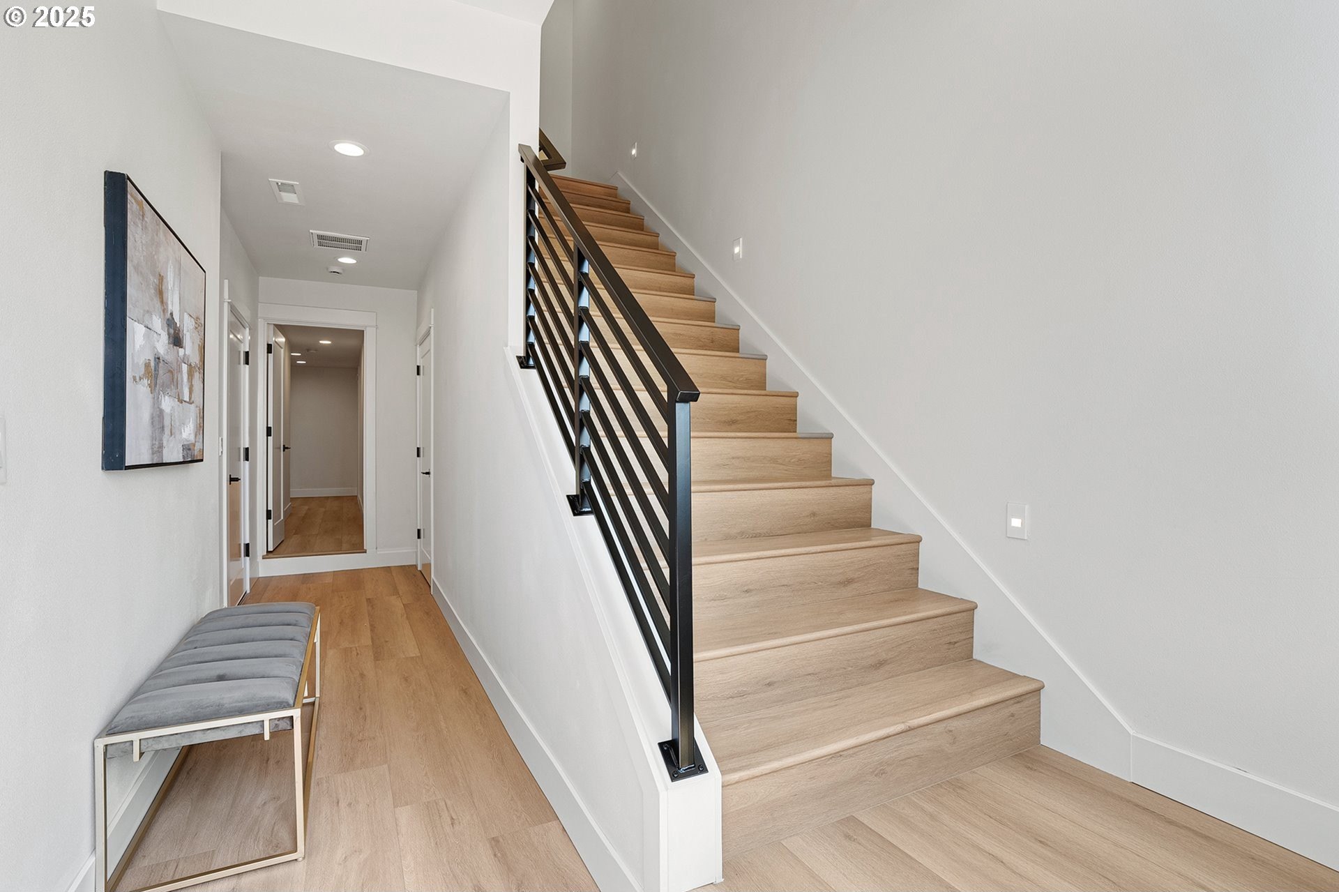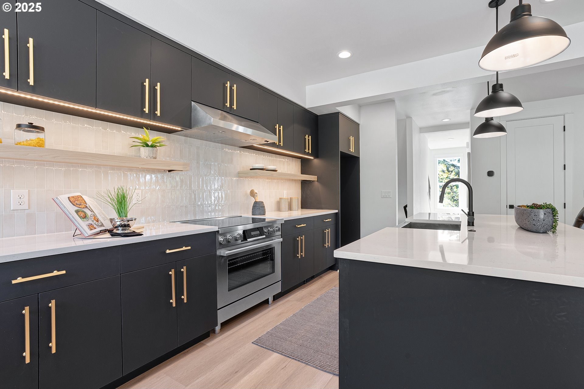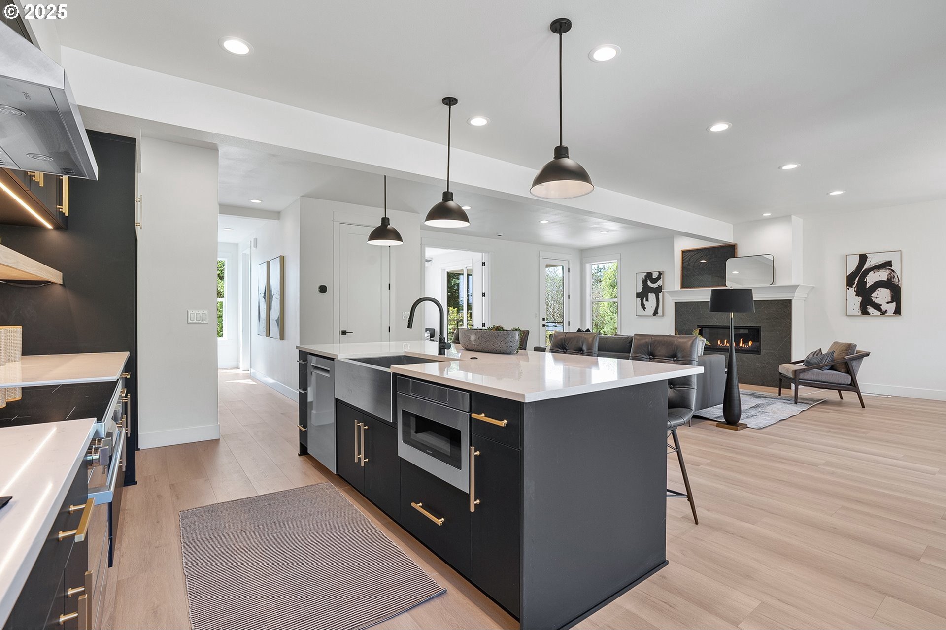 This stunning contemporary home, designed by Portland's acclaimed architect, Ralph Tahran, and built by Main Street Development, an esteemed fourth generation local builder, is one of nine unique homes in this exclusive in this development. It features 3 bedrooms, a main floor office, an upstairs large loft/family room. The home offers high end finishes, a gourmet kitchen with premium cabinets,9 foot ceilings, an open layout, striking sight lines, abundant natural light, and sweeping territorial views. Nestled on a lane in one of Portland's best neighborhoods, it's steps from vibrant heart of Hillsdale and Multnomah Village beyond, with downtown only a 10 minute drive away. Highlights include engineered hardwood in the main living areas, tiled bathrooms a covered deck ideal for entertaining, and a large two car garage plus additional covered parking. The spacious primary suite boasts vaulted ceilings and an impressive 8' x 11' closet. Take advantage of the lower level studio/ADU with a separate entrance, ideal for guests, rental income, or extended living. The back yard connects with a beautiful common greenspace. With a Walk Score of 86 and a Bike Score of 83, this home combines luxury with convenience.