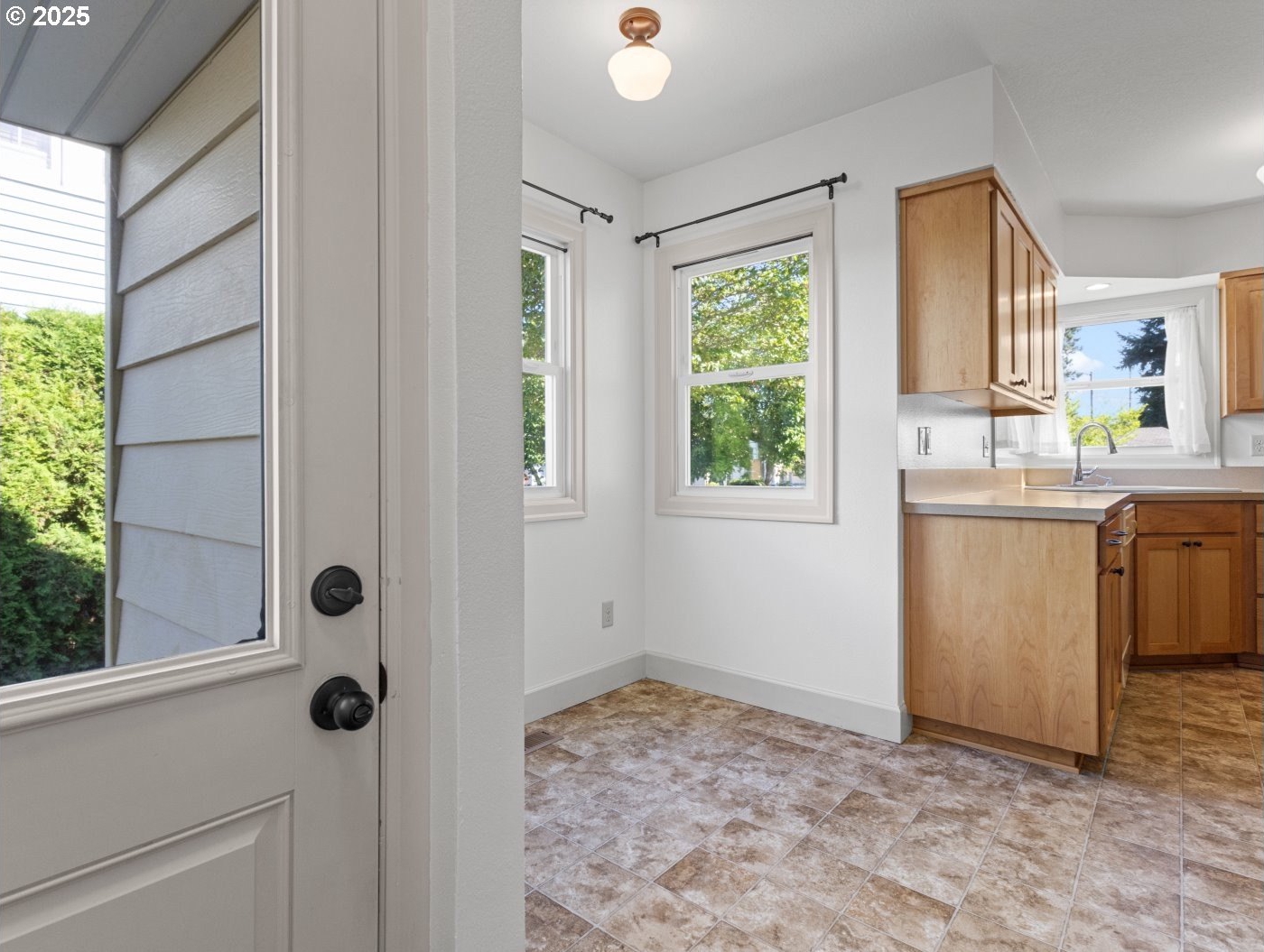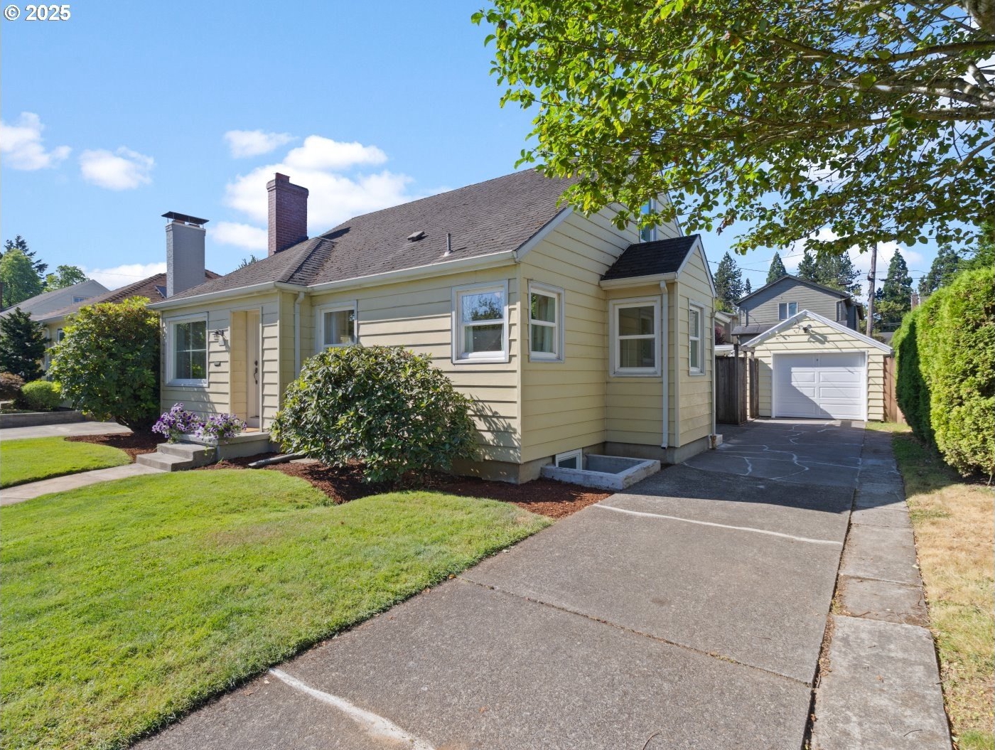New Incredible Price! (7/30) Nestled on a quiet street just off the bluff in University Park, this classic Cape Cod Revival blends 1940s charm with thoughtful modern updates. The main level features original oak hardwoods and abundant natural light throughout a warm, welcoming floor plan. A spacious living room with a wood-burning fireplace flows into the formal dining room—perfect for everyday living or entertaining. The updated kitchen boasts modern cabinetry, quality appliances, a cheerful breakfast nook, and side-door access to the driveway. Two generous bedrooms and a full bath are also on the main level, including one with sliding doors to the backyard—ideal for a guest room or home office. The finished lower level offers flexible living space with a family room, two conforming bedrooms, and a full bath with walk-in shower and dual vanity. A fully permitted remodel, completed in 2014, added quality upgrades throughout, including new electrical wiring, PEX water lines with a recirculating hot water system, and a reliable hardwired security system. It even has a high-efficiency heat pump with A/C and the advanced feature of 3-zone independent climate control! Upstairs, the spacious primary bedroom offers privacy and future potential, with plumbing roughed in and additional electrical circuits installed for a future bathroom dormer. Enjoy the beautifully landscaped backyard with a covered patio, lush lawn, and a stunning magnolia tree. A full fence provides privacy, and rear alley access allows for future development. A long driveway and detached garage offer ample parking. Located on the desirable east side of University Park near the University of Portland, this home is minutes from Arbor Lodge, Cathedral Park, and several popular grocery stores, restaurants, and cafes. [Home Energy Score = 5. HES Report at https://rpt.greenbuildingregistry.com/hes/OR10239562]