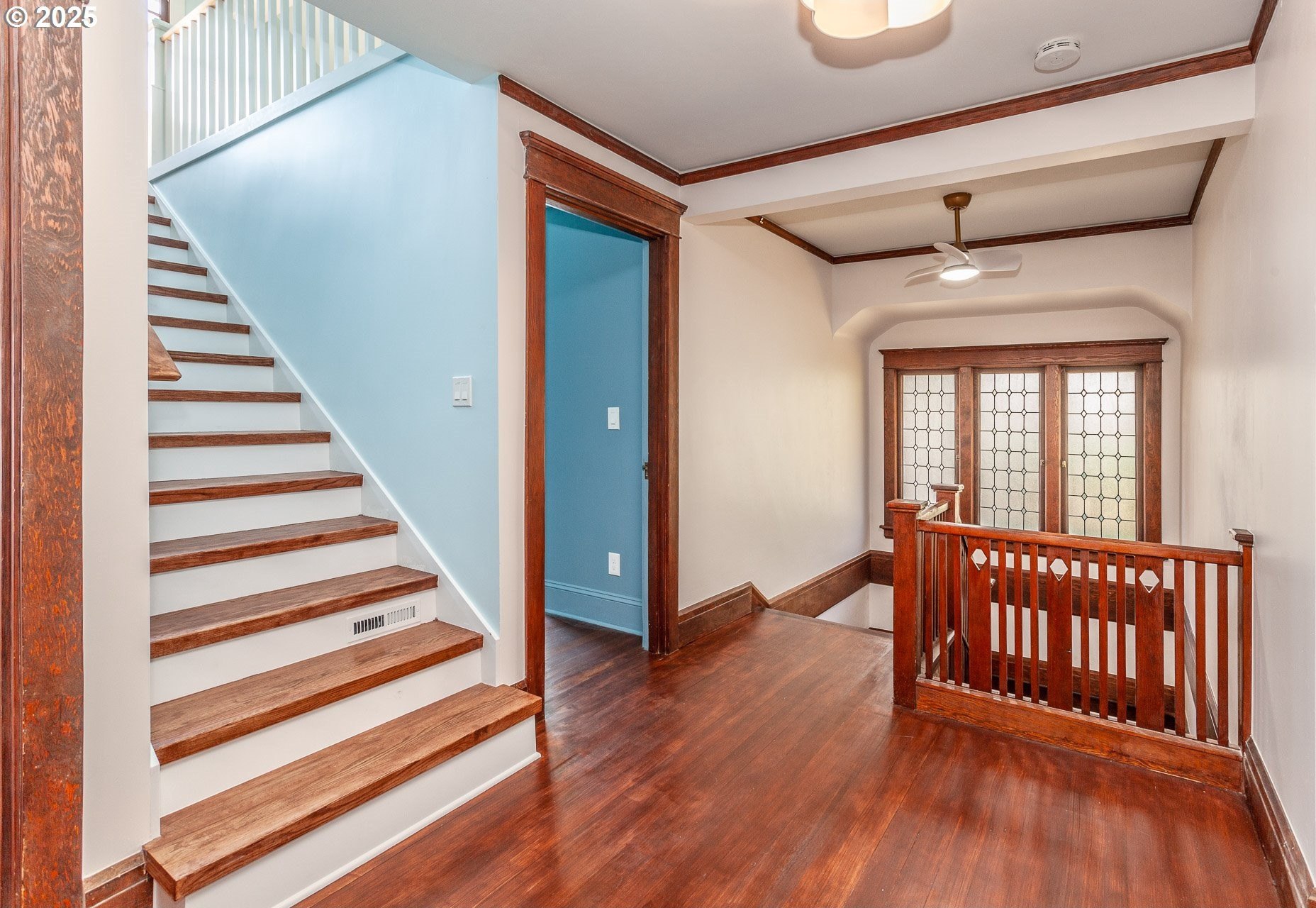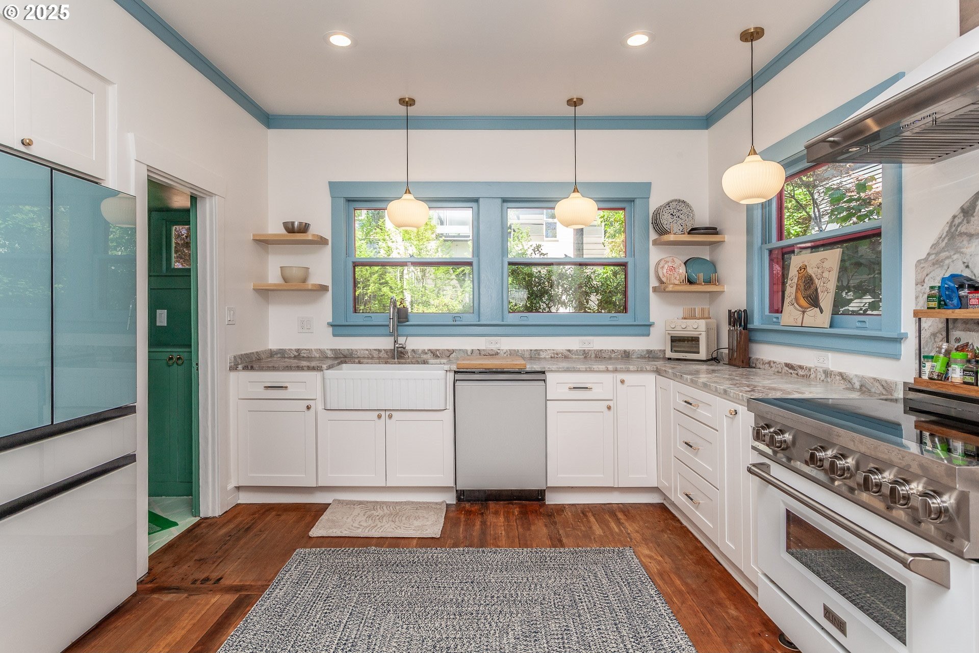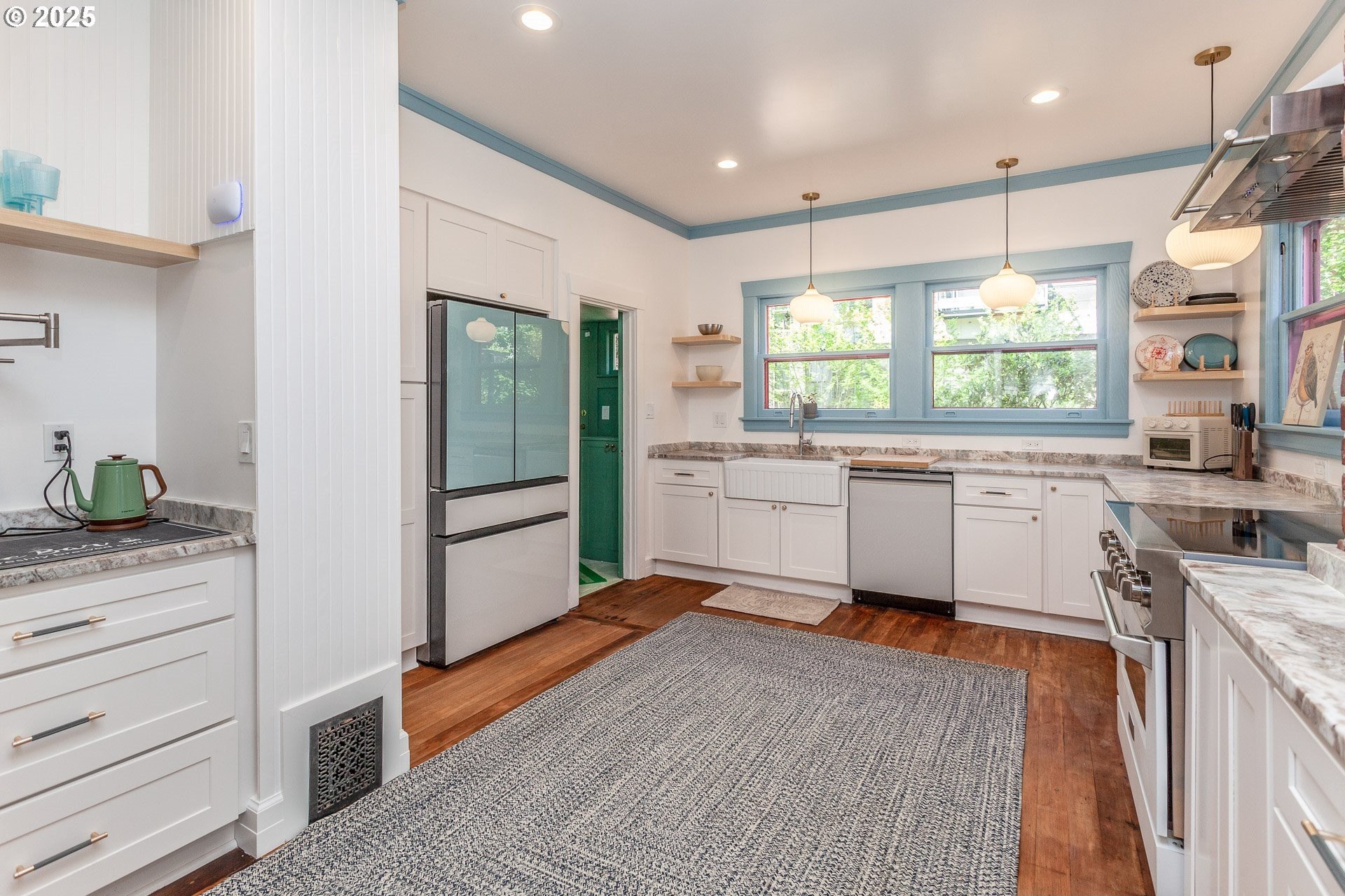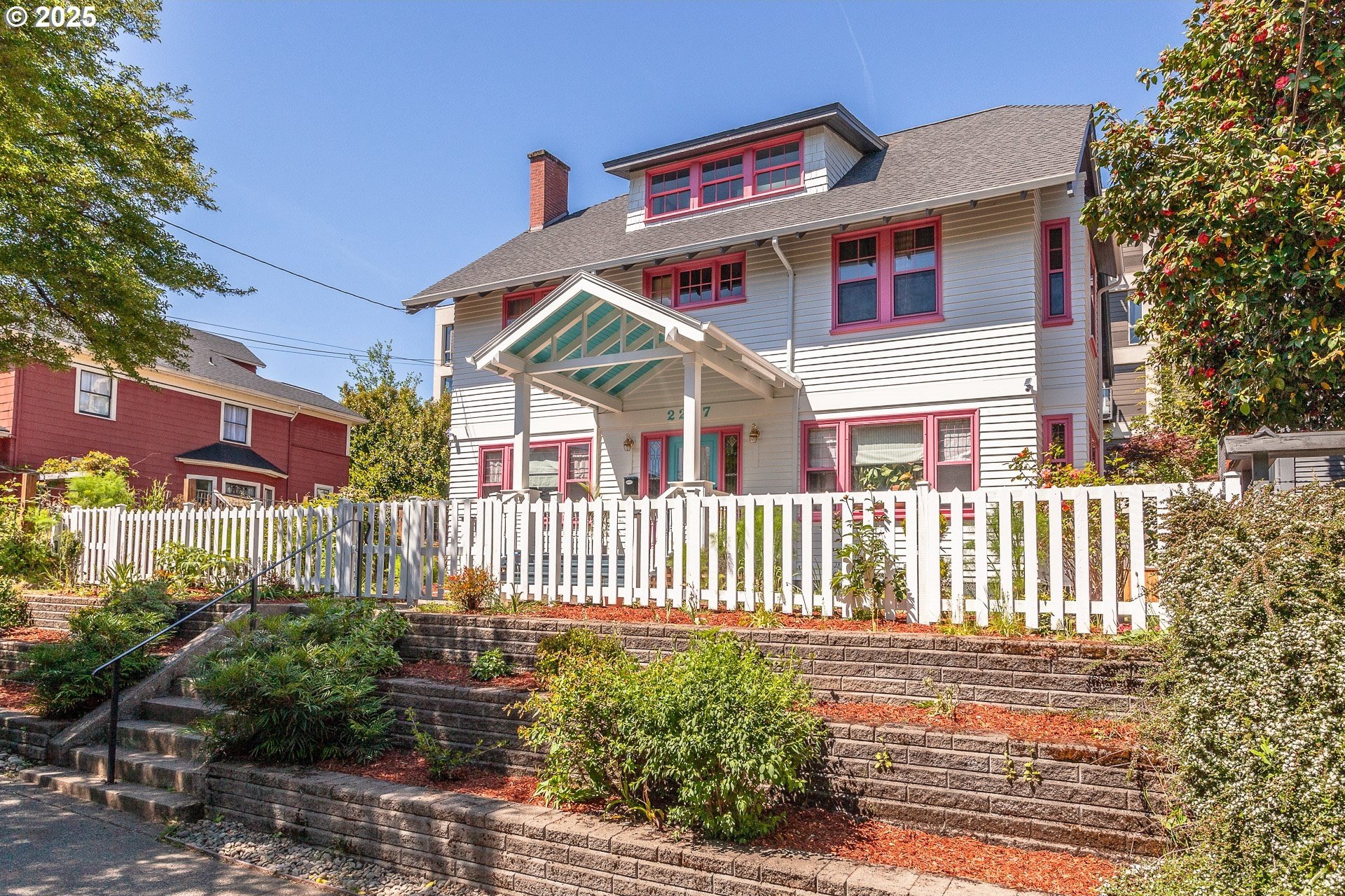 Just steps from the vibrant energy of NW 23rd Avenue—Portland’s premier destination for upscale dining, boutique shopping, and urban culture—this impeccably restored Craftsman home masterfully blends historic elegance with sophisticated modern living. Lovingly brought back to its original grandeur, this residence showcases exquisite architectural details: original stained and leaded glass windows, refinished hardwoods, and restored built-ins—all enhanced by luxurious contemporary upgrades. The high-end chef’s kitchen is a true showpiece, featuring top-of-the-line appliances and Smart features. You'll find a high-end Z-Line range with a convection oven, Bespoke refrigerator with dedicated beverage drawer, a touchless faucet, and a dedicated coffee station with a separate water dispenser. Enjoy the comfort and confidence of fully updated systems plumbing and electrical, tankless water heater, high-efficiency furnace, and modern bathrooms designed with beauty and elegance in mind. The interiors have been thoughtfully finished with rich wallpaper, stylish lighting, and fresh paint inside and out. The home's front and back porches offer inviting spaces for quiet mornings or evening entertaining. The attic suite is a rare find— ideal as a private owner’s retreat, au pair quarters, multigenerational living, or income-producing rental. It includes a spacious living area, bedroom with walk-in closet, bonus space, and a luxurious full bath. The partially finished basement, with tall ceilings and a separate entrance, offers potential for further customization. Situated on an unusually large fenced lot for the neighborhood, the home also boasts raised garden beds with a community garden bordering the property— an urban oasis in one of Portland’s most sought-after enclaves. Please ask your realtor about private parking options. This is more than a home—it’s a lifestyle. Experience the finest in NW Portland living! [Home Energy Score = 1. HES Report at https://rpt.greenbuildingregistry.com/hes/OR10222184]