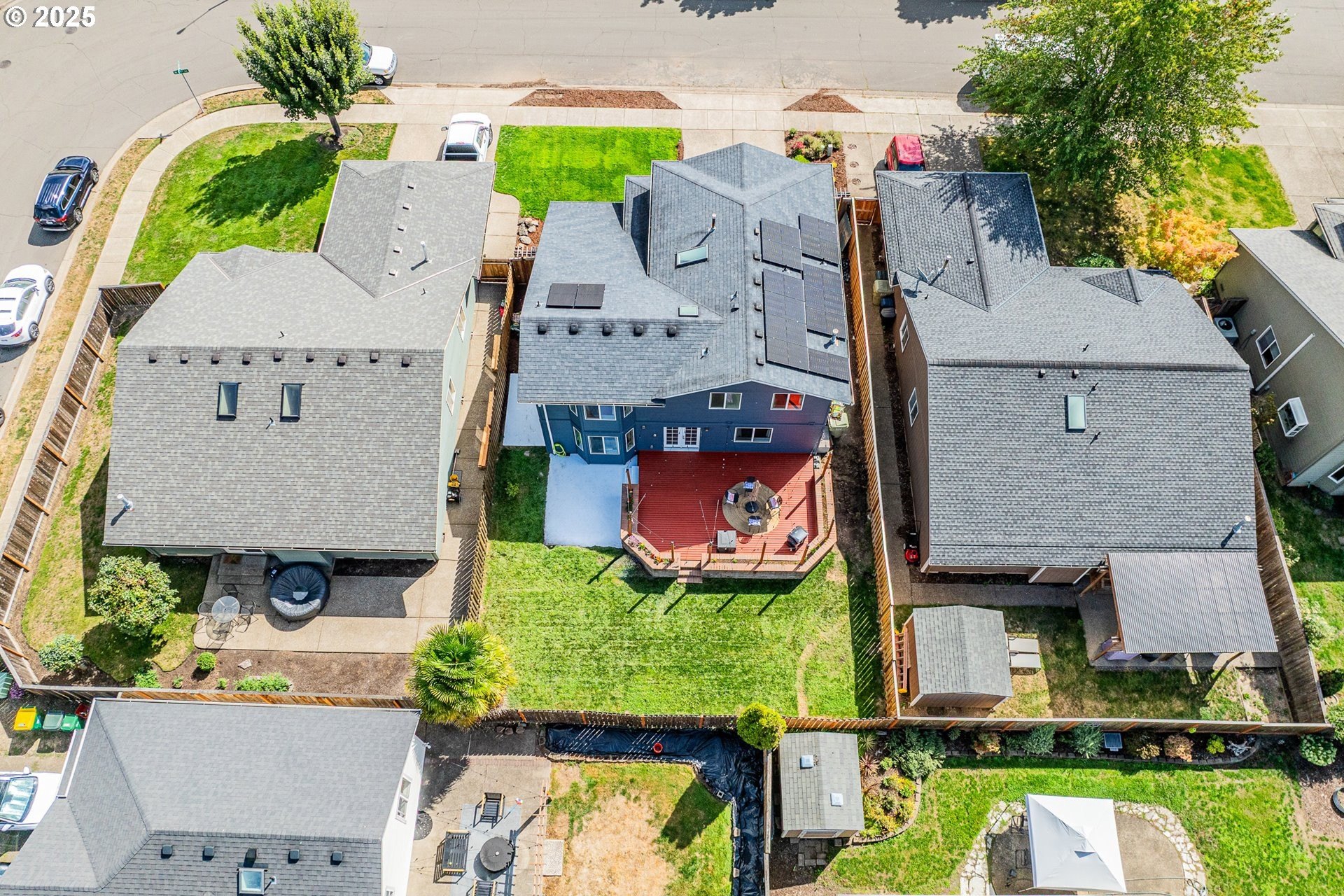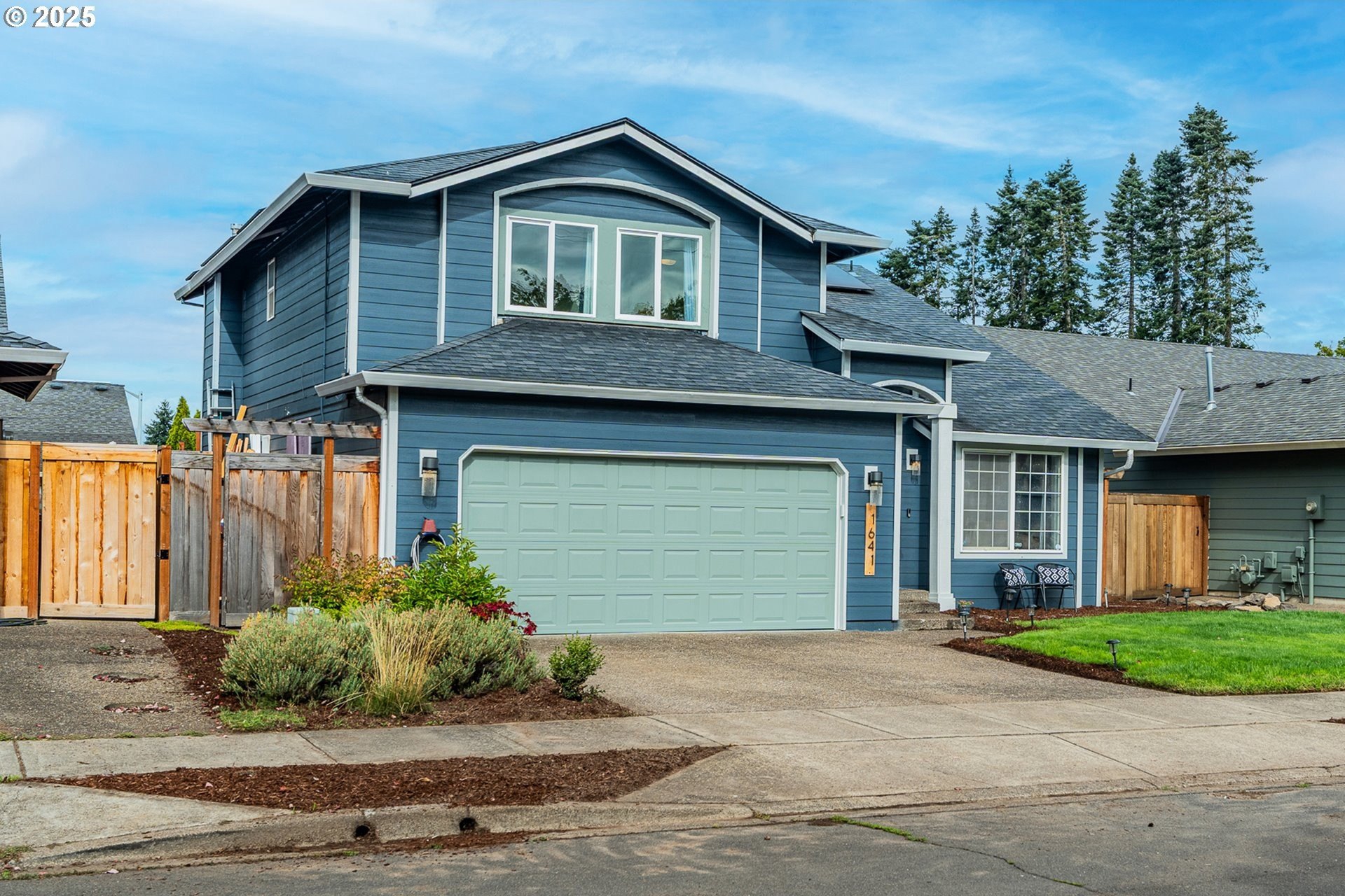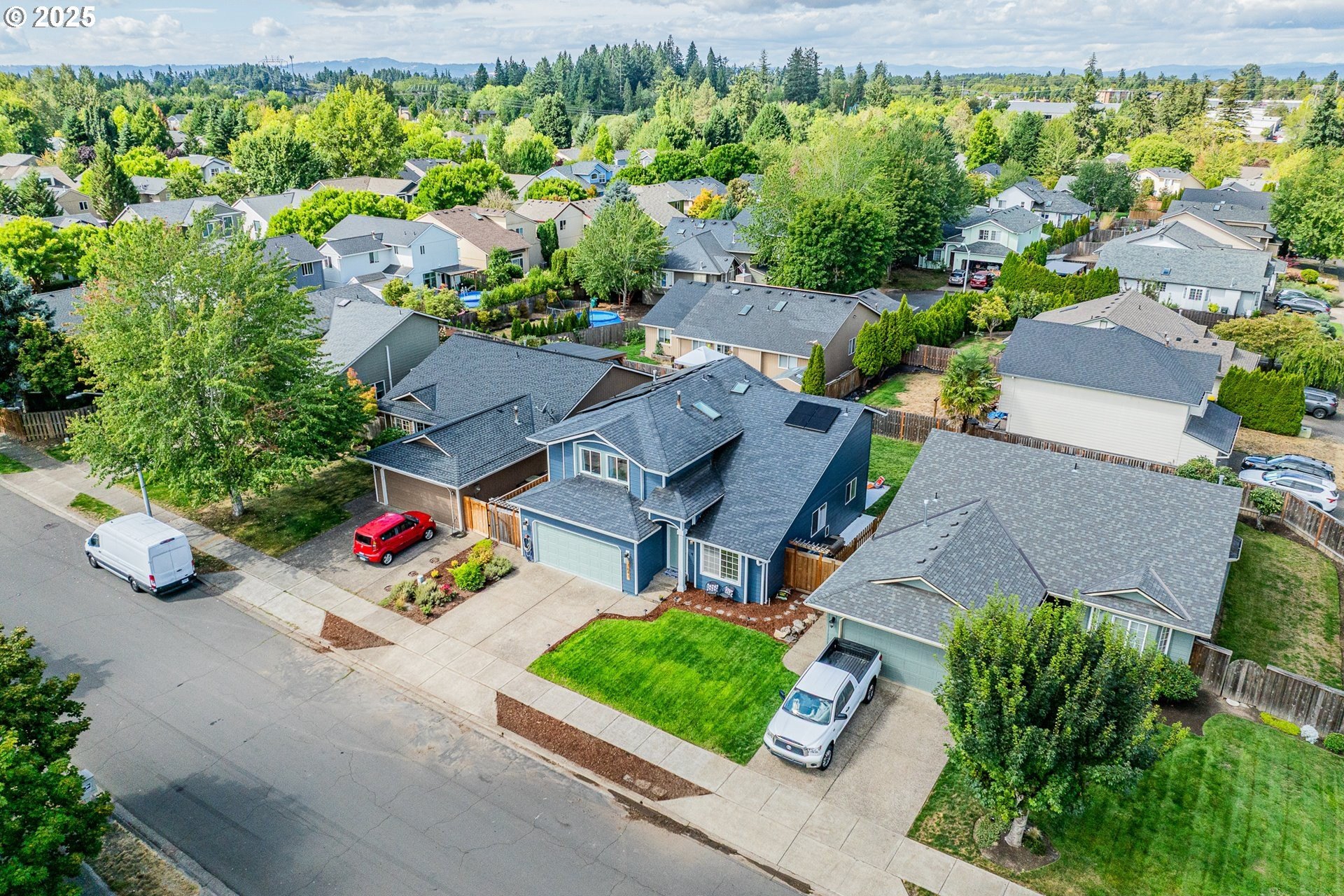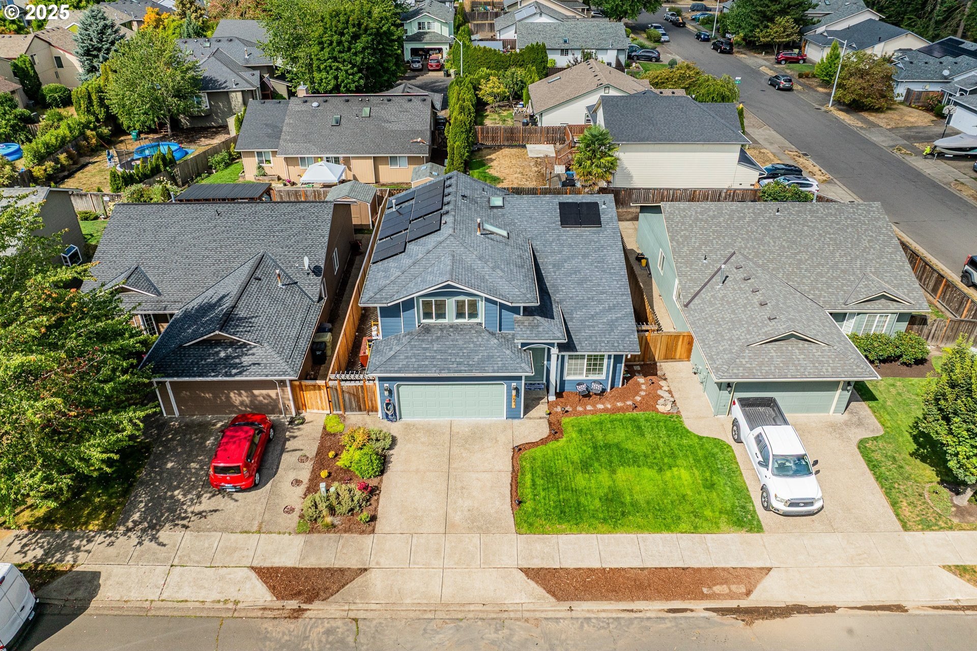 Welcome to this beautifully updated four-bedroom home designed for both comfortable living and effortless entertaining. With a thoughtful floor plan, vaulted ceilings, and a two-car attached garage, this home offers the perfect combination of style and functionality. Equipped with solar panels, this home provides energy efficiency and cost savings, making it as eco-friendly as it is elegant. The spacious, light-filled kitchen features elegant quartz countertops, a gas range with an electric stove, a built-in dishwasher, microwave, and a full-size refrigerator. A large island provides ample space for meal prep, casual dining, and lively gatherings. The kitchen flows seamlessly into the cozy family room with a gas fireplace, while the vaulted ceilings in the living room add an airy, open feel. Dual French doors lead to the backyard, creating a perfect setting for entertaining and relaxing. The primary suite is a true retreat with vaulted ceilings, a spacious walk-in closet, and a spa-like en-suite bathroom featuring dual sinks, a soaking tub, and a glass shower. Three additional bedrooms offer plenty of space and comfort for family or guests, complemented by a shared full bath, a main-level half bath, and a dedicated laundry room with washer and dryer for convenience. Outside, the private, fully fenced backyard provides an inviting oasis, complete with an expansive wood deck ideal for al fresco dining, BBQs, and enjoying the beautiful Pacific Northwest weather. Perfectly located near top-rated schools, lush parks, shopping, and major employers like Nike and Intel, this home makes commuting simple — even by bike or on foot. With luxury vinyl plank flooring throughout the main level, high-end fixtures, thoughtful updates, and the added benefit of solar energy, this home offers low-maintenance living with modern comfort and style. Don’t miss your chance to make it yours — schedule a private tour today! [Home Energy Score = 8. HES Report at https://rpt.greenbuildingregistry.com/hes/OR10241044]